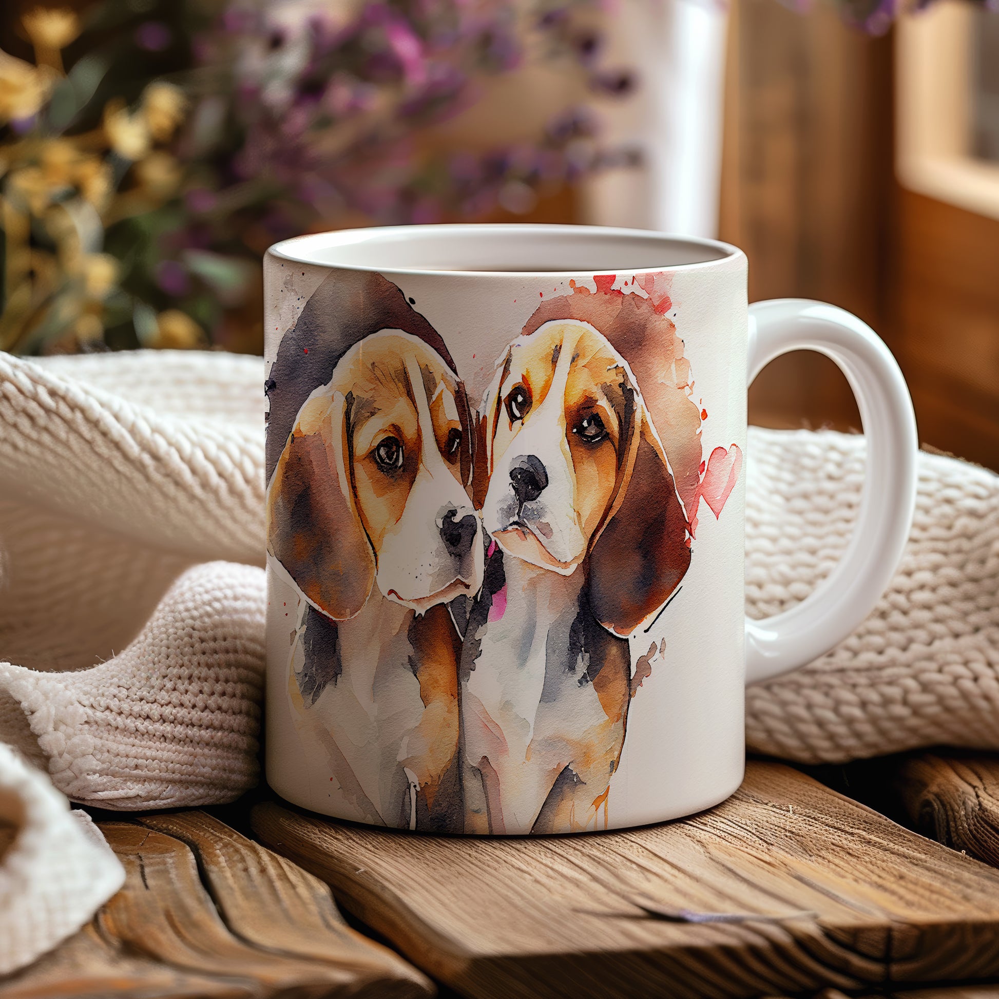 Keramický hrnek s krásnou akvarelovou ilustrací dvou beagle štěňat. Tento hrnek je ideální pro milovníky psů a skvělý tip na dárek pro přátele nebo rodinu. Materiál: keramika. Objem: 330 ml. Vhodné do myčky i mikrovlnky. Užívejte si svůj oblíbený nápoj s tímto stylovým hrnkem.