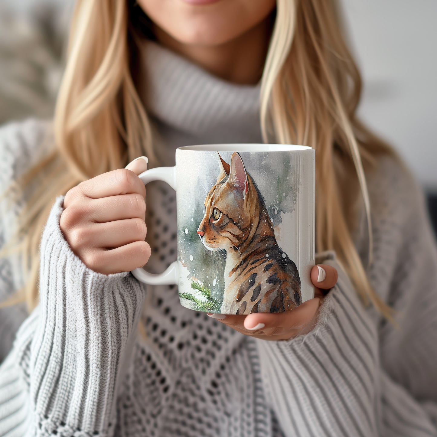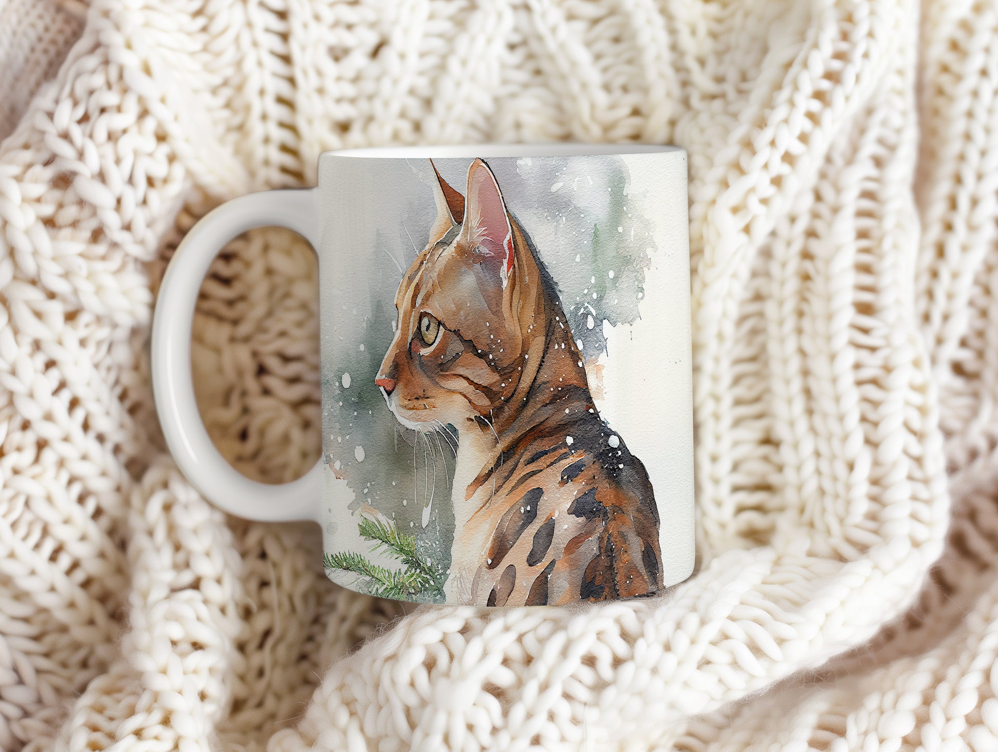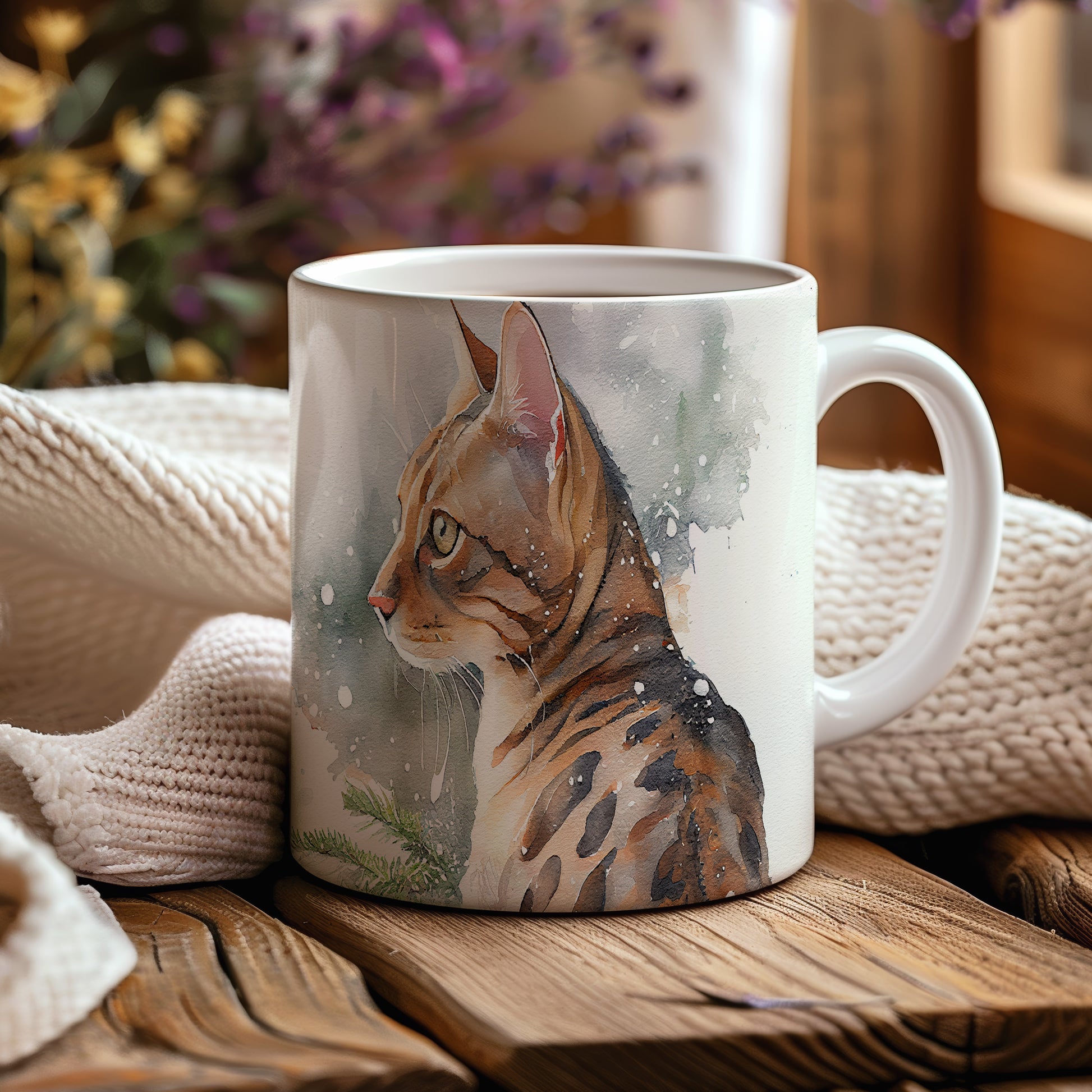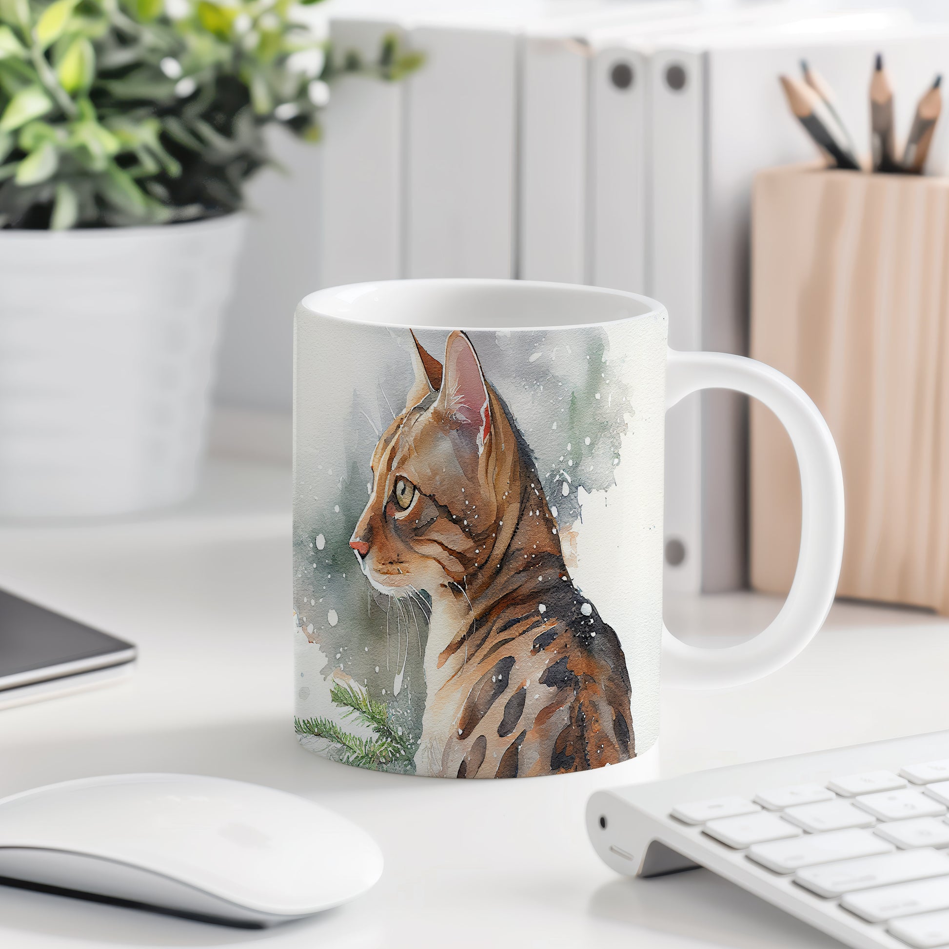 Hrnek s motivem bengálské kočky v zimní scenérii je elegantním kouskem pro milovníky zvířat. Tento hrnek je skvělým dárkem pro každého, kdo ocení krásu přírody a zvířat. Materiál: keramika. Objem: 330 ml. Vhodné do myčky i mikrovlnky. Užijte si svůj oblíbený nápoj s tímto stylovým hrnkem.