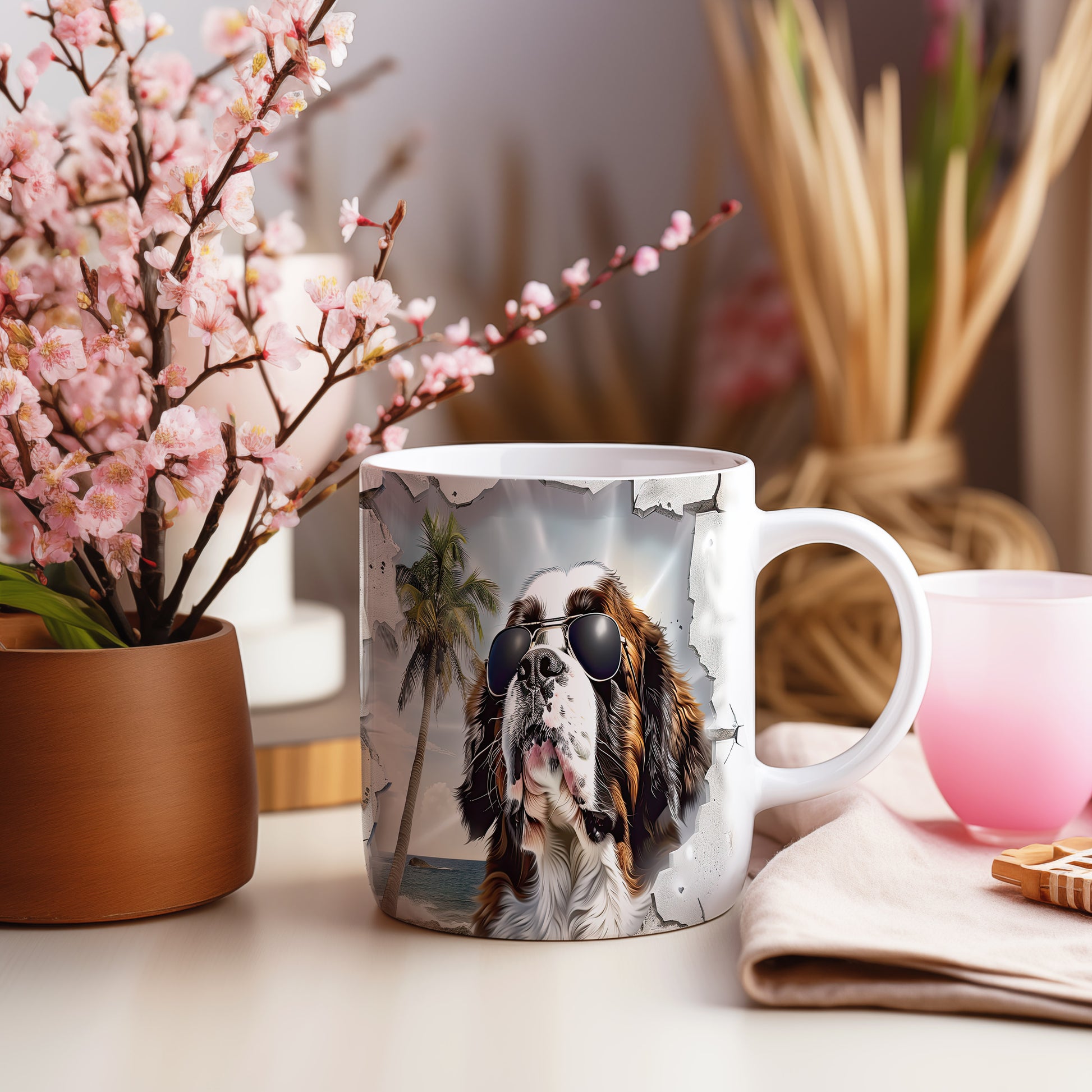 Tento hrnek s originálním motivem bernardýna v slunečních brýlích přináší letní atmosféru a radost. Je ideální pro milovníky psů a skvělý tip na dárek pro přátele či rodinu. Materiál: keramika. Objem: 330 ml. Vhodné do myčky i mikrovlnky. Používání tohoto hrnku přináší potěšení z každého doušku.