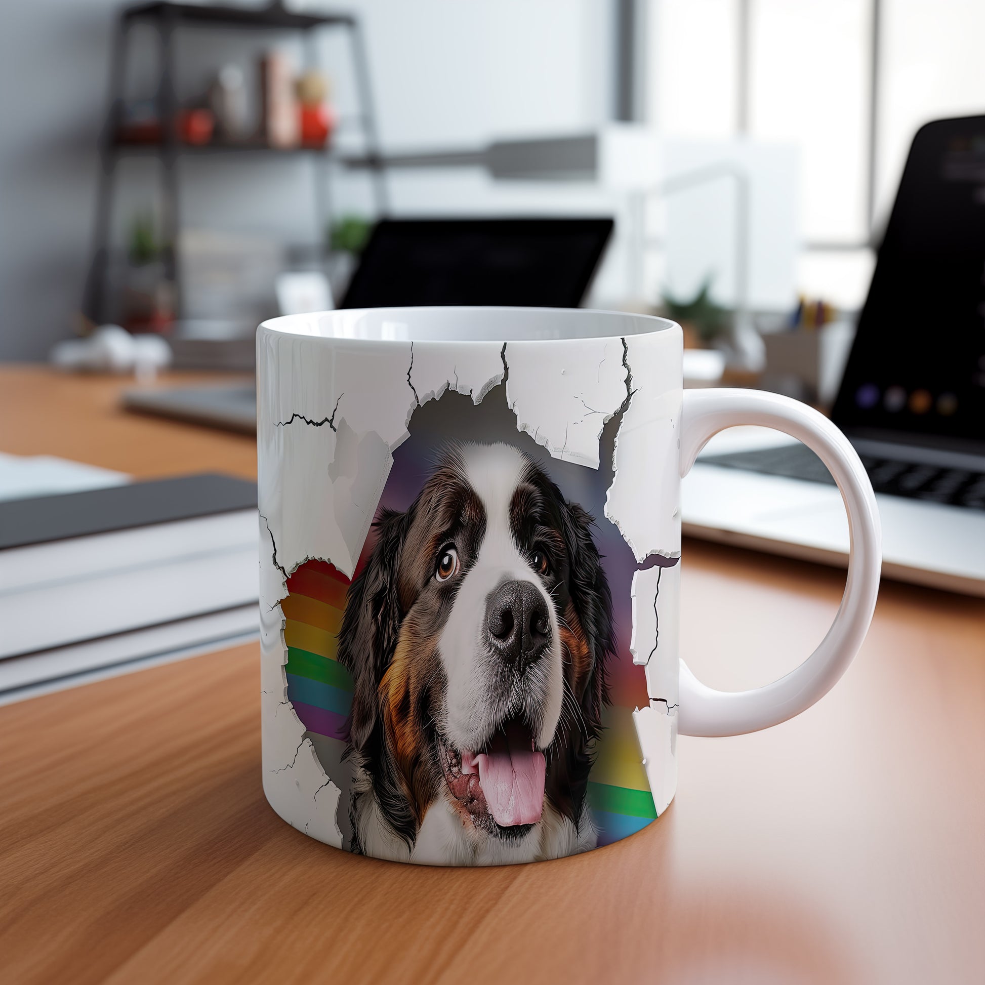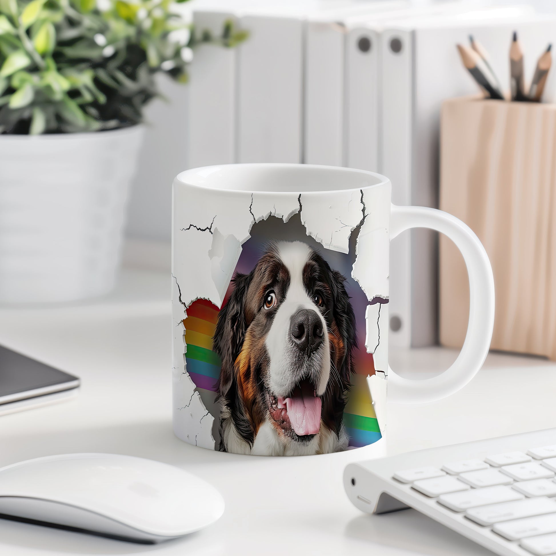 Tento hrnek zobrazuje Bernského salašnického psa v radostném stylu. Je ideální pro milovníky psů a skvělým dárkem pro každého, kdo ocení roztomilé motivy. Materiál: keramika. Objem: 330 ml. Vhodné do myčky i mikrovlnky. Používání tohoto hrnku přináší radost a útulnost do každého dne.