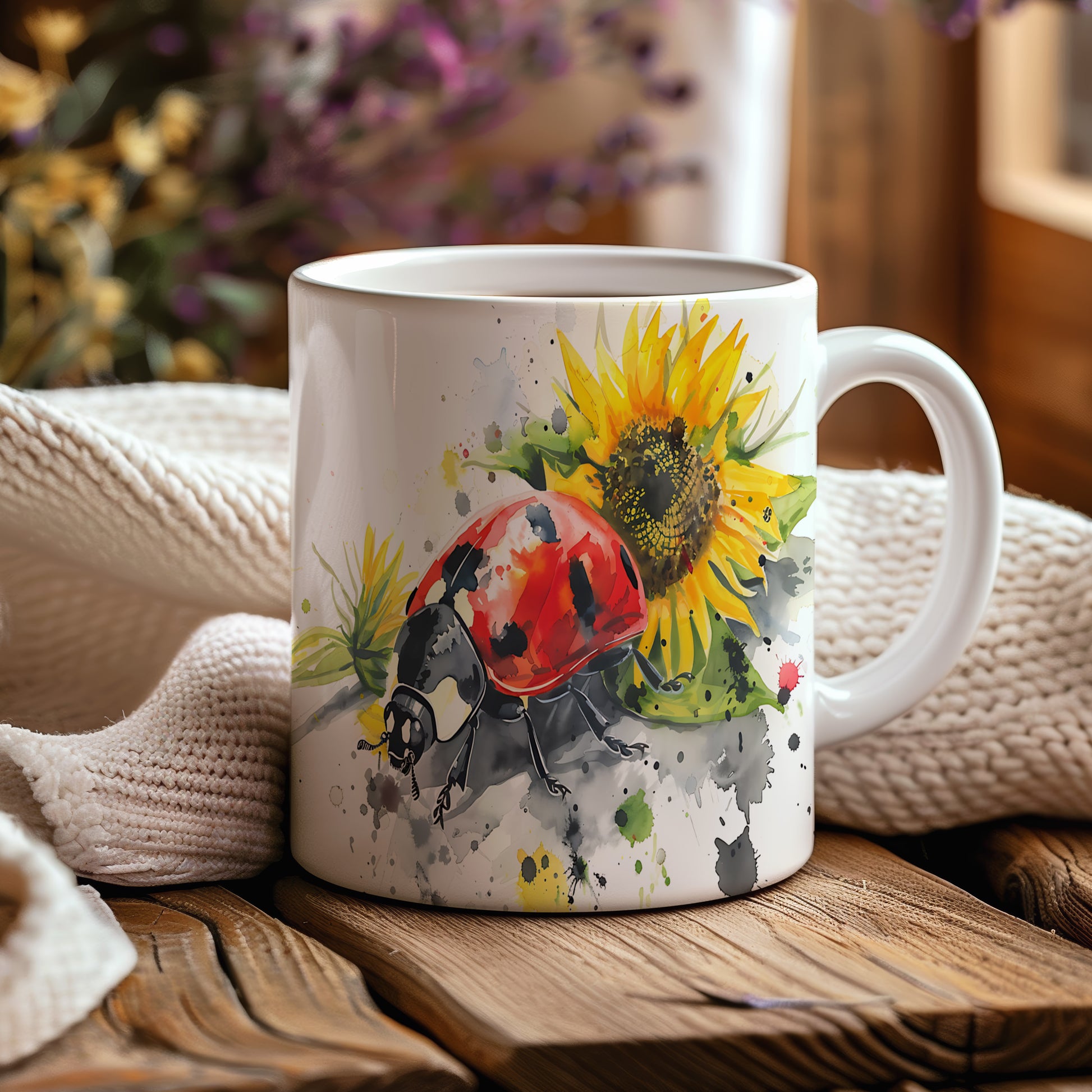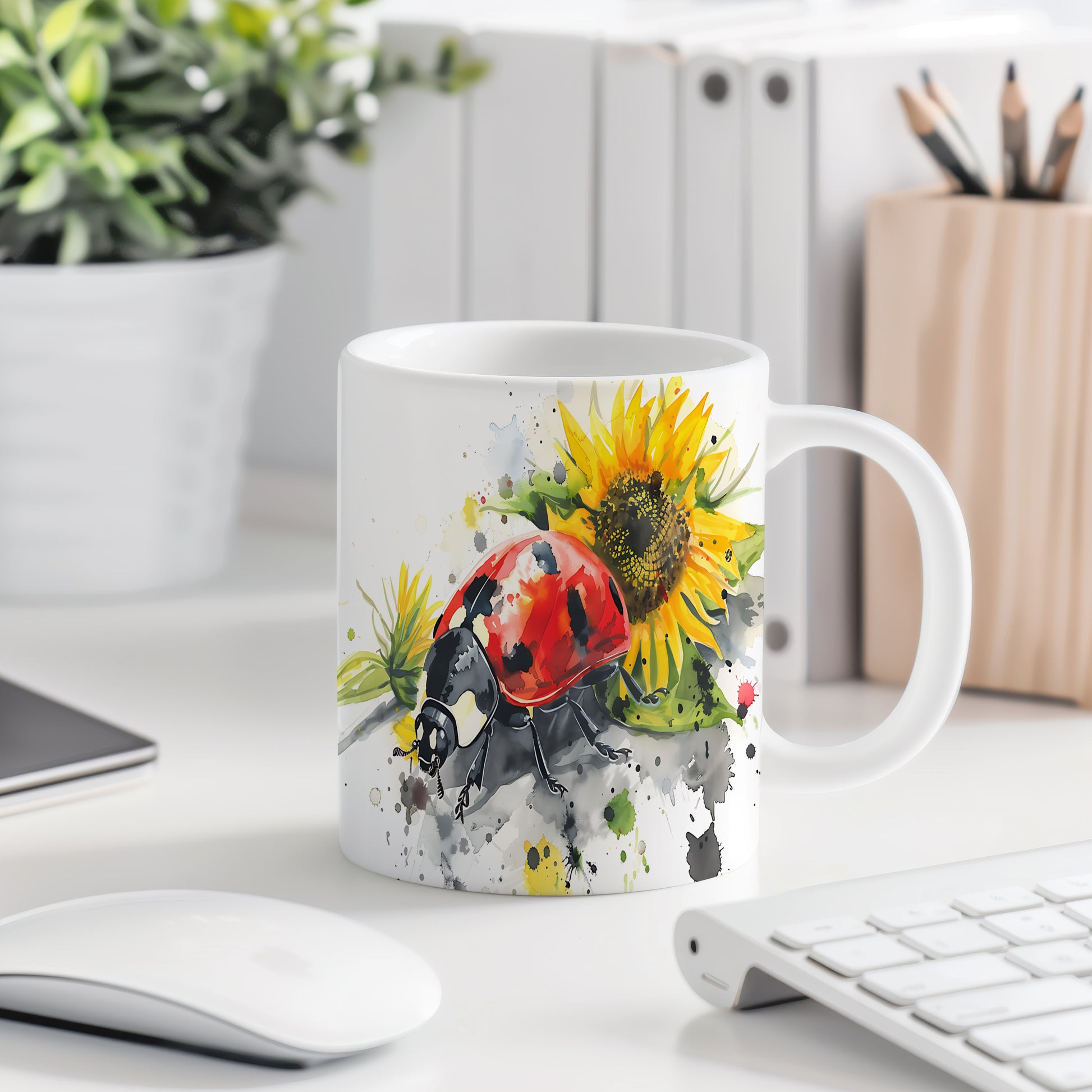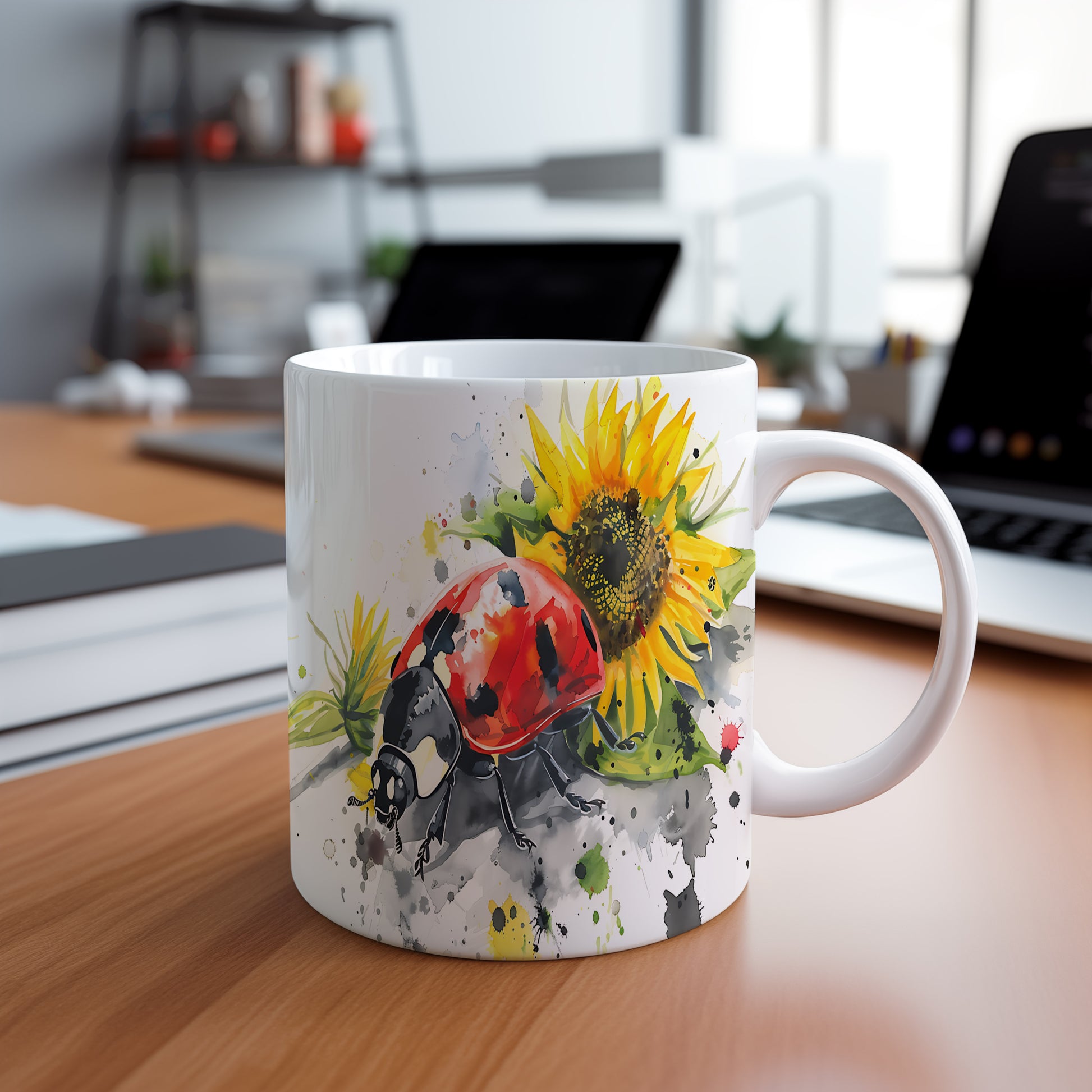Tento hrnek zobrazuje veselou berušku na pozadí slunečnic. Je ideální pro milovníky přírody a skvělým dárkem pro každého, kdo ocení barevné motivy. Materiál: keramika. Objem: 330 ml. Vhodné do myčky i mikrovlnky. Díky svému designu přináší radost do každodenního pití.
