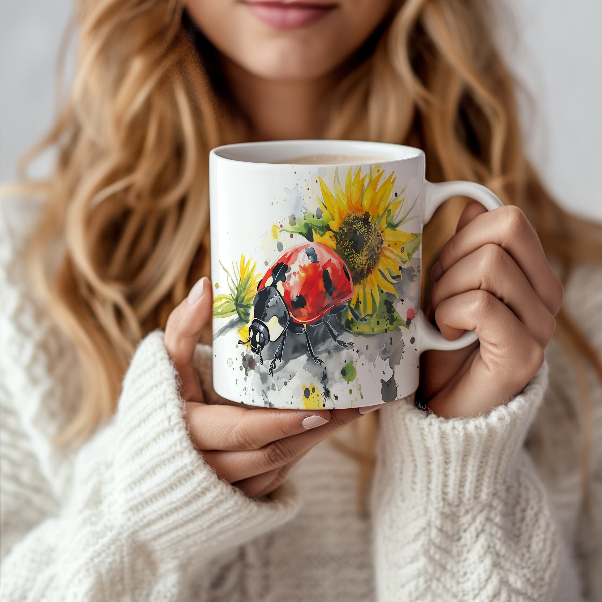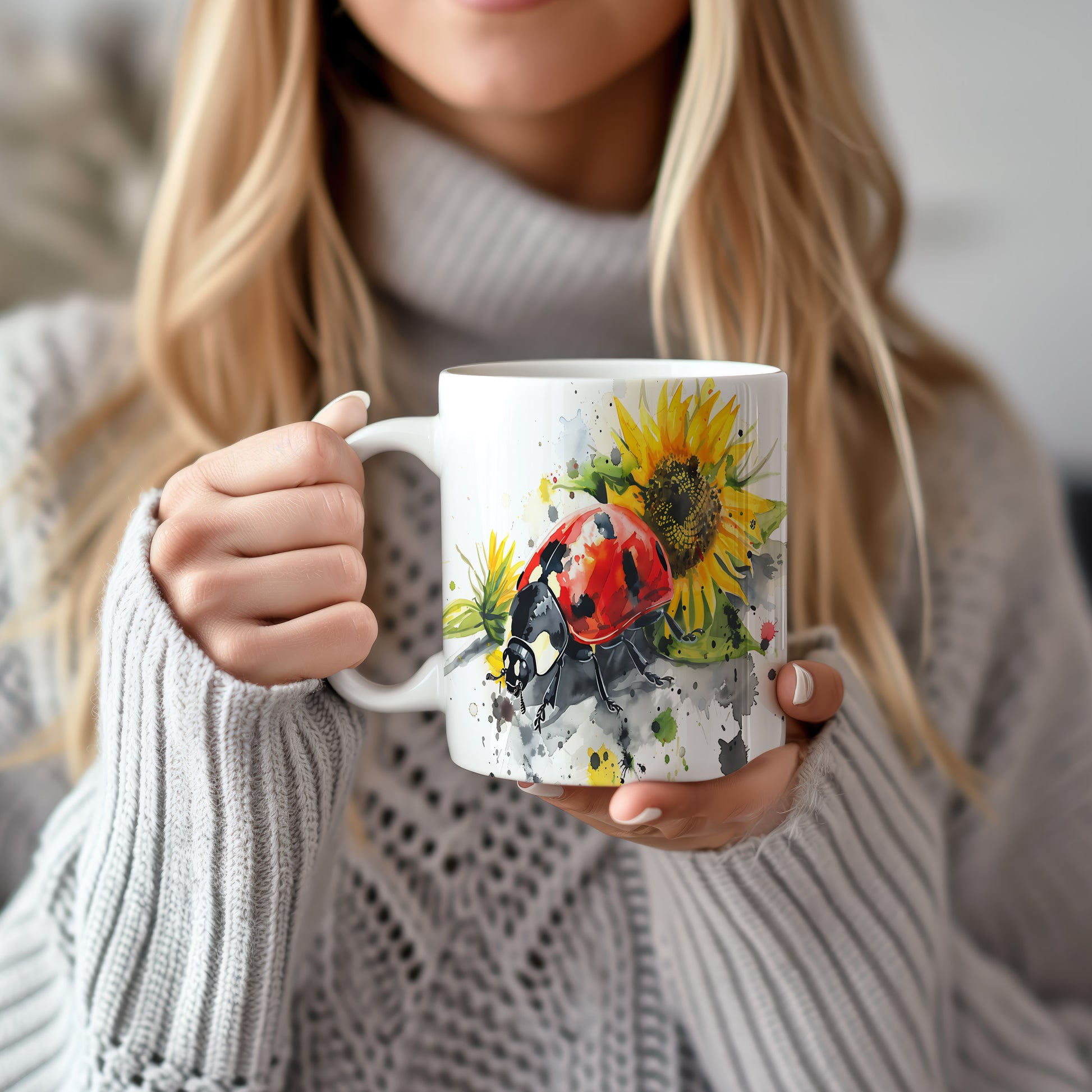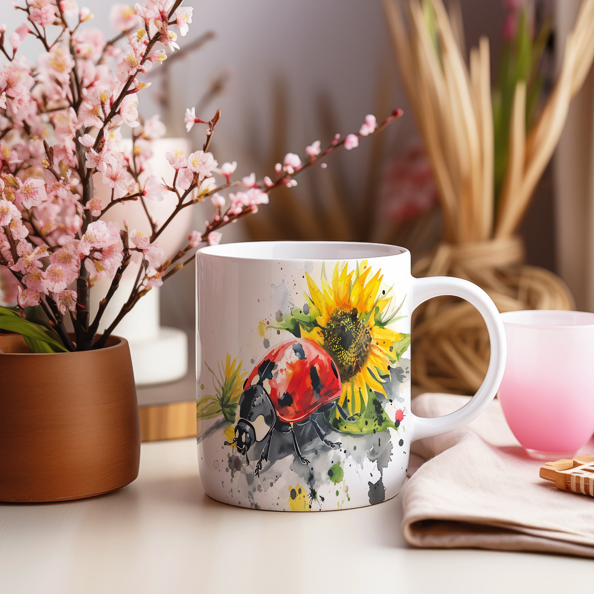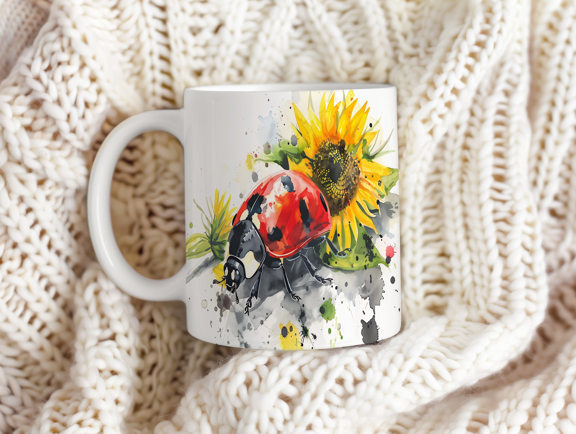 Tento hrnek zobrazuje veselou berušku na pozadí slunečnic. Je ideální pro milovníky přírody a skvělým dárkem pro každého, kdo ocení barevné motivy. Materiál: keramika. Objem: 330 ml. Vhodné do myčky i mikrovlnky. Díky svému designu přináší radost do každodenního pití.