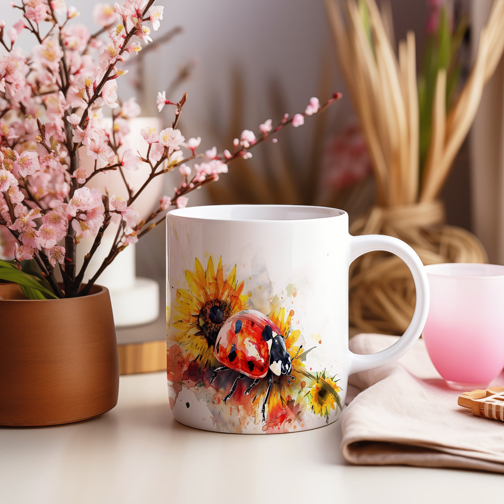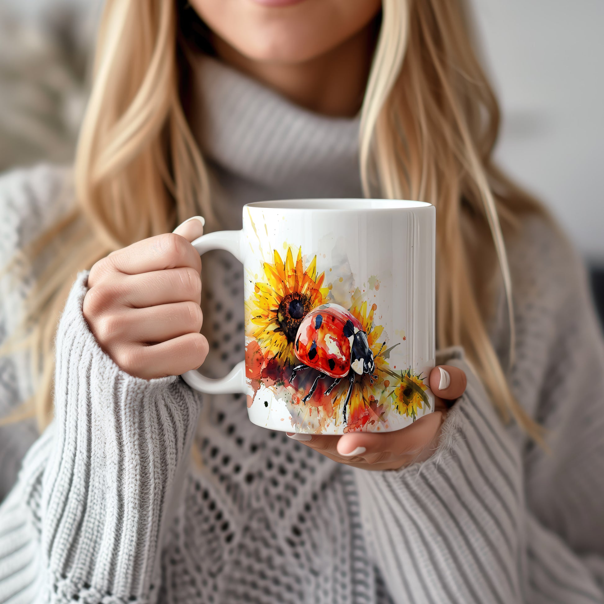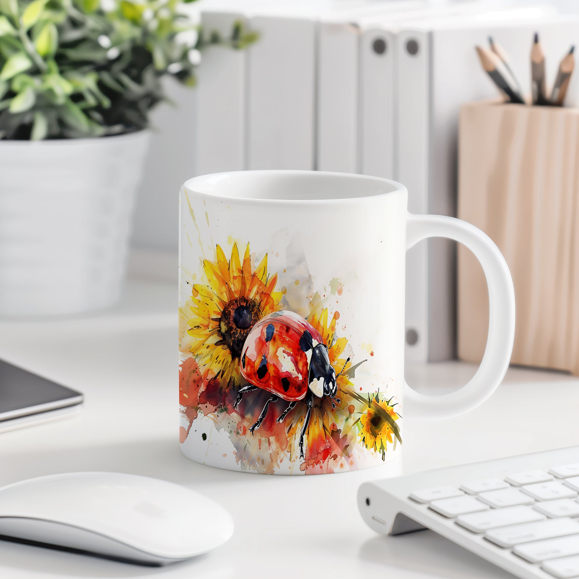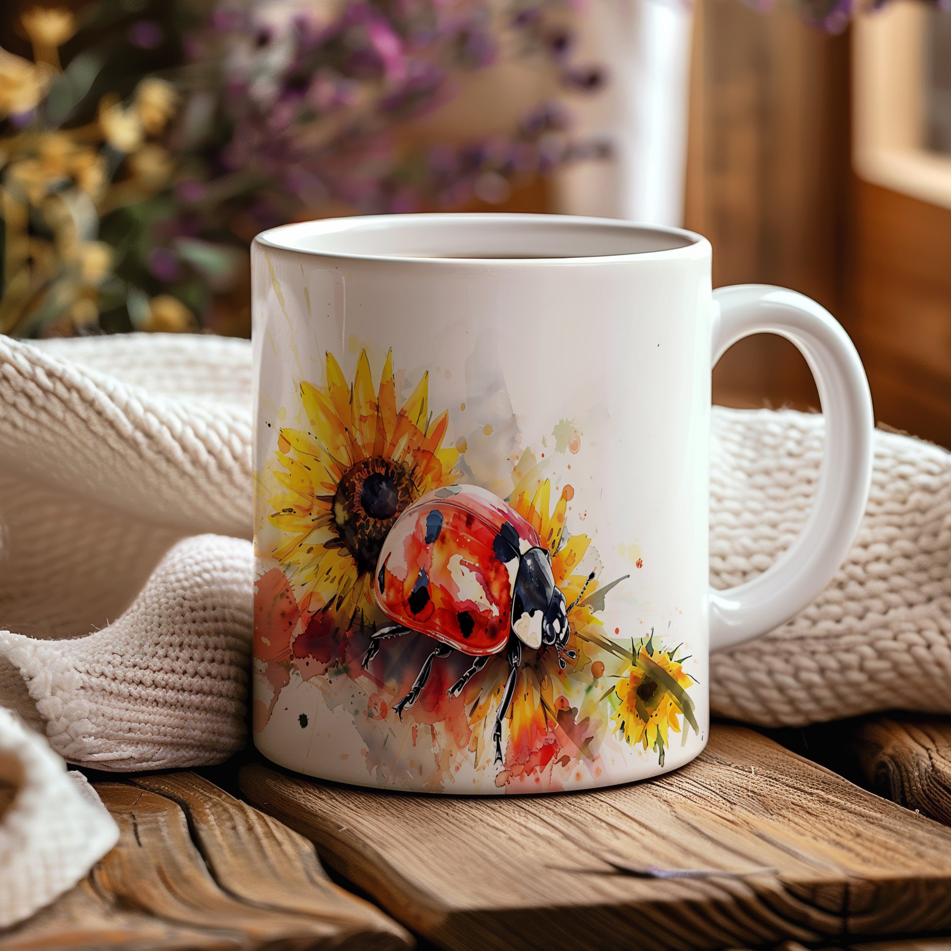 Tento hrnek s motivem berušky a slunečnic je stylovým kouskem pro každodenní používání. Je ideální pro milovníky přírody a skvělým dárkem pro přátele nebo rodinu. Materiál: keramika. Objem: 330 ml. Vhodné do myčky i mikrovlnky. Díky svému designu přináší radost do každého doušku.
