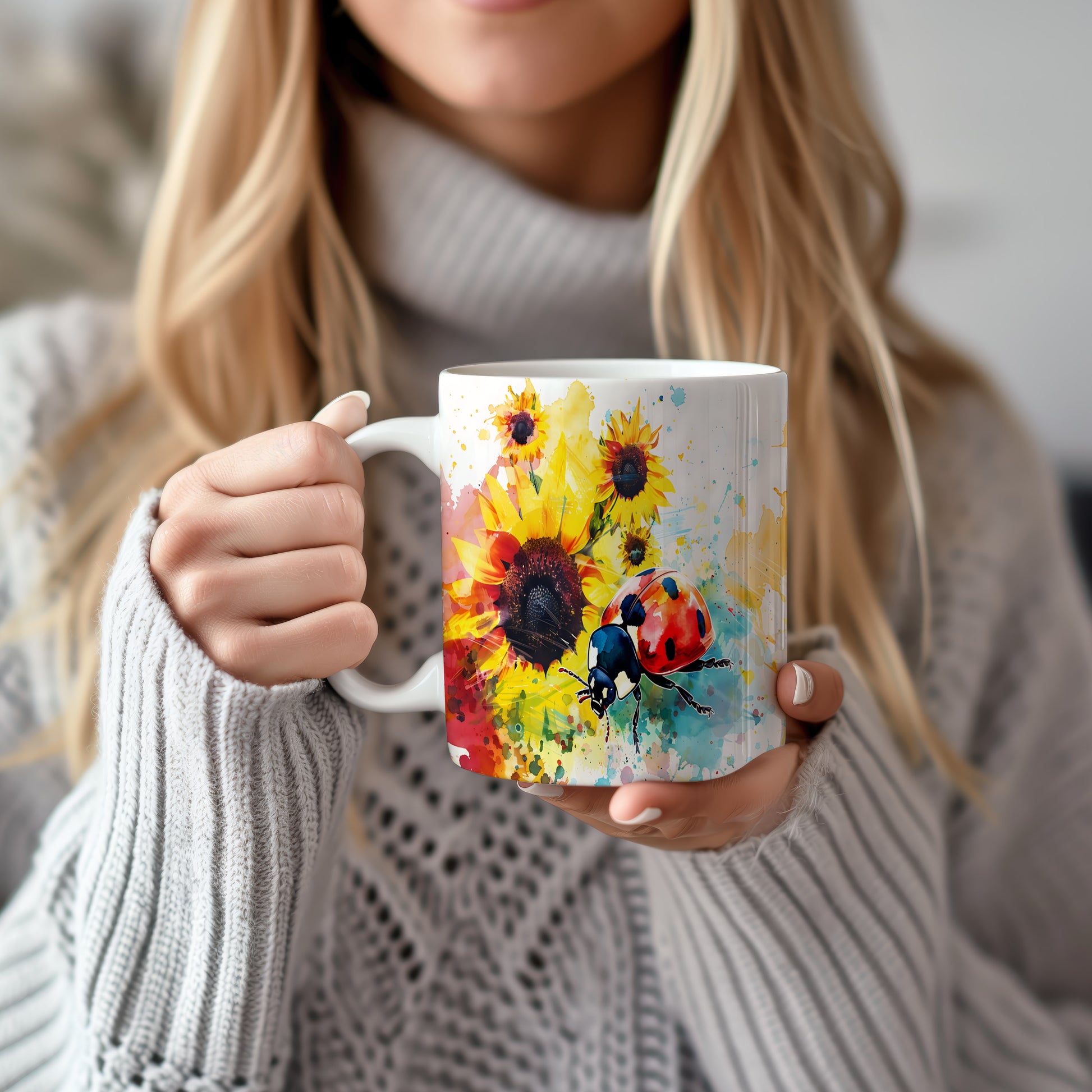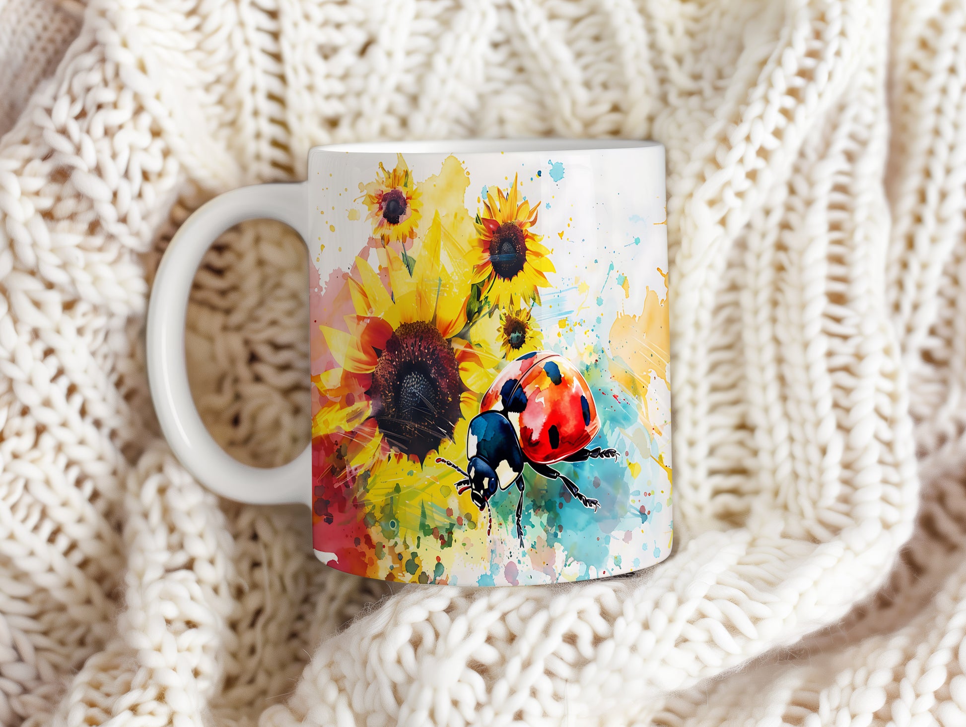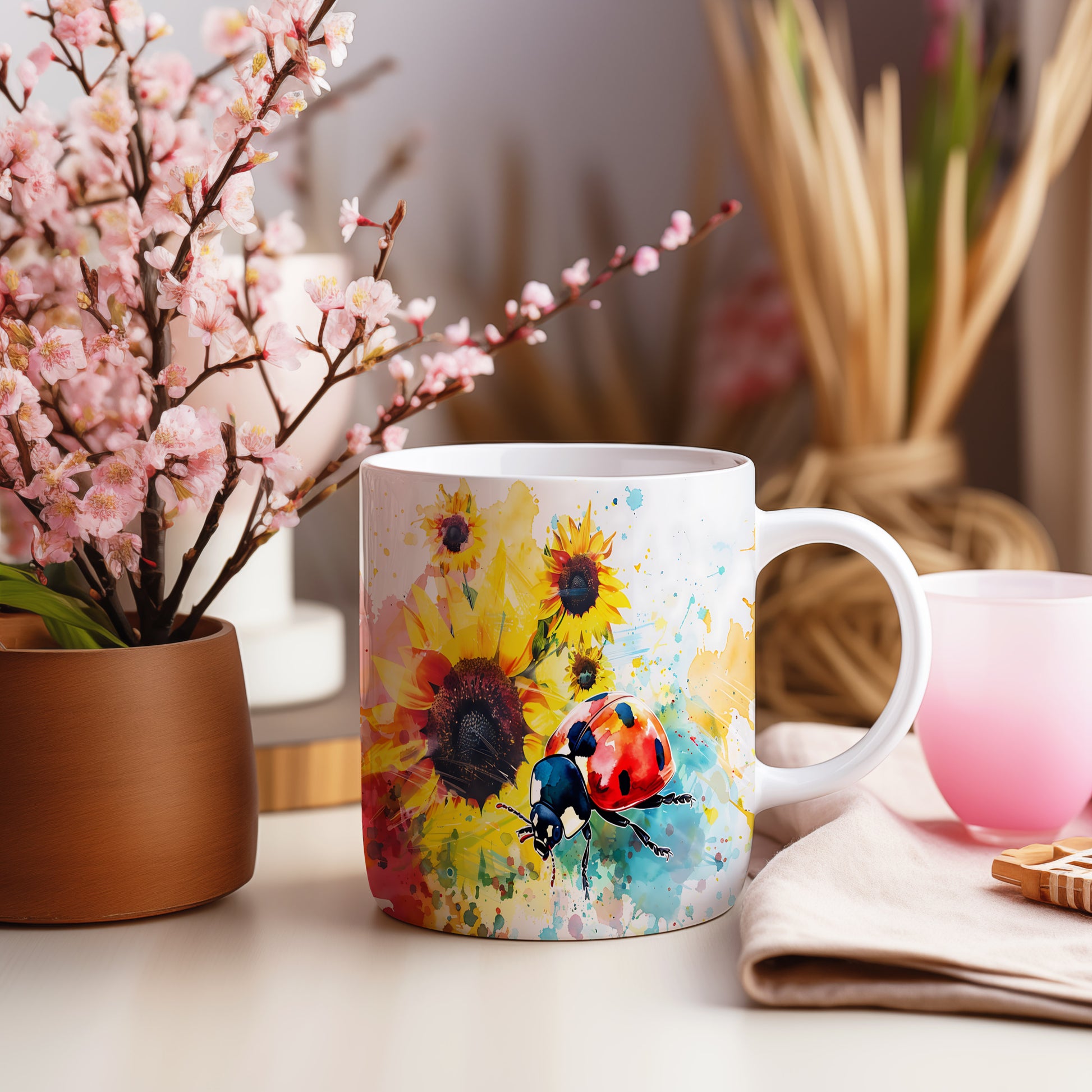 Tento hrnek zdobí krásná beruška na pozadí slunečnic. Je ideální pro milovníky přírody a skvělý tip na dárek pro přátele nebo rodinu. Materiál: keramika. Objem: 330 ml. Vhodné do myčky i mikrovlnky. Používání tohoto hrnku přináší radost a oživí každodenní pití.