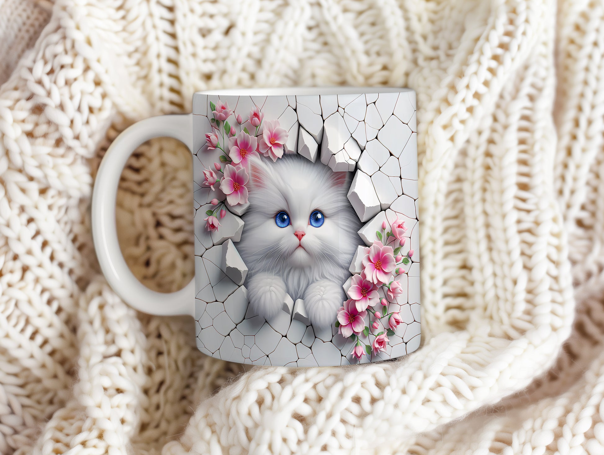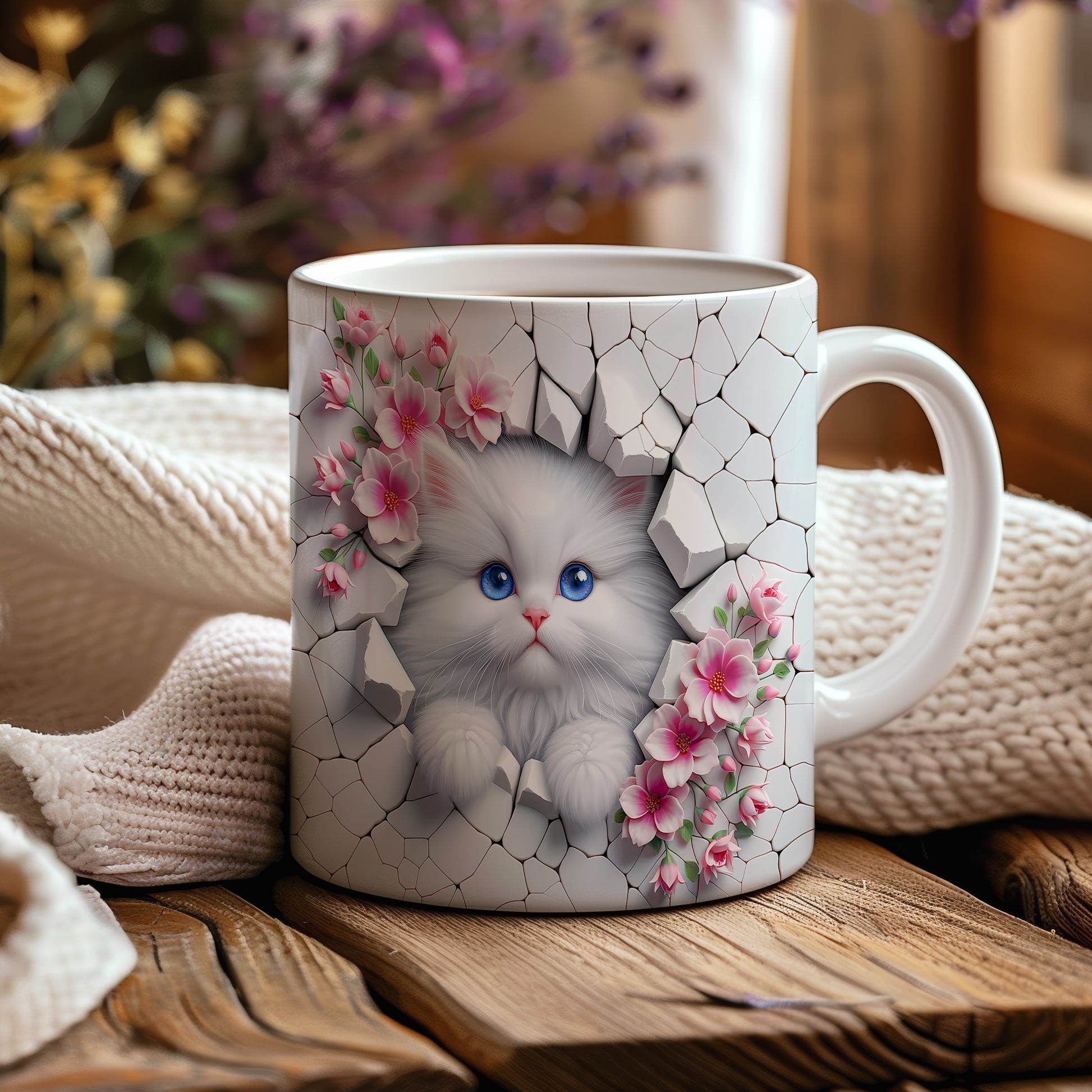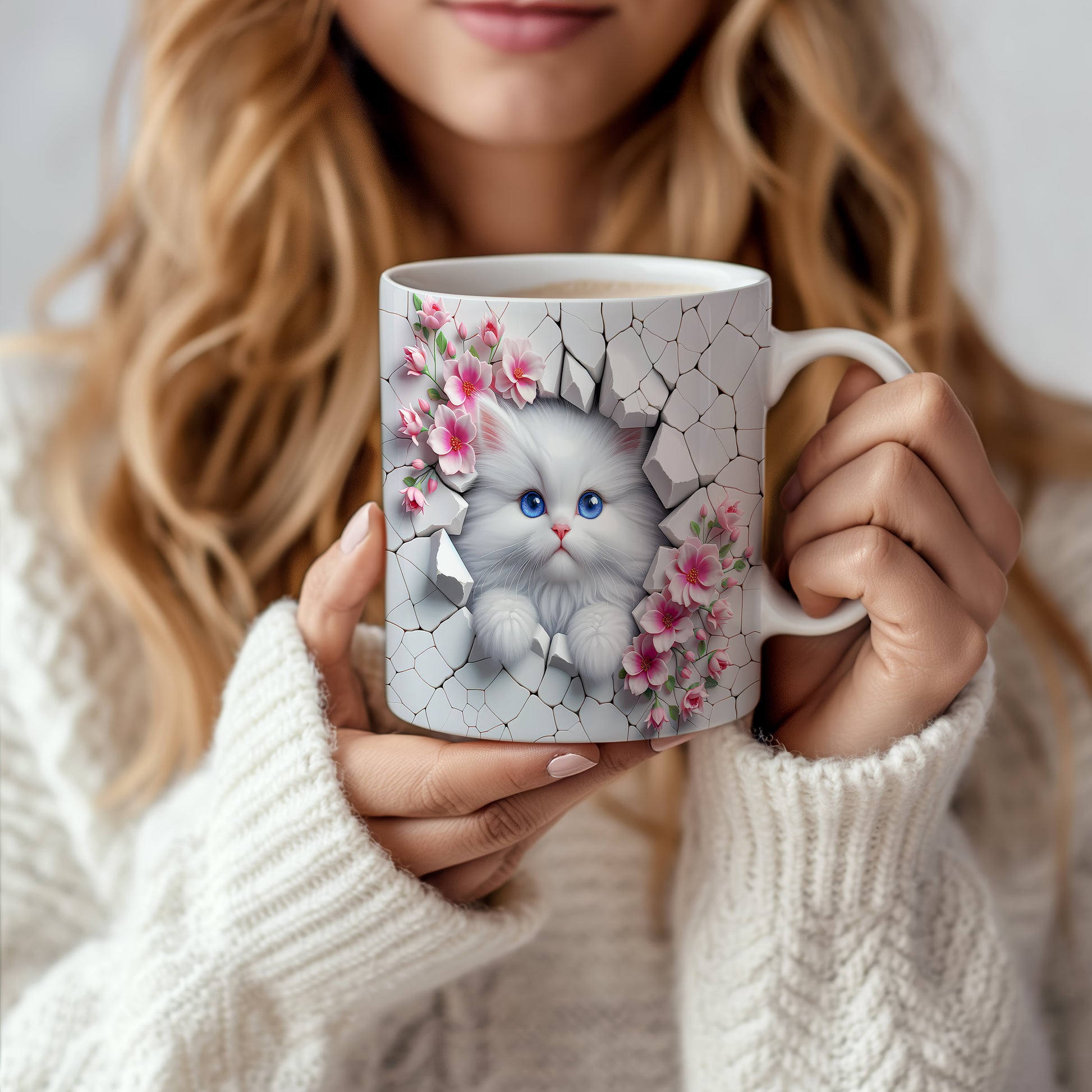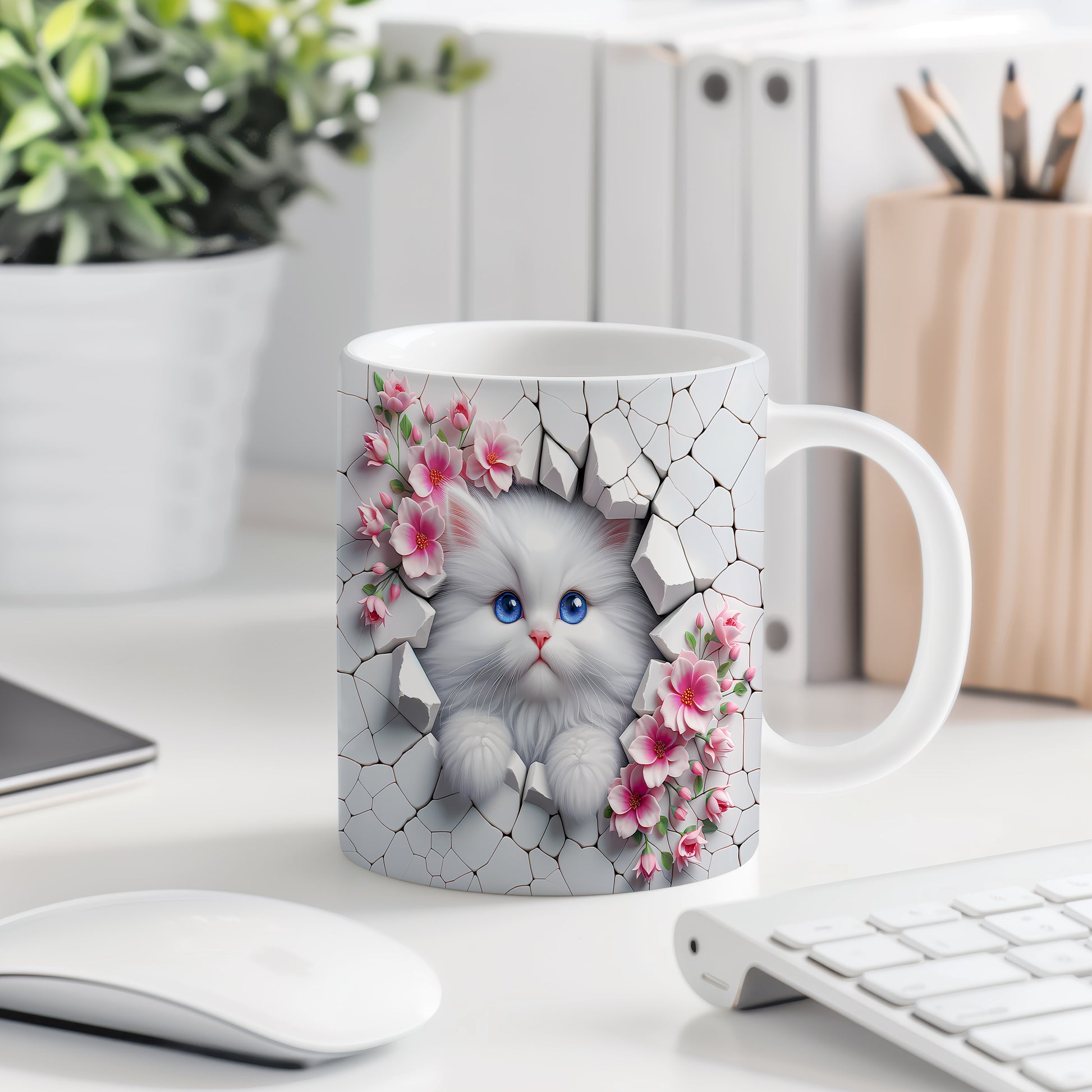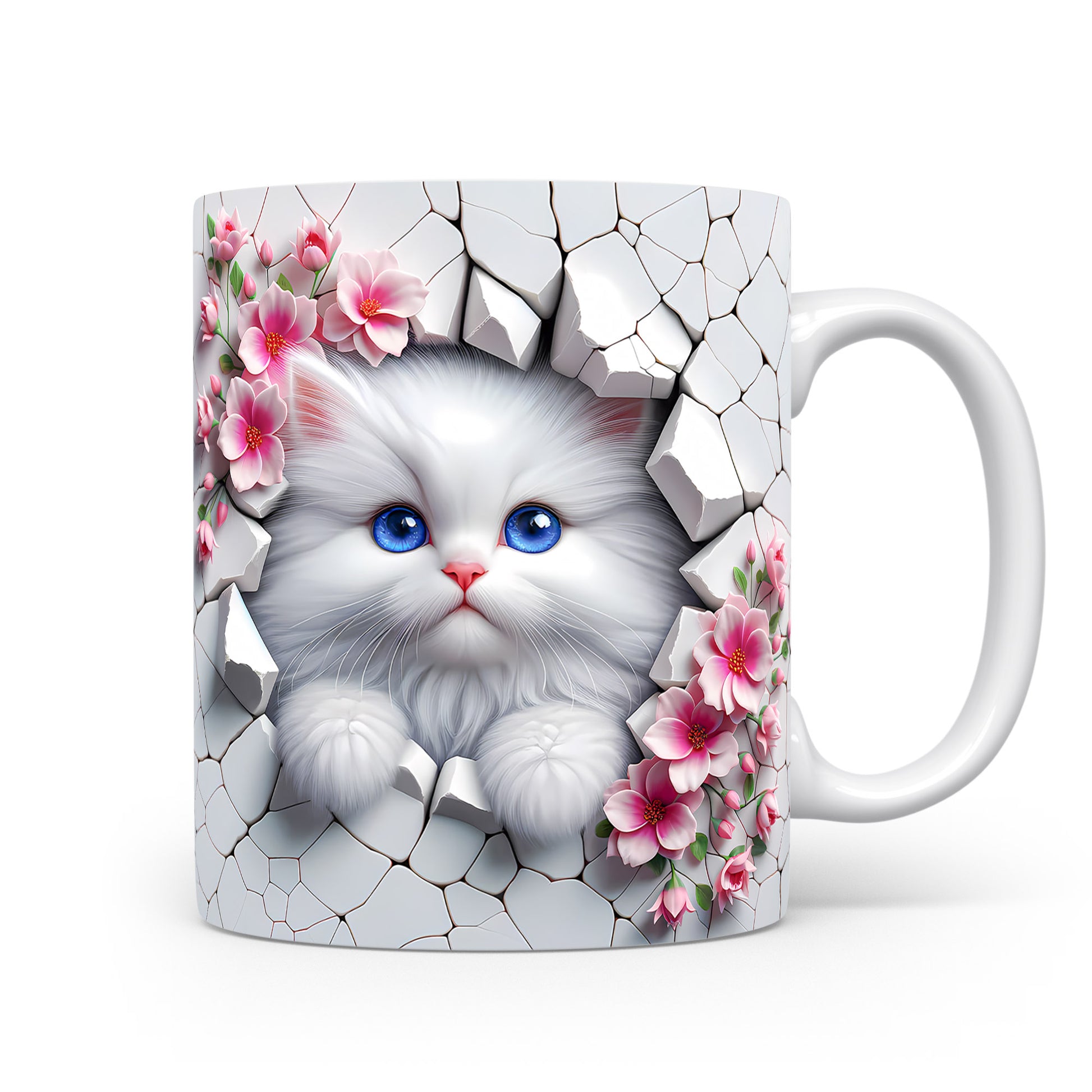 Tento keramický hrnek s motivem bílé kočky a květin je skvělým doplňkem pro každého milovníka koček. Je ideální jako dárek pro přátele nebo rodinu, kteří ocení originální design. Materiál: keramika. Objem: 330 ml. Vhodné do myčky i mikrovlnky. Používáním tohoto hrnku si užijete nejen krásný vzhled, ale i pohodlné pití oblíbeného nápoje.