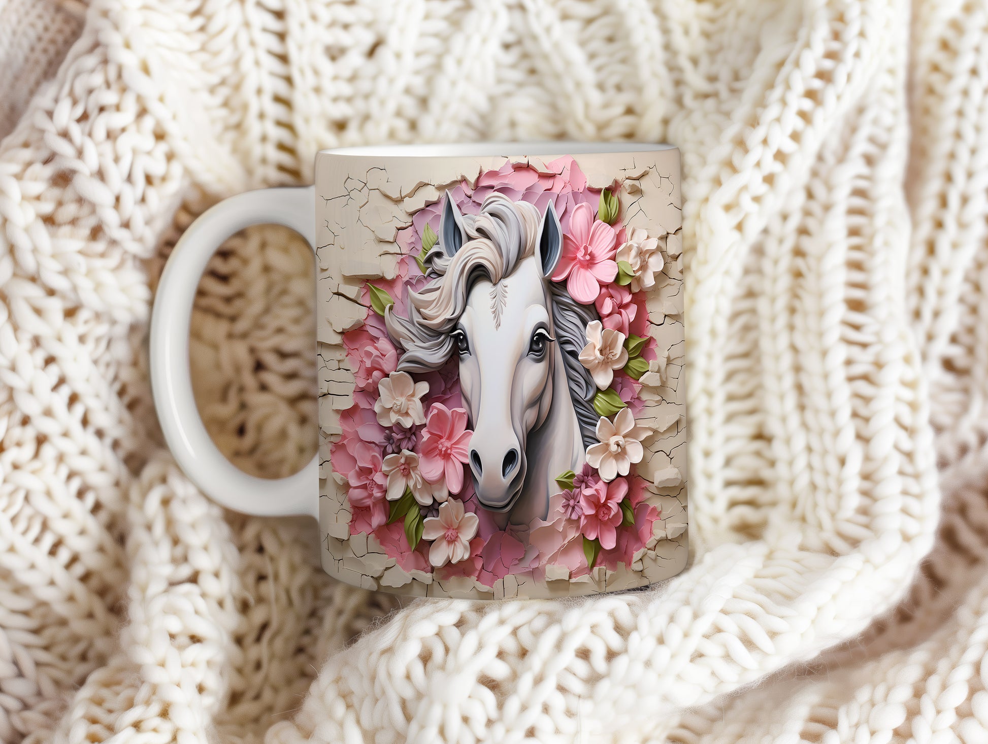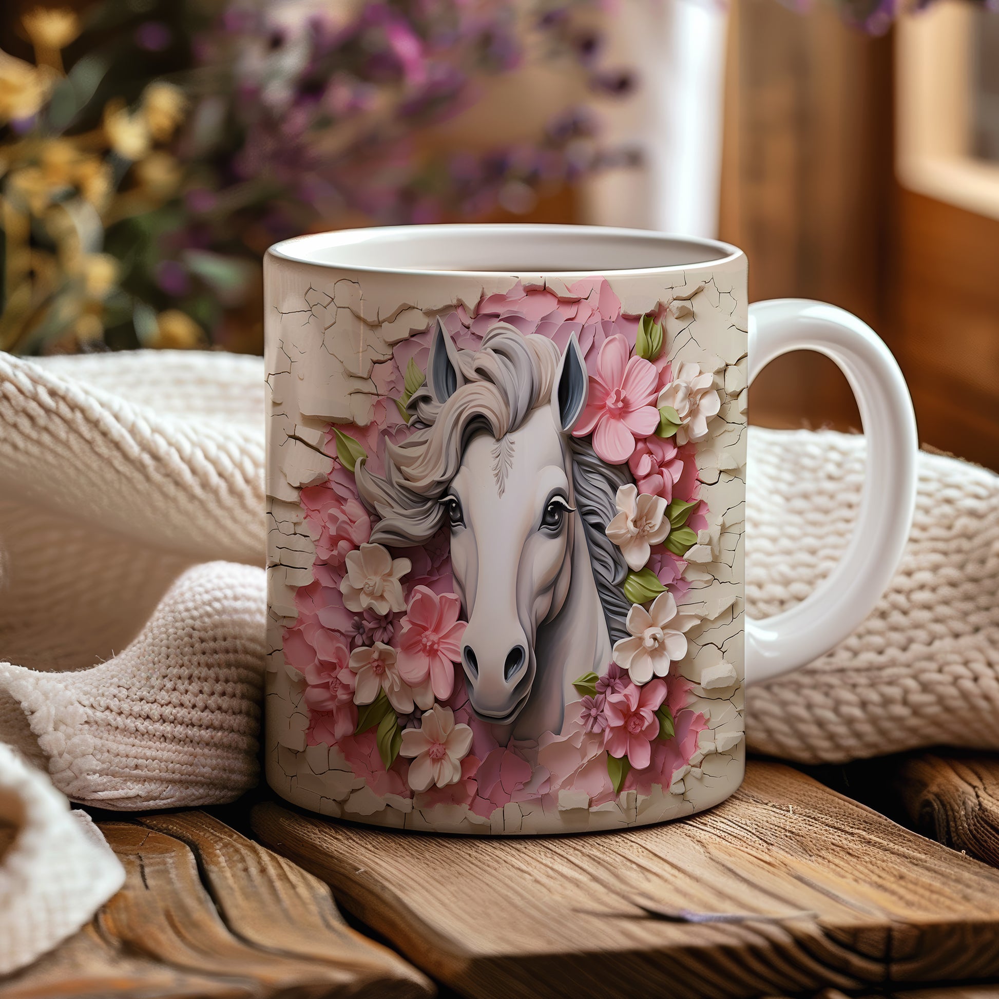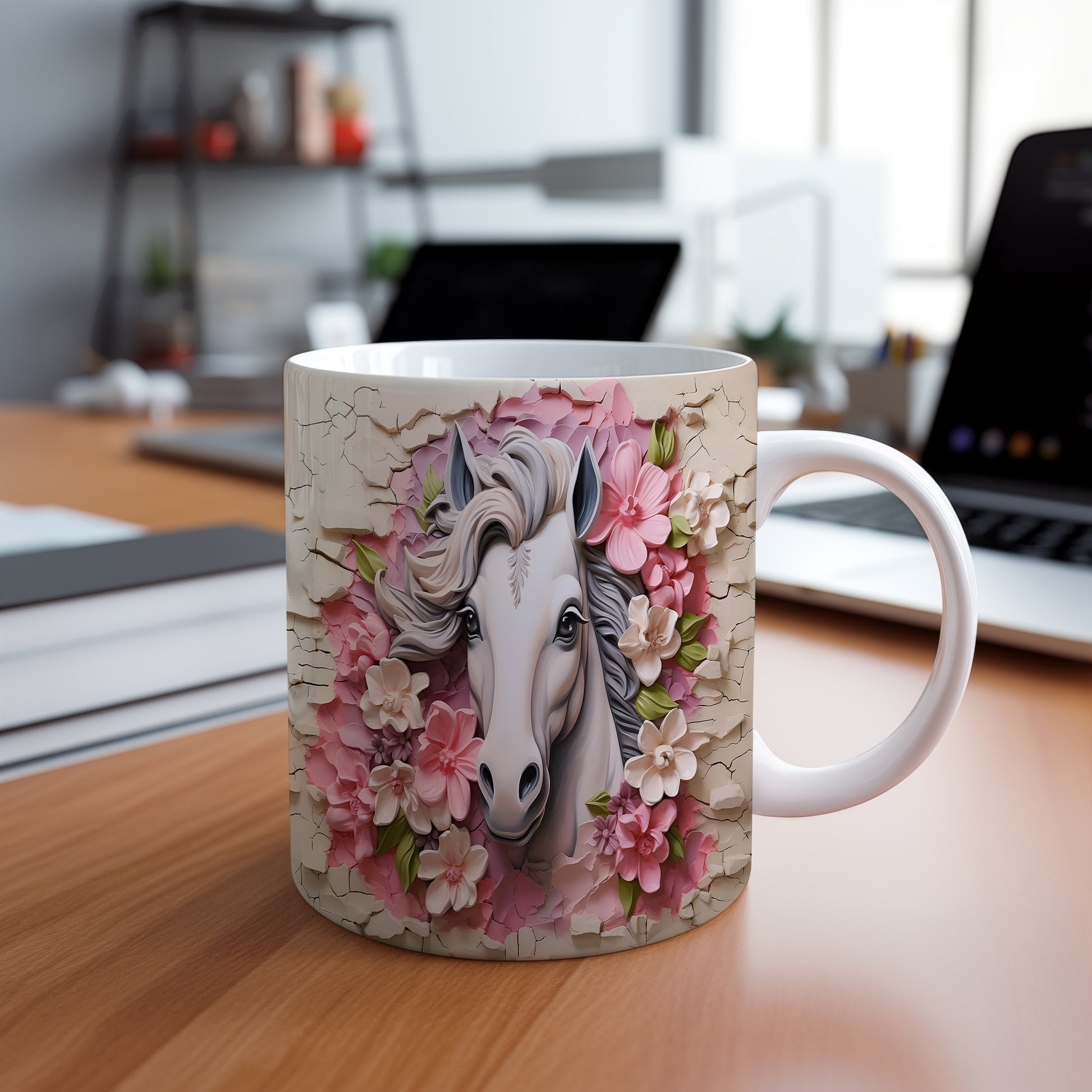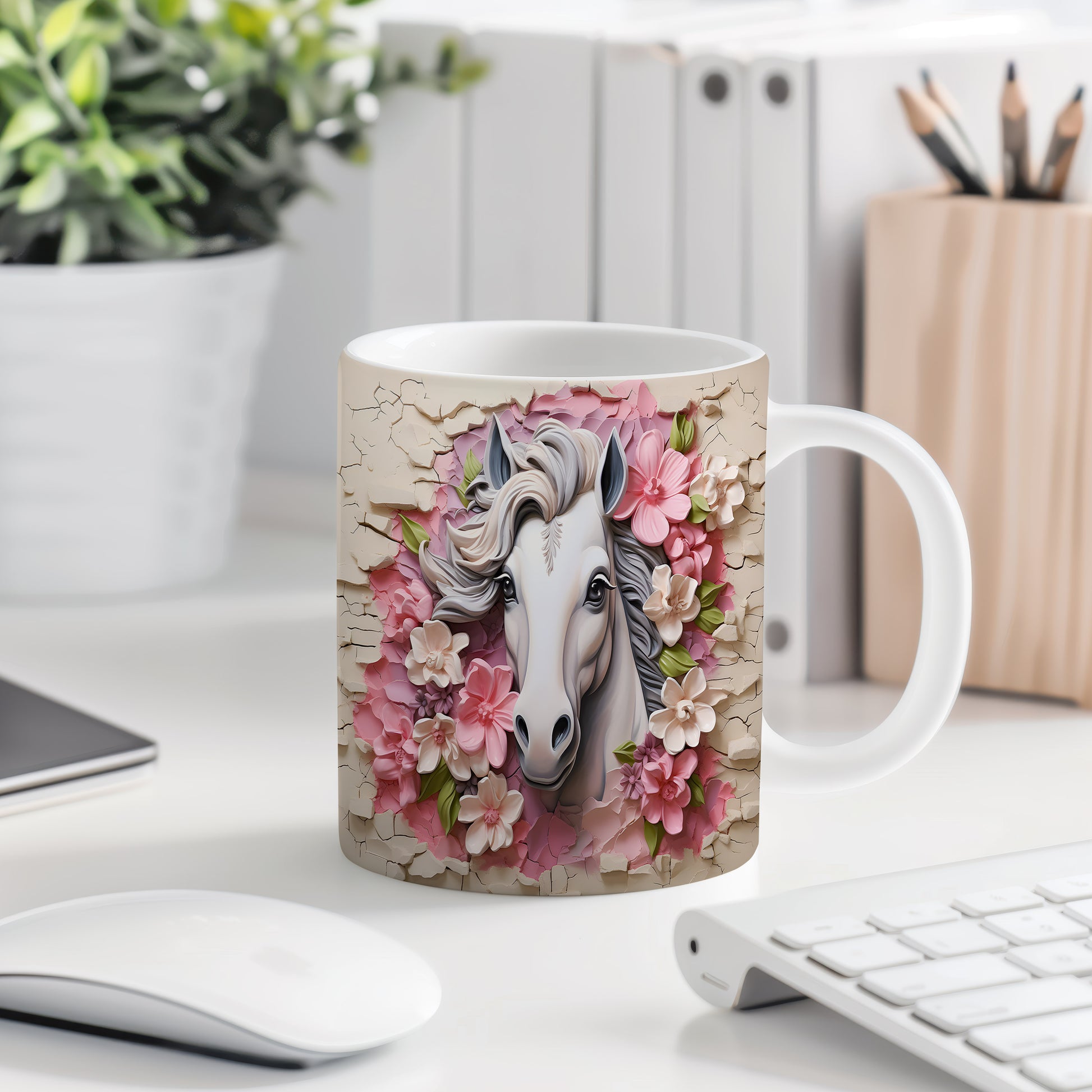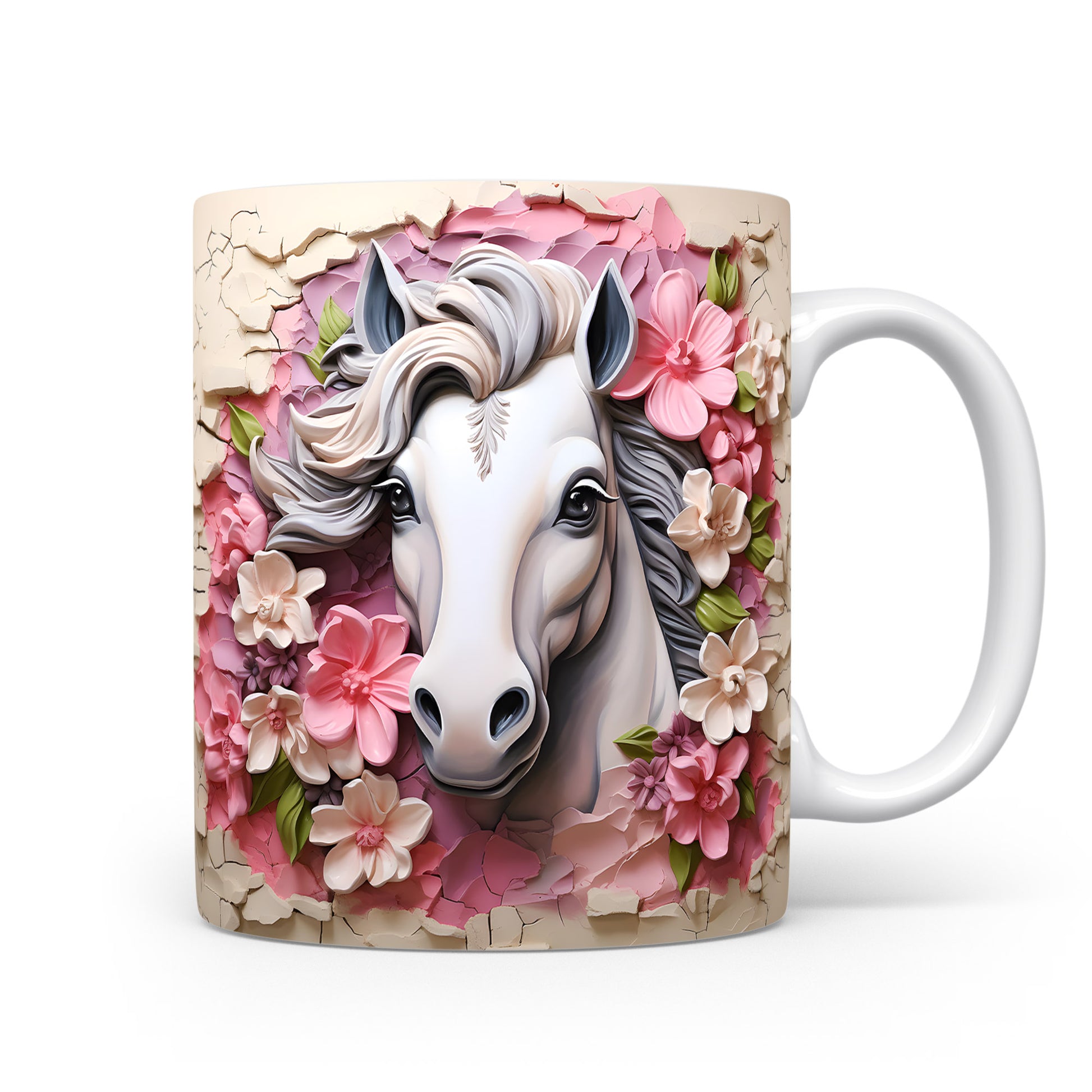Tento hrnek zobrazuje elegantního bílého koně obklopeného růžovými květinami. Je ideální pro milovníky přírody a zvířat, skvělý tip na dárek pro každého, kdo ocení krásu a jemnost. Materiál: keramika. Objem: 330 ml. Vhodné do myčky i mikrovlnky. Používáním tohoto hrnku si užijete nejen skvělý design, ale i pohodlné pití vašeho oblíbeného nápoje.