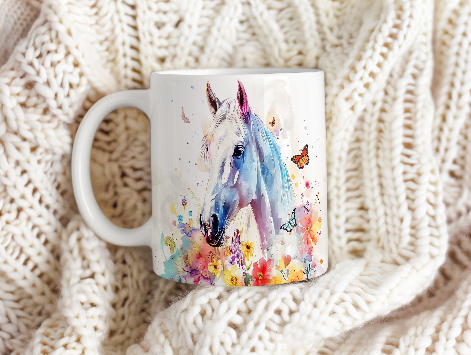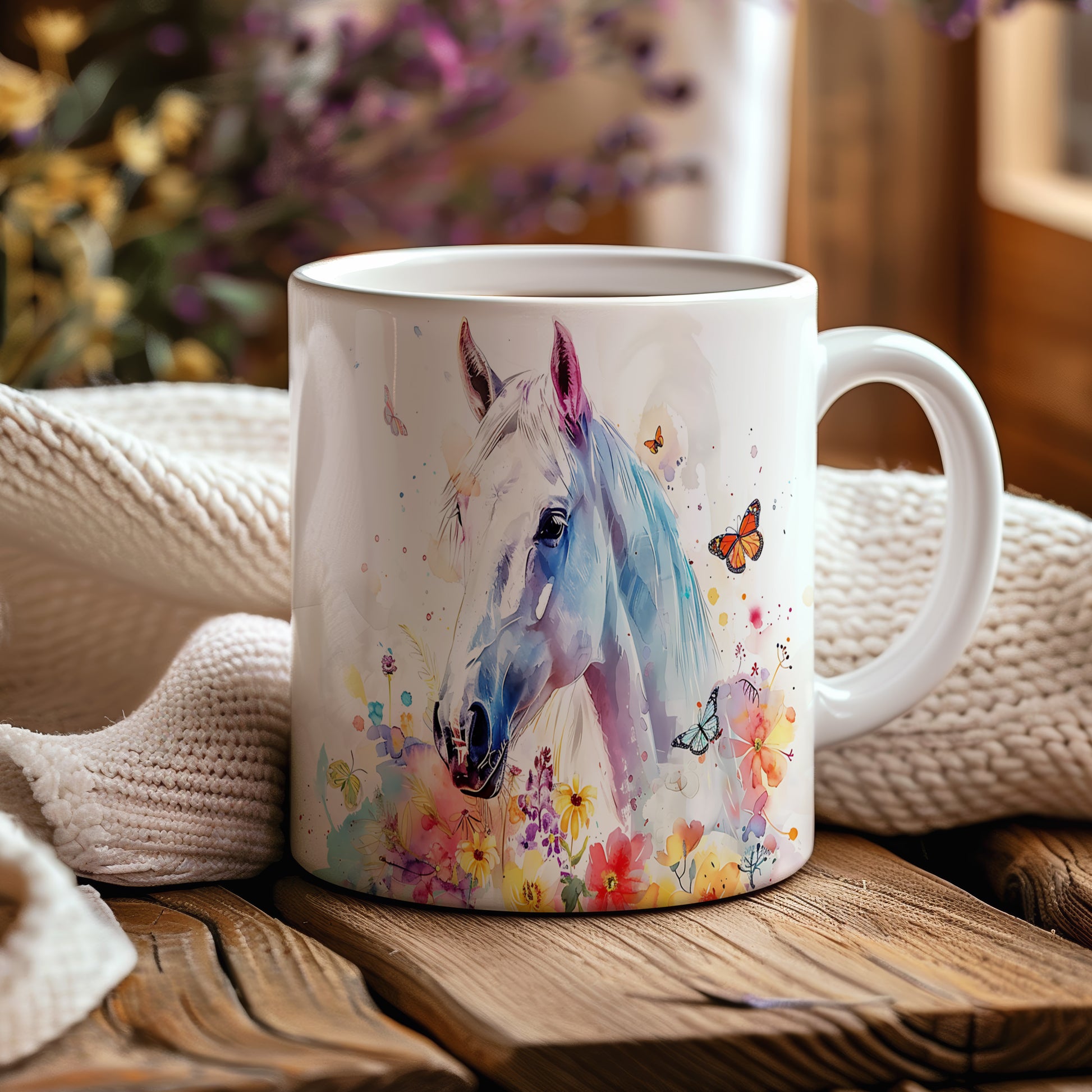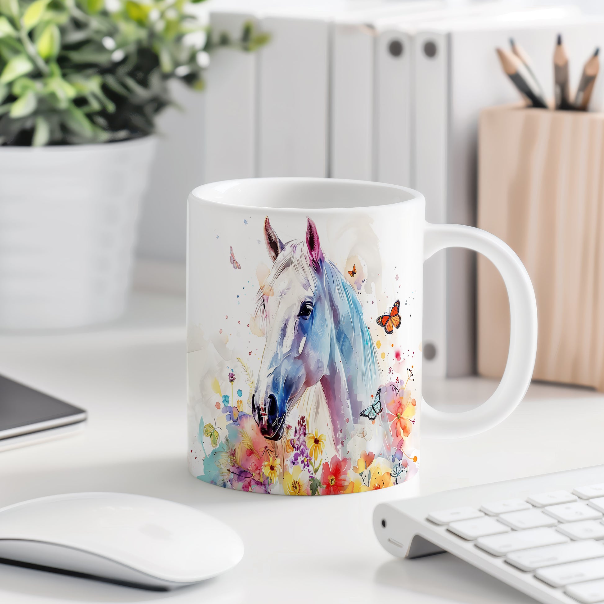 Tento hrnek s bílým koněm a květinovým motivem je skvělou volbou pro milovníky koní a přírody. Je ideální jako dárek pro přátele nebo rodinu, kteří ocení krásu přírody. Materiál: keramika. Objem: 330 ml. Vhodné do myčky i mikrovlnky. Používání tohoto hrnku přináší radost z každého doušku.