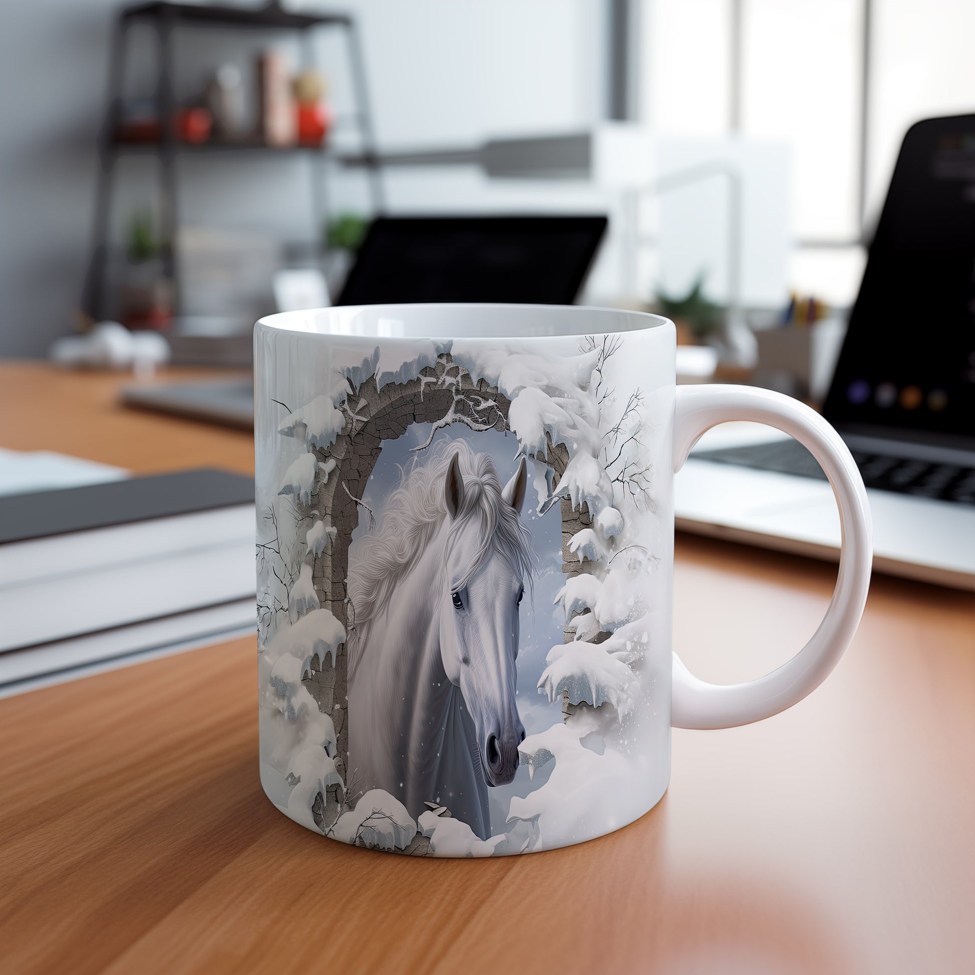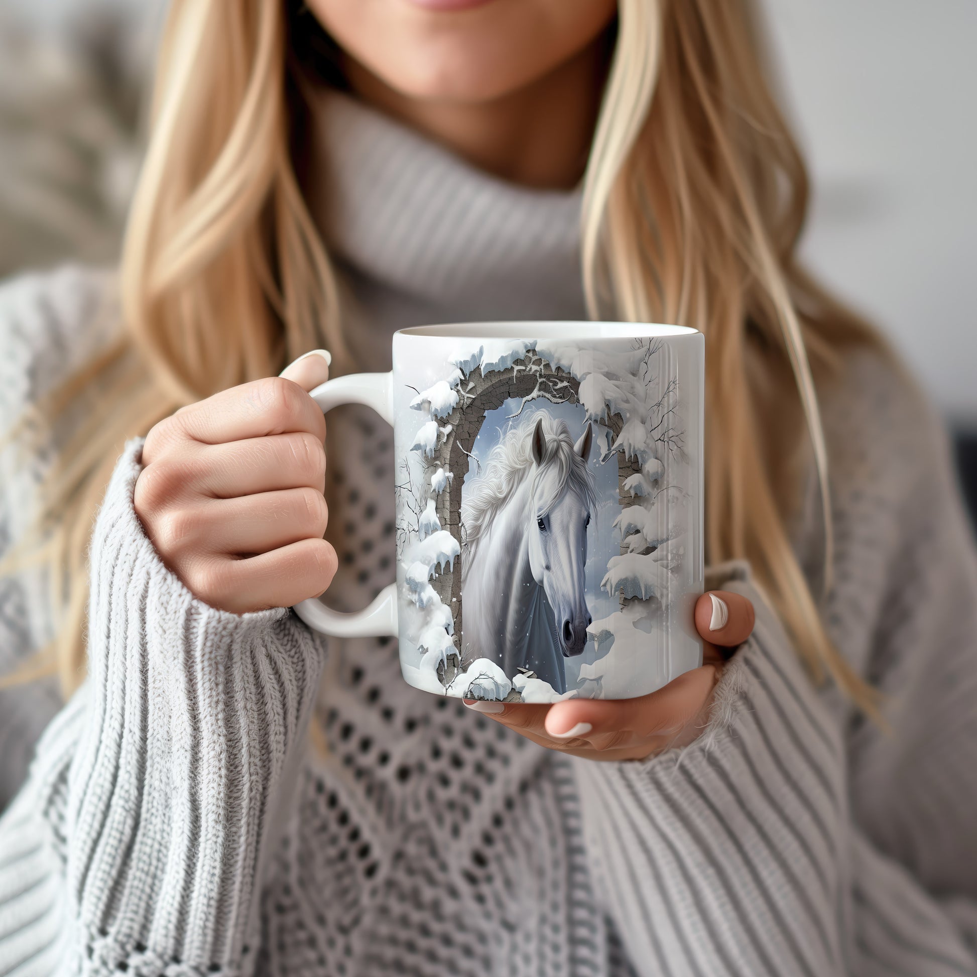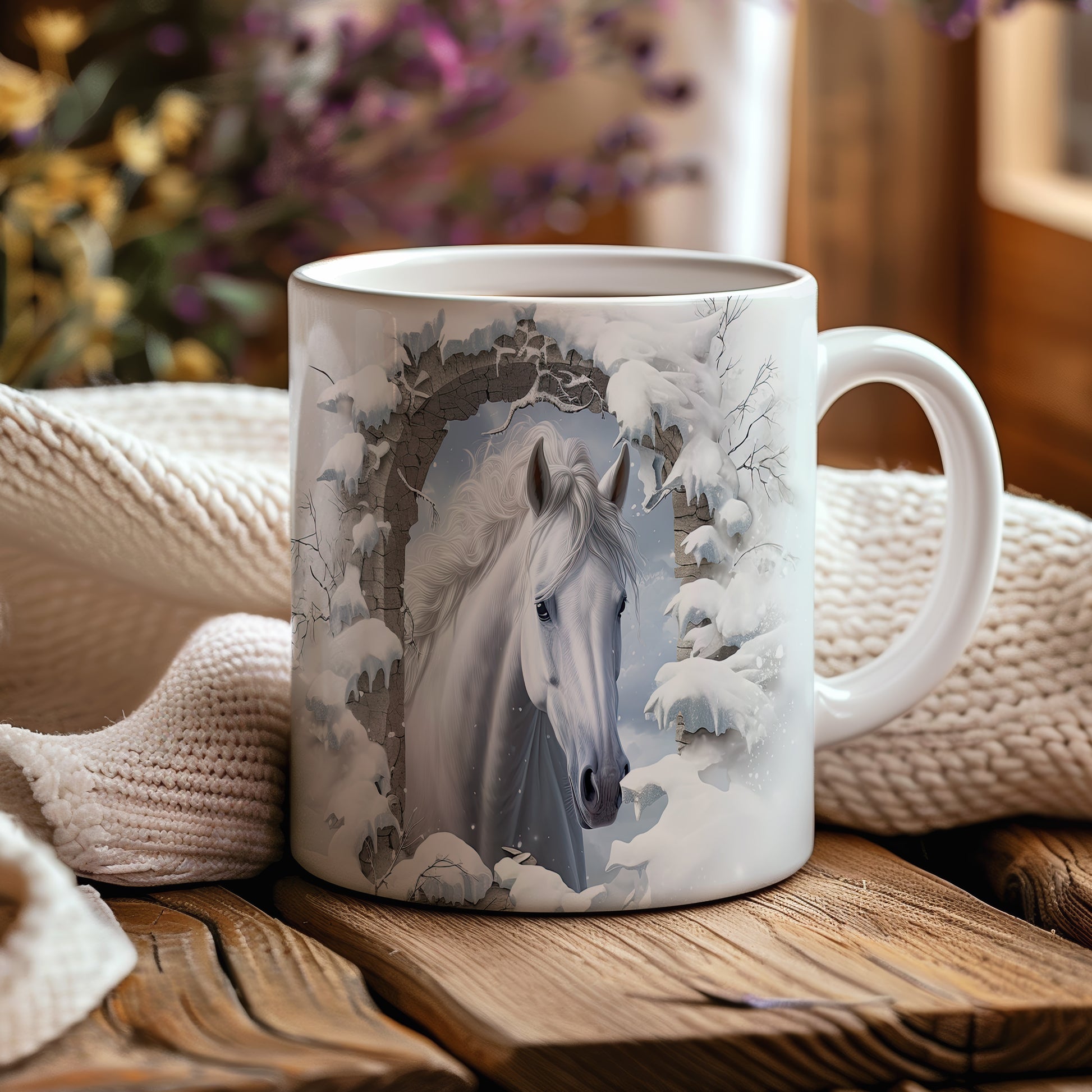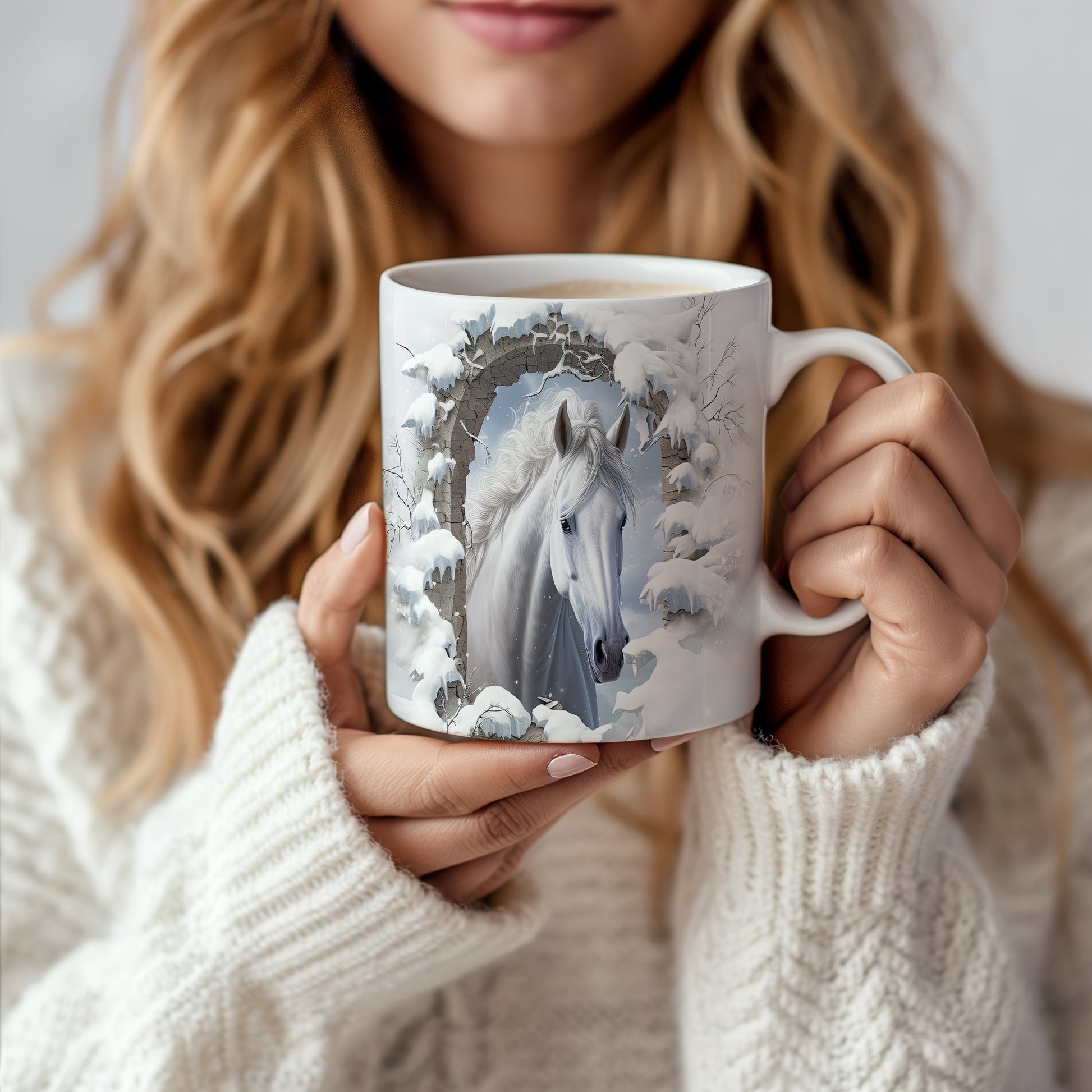 Hrnek s bílým koněm v zimní scéně přináší kouzlo zimní krajiny. Tento elegantní kousek je skvělým dárkem pro milovníky koní a přírody. Materiál: keramika. Objem: 330 ml. Vhodné do myčky i mikrovlnky. Užijte si svůj oblíbený nápoj s tímto stylovým hrnkem, který dodá každému dni jedinečnou atmosféru.