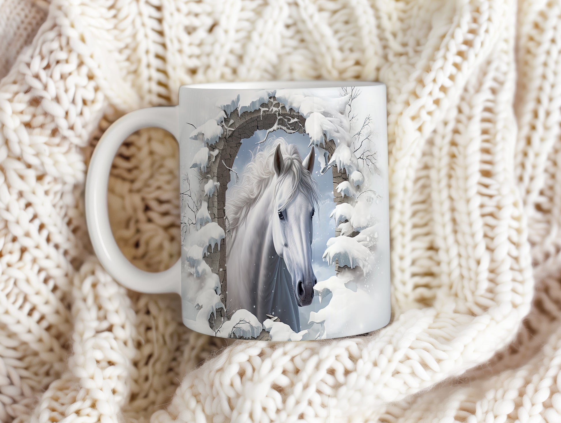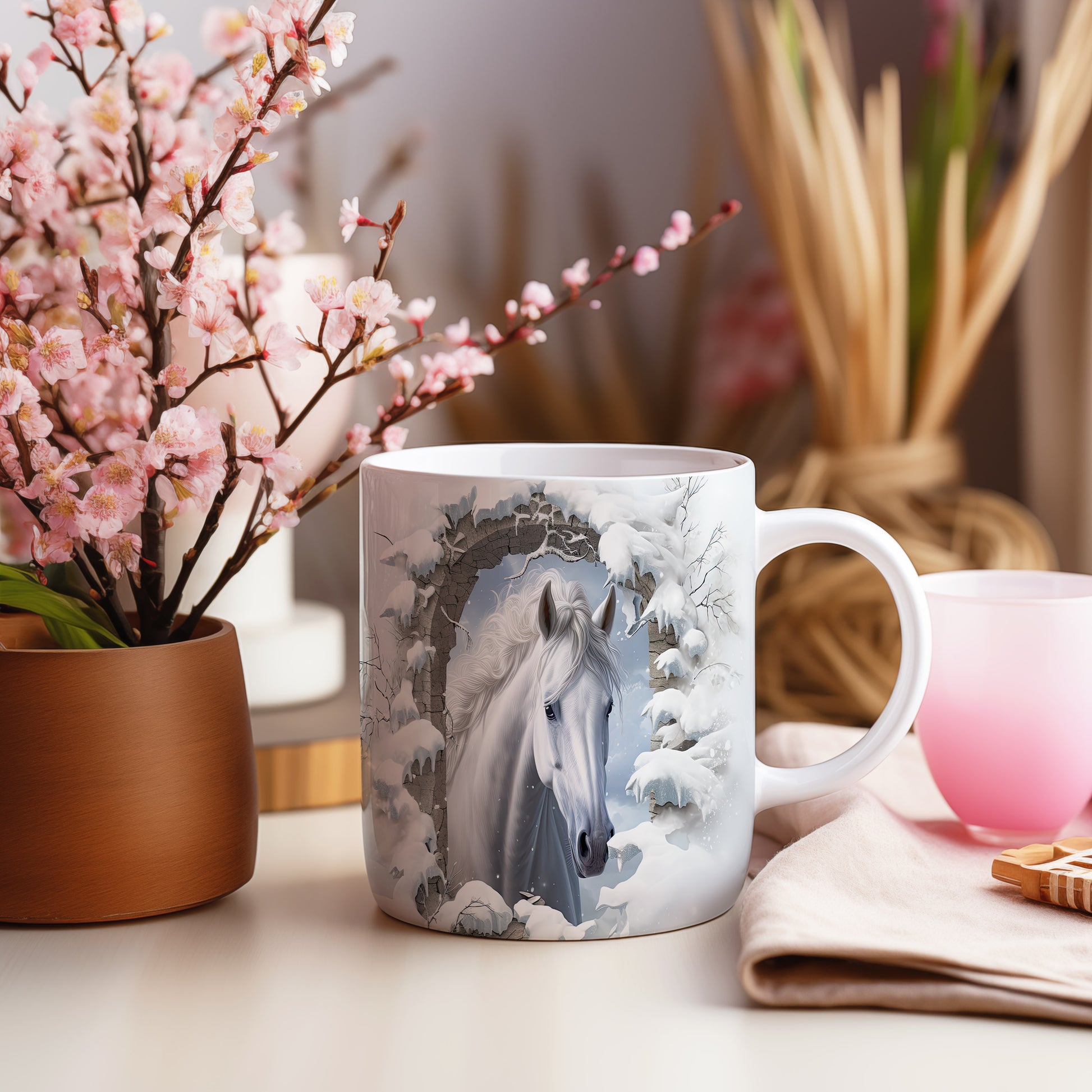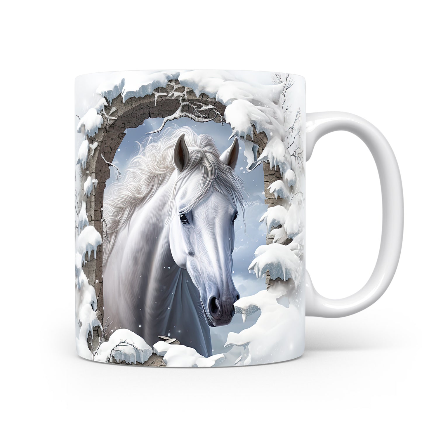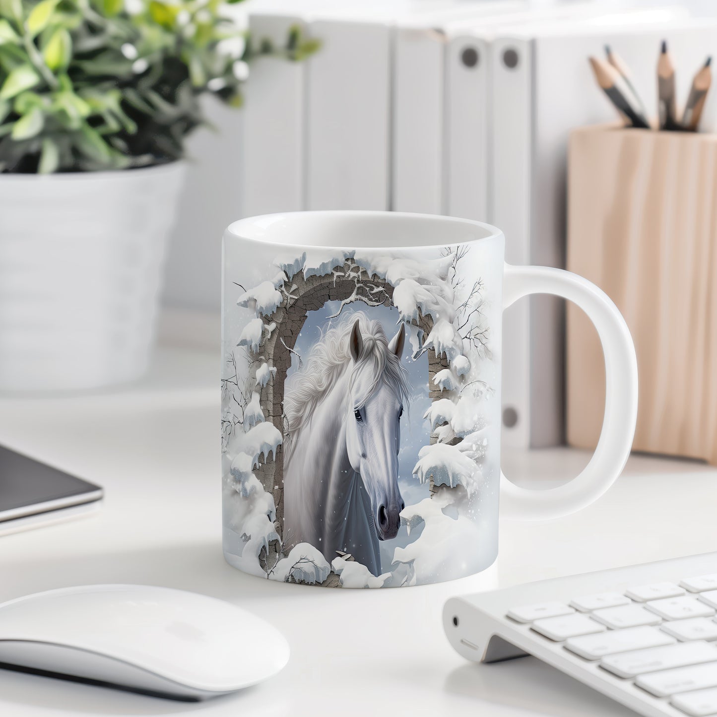 Hrnek s bílým koněm v zimní scéně přináší kouzlo zimní krajiny. Tento elegantní kousek je skvělým dárkem pro milovníky koní a přírody. Materiál: keramika. Objem: 330 ml. Vhodné do myčky i mikrovlnky. Užijte si svůj oblíbený nápoj s tímto stylovým hrnkem, který dodá každému dni jedinečnou atmosféru.