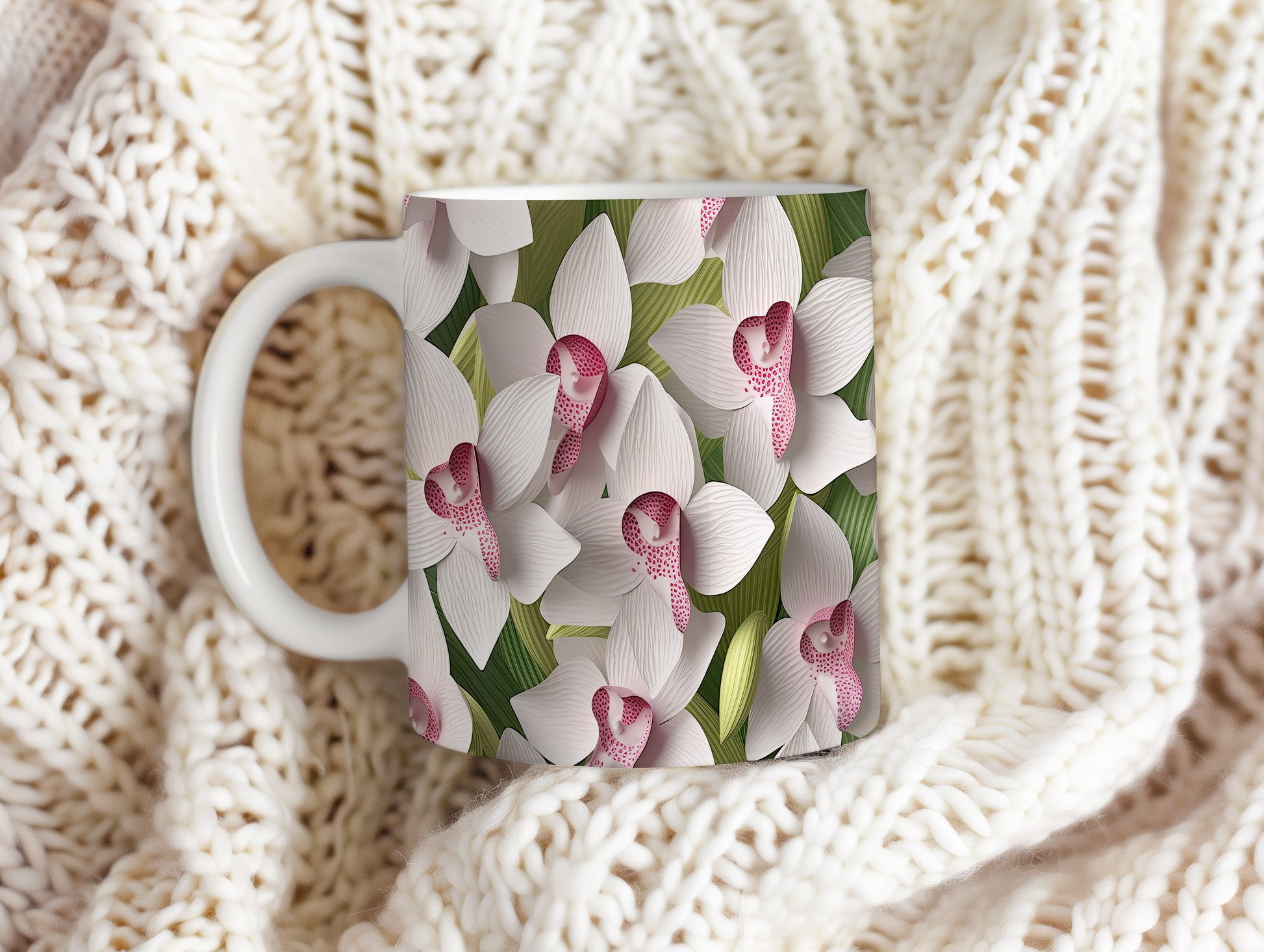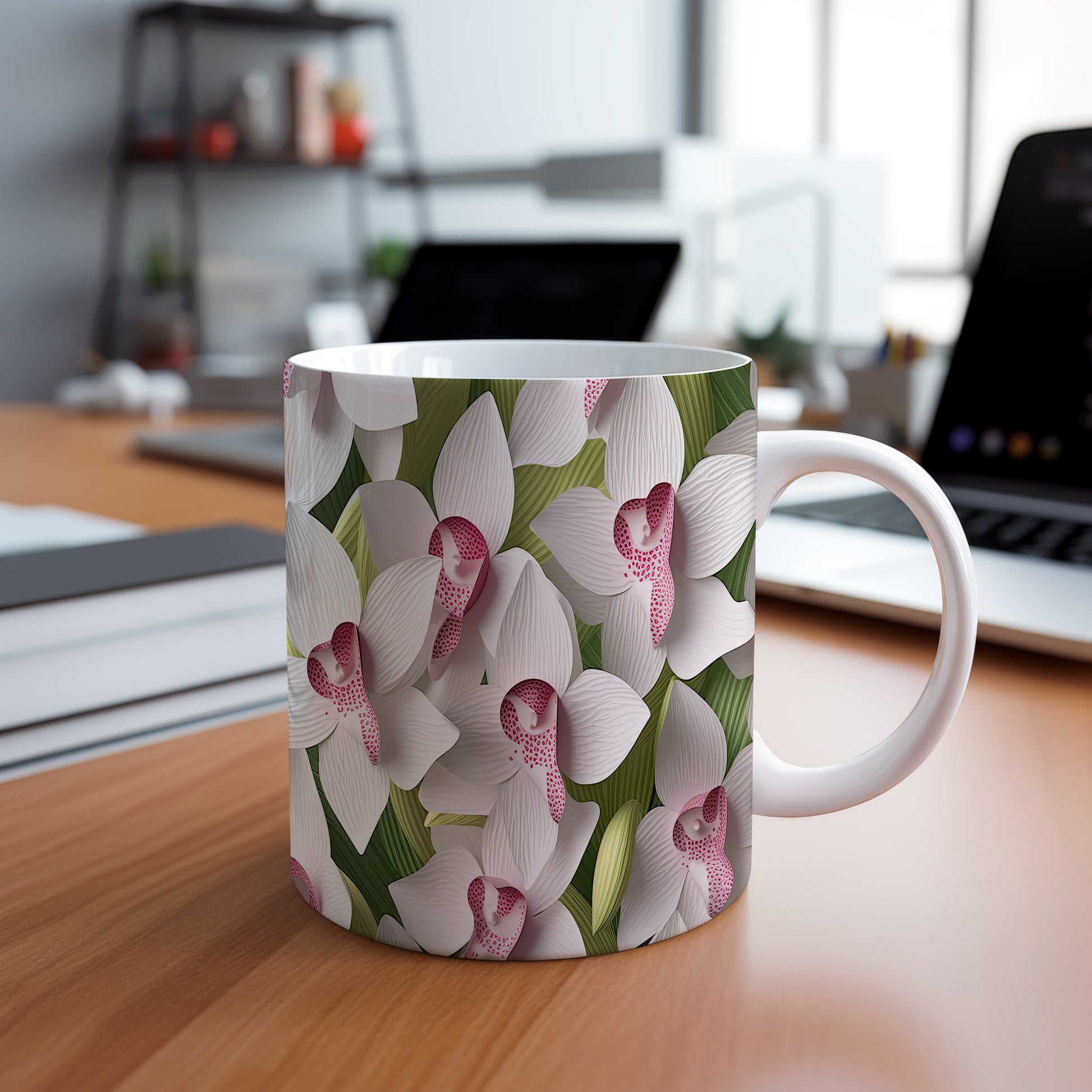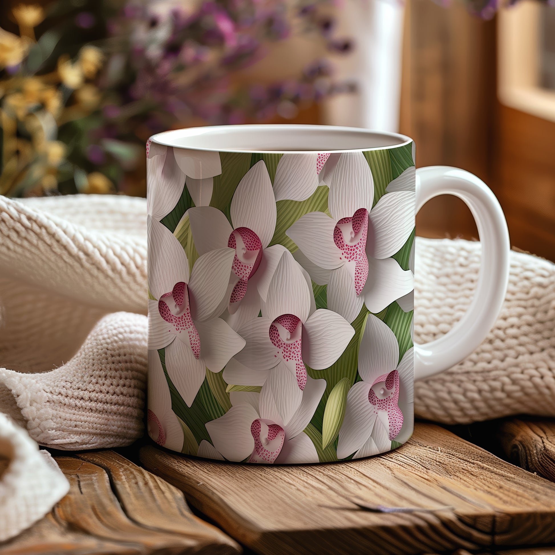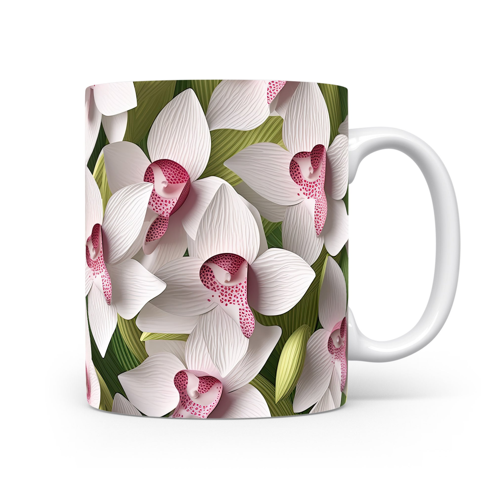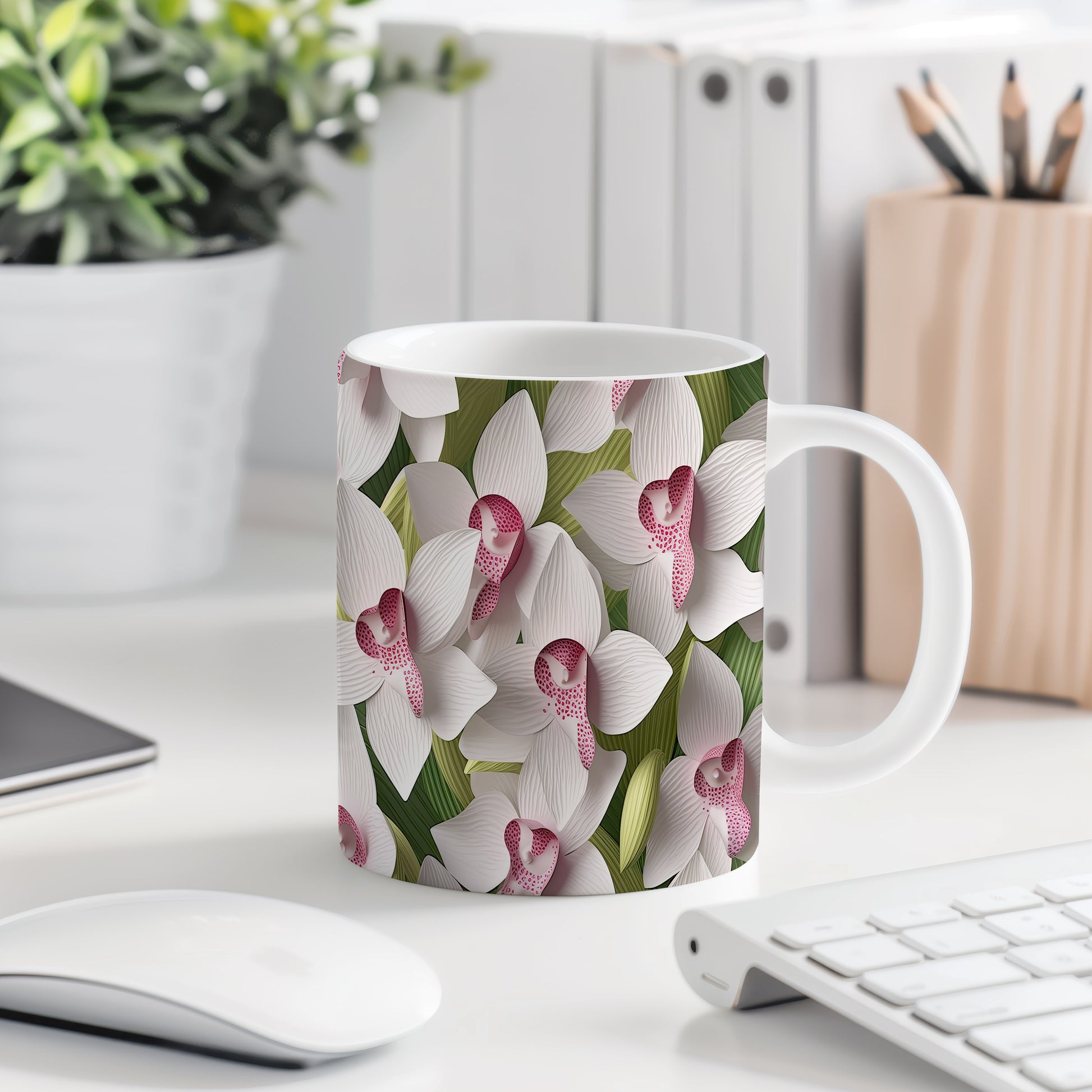 Elegantní hrnek s krásným vzorem bílých orchidejí. Tento stylový kousek je ideální pro milovníky květin a přírody, skvěle se hodí jako dárek pro přátele nebo rodinu. Materiál: keramika. Objem: 330 ml. Vhodné do myčky i mikrovlnky. Užijte si kávu nebo čaj v tomto jedinečném hrnku, který přinese do vašeho dne kousek přírody.