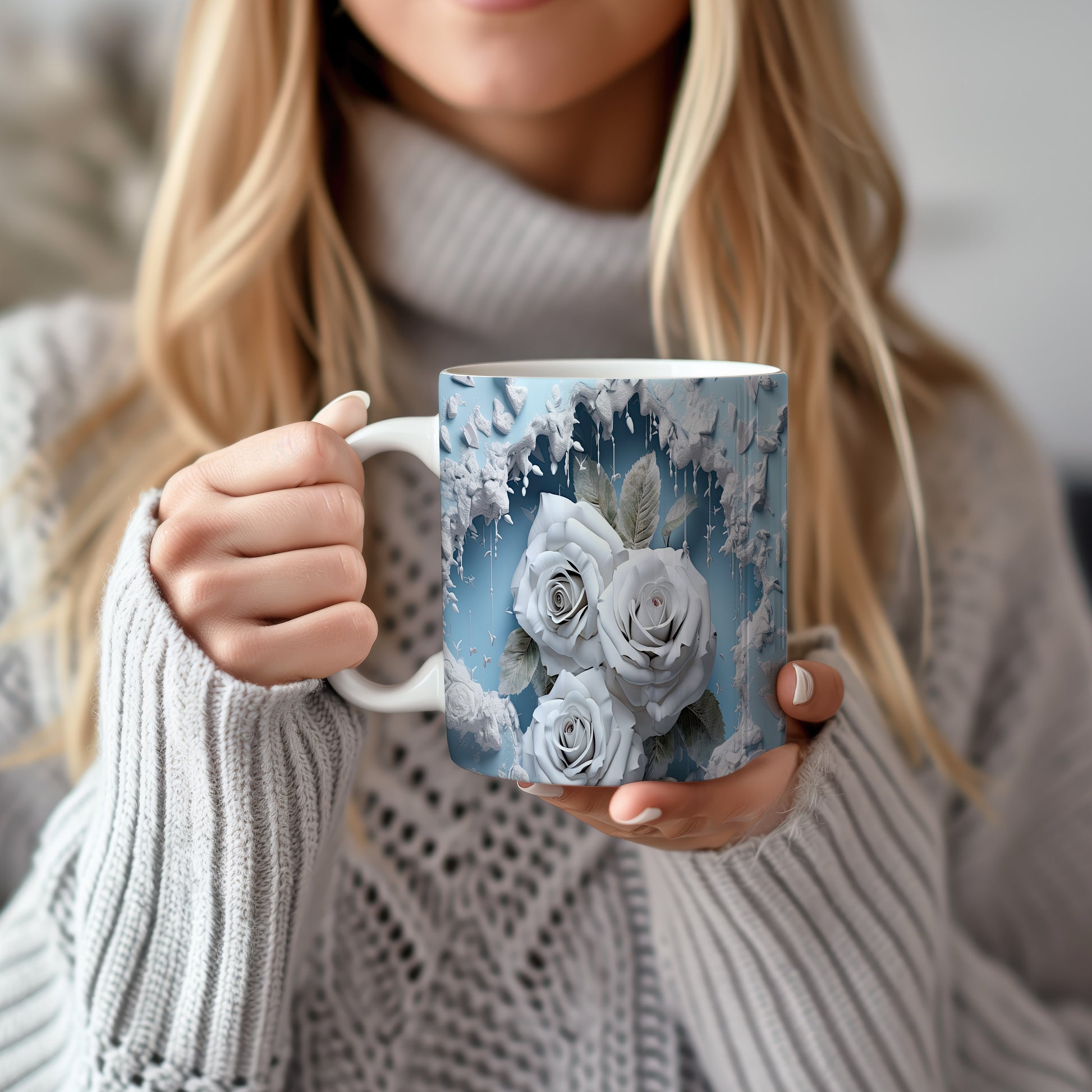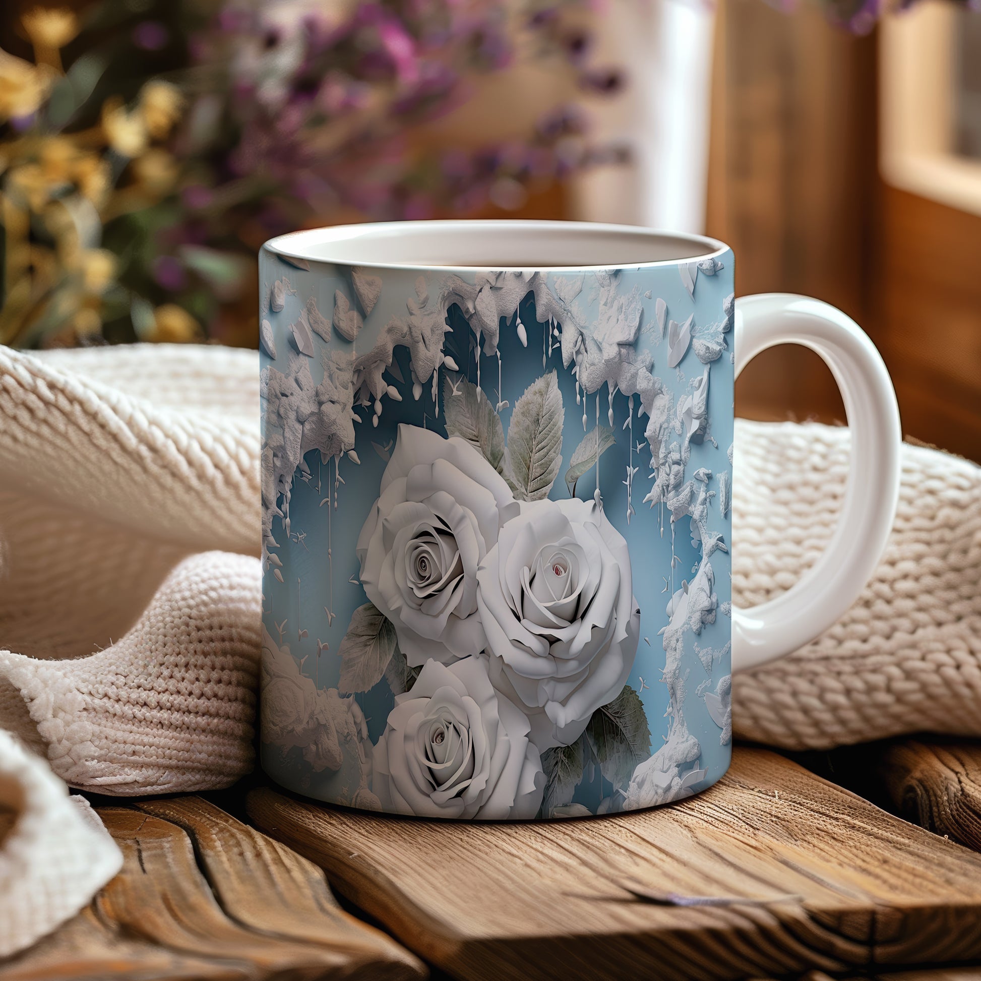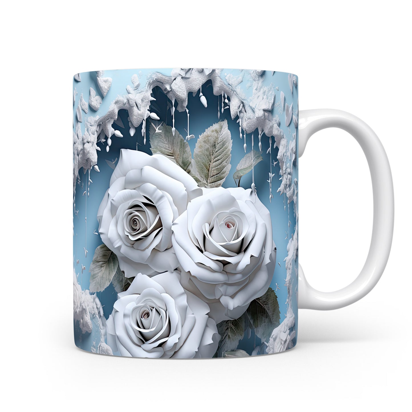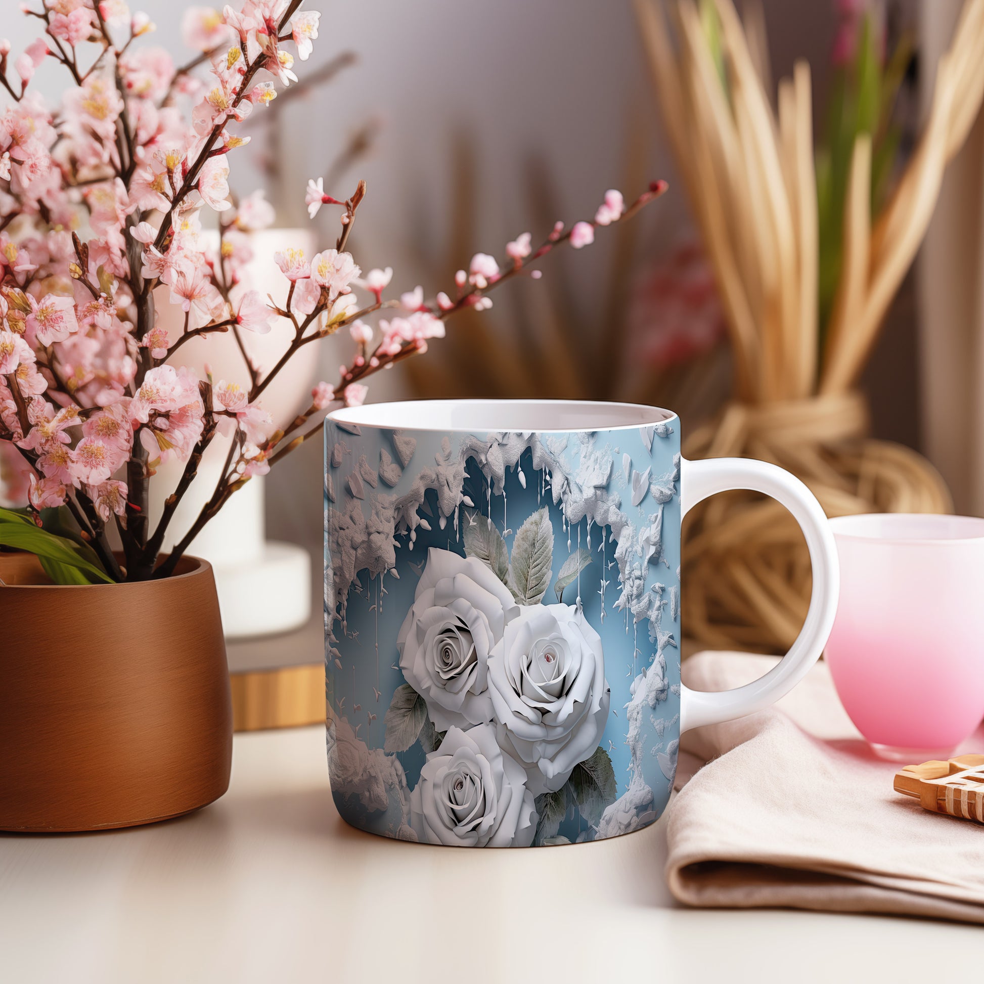 Tento elegantní hrnek zdobí tři bílé růže na jemně modrém pozadí, které přináší nádech stylu a elegance. Je ideální pro milovníky květin a krásného designu, skvělý tip na dárek pro blízké. Materiál: keramika. Objem: 330 ml. Vhodné do myčky i mikrovlnky. Používání tohoto hrnku dodá každému doušku kávy nebo čaje jedinečný zážitek.