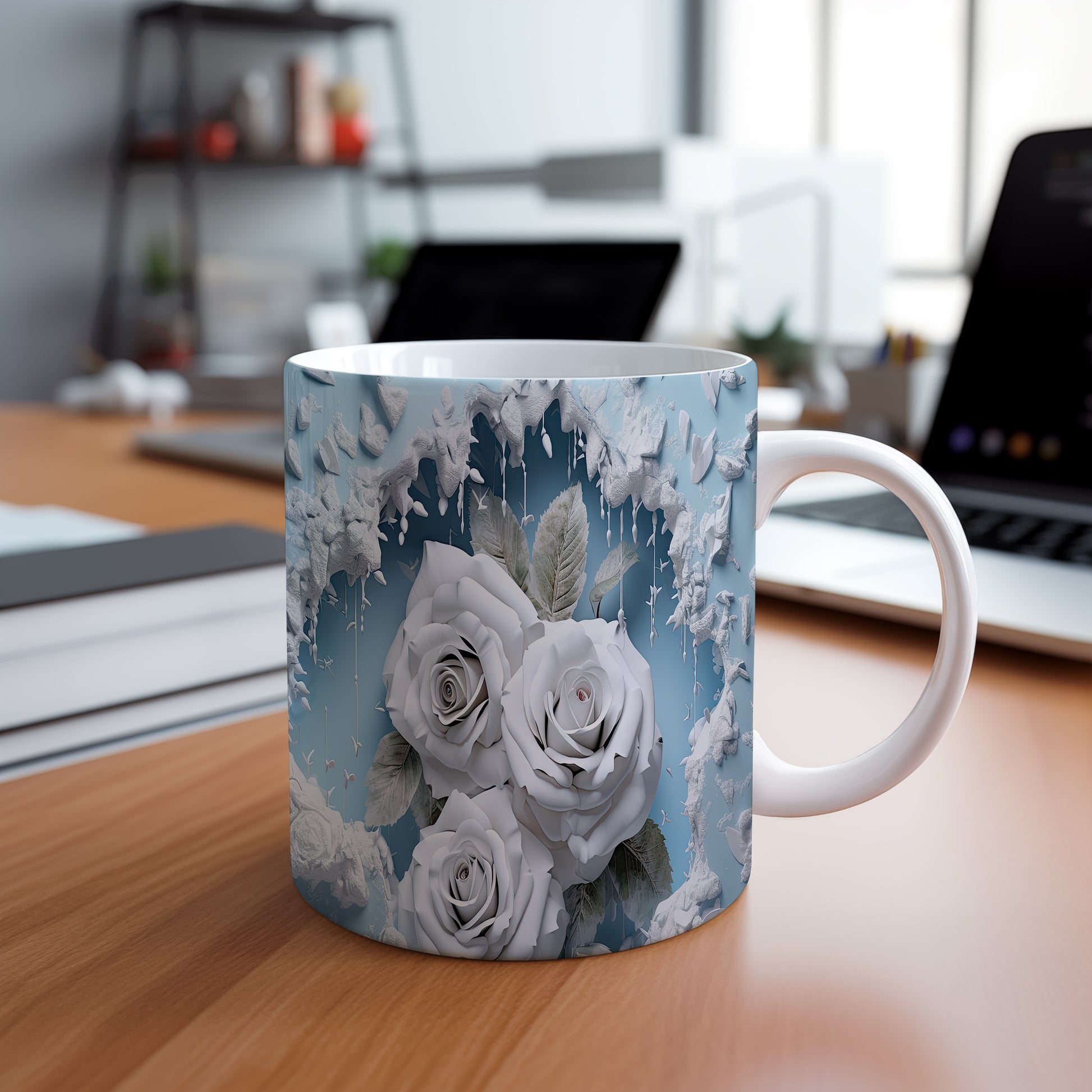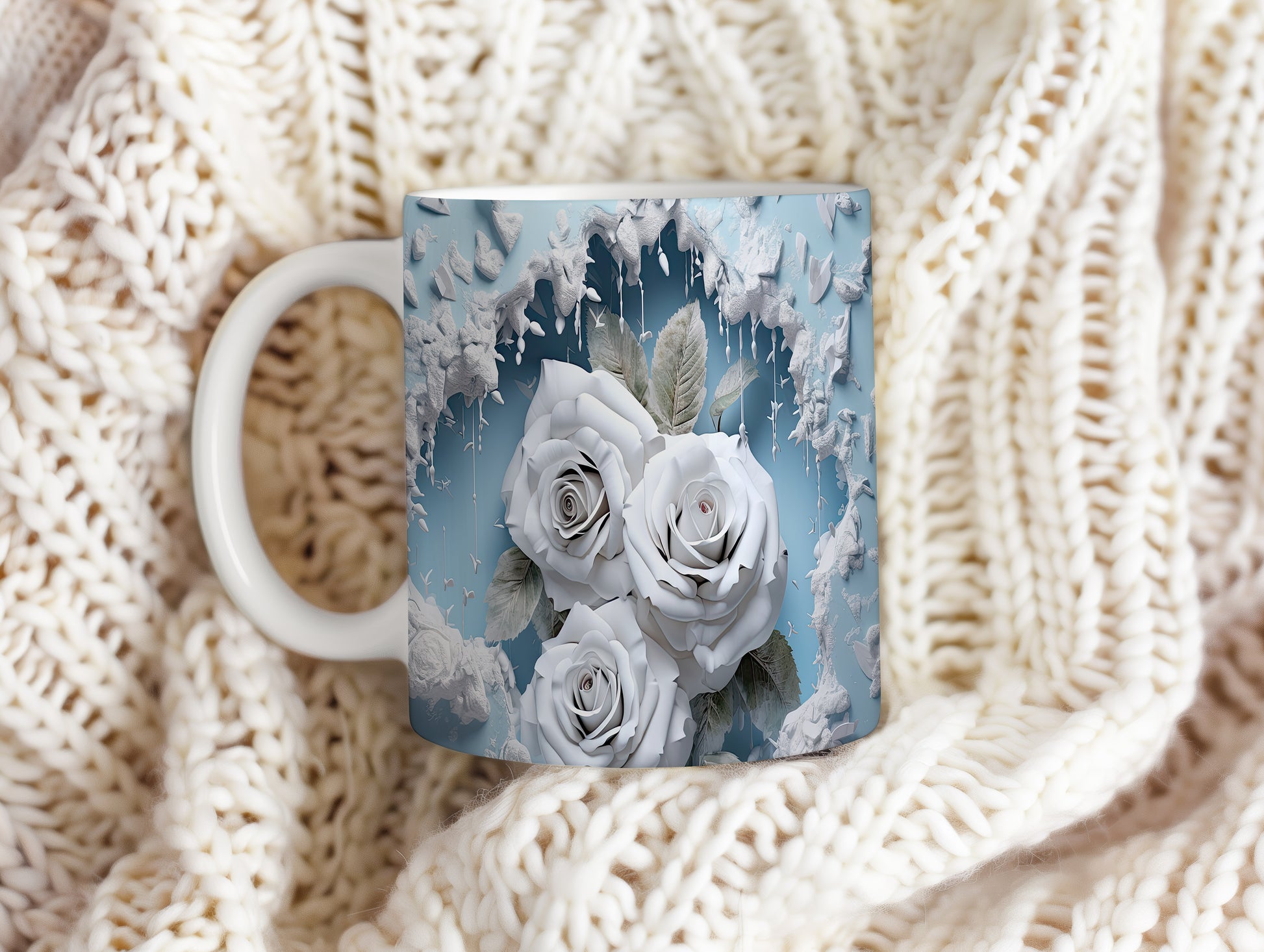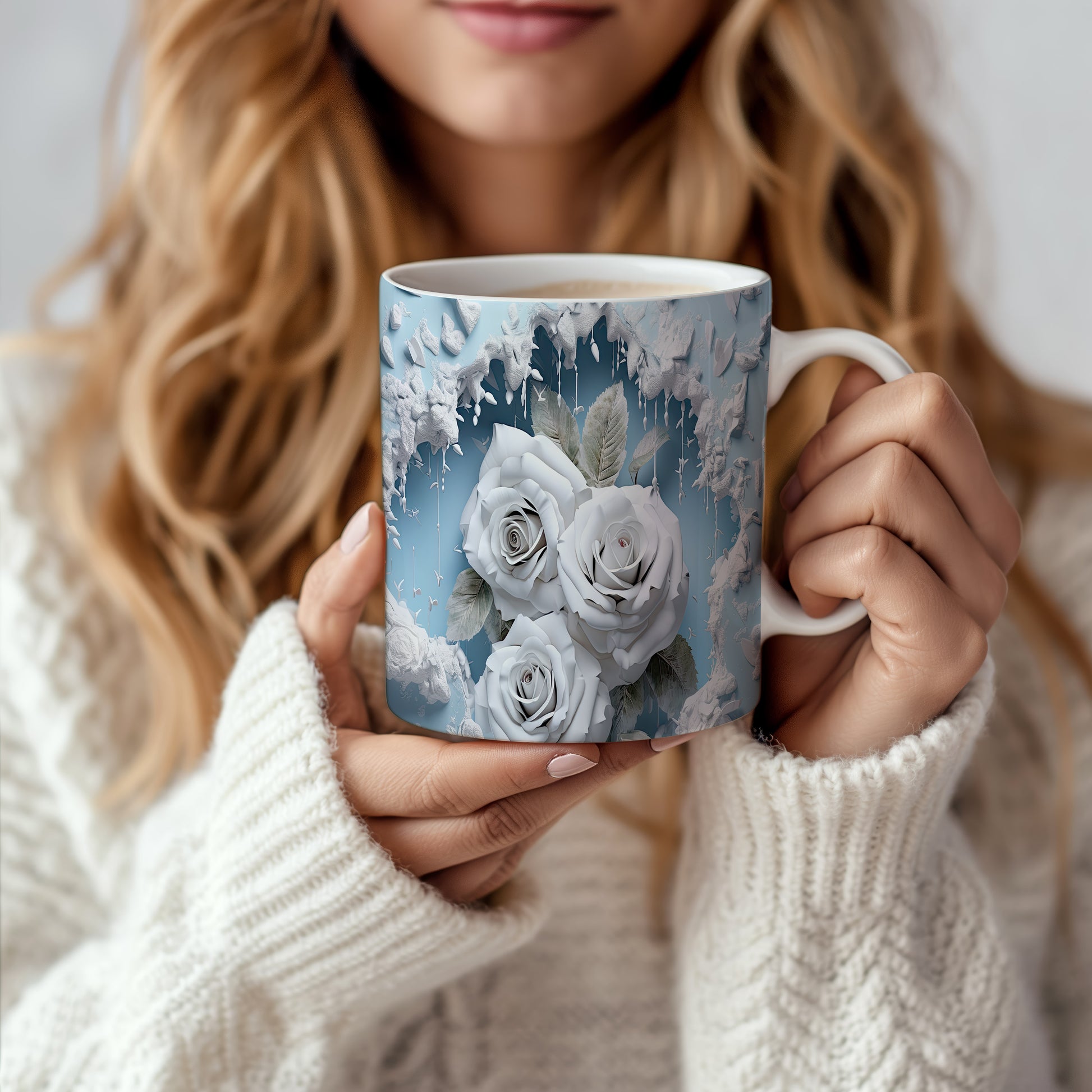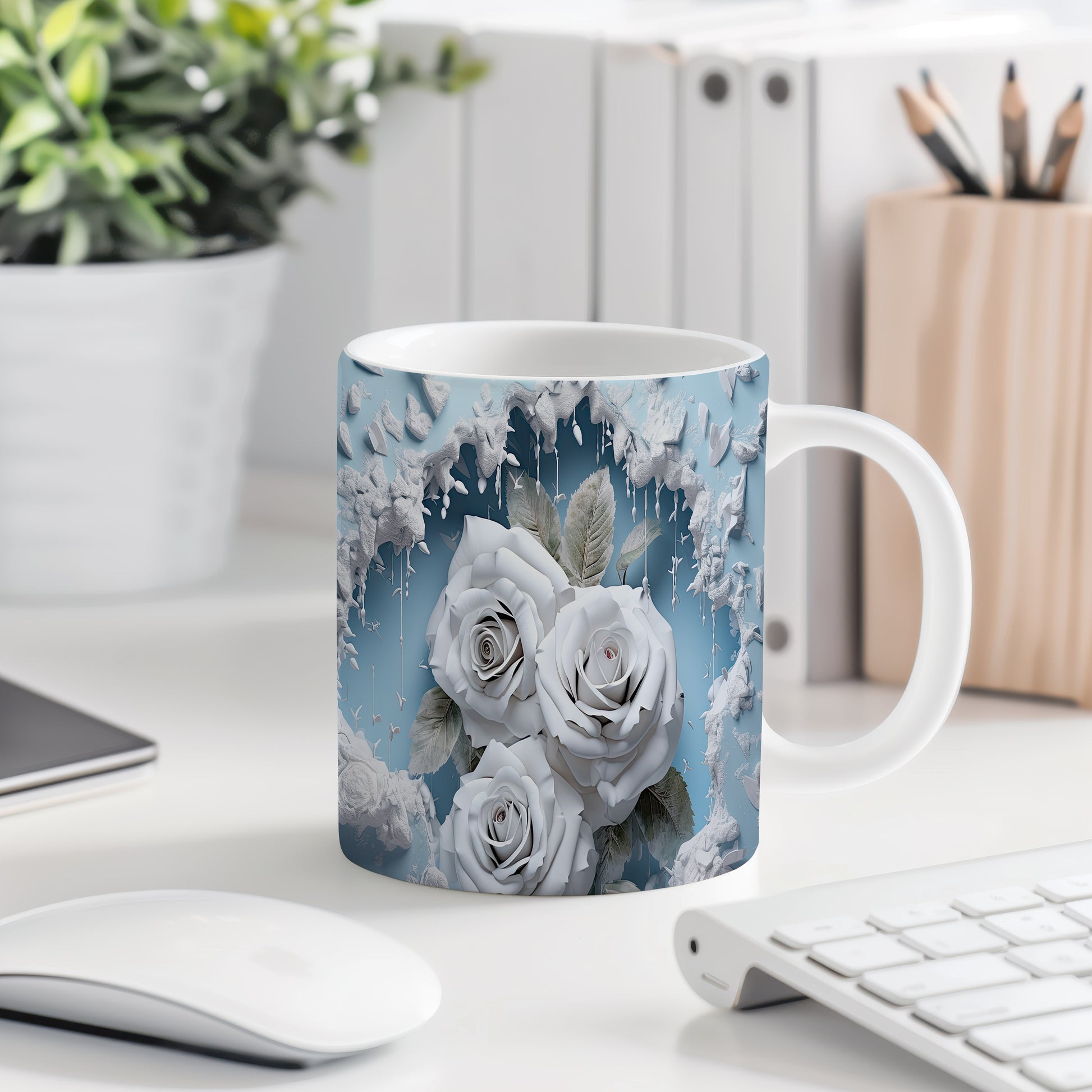 Tento elegantní hrnek zdobí tři bílé růže na jemně modrém pozadí, které přináší nádech stylu a elegance. Je ideální pro milovníky květin a krásného designu, skvělý tip na dárek pro blízké. Materiál: keramika. Objem: 330 ml. Vhodné do myčky i mikrovlnky. Používání tohoto hrnku dodá každému doušku kávy nebo čaje jedinečný zážitek.