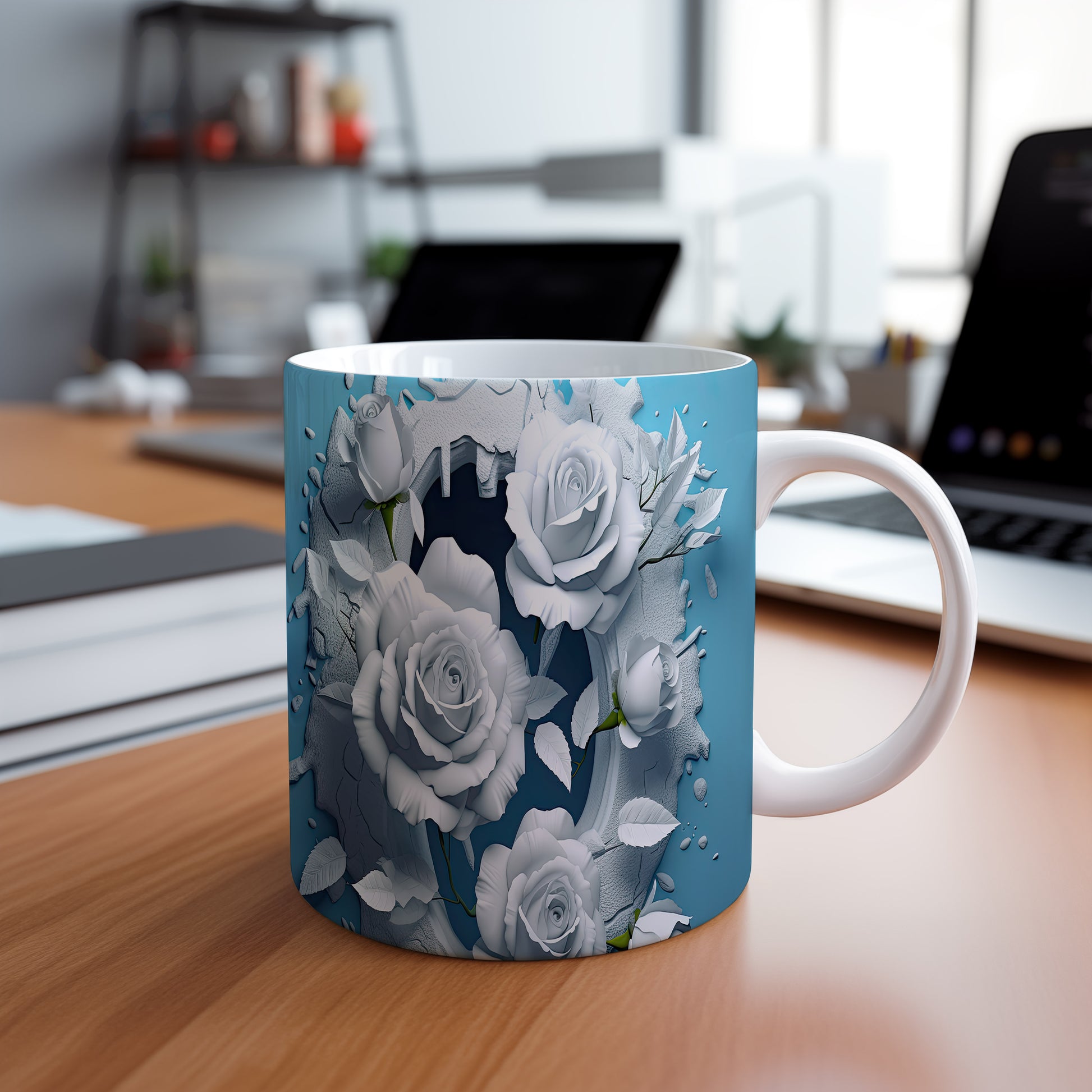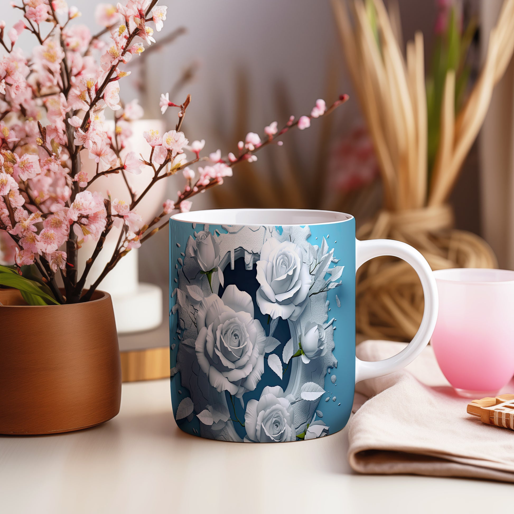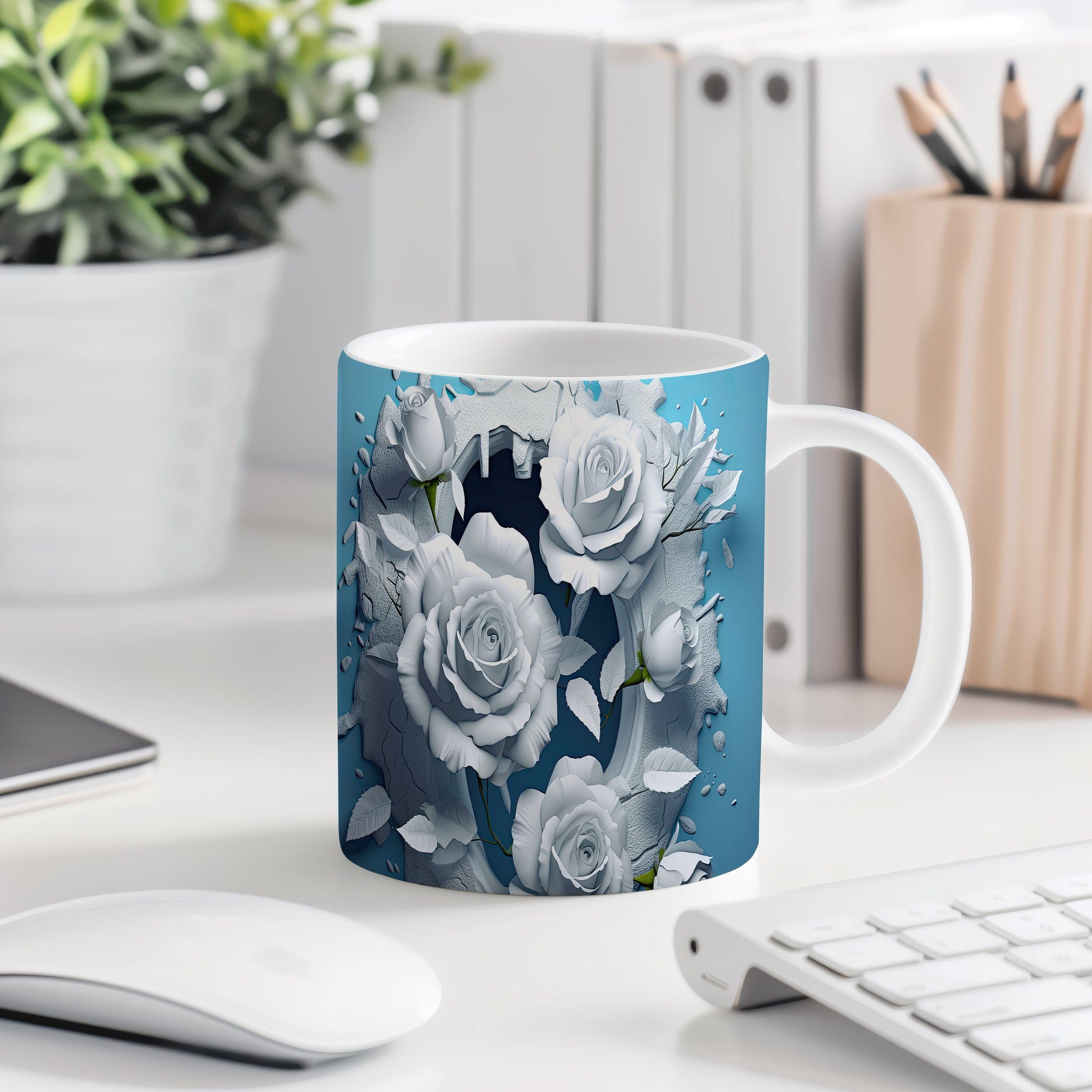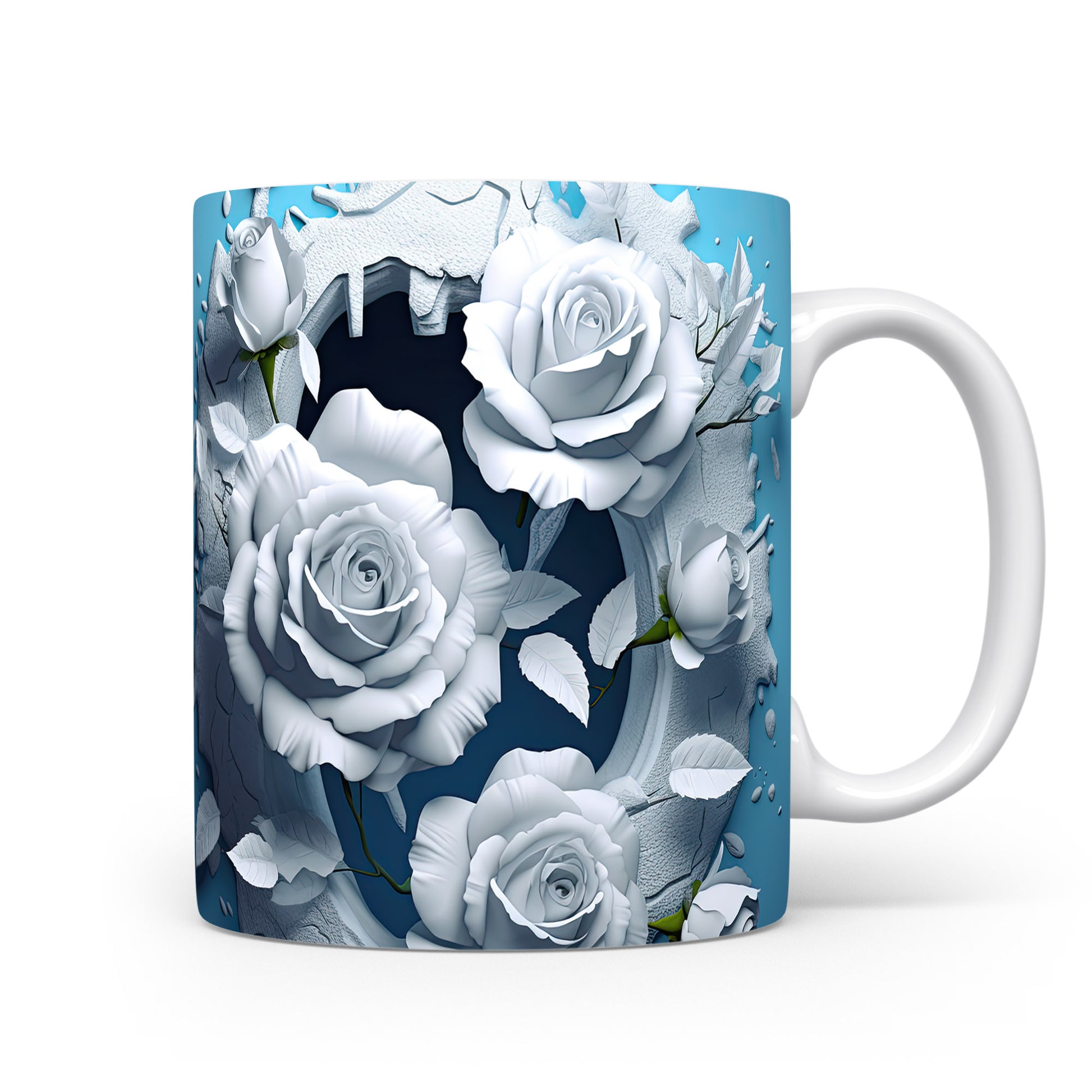 Elegantní keramický hrnek s motivem bílých růží na modrém pozadí. Tento hrnek je ideální pro milovníky květin a skvělým dárkem pro každou příležitost. Materiál: keramika. Objem: 330 ml. Vhodné do myčky i mikrovlnky. Díky svému designu přináší do každodenního pití špetku elegance.