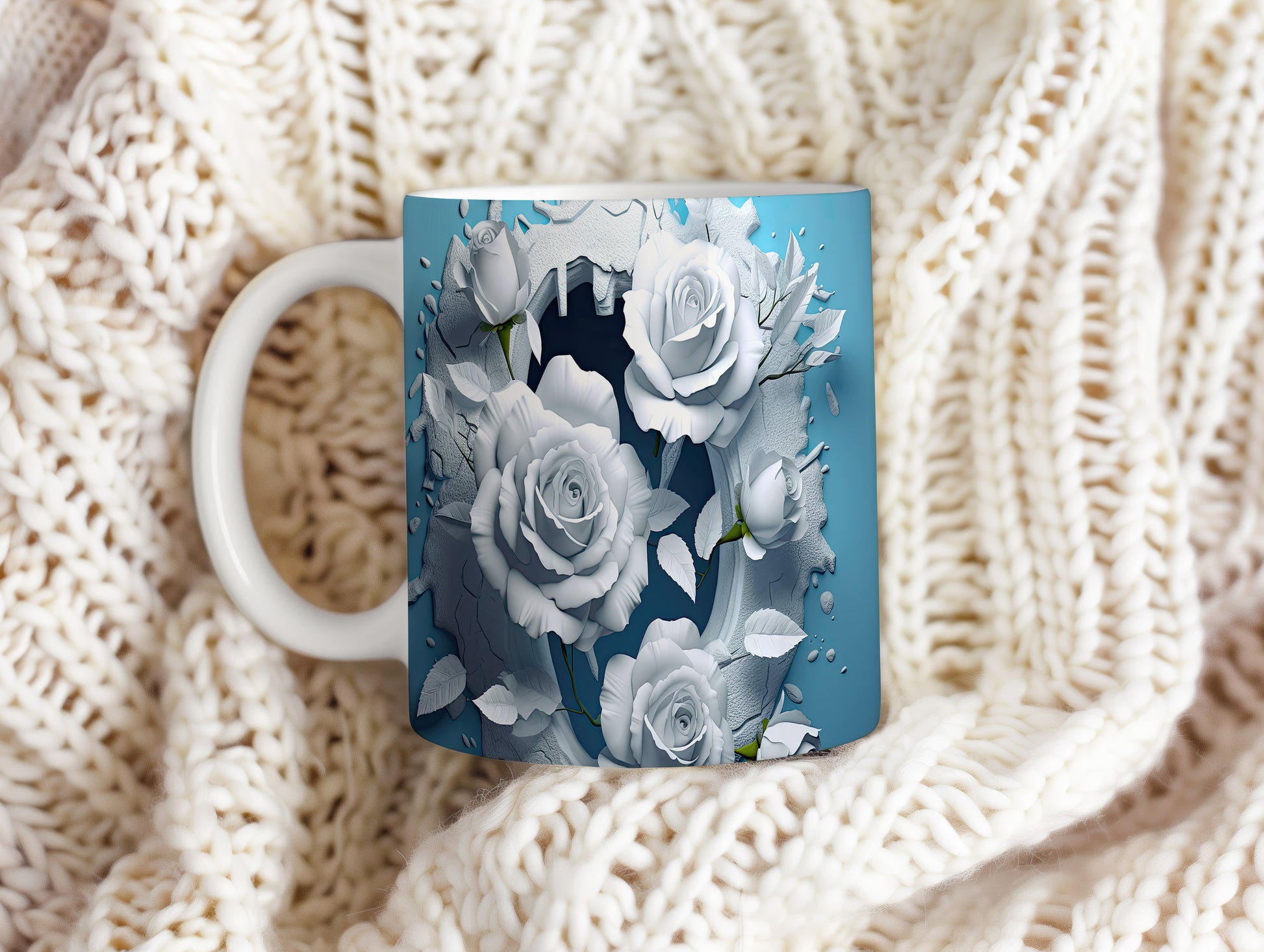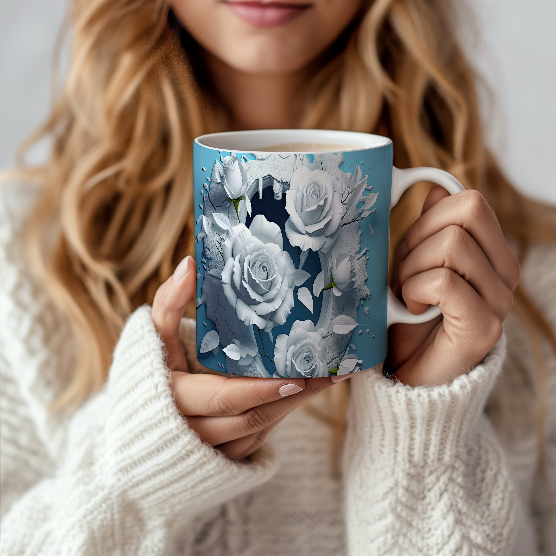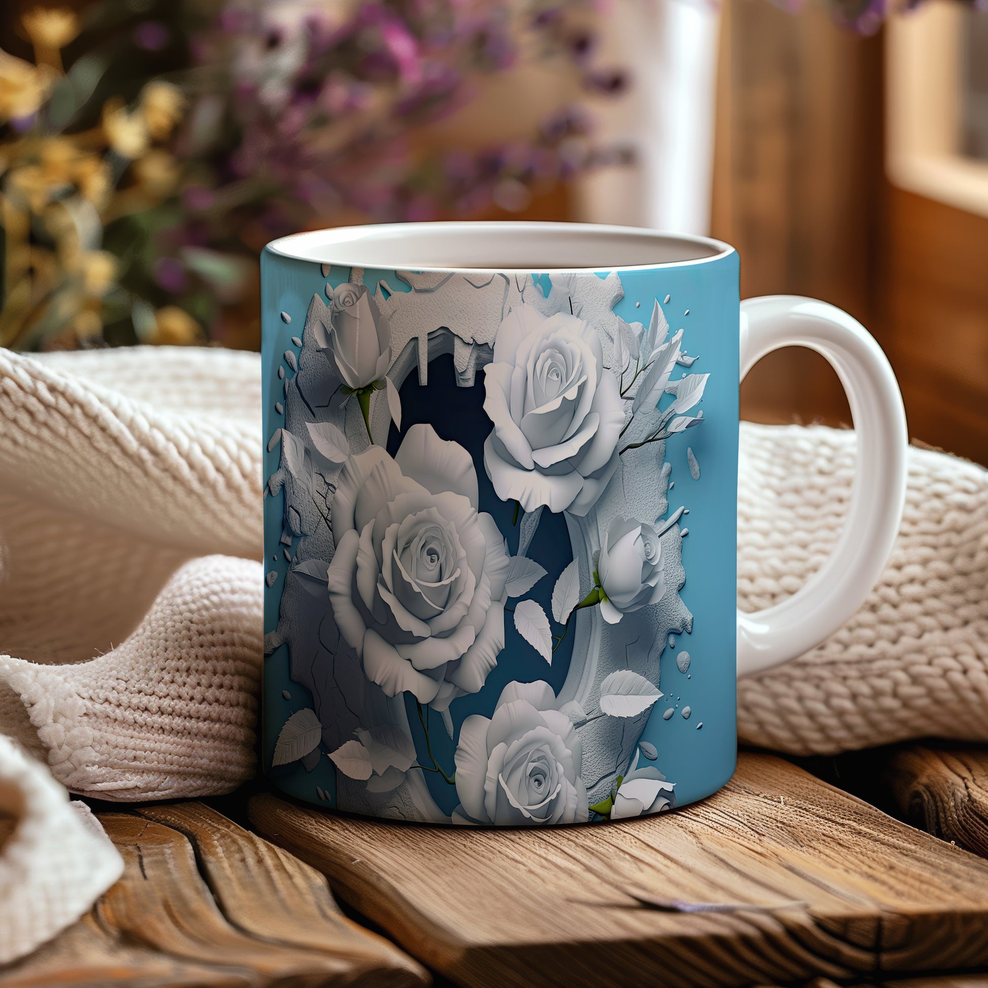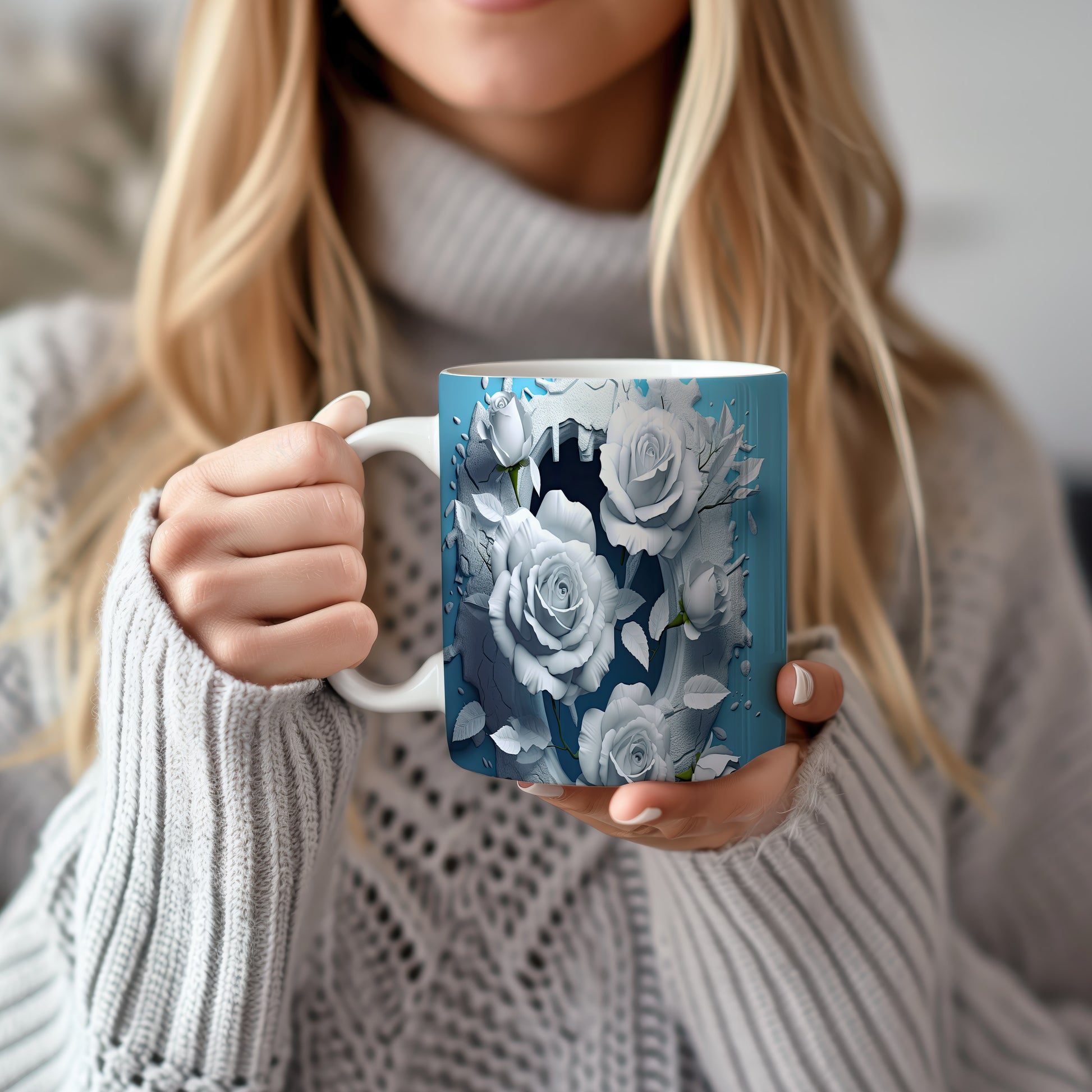 Elegantní keramický hrnek s motivem bílých růží na modrém pozadí. Tento hrnek je ideální pro milovníky květin a skvělým dárkem pro každou příležitost. Materiál: keramika. Objem: 330 ml. Vhodné do myčky i mikrovlnky. Díky svému designu přináší do každodenního pití špetku elegance.