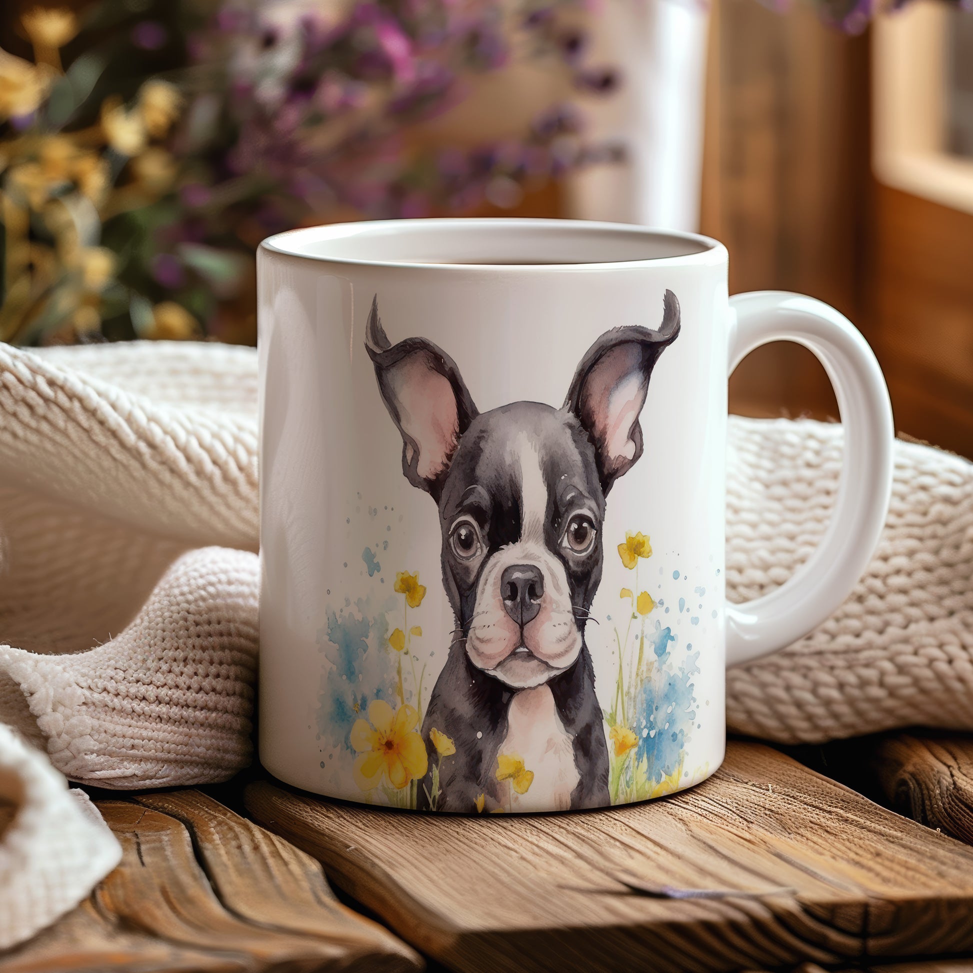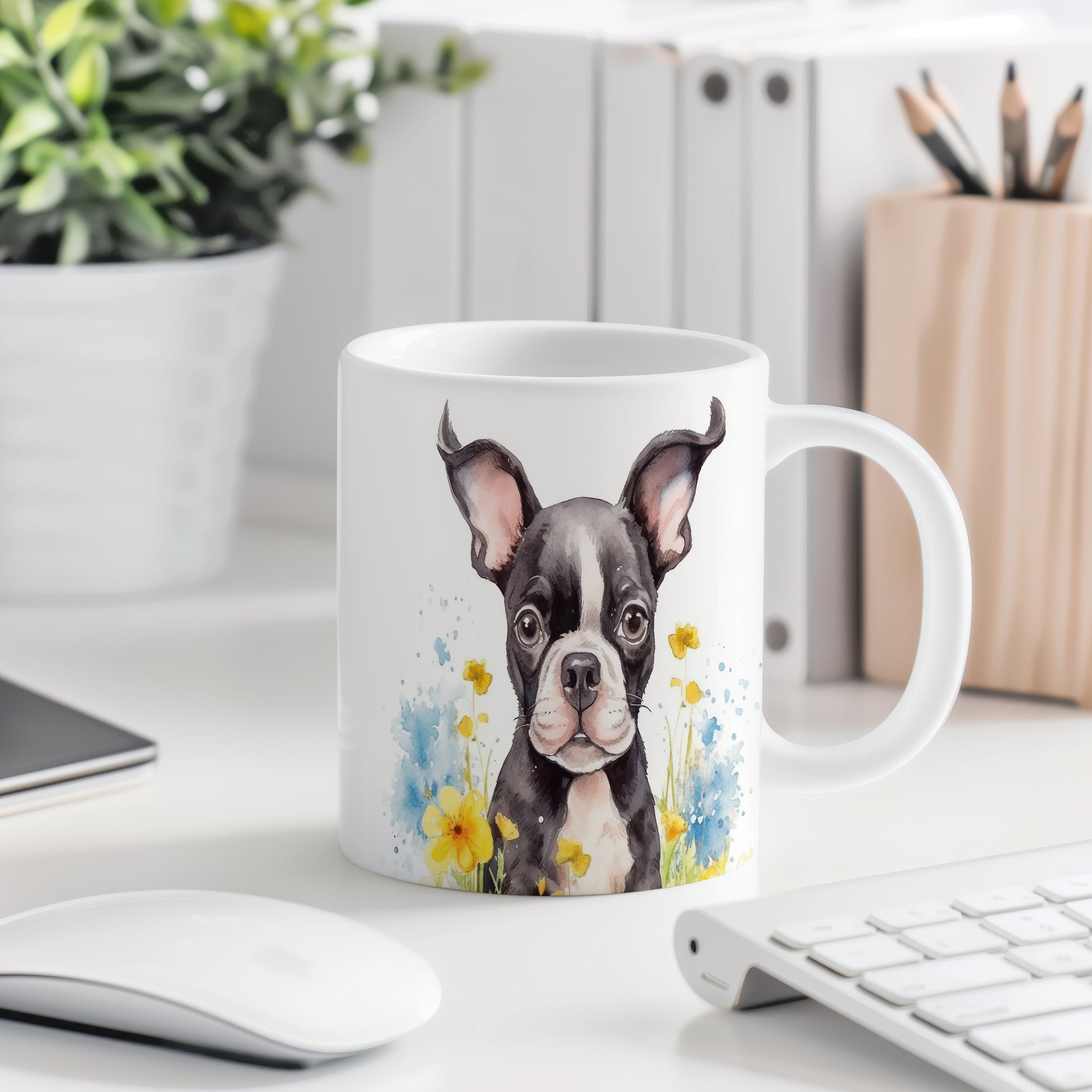 Tento hrnek zaujme krásnou ilustrací štěněte s velkýma ušima obklopeného květinami. Je ideální pro milovníky psů a skvělým dárkem pro každého, kdo má rád zvířata. Materiál: keramika. Objem: 330 ml. Vhodné do myčky i mikrovlnky. Používáním tohoto hrnku si každý den zpříjemníte chvíle s oblíbeným nápojem.