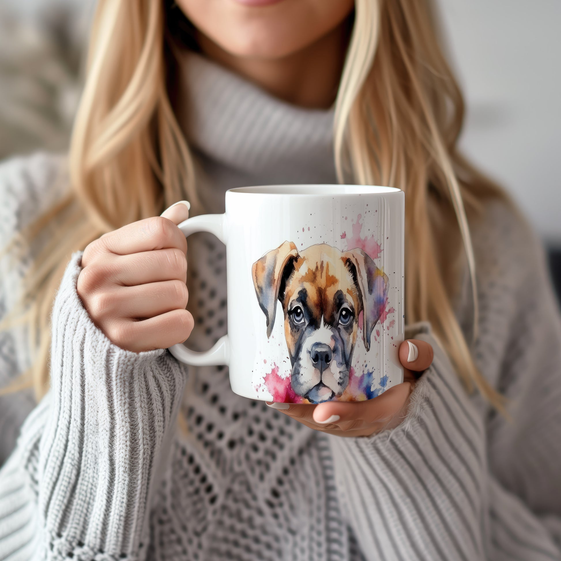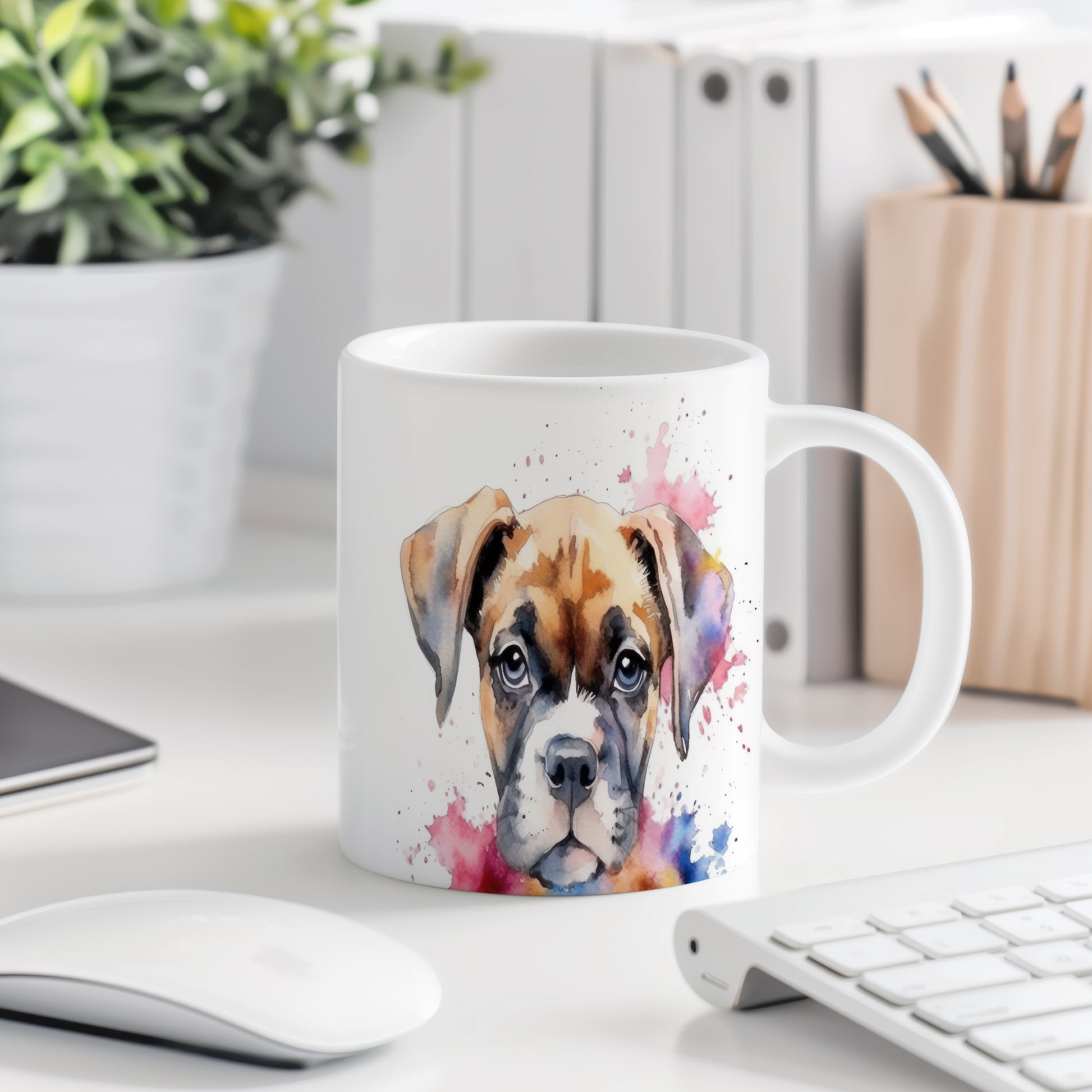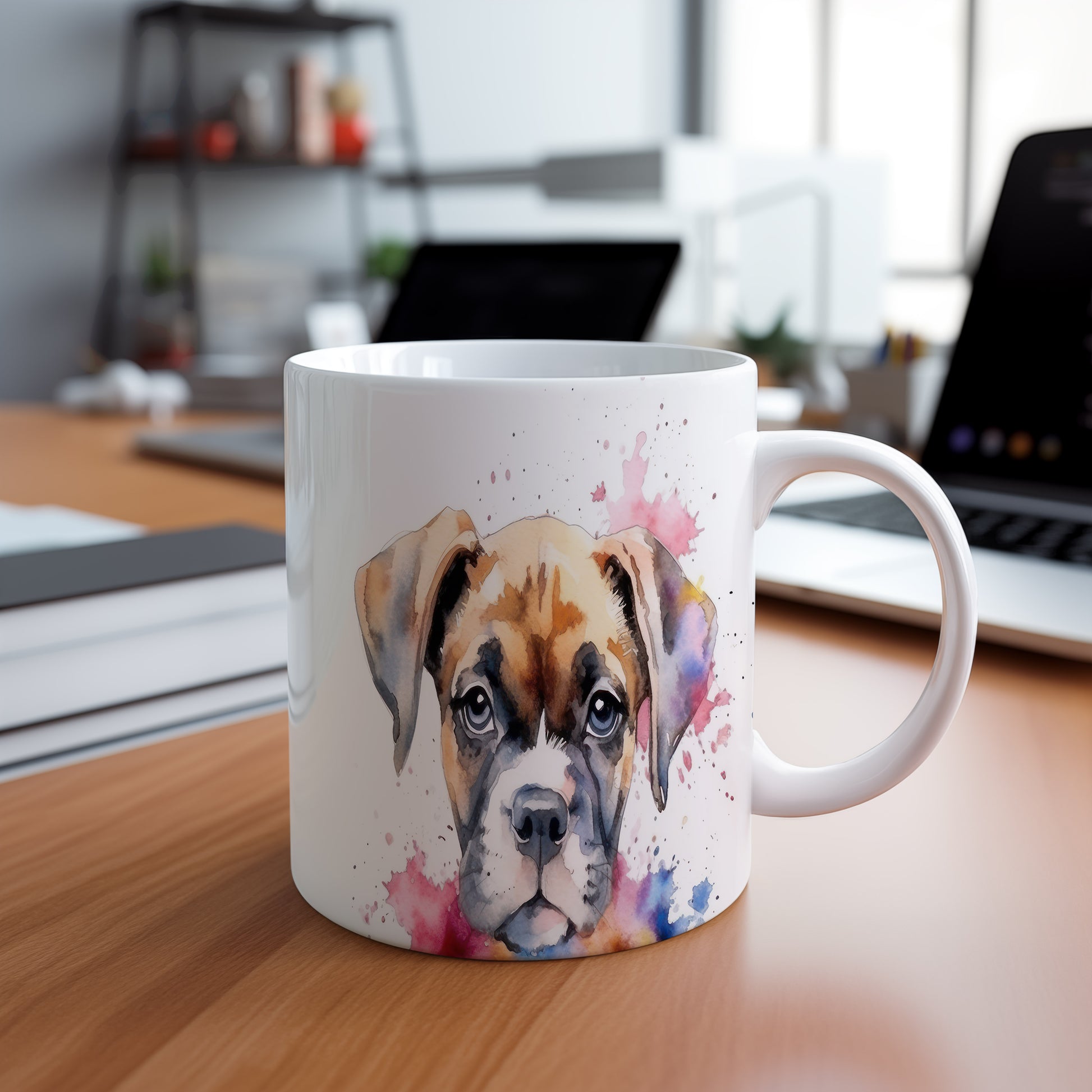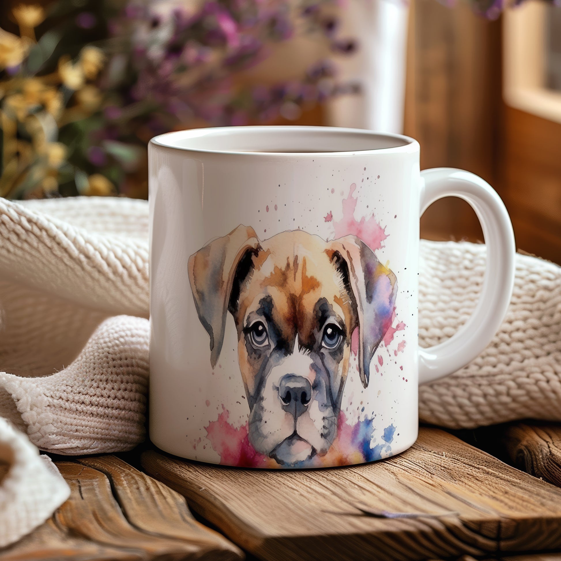 Tento keramický hrnek zobrazuje detailní akvarelový motiv boxera. Je ideální pro milovníky psů a skvělým dárkem pro každého, kdo ocení roztomilé designy. Materiál: keramika. Objem: 330 ml. Vhodné do myčky i mikrovlnky. Užívání tohoto hrnku přináší radost z každého doušku oblíbeného nápoje.