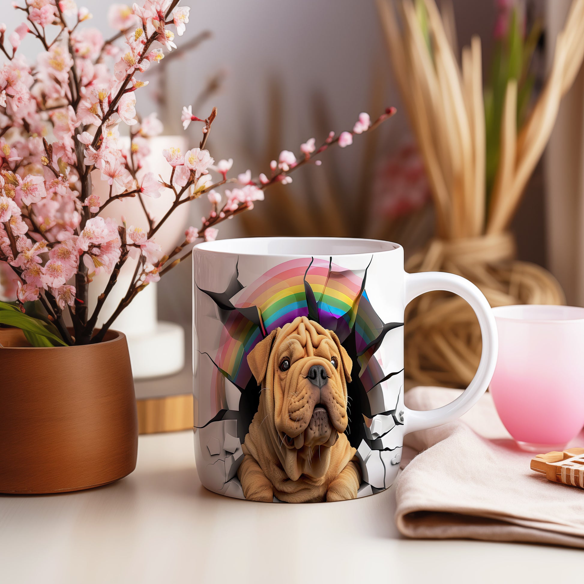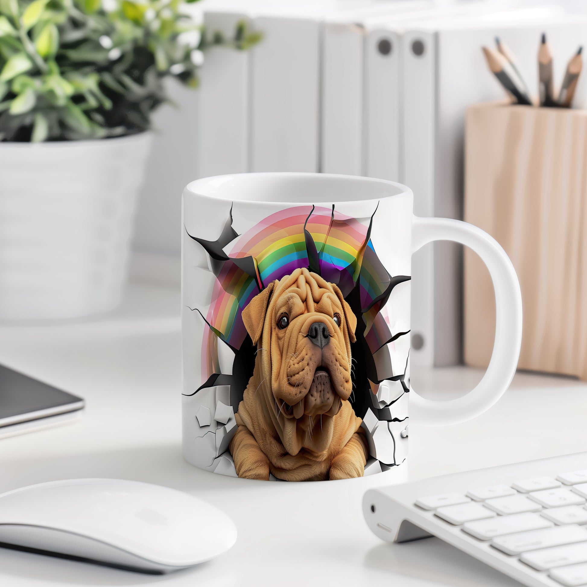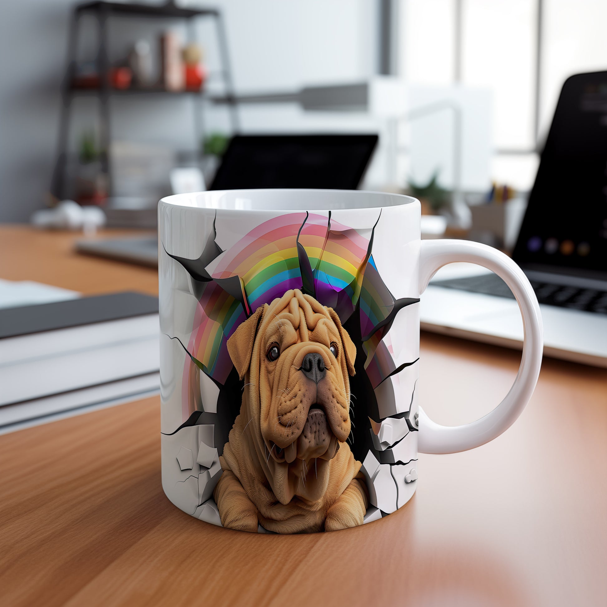 Tento keramický hrnek s realistickým motivem psa plemene shar – pei a duhou je skvělým kouskem pro milovníky zvířat. Je ideální jako dárek pro přátele nebo rodinu, kteří ocení originální design. Materiál: keramika. Objem: 330 ml. Vhodné do myčky i mikrovlnky. Díky svému jedinečnému vzhledu přináší do každodenního pití radost a styl.