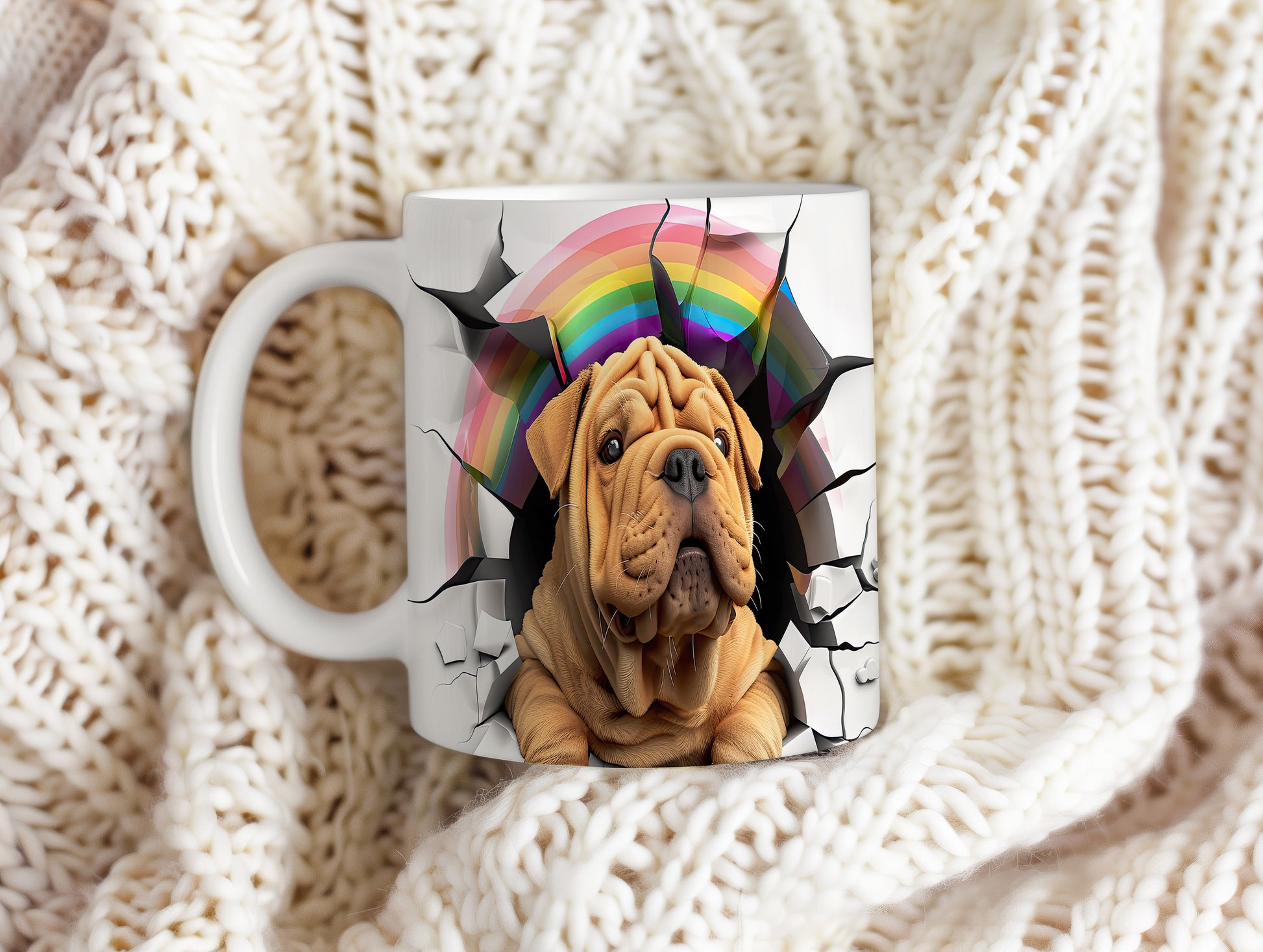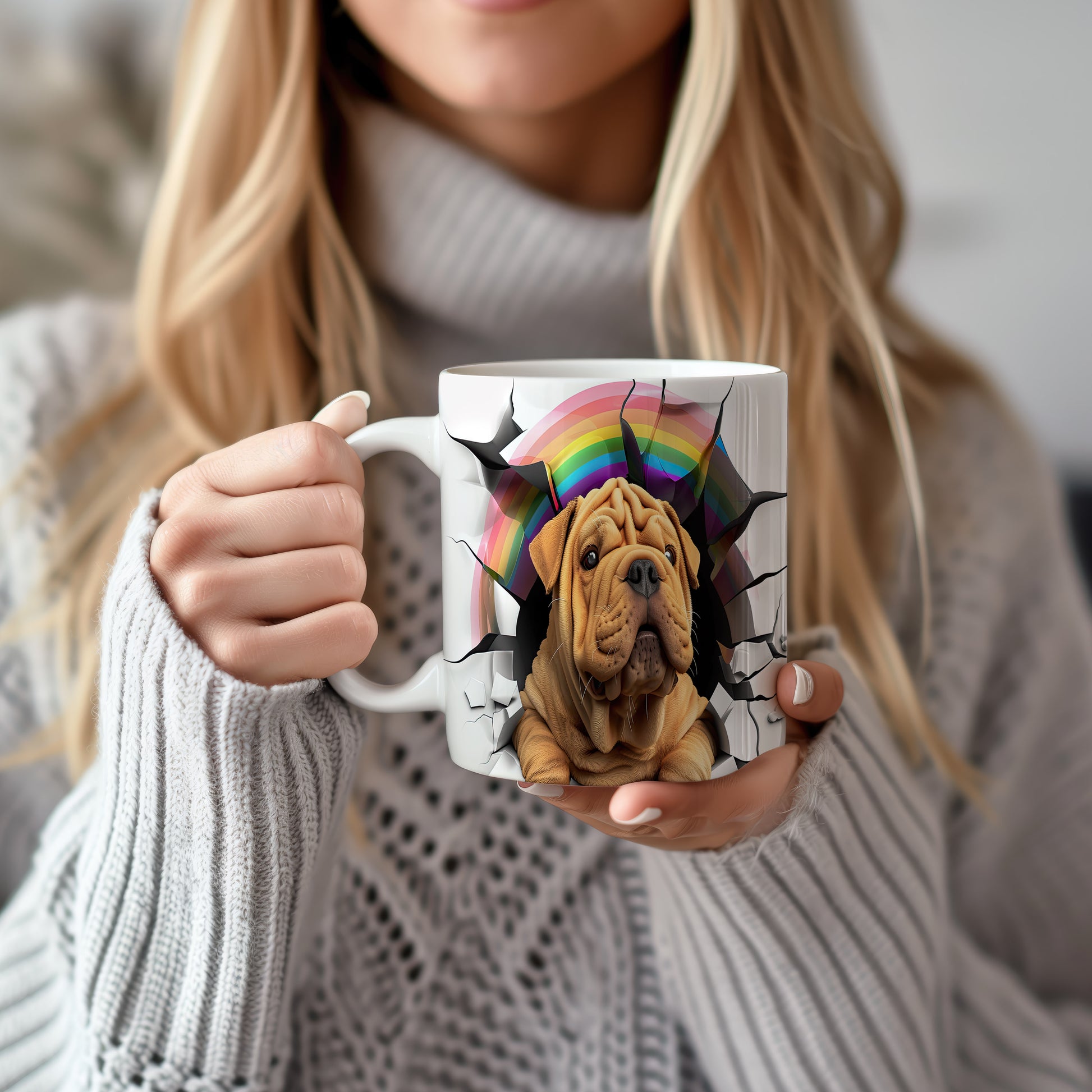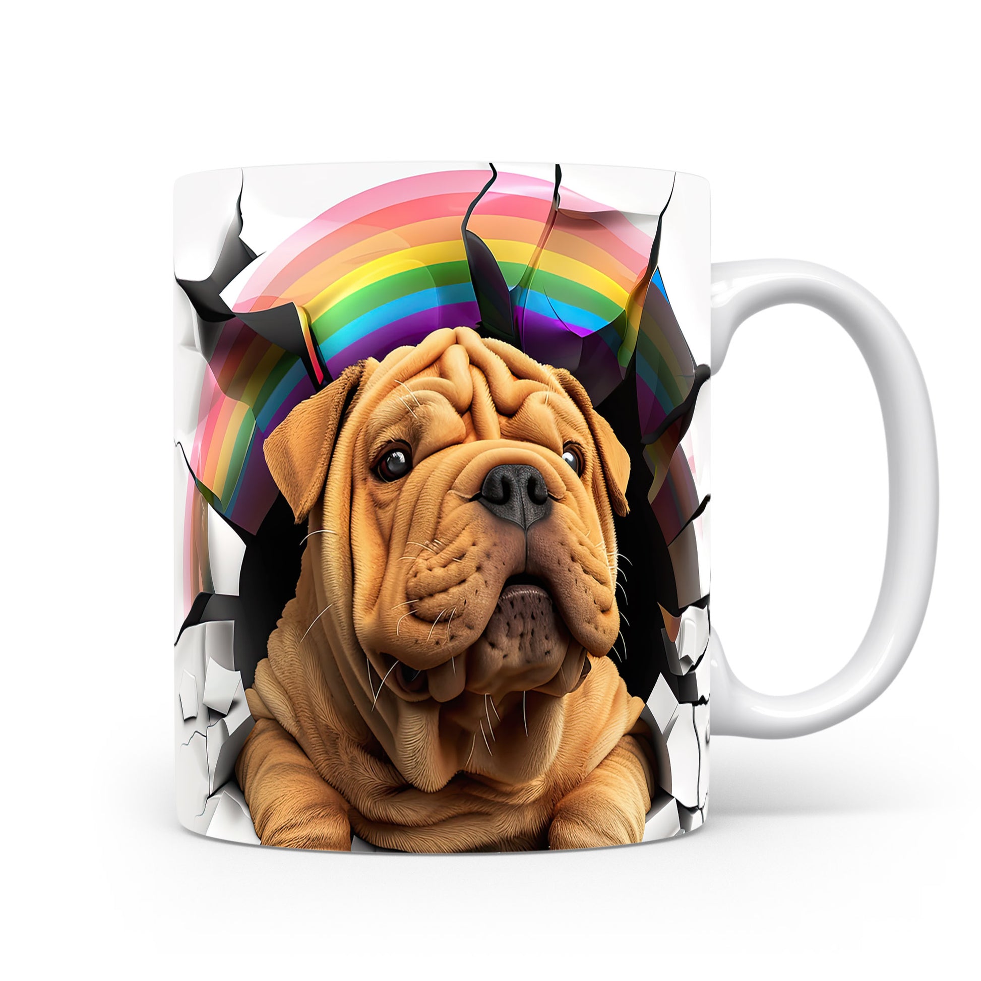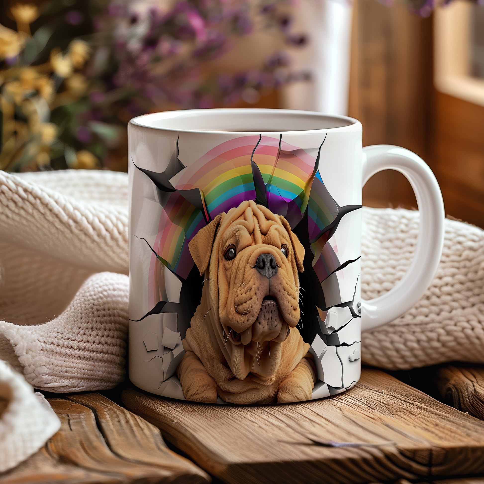 Tento keramický hrnek s realistickým motivem psa plemene shar – pei a duhou je skvělým kouskem pro milovníky zvířat. Je ideální jako dárek pro přátele nebo rodinu, kteří ocení originální design. Materiál: keramika. Objem: 330 ml. Vhodné do myčky i mikrovlnky. Díky svému jedinečnému vzhledu přináší do každodenního pití radost a styl.