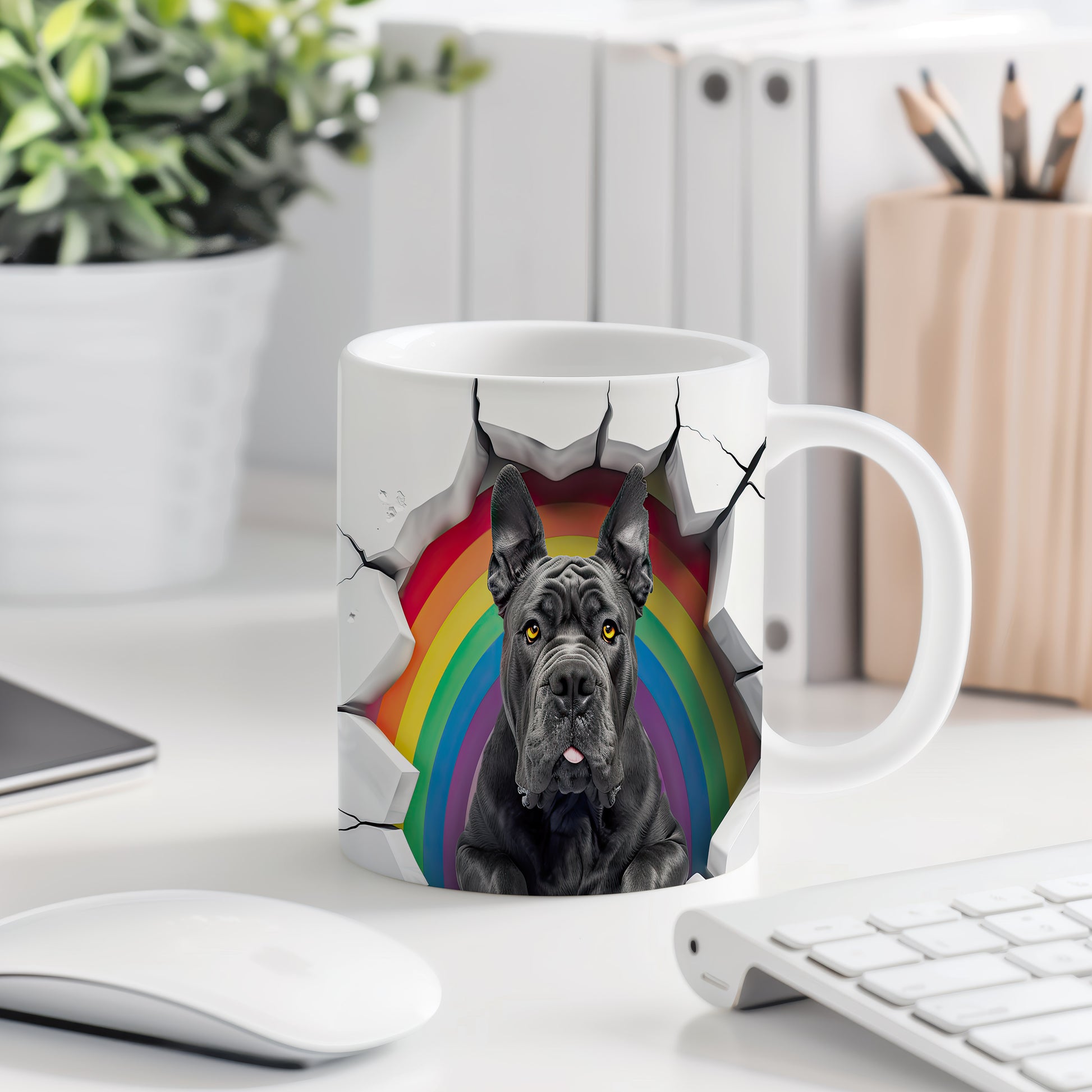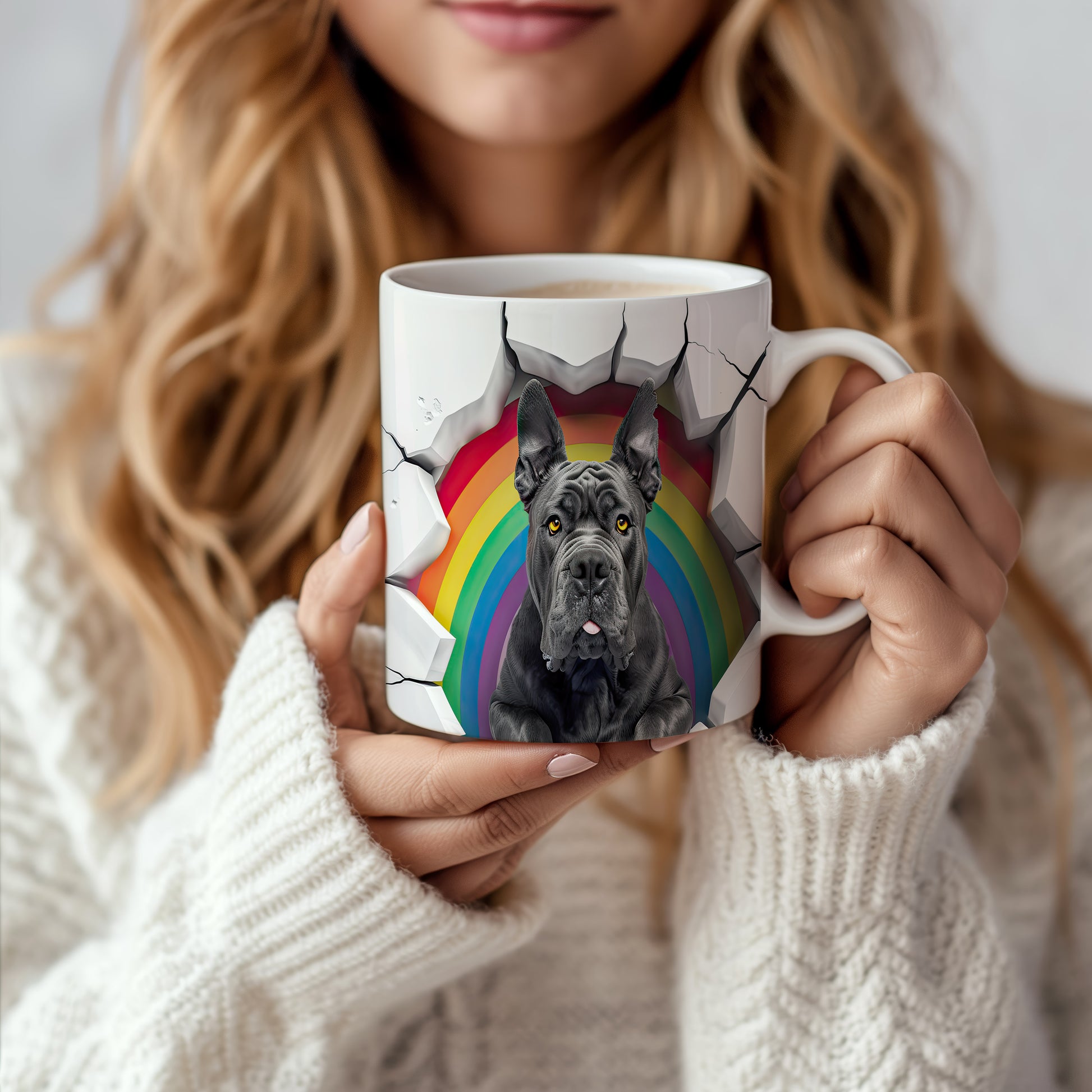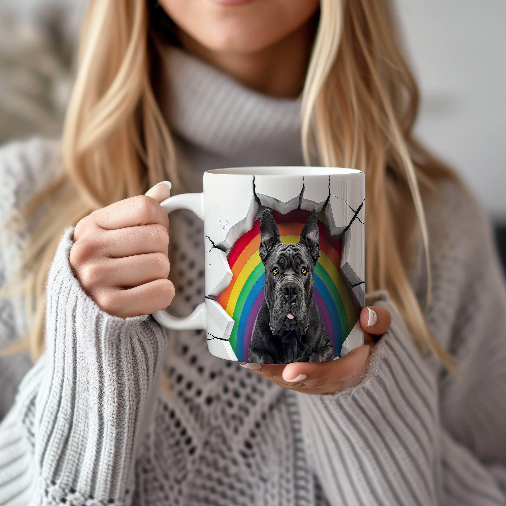 Hrnek s realisticky ztvárněným černým psem a duhovým pozadím je originálním kouskem pro milovníky zvířat. Tento hrnek je skvělým dárkem pro přátele nebo rodinu, kteří ocení jedinečný design. Materiál: keramika. Objem: 330 ml. Vhodné do myčky i mikrovlnky. Užívejte si svůj oblíbený nápoj s tímto stylovým hrnkem, který přináší radost do každého dne.
