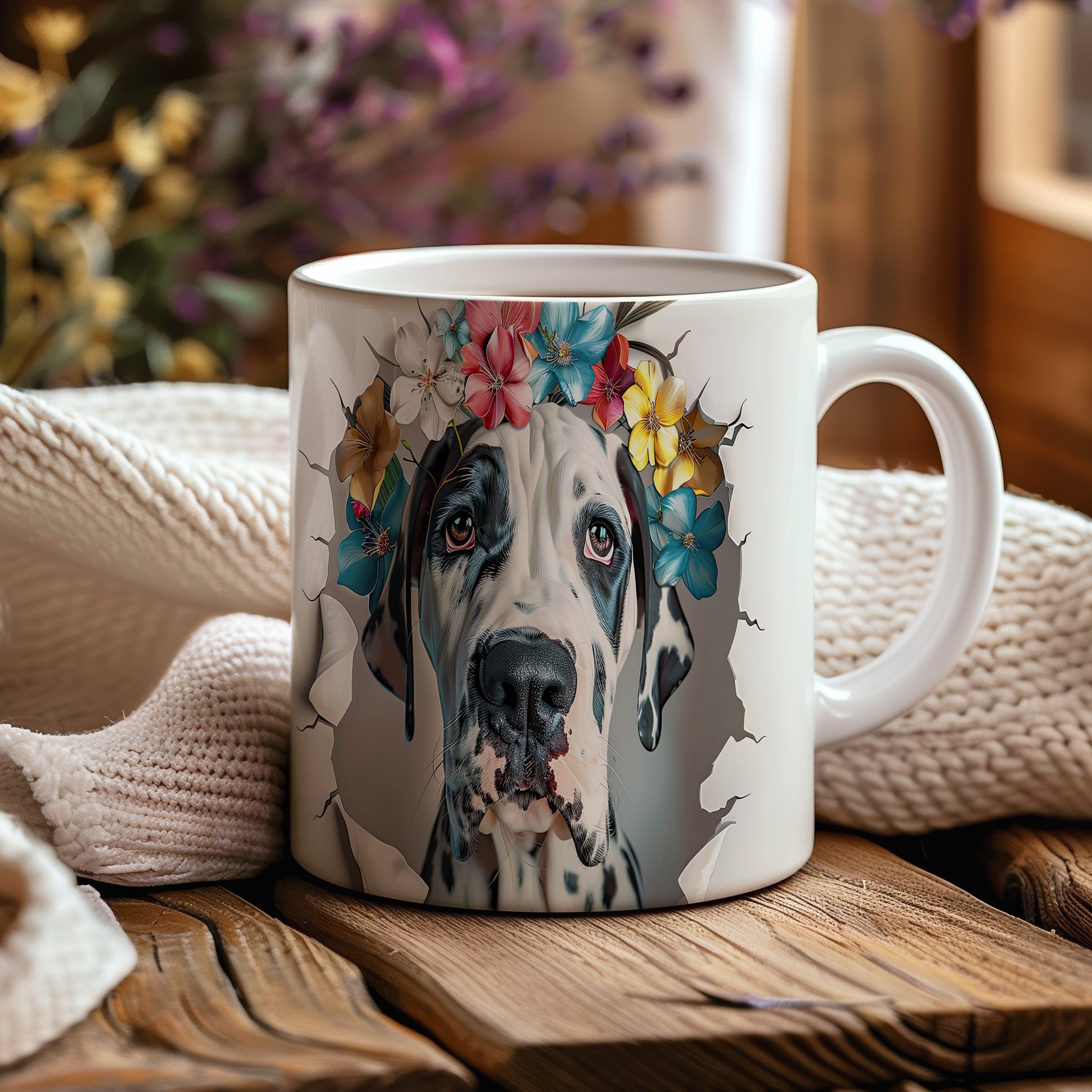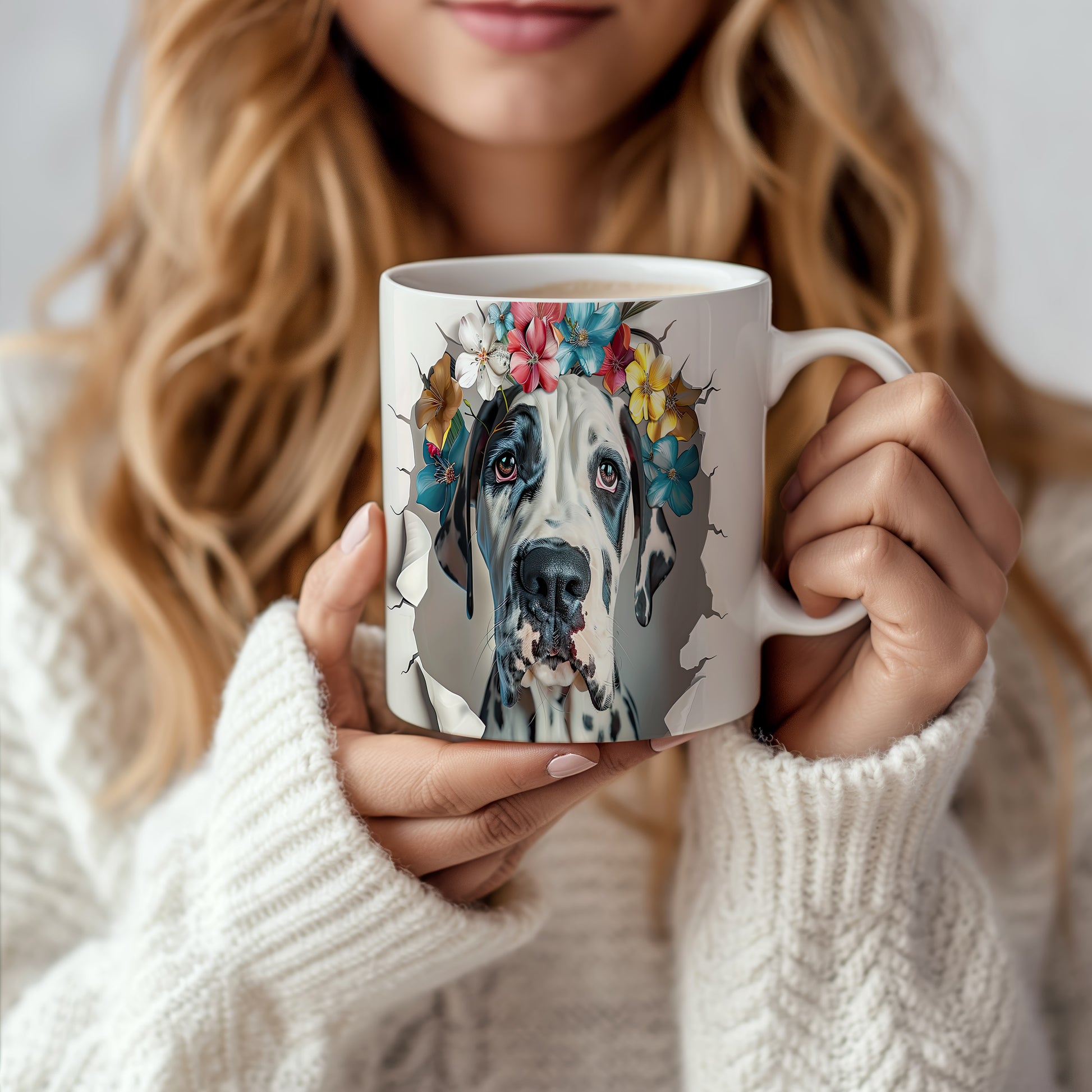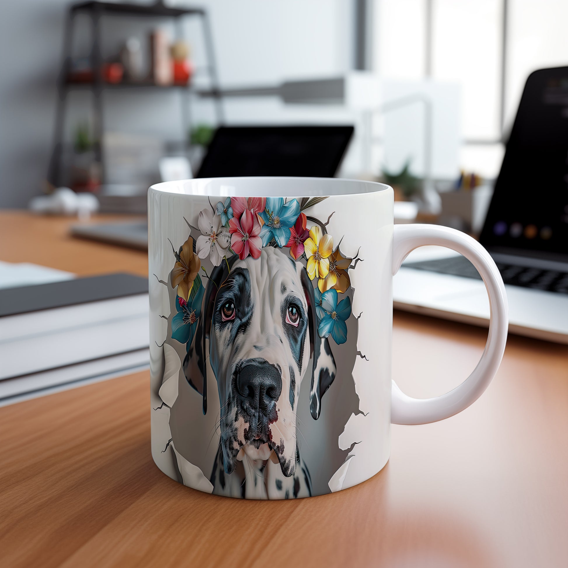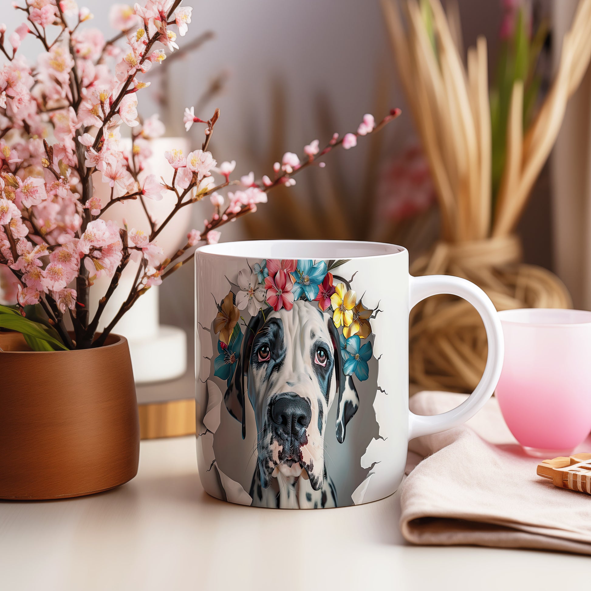 Hrnek s motivem psa a květinového věnce je skvělým doplňkem pro milovníky zvířat a přírody. Tento hrnek potěší každého, kdo hledá originální dárek pro přátele nebo rodinu. Materiál: keramika. Objem: 330 ml. Vhodné do myčky i mikrovlnky. Díky svému designu přináší radost a útulnost do každodenního pití.