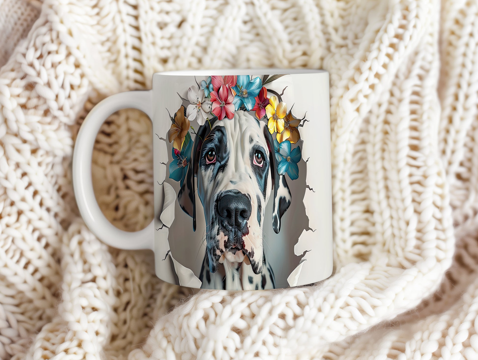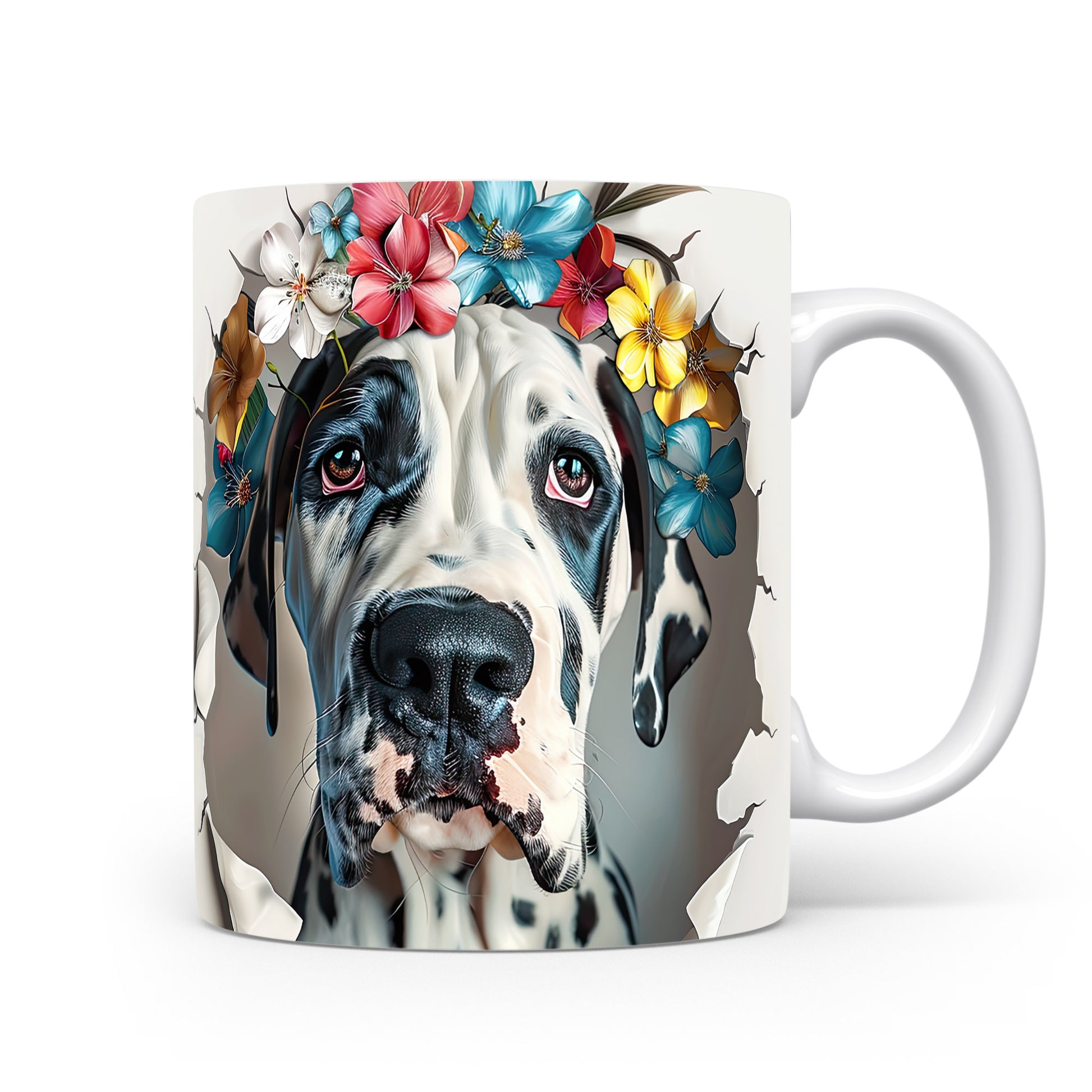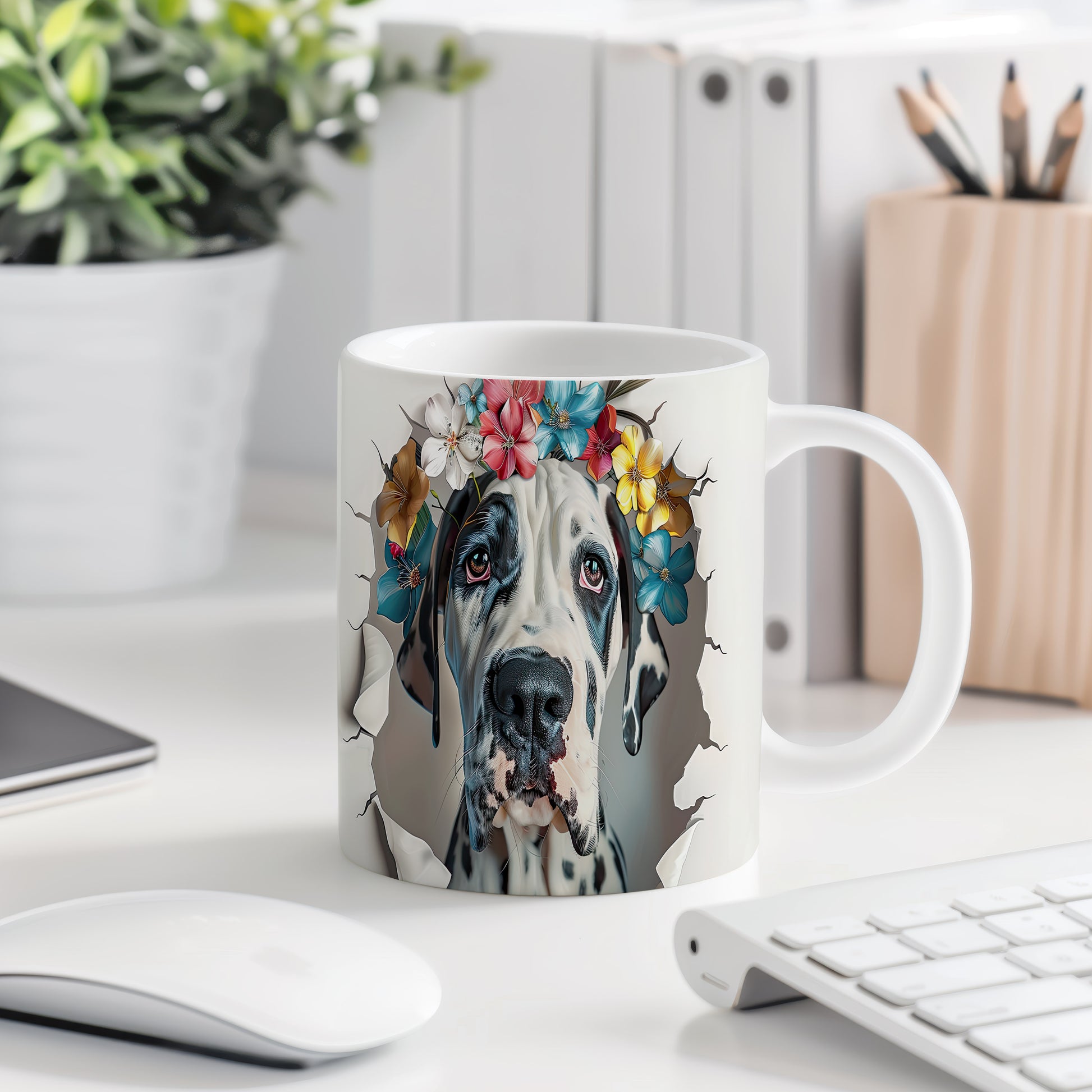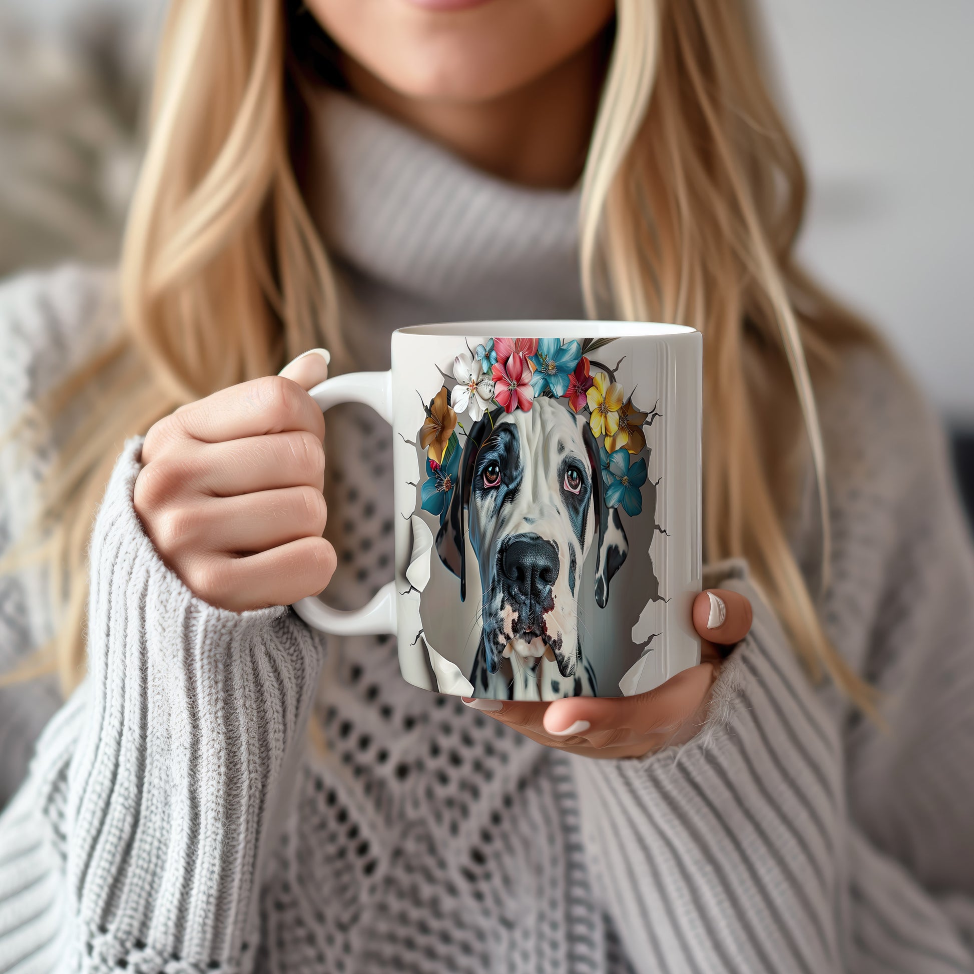 Hrnek s motivem psa a květinového věnce je skvělým doplňkem pro milovníky zvířat a přírody. Tento hrnek potěší každého, kdo hledá originální dárek pro přátele nebo rodinu. Materiál: keramika. Objem: 330 ml. Vhodné do myčky i mikrovlnky. Díky svému designu přináší radost a útulnost do každodenního pití.