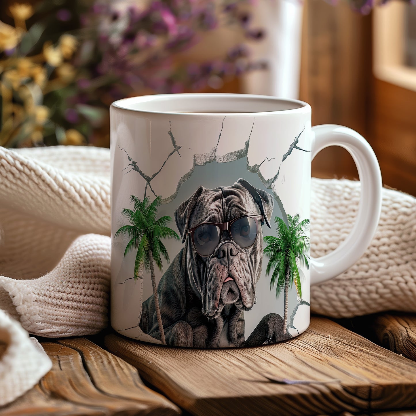 Hrnek s ilustrací psa v brýlích a palmami je skvělým doplňkem pro milovníky zvířat a originálního designu. Tento hrnek potěší každého, kdo hledá netradiční dárek pro přátele nebo rodinu. Materiál: keramika. Objem: 330 ml. Vhodné do myčky i mikrovlnky. Díky svému jedinečnému vzhledu přináší radost při každém doušku.