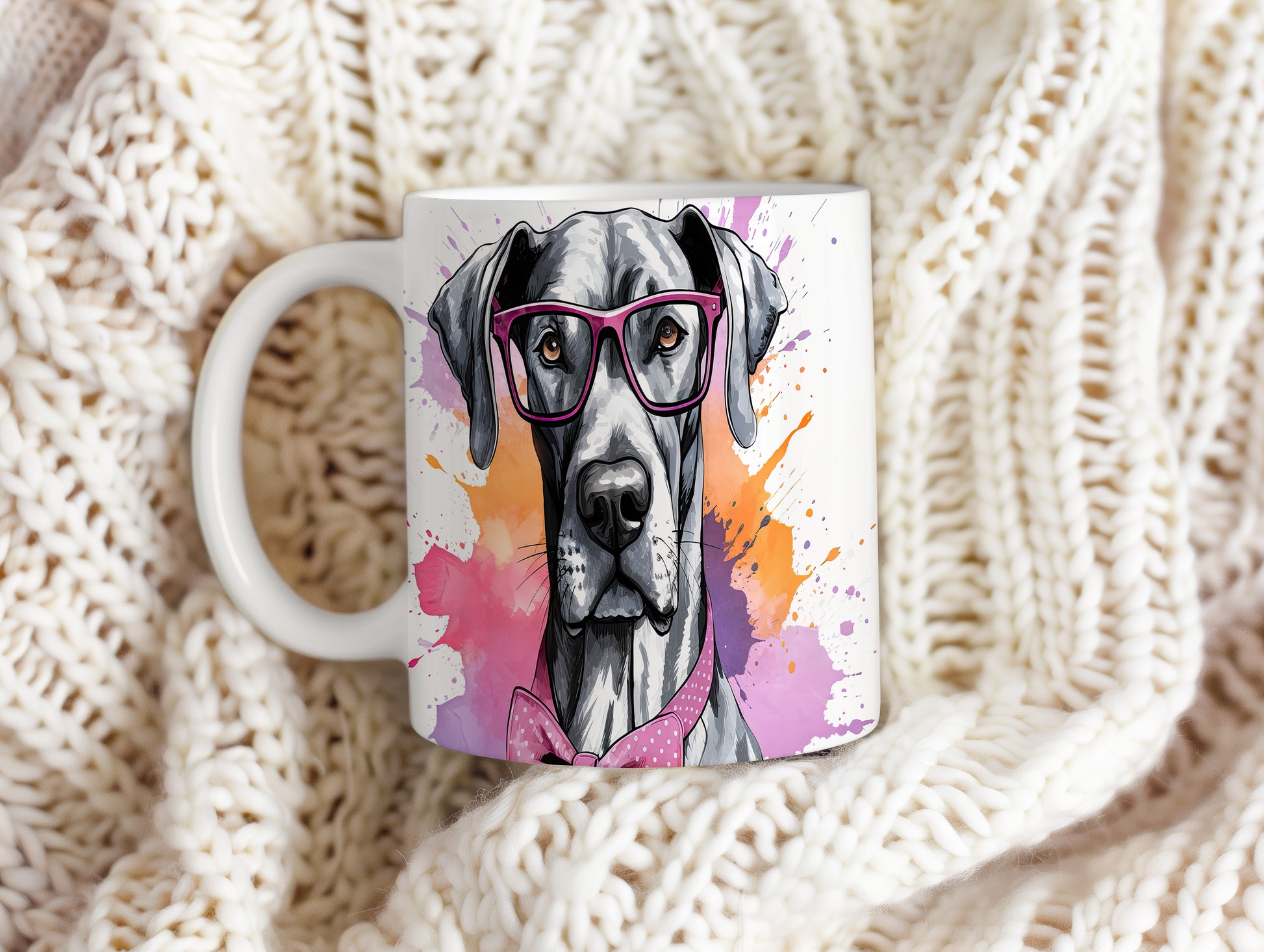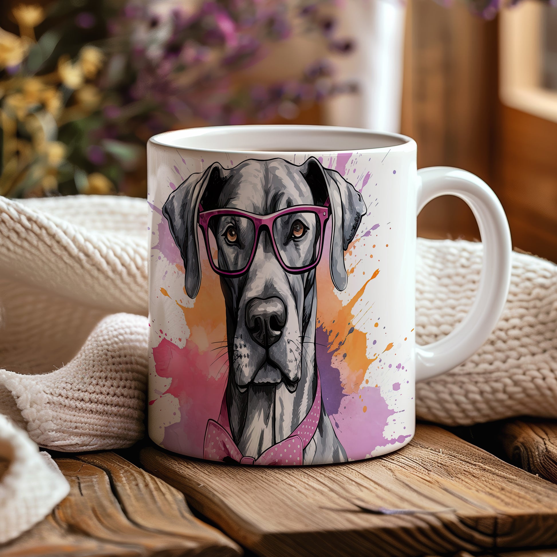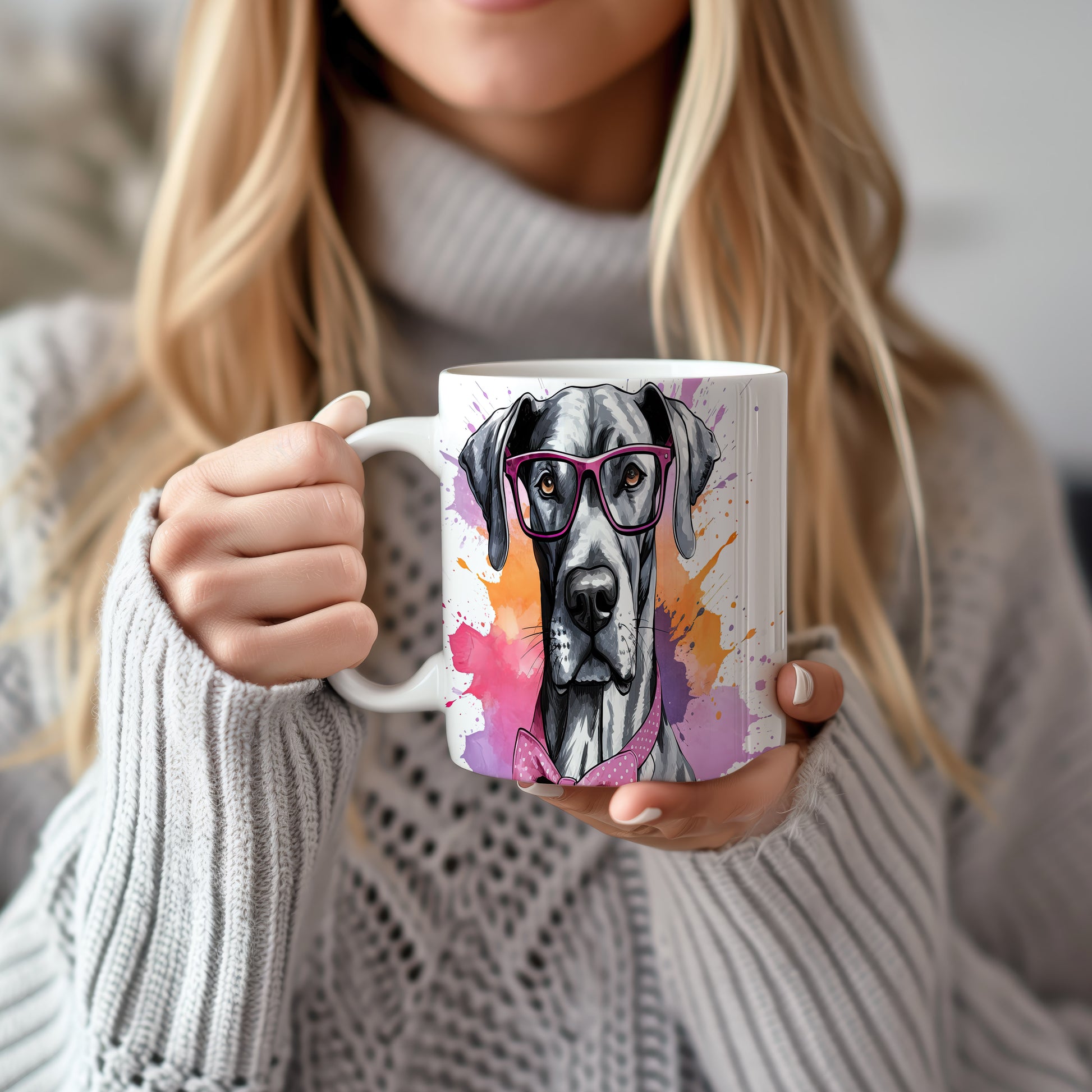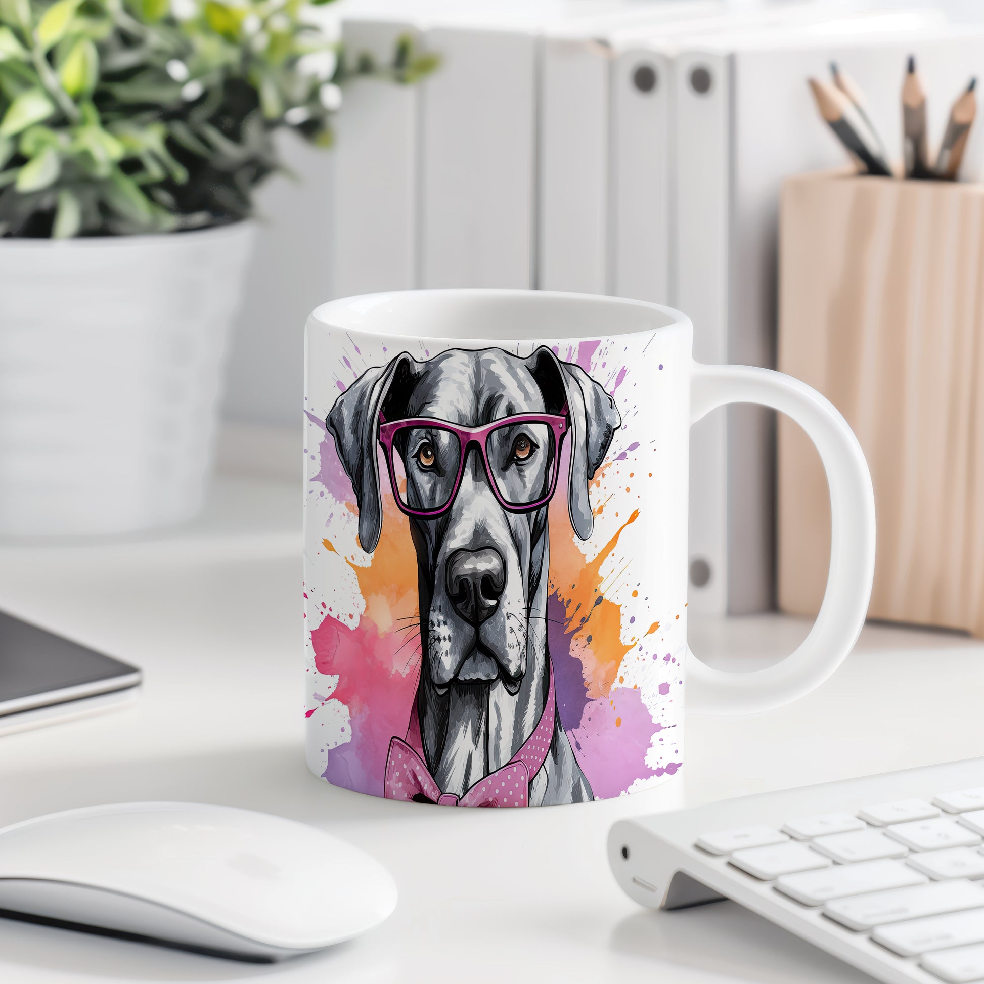 Hrnek s motivem inteligentního psa ve brýlích a barevnými skvrnami. Tento veselý hrnek je skvělým dárkem pro milovníky psů a pro ty, kteří si rádi užívají zábavné chvíle při pití. Materiál: keramika. Objem: 330 ml. Vhodné do myčky i mikrovlnky. Používání tohoto hrnku přináší radost a úsměv do každého dne.