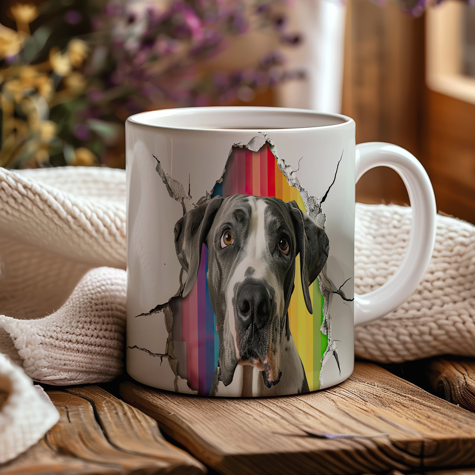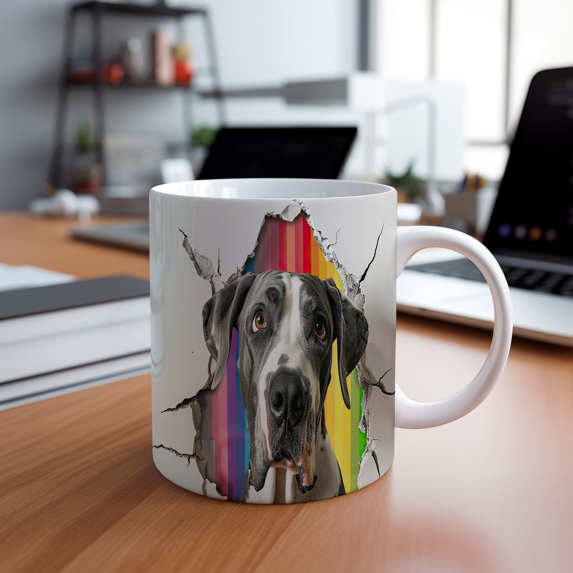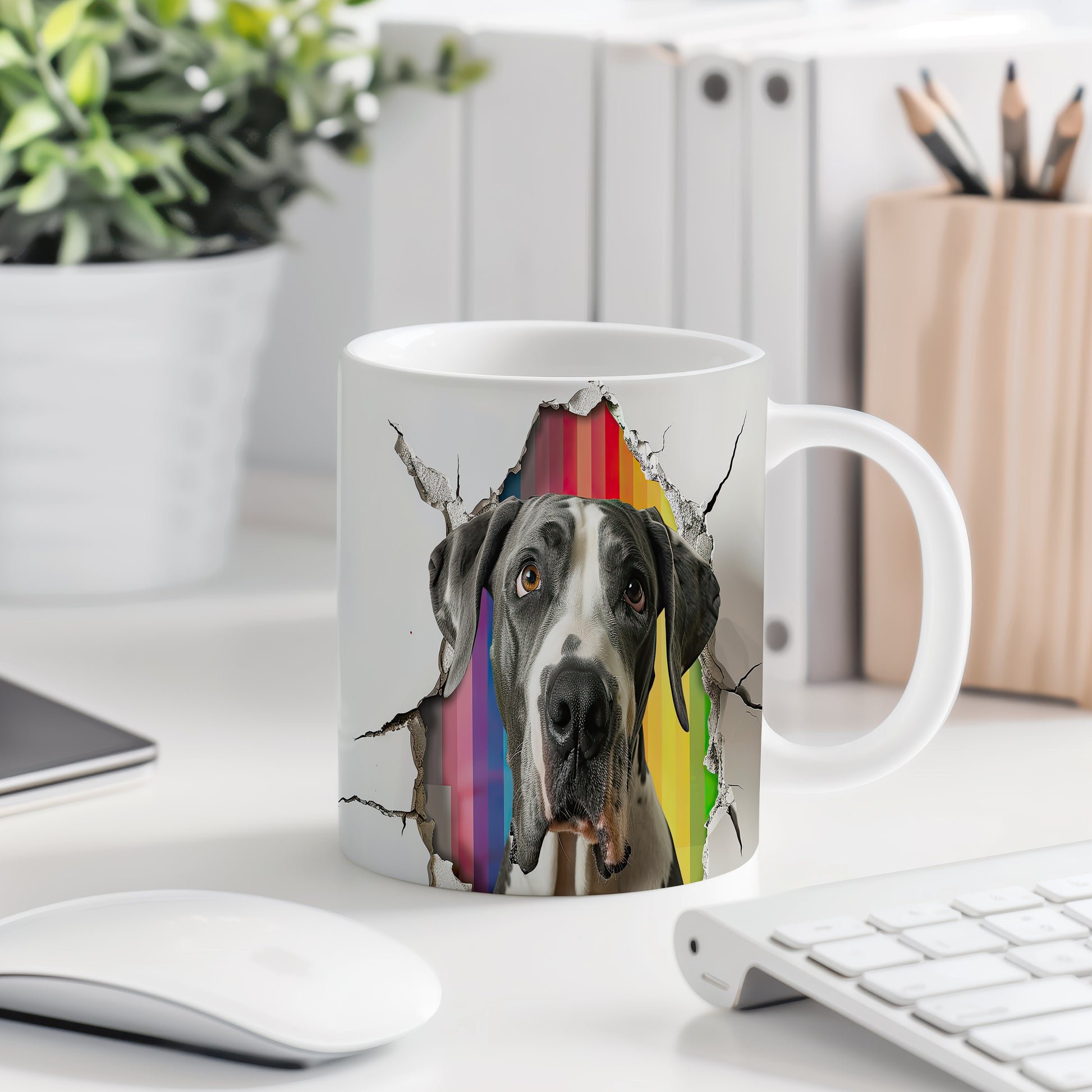 Hrnek - německá doga na barevném pozadí