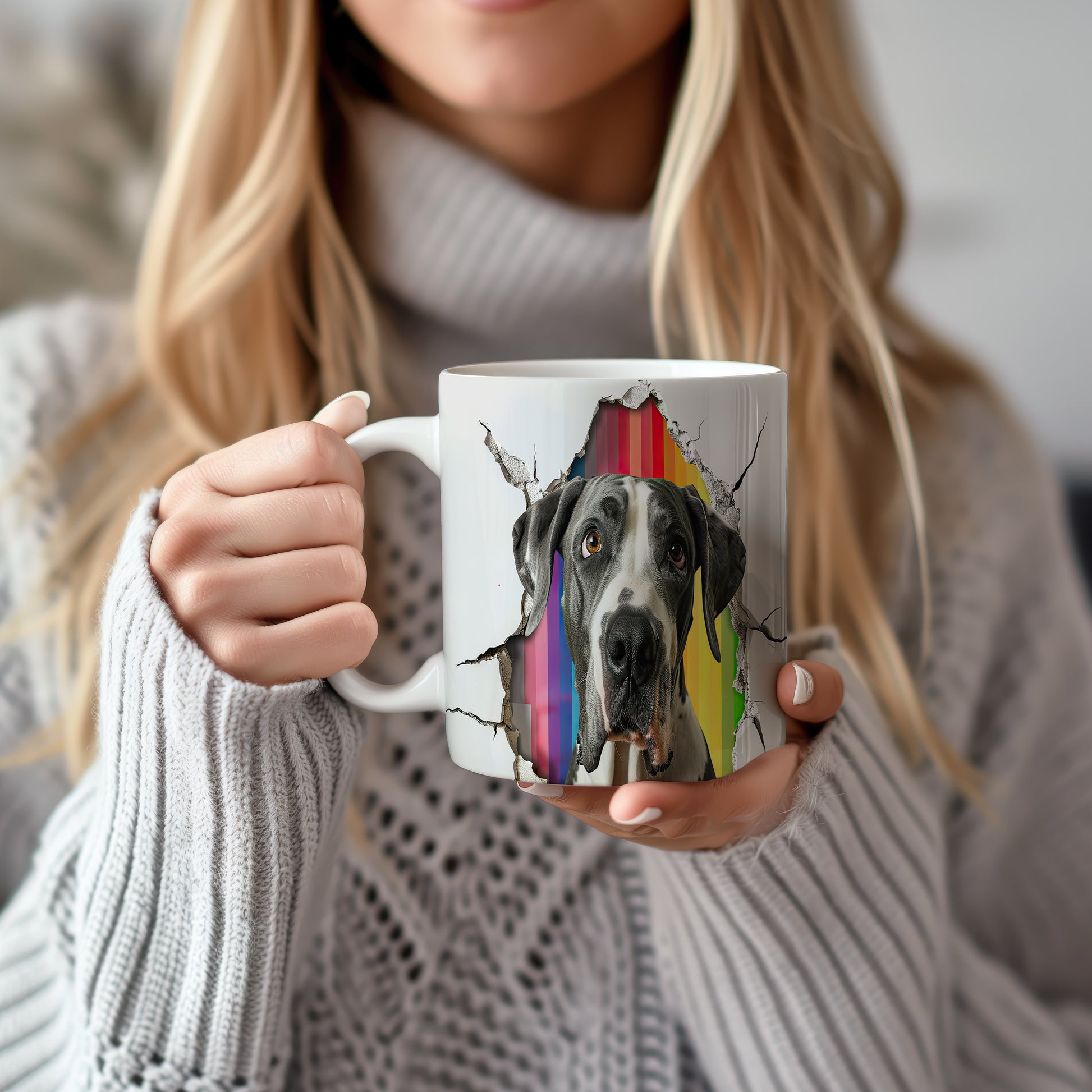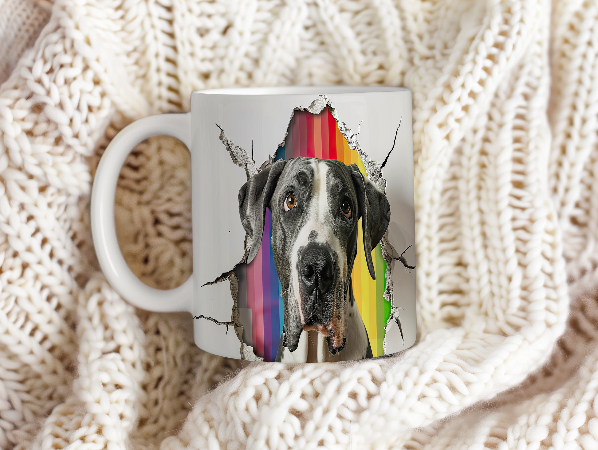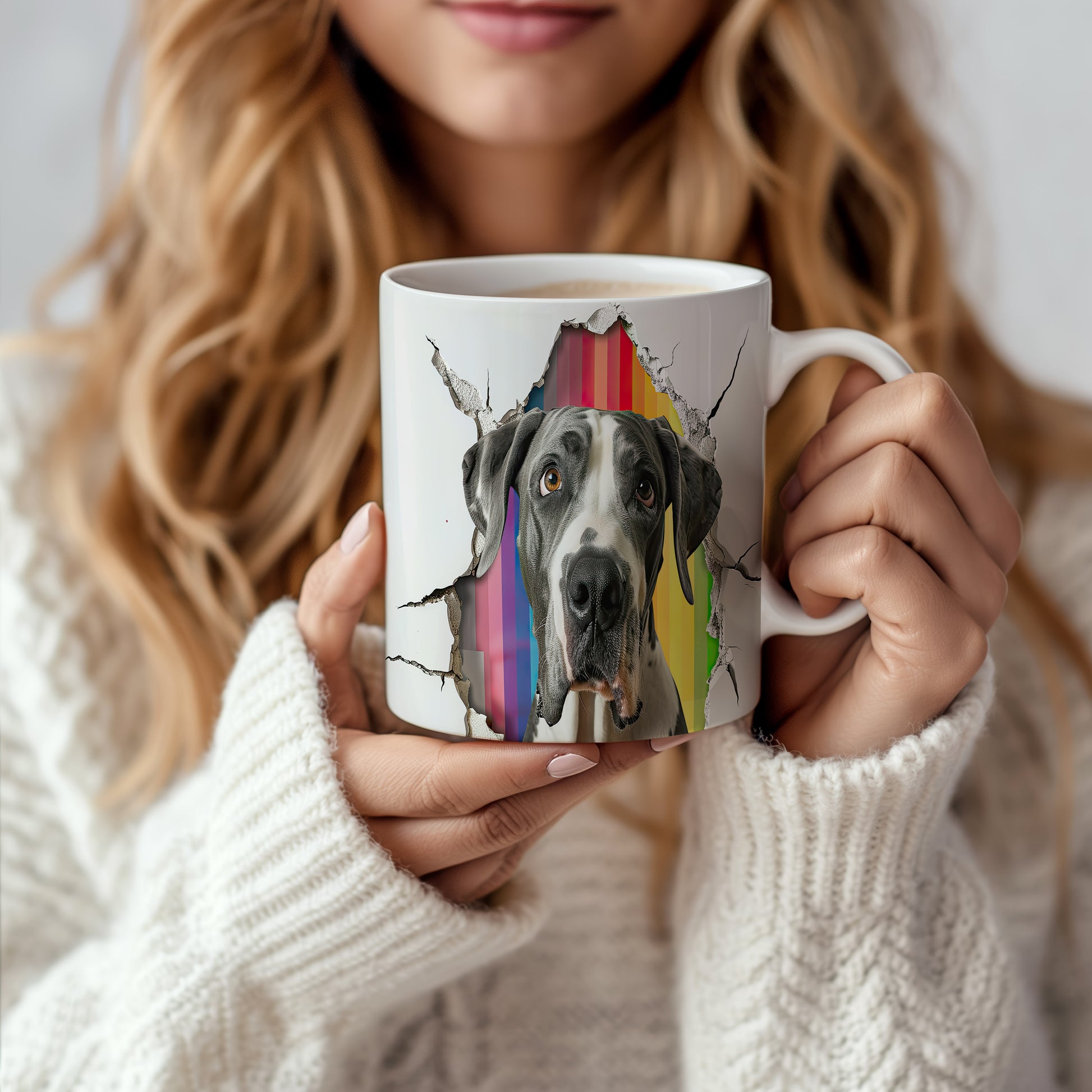 Hrnek - německá doga na barevném pozadí