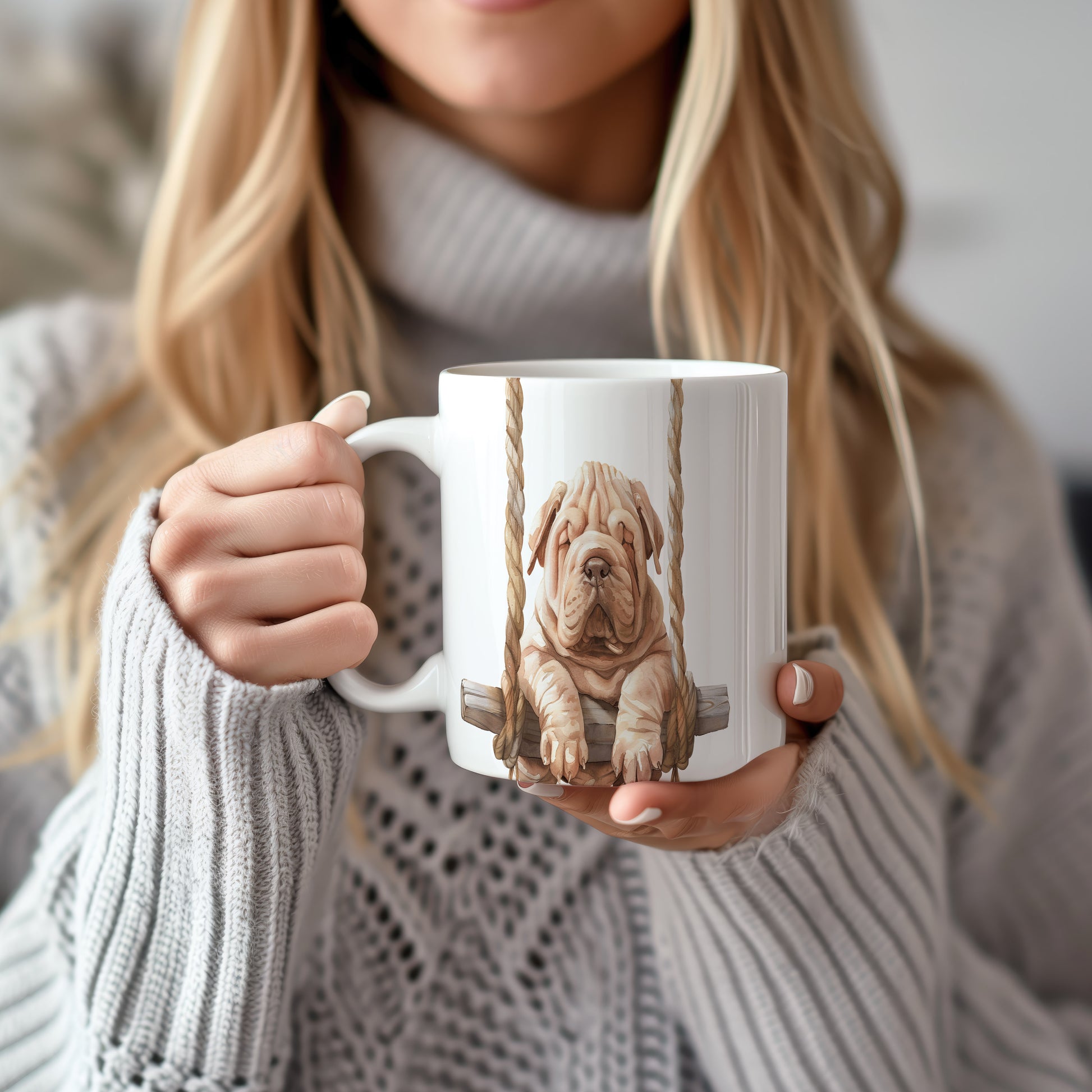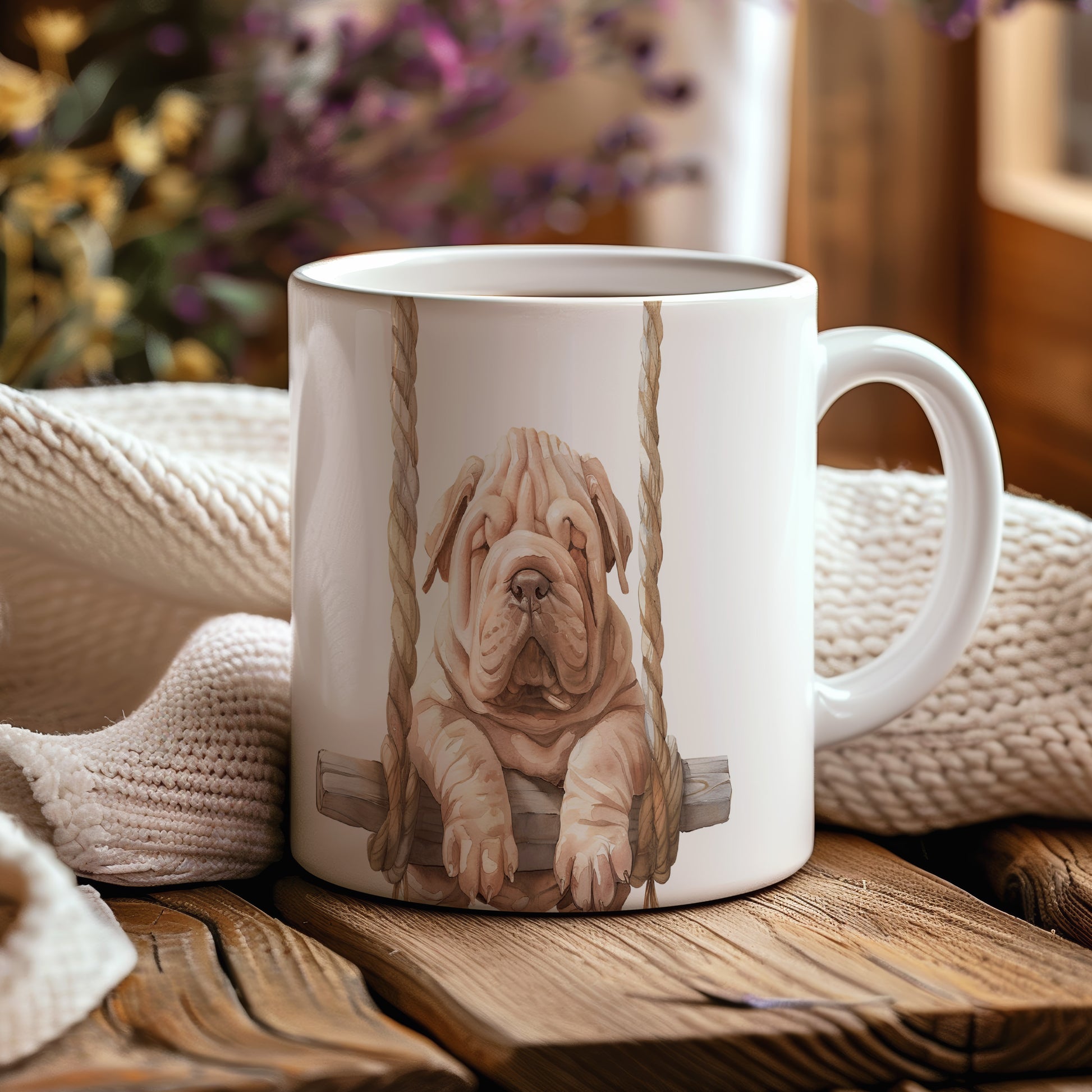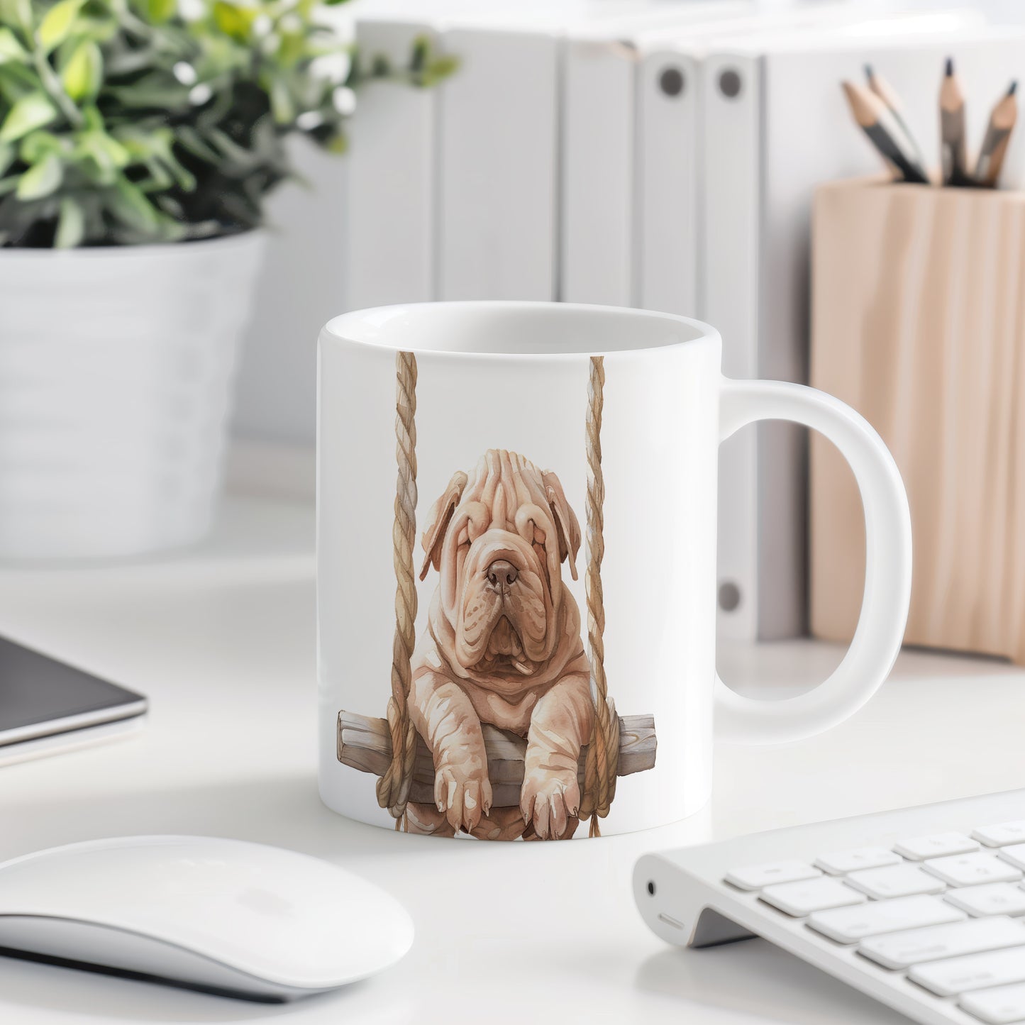 Hrnek s motivem psa plemene Shar Pei na houpačce přináší vtipnou atmosféru a radost do každé domácnosti. Je ideální jako dárek pro milovníky psů a originálních designů. Materiál: keramika. Objem: 330 ml. Vhodné do myčky i mikrovlnky. Tento hrnek vám zpříjemní každé ráno a dodá vašemu pití osobitý styl.