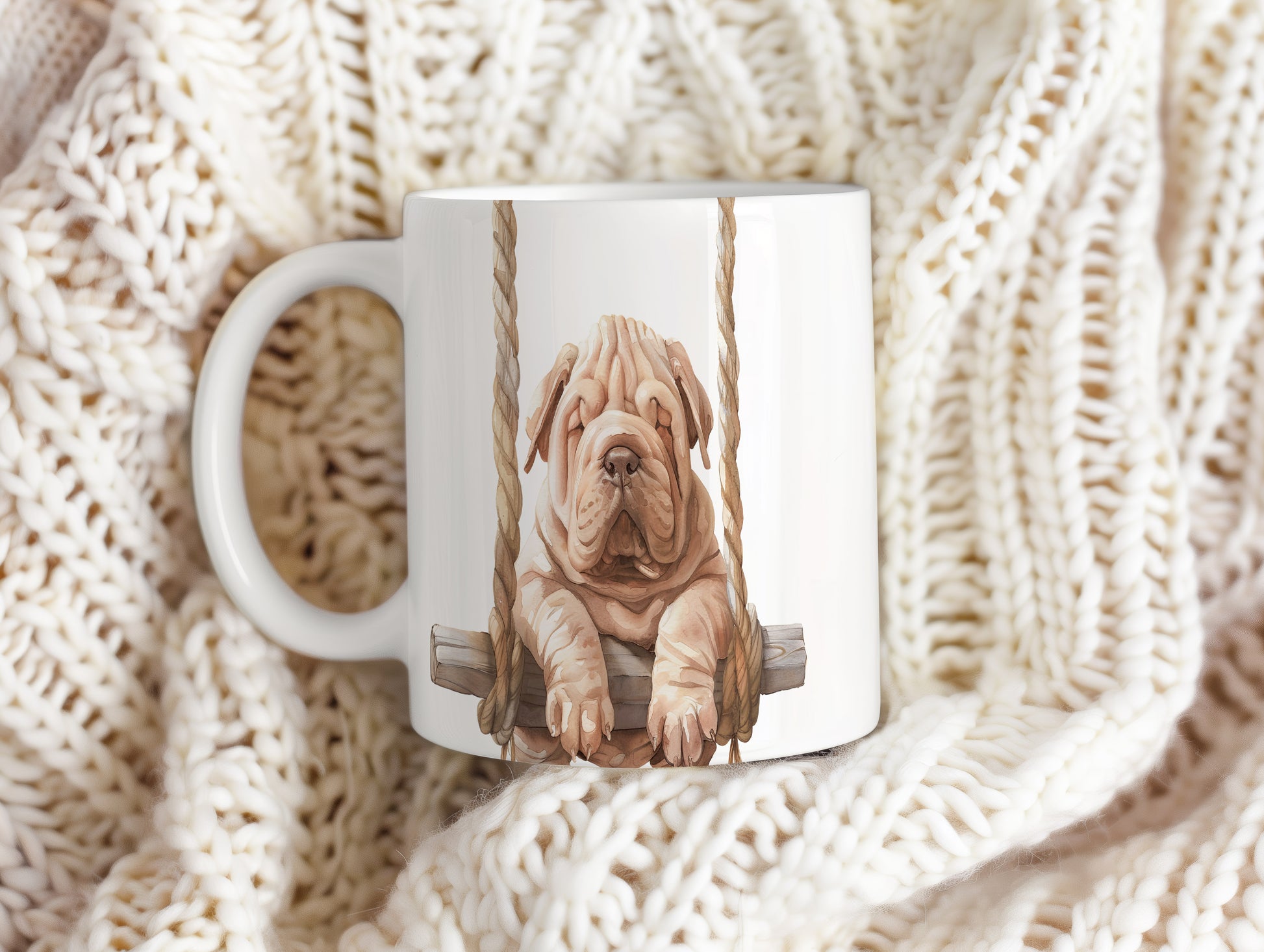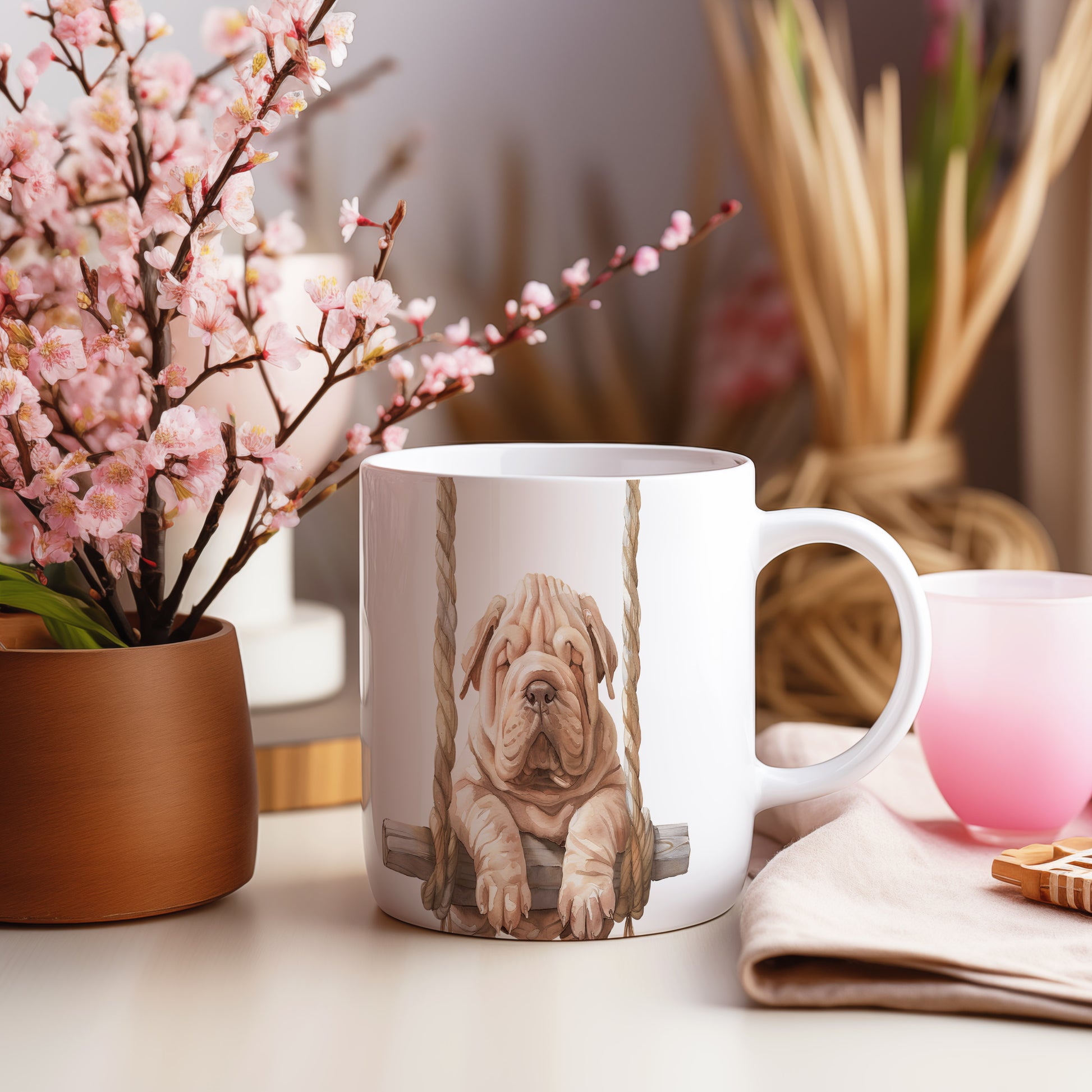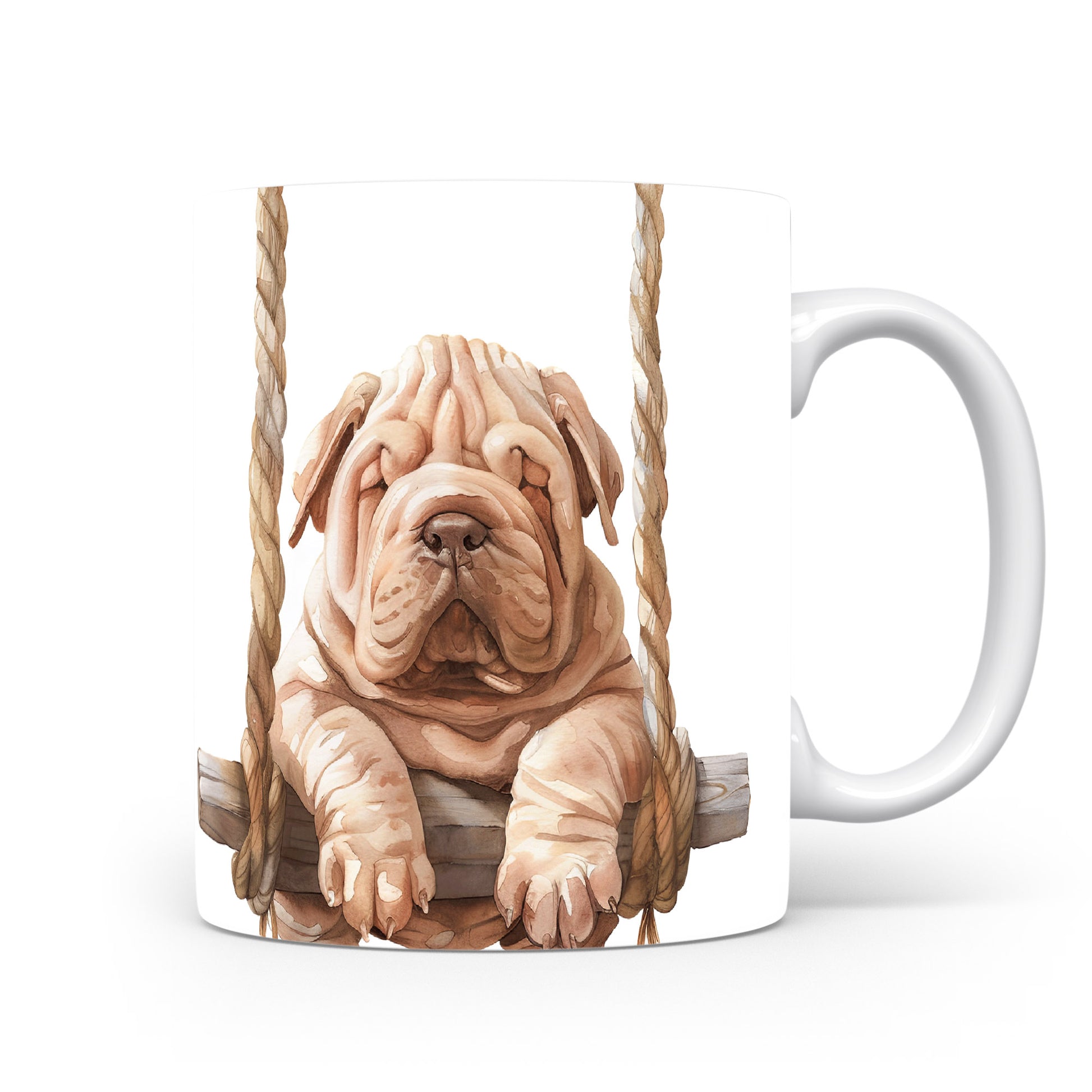 Hrnek s motivem psa plemene Shar Pei na houpačce přináší vtipnou atmosféru a radost do každé domácnosti. Je ideální jako dárek pro milovníky psů a originálních designů. Materiál: keramika. Objem: 330 ml. Vhodné do myčky i mikrovlnky. Tento hrnek vám zpříjemní každé ráno a dodá vašemu pití osobitý styl.