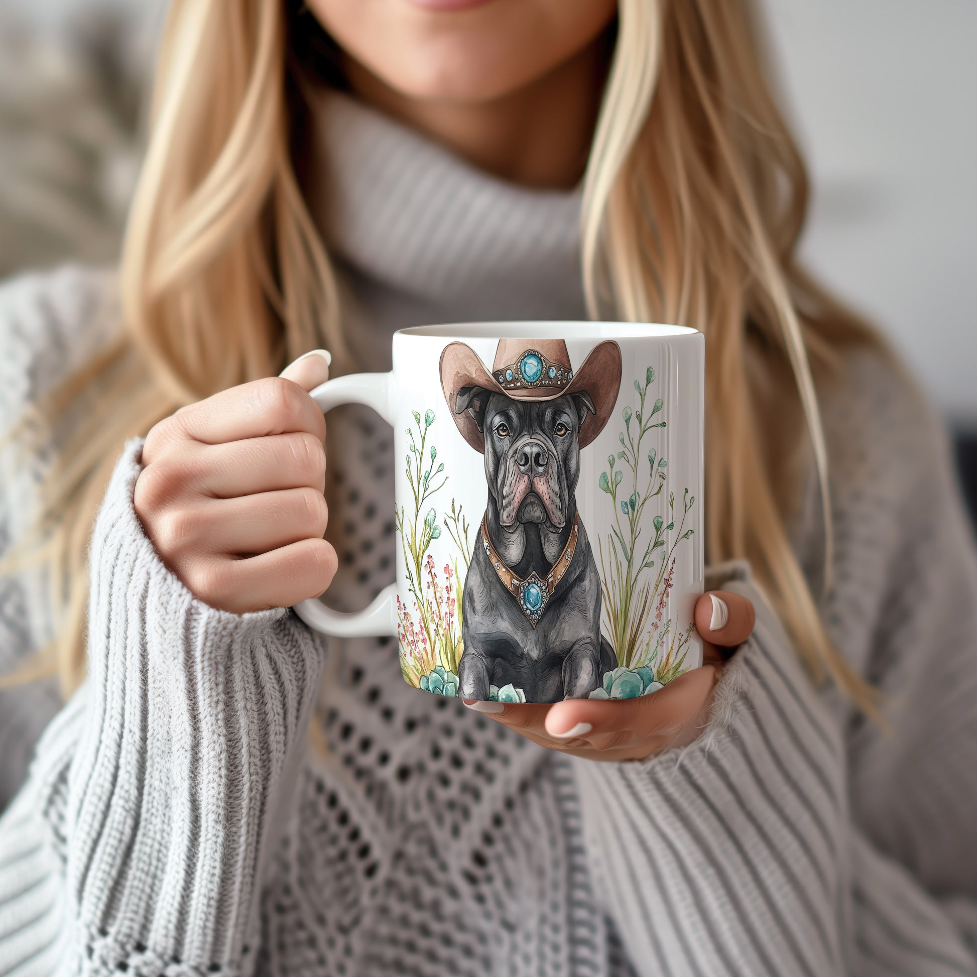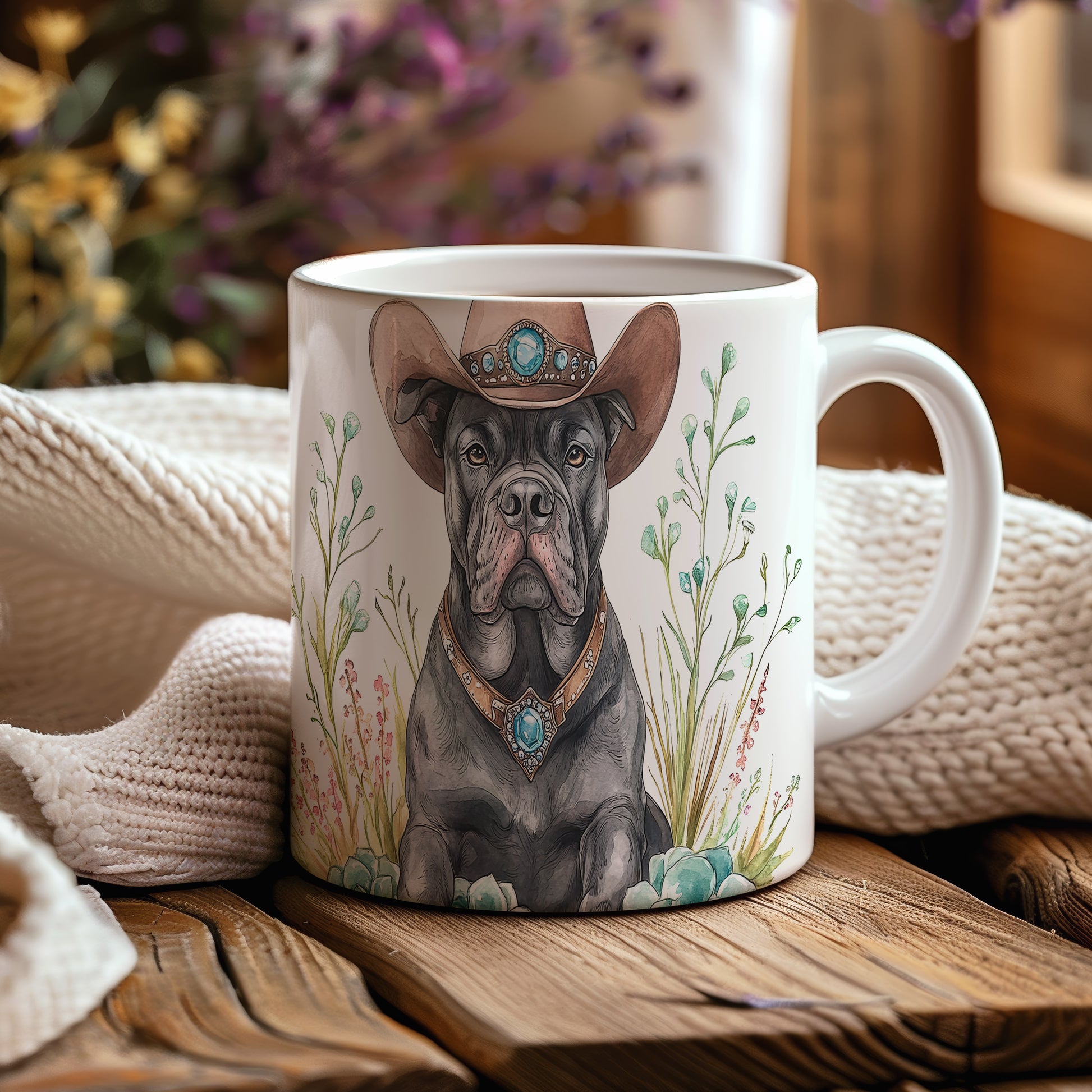 Hrnek s ilustrací psa v kovbojském klobouku a náhrdelníkem. Tento hrnek je ideální pro milovníky zvířat a skvělým dárkem pro přátele či rodinu. Materiál: keramika. Objem: 330 ml. Vhodné do myčky i mikrovlnky. Užijte si kávu nebo čaj s tímto originálním kouskem, který přinese úsměv na tvář.