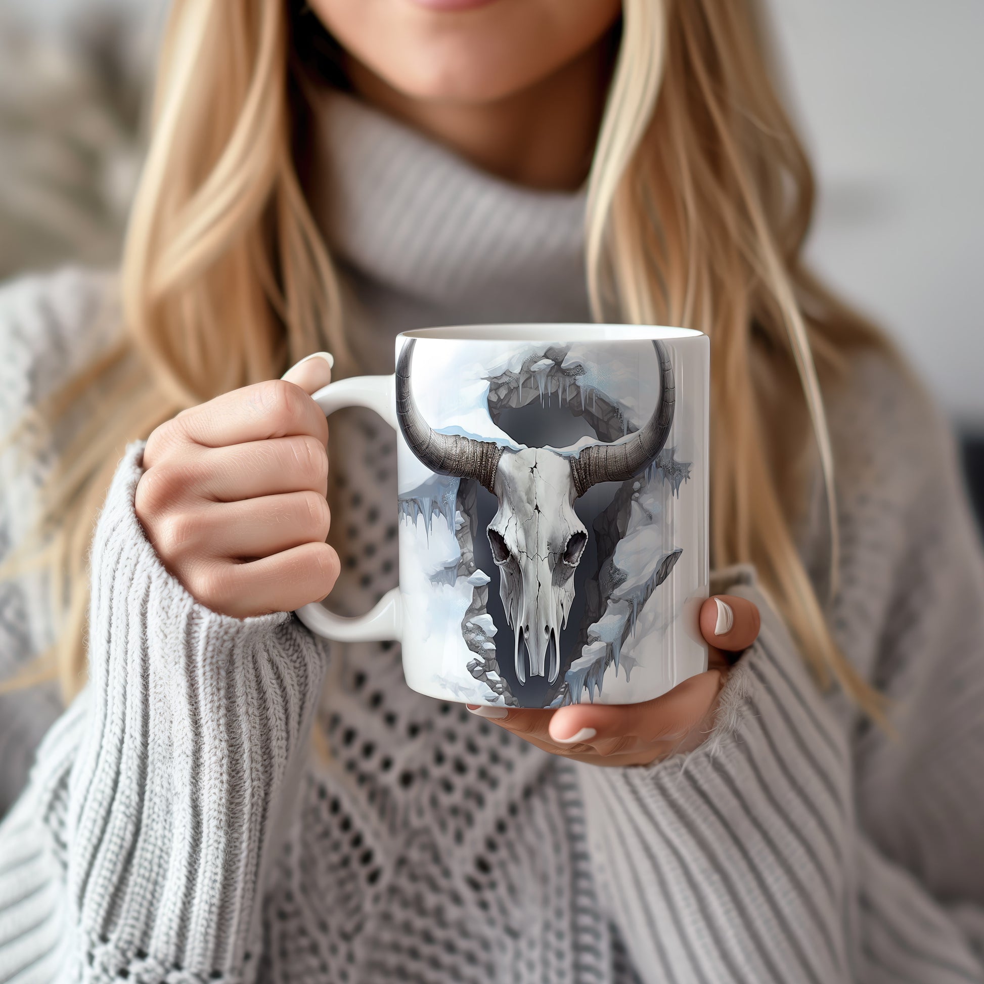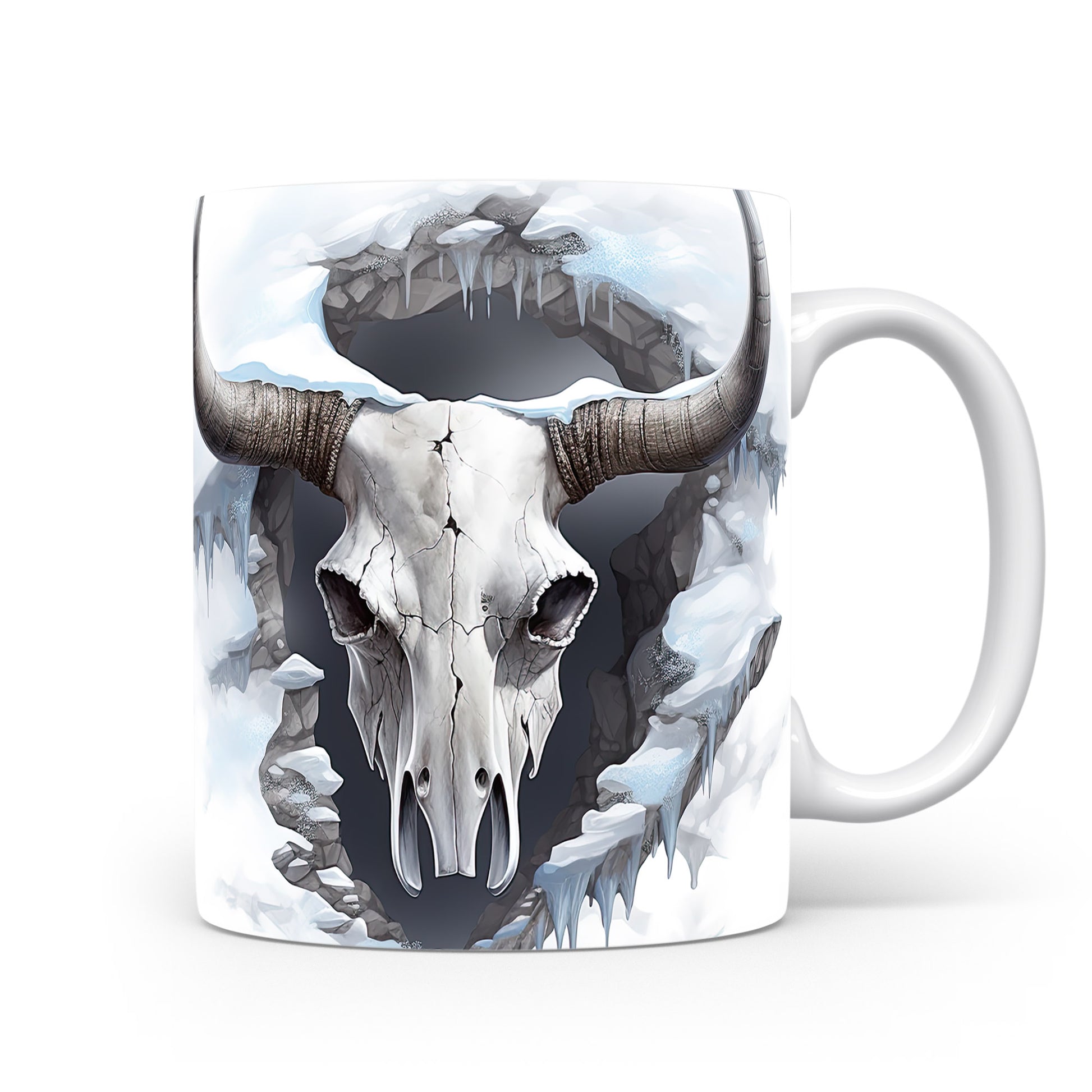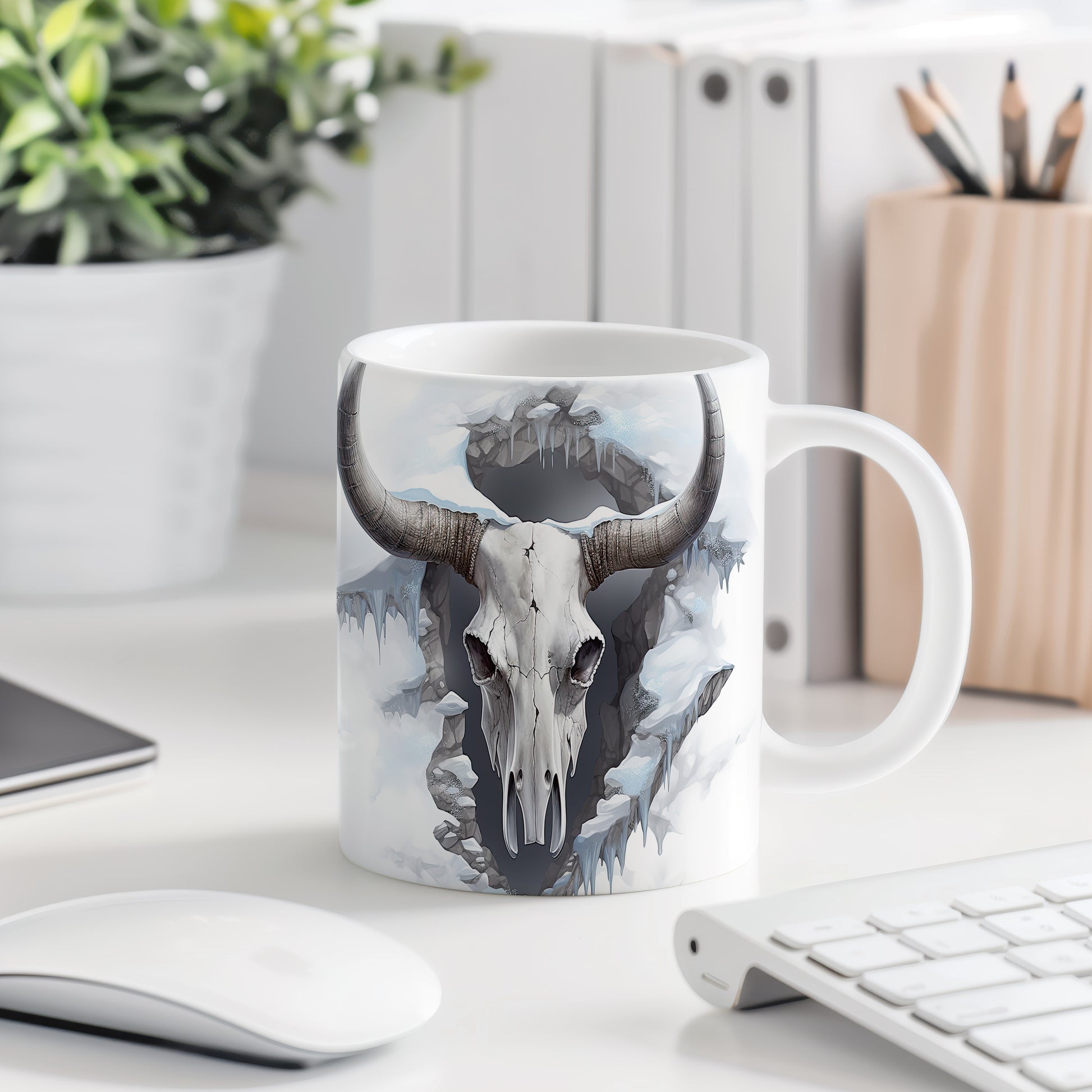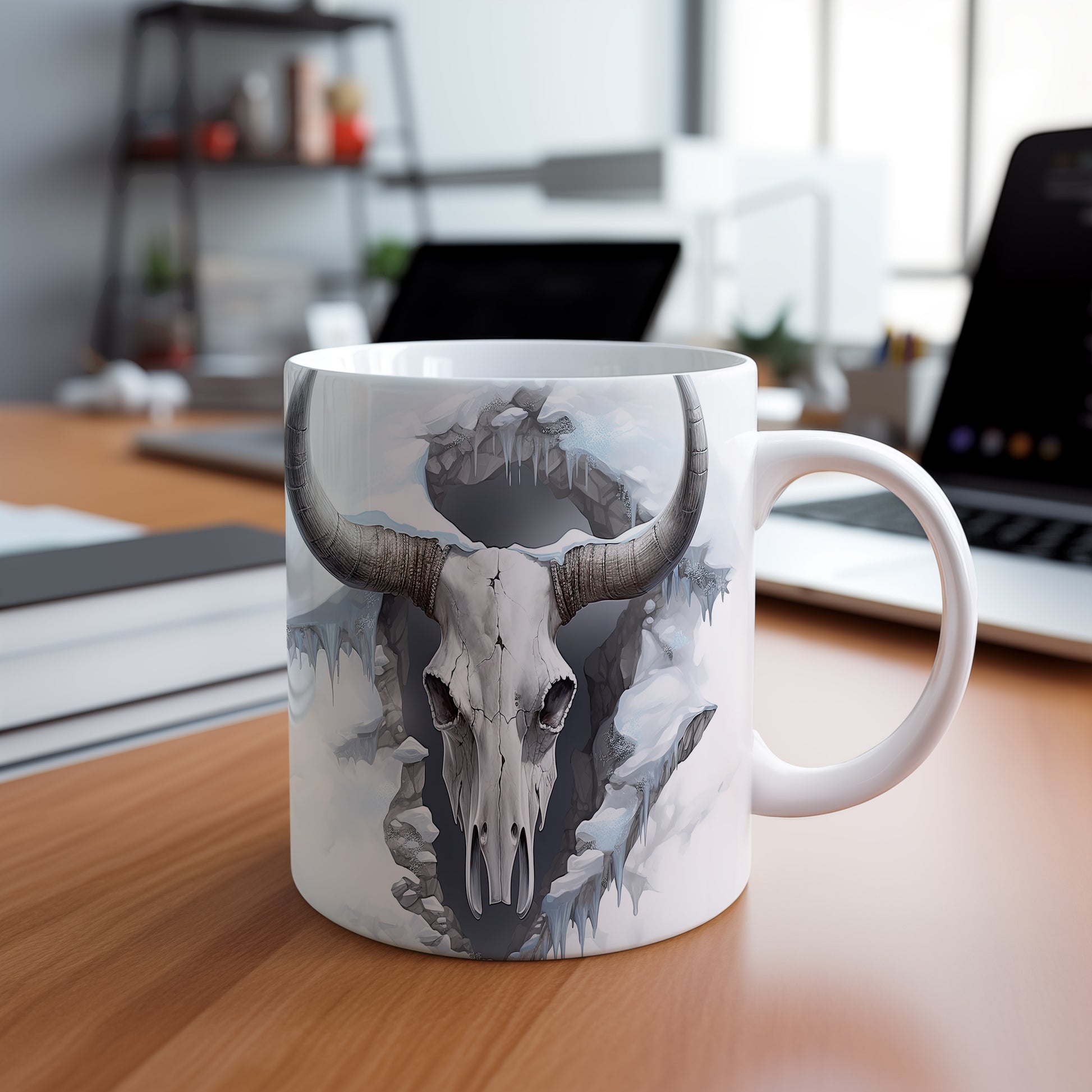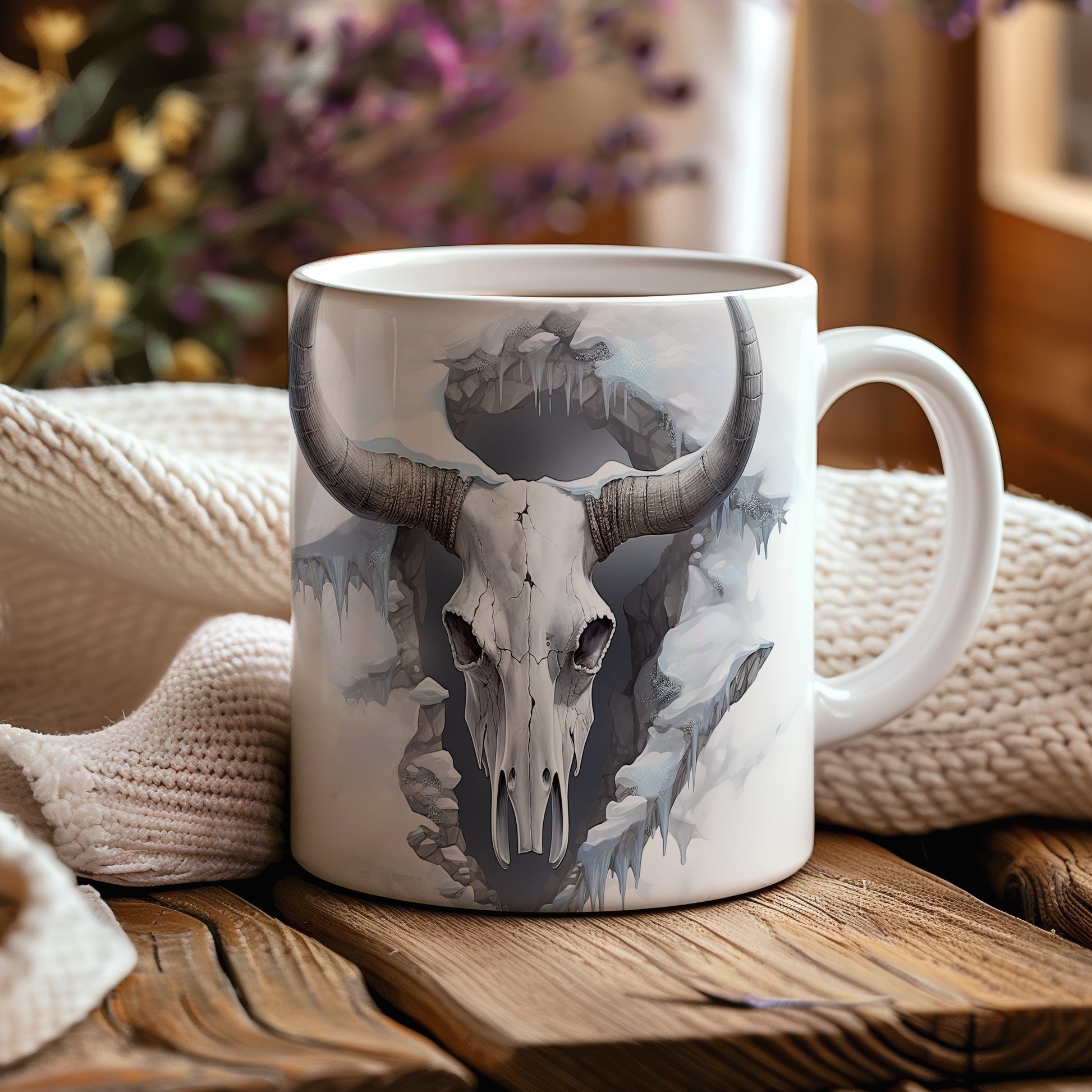 Tento hrnek zobrazuje uměleckou ilustraci býčí lebky na pozadí zasněžených hor. Je ideální pro milovníky přírody a neobvyklých motivů, skvělý tip na dárek pro přátele nebo rodinu. Materiál: keramika. Objem: 330 ml. Vhodné do myčky i mikrovlnky. Používání tohoto hrnku přináší jedinečný zážitek z pití.