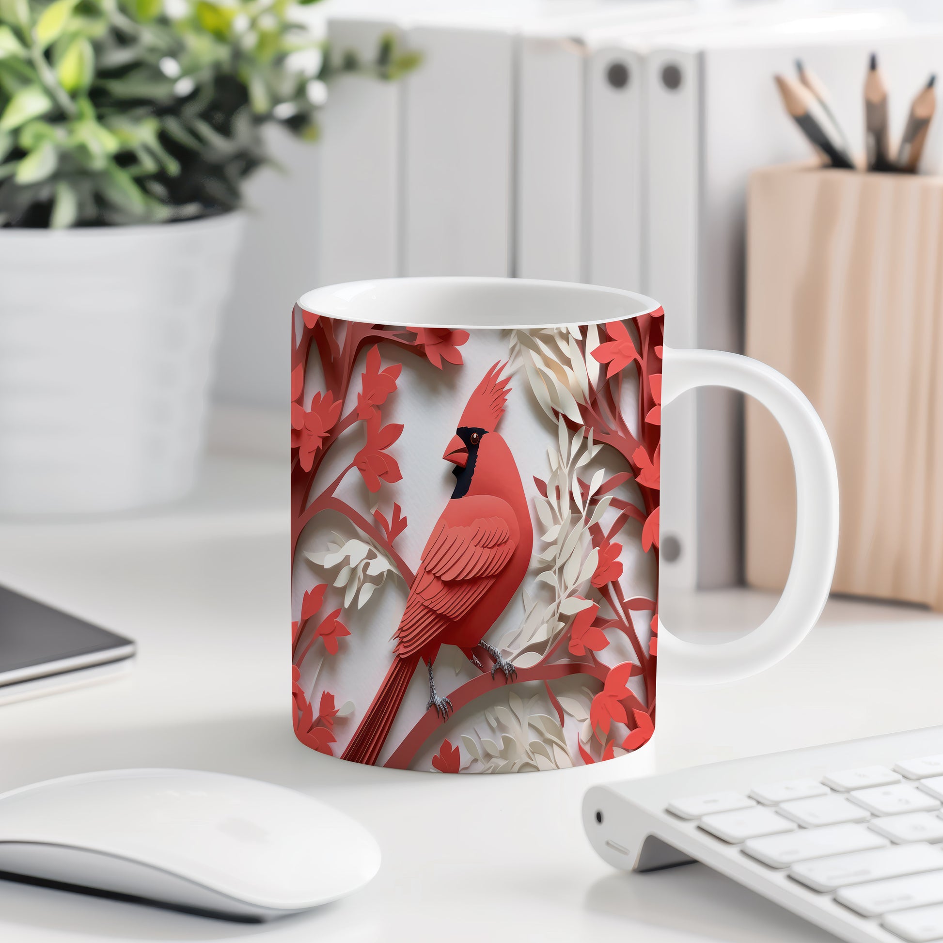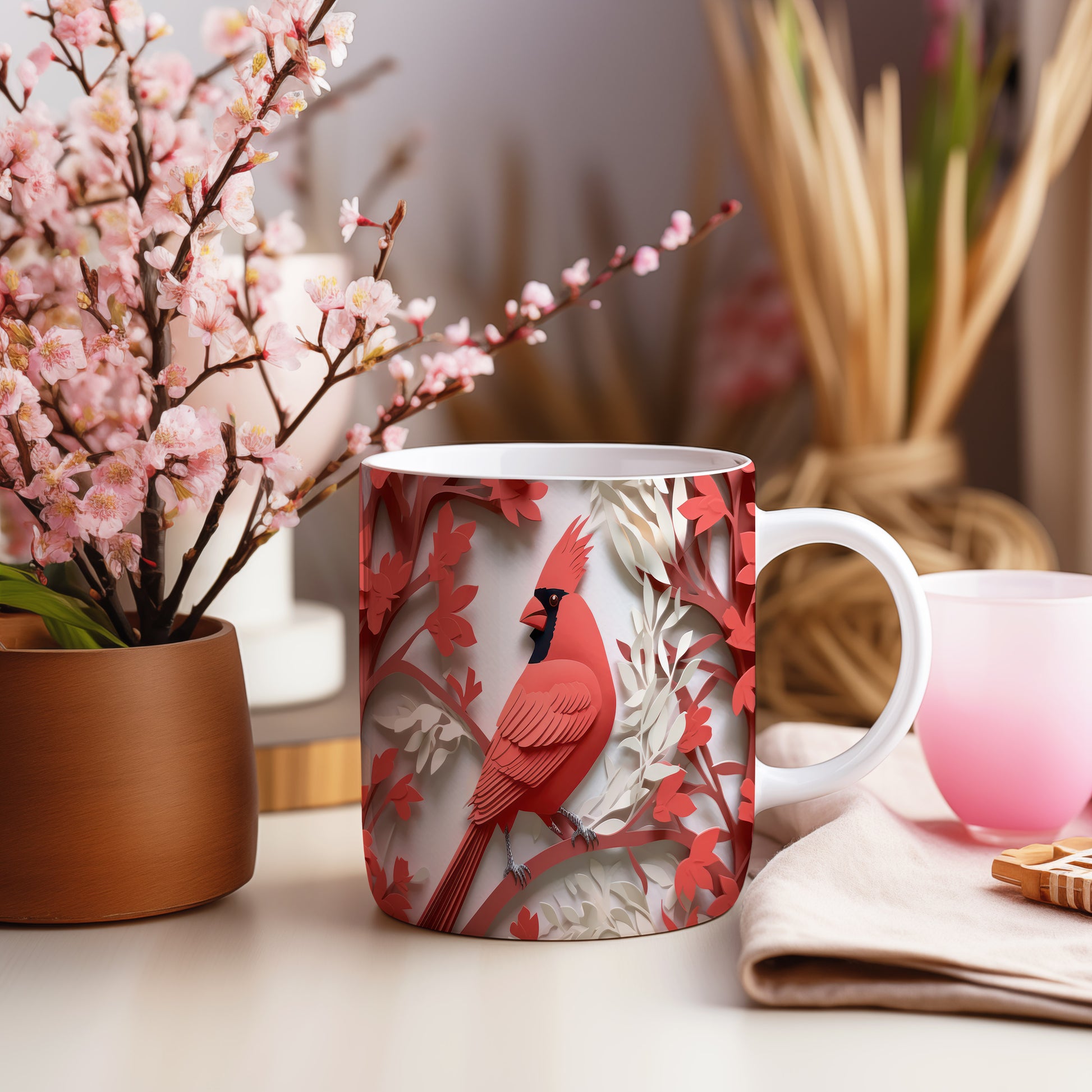 Tento hrnek s motivem cardinála a květin je skvělým kouskem pro milovníky přírody. Je ideální jako dárek pro přátele nebo rodinu, kteří ocení kreativní design. Materiál: keramika. Objem: 330 ml. Vhodné do myčky i mikrovlnky. Díky svému jedinečnému vzhledu přináší do každodenního pití radost a styl.