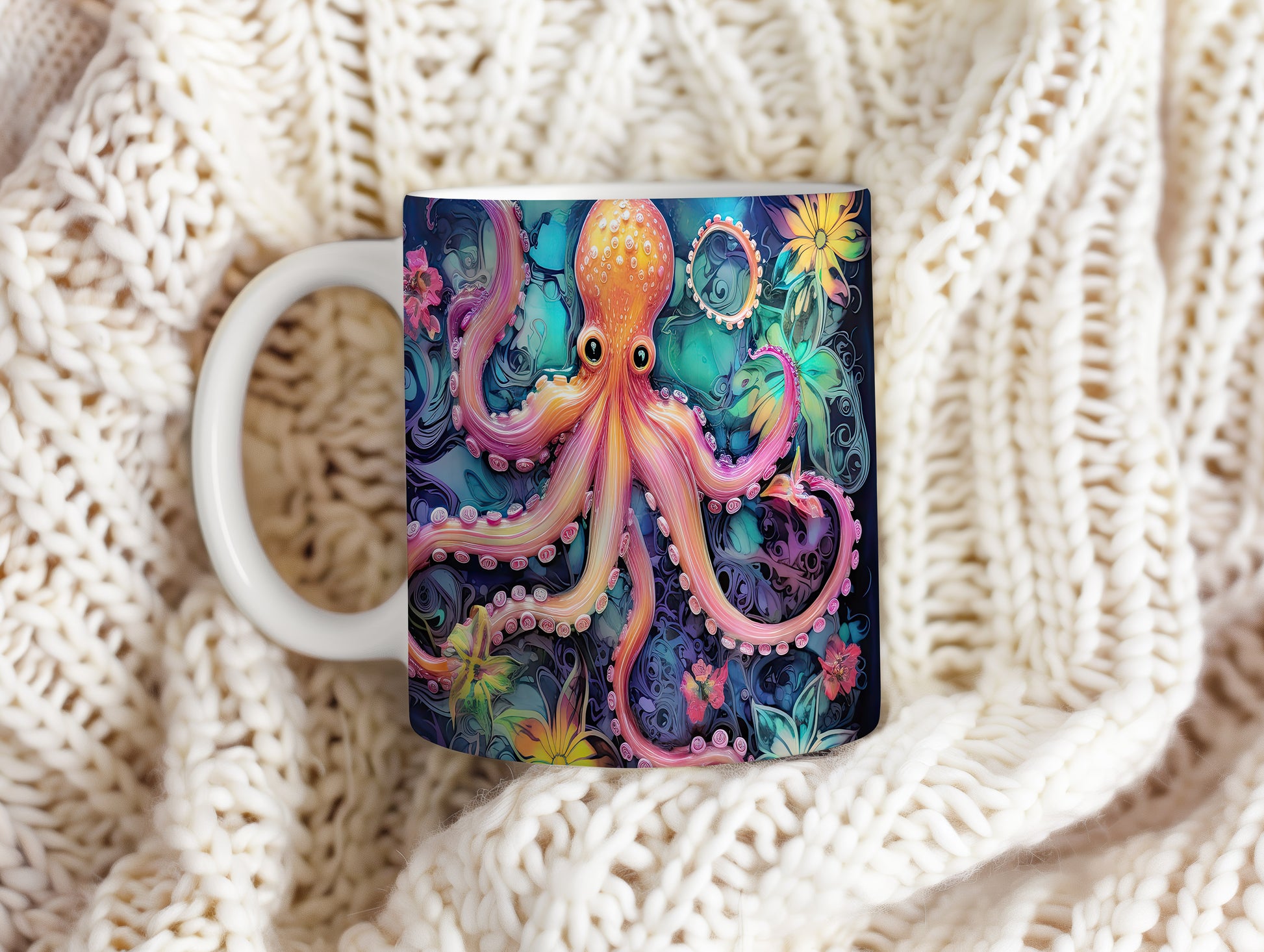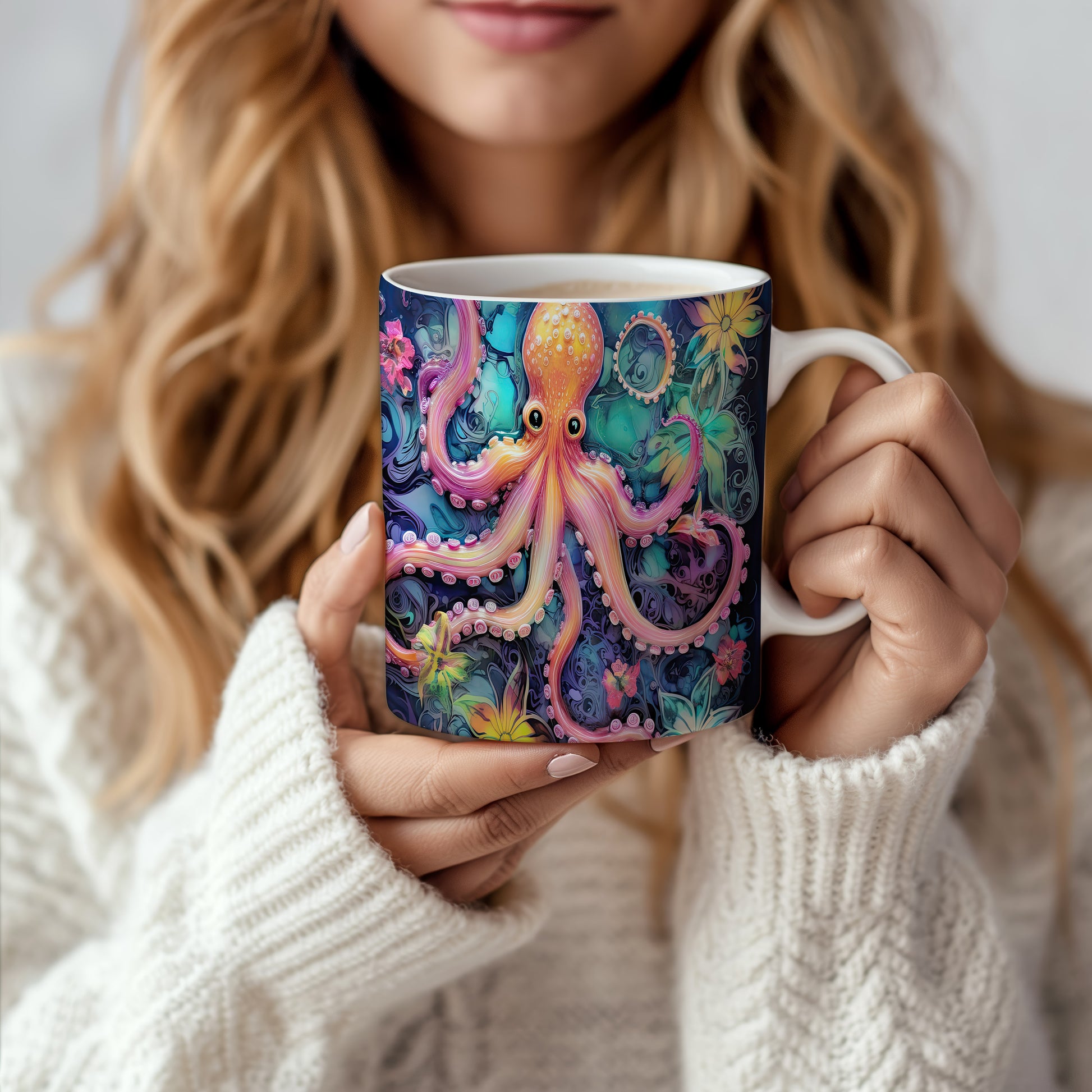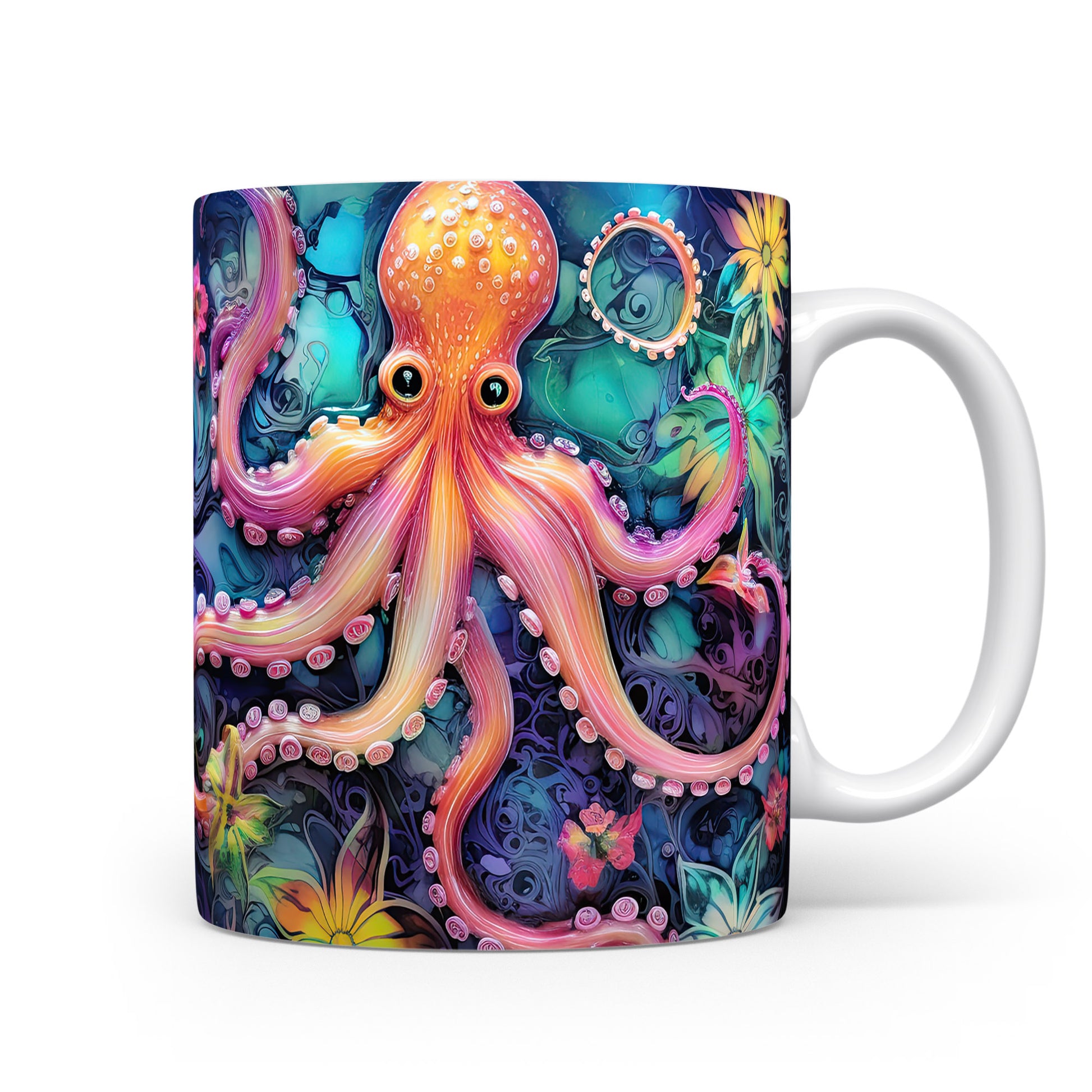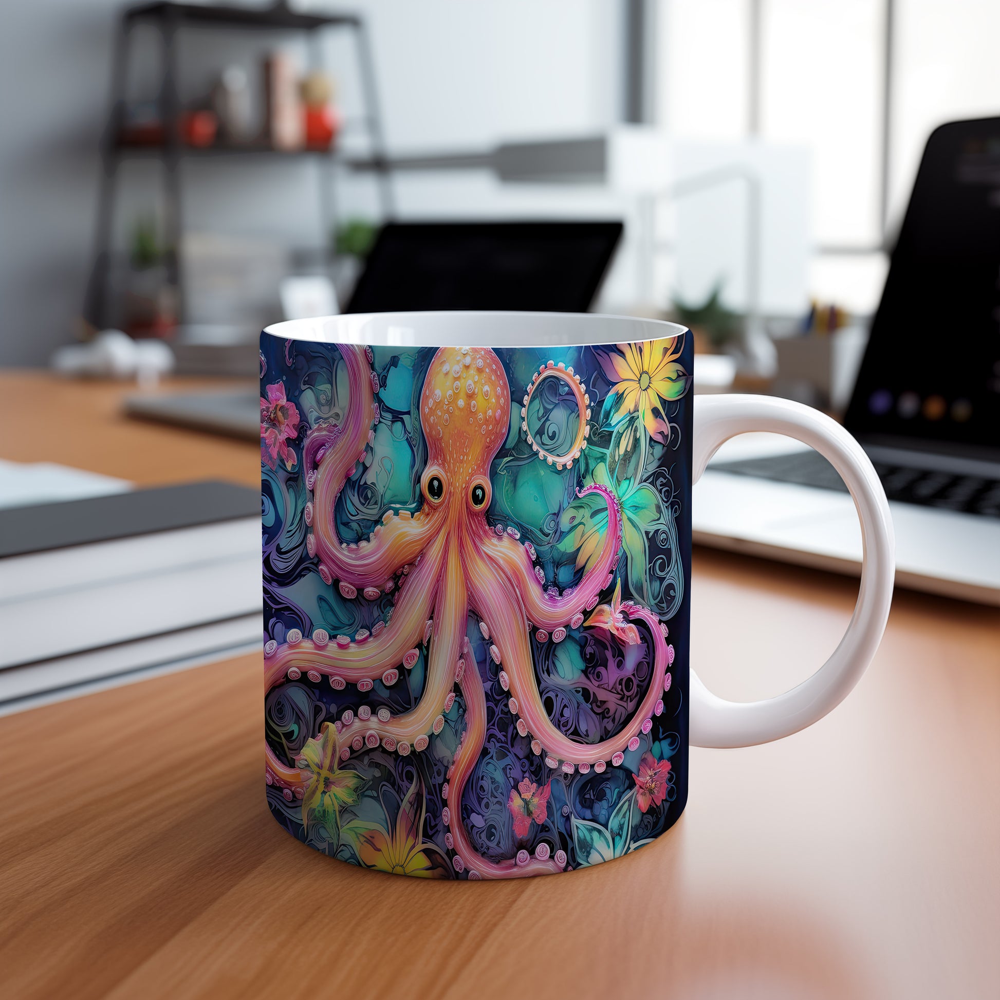 Tento keramický hrnek s motivem chobotnice a barevných květin je skvělým kouskem pro milovníky oceánu a přírody. Je ideální jako dárek pro přátele nebo rodinu, kteří ocení originální design. Materiál: keramika. Objem: 330 ml. Vhodné do myčky i mikrovlnky. Díky svému jedinečnému vzhledu přináší do každodenního pití radost a styl.