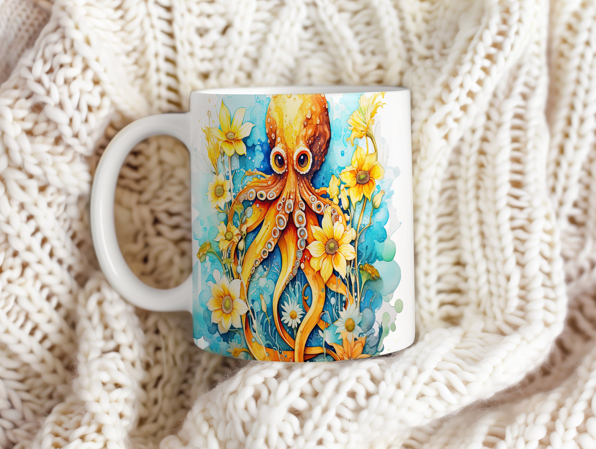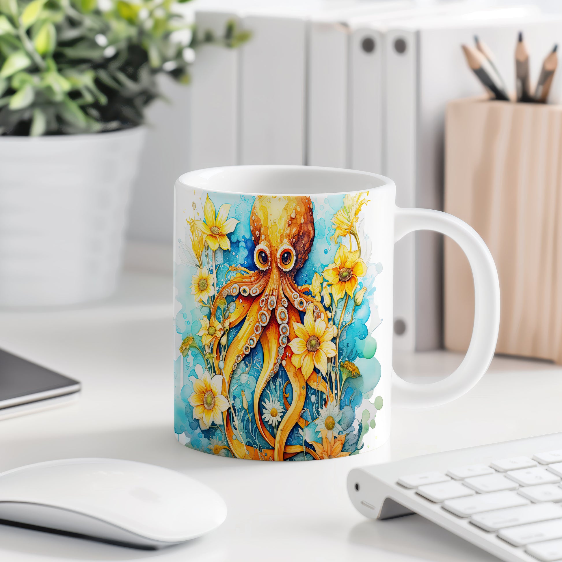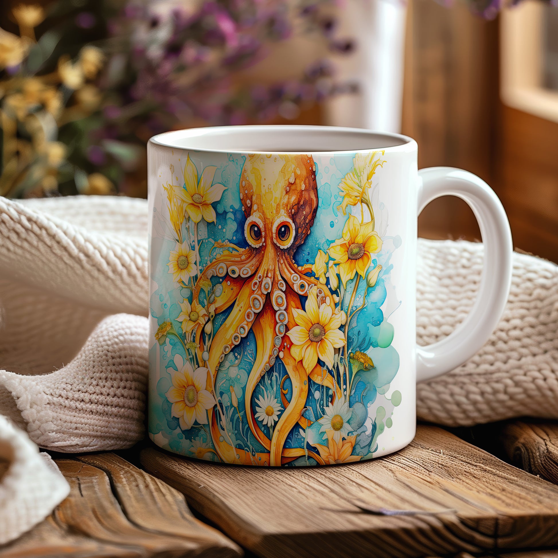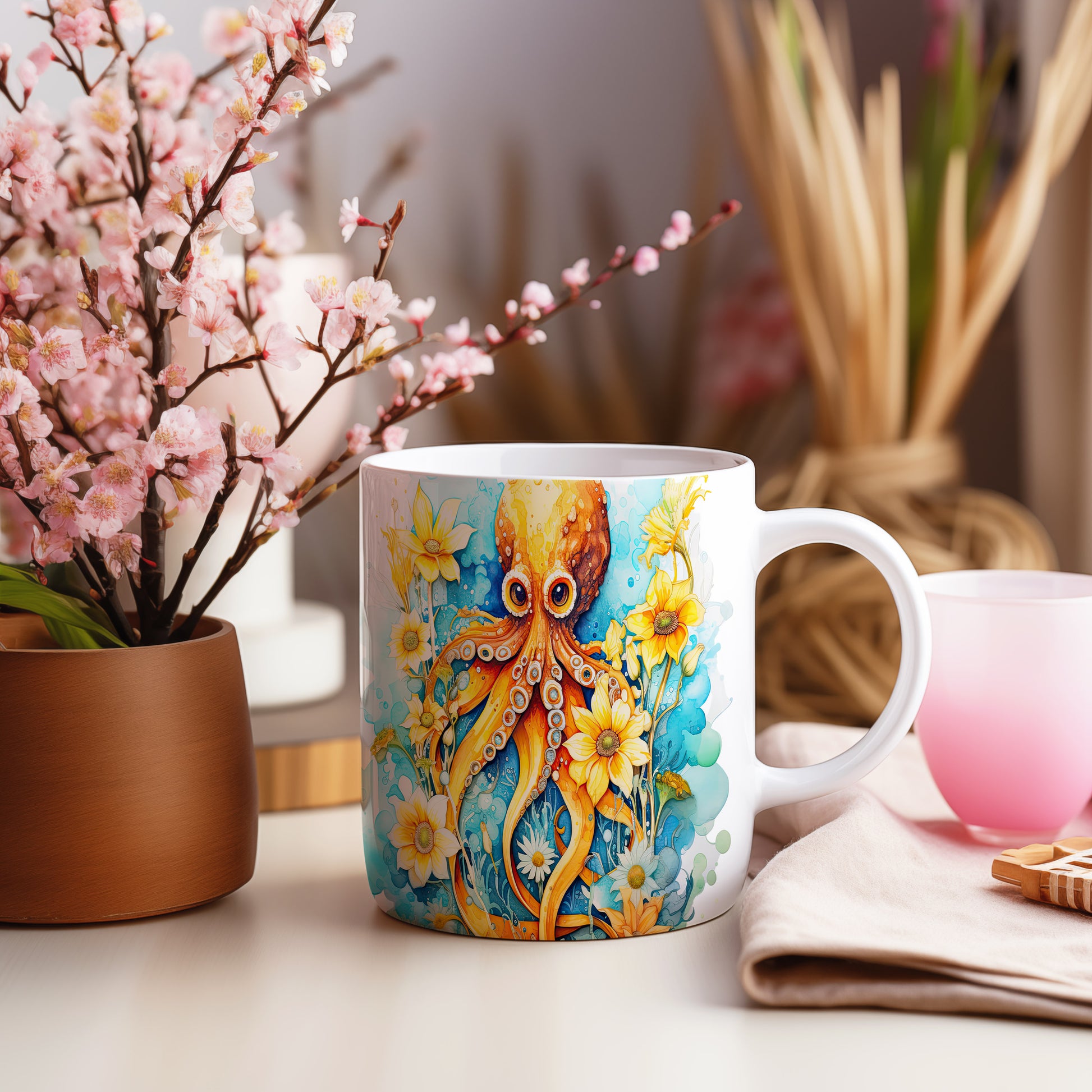 Hrnek s chobotnicí a květinami