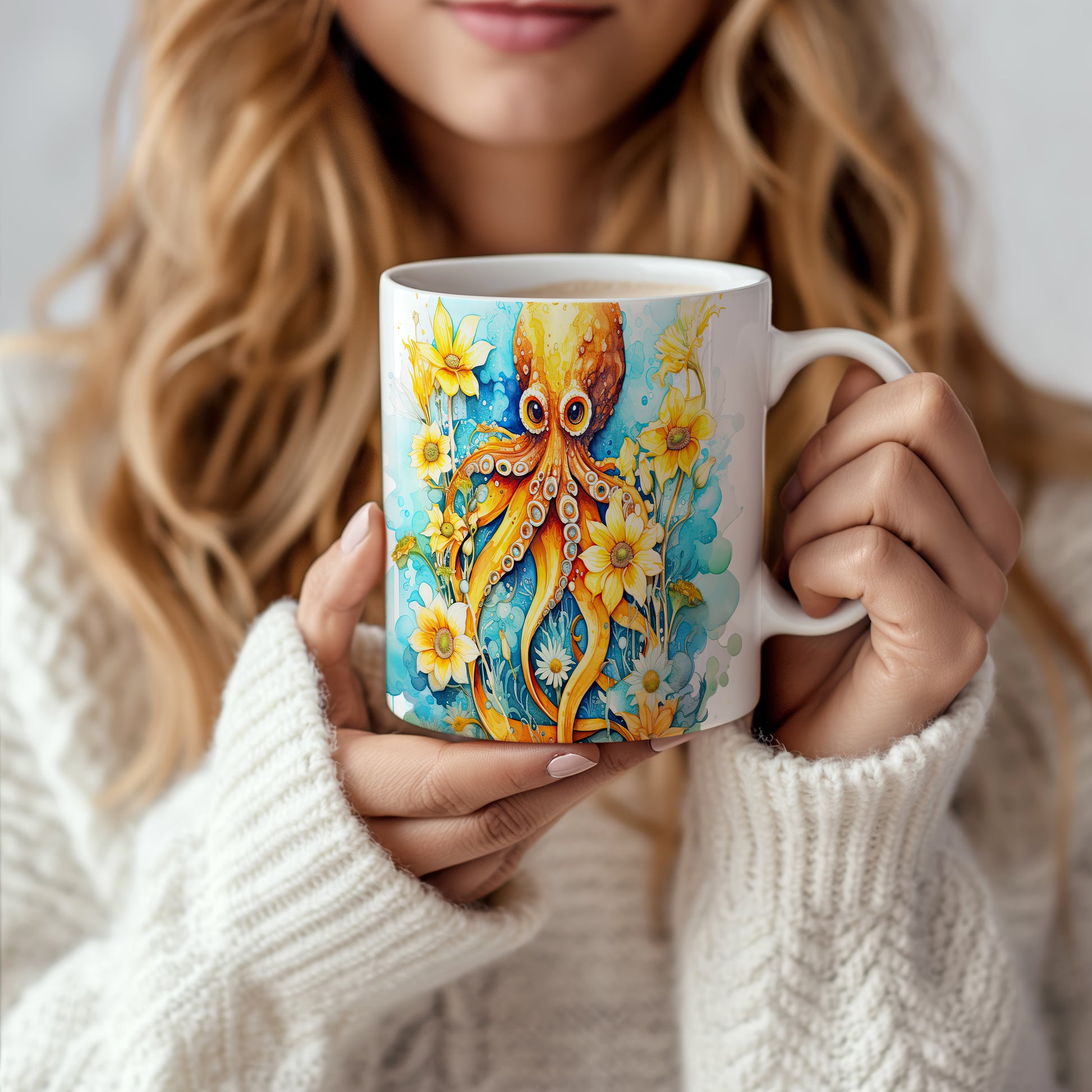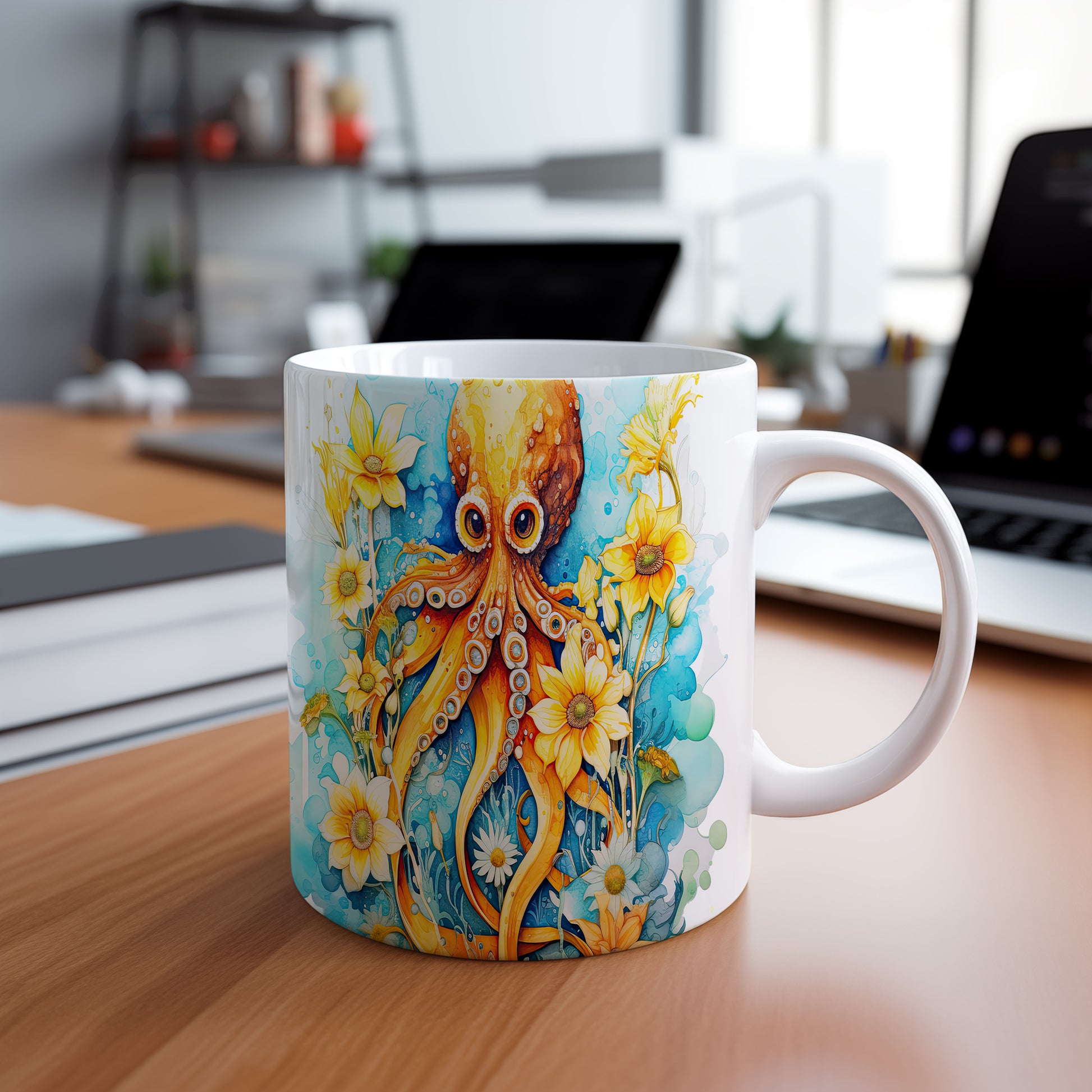 Keramický hrnek s barevnou ilustrací chobotnice obklopené květinami. Tento hrnek je ideální pro milovníky mořského světa a skvělým dárkem pro každého, kdo má rád originální design. Materiál: keramika. Objem: 330 ml. Vhodné do myčky i mikrovlnky. Používání tohoto hrnku přináší radost z každého doušku.