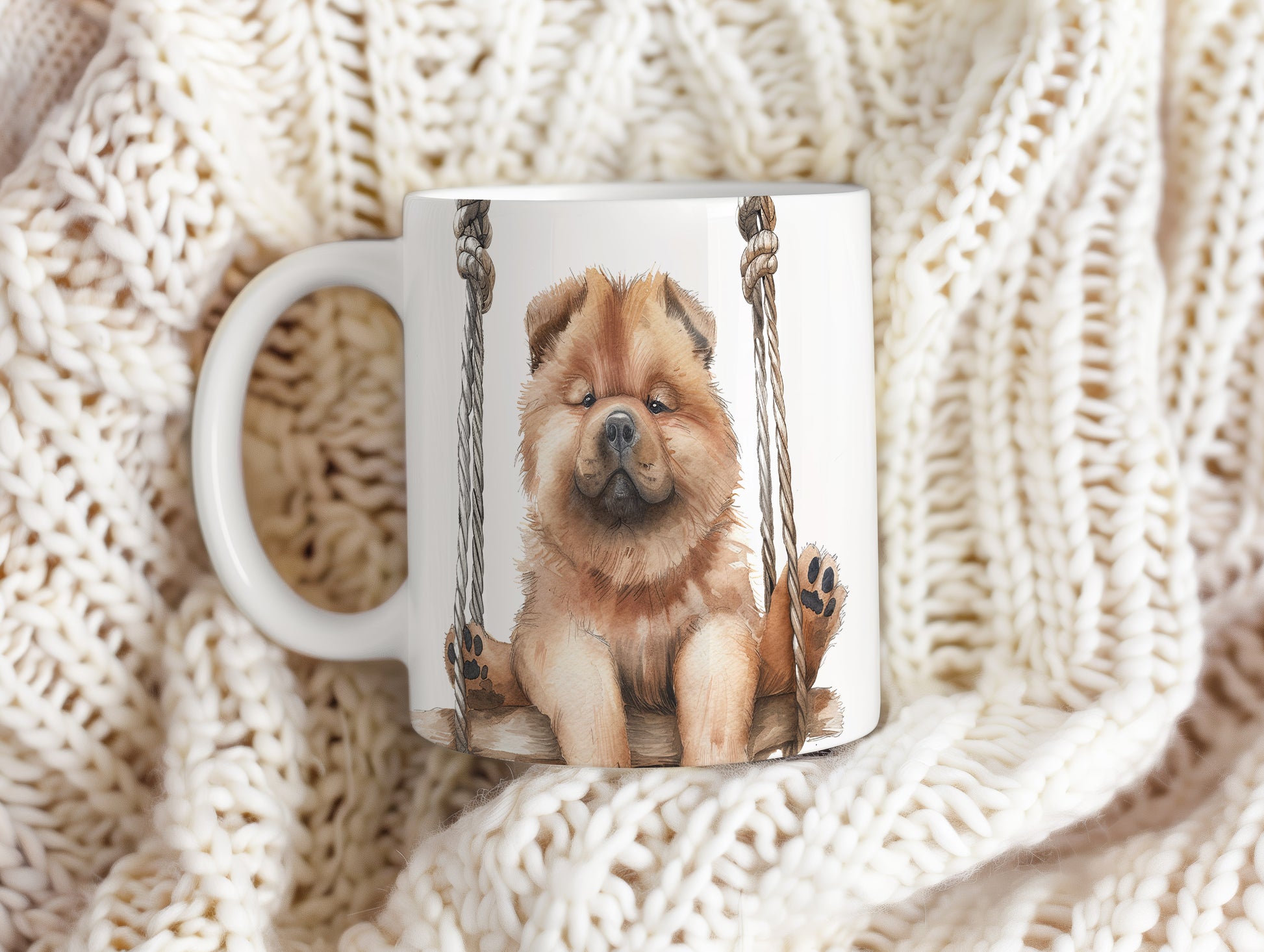 Na hrnku je zobrazen roztomilý pes plemene chow – chow sedící na houpačce. Tento motiv potěší všechny milovníky psů a skvěle se hodí jako osobní dárek. Materiál: keramika. Objem: 330 ml. Vhodné do myčky i mikrovlnky. Používání tohoto hrnku přináší radost a útulnost do každého dne.