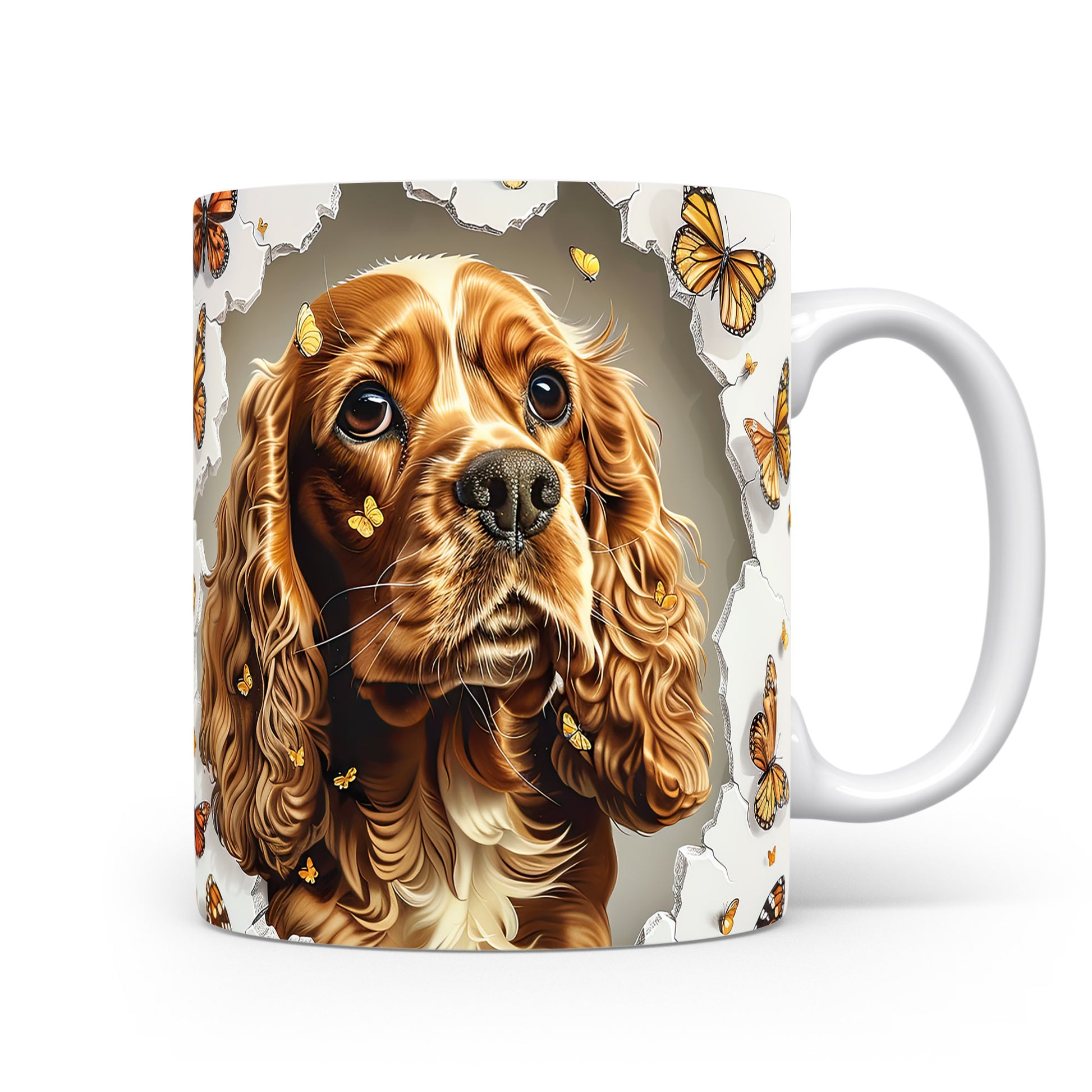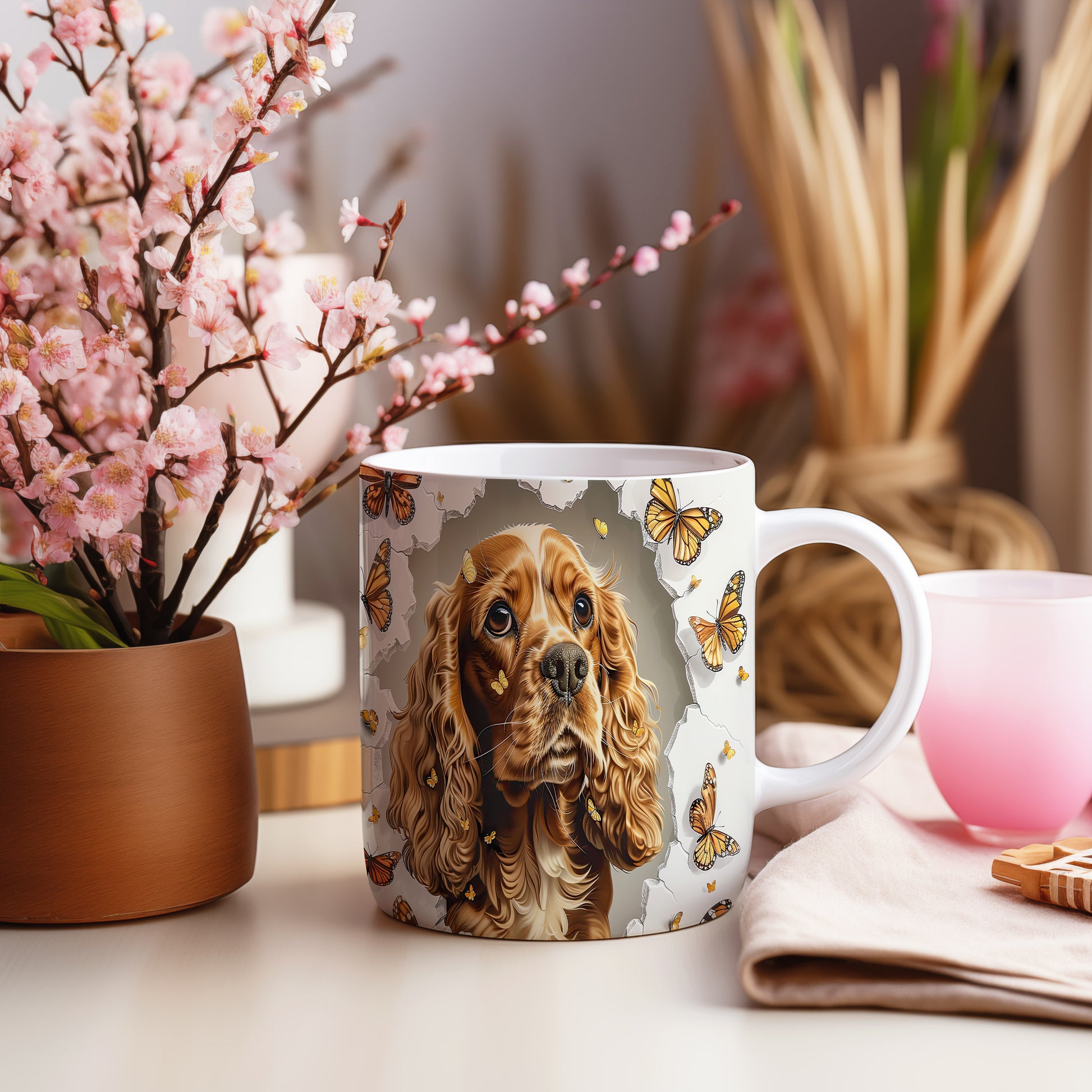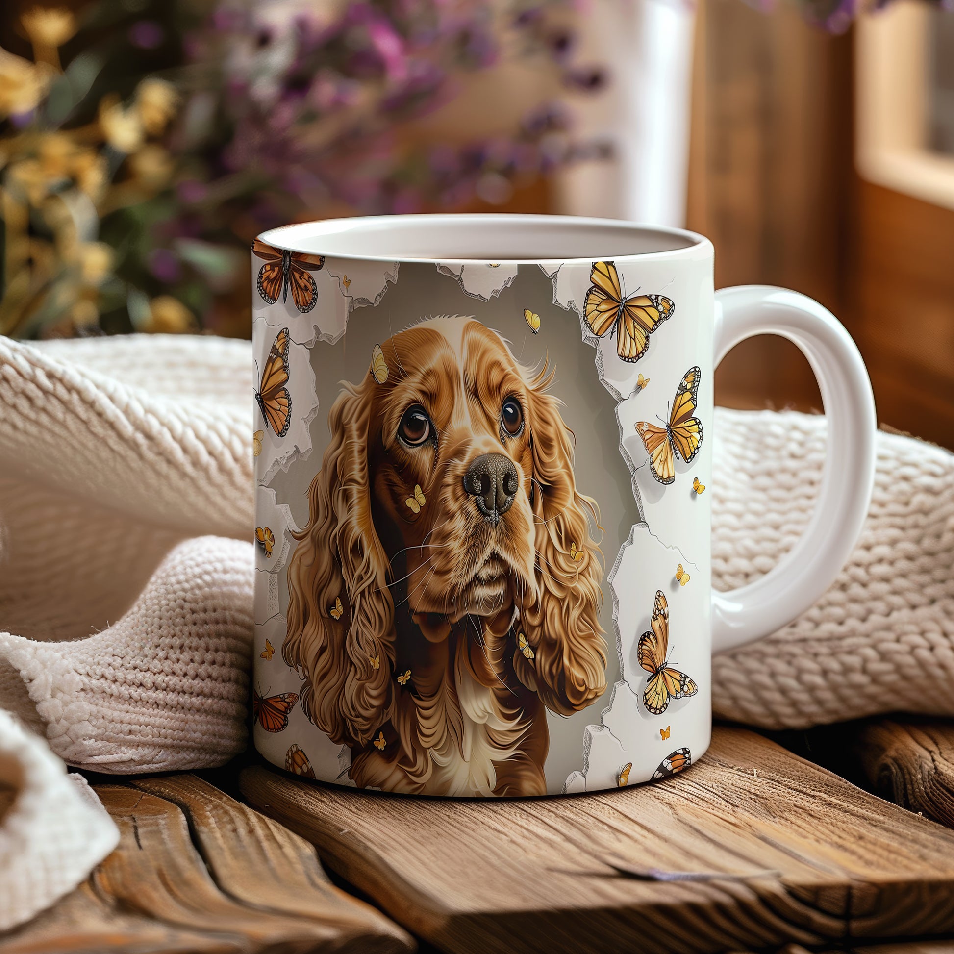 Hrnek s cocker spanielem a motýly je krásným kouskem pro milovníky psů a přírody. Skvělý dárek pro přátele, rodinu nebo jako osobní potěšení. Materiál: keramika. Objem: 330 ml. Vhodné do myčky i mikrovlnky. Tento hrnek přináší radost při každém doušku a dodává na útulnosti vaší domácnosti.
