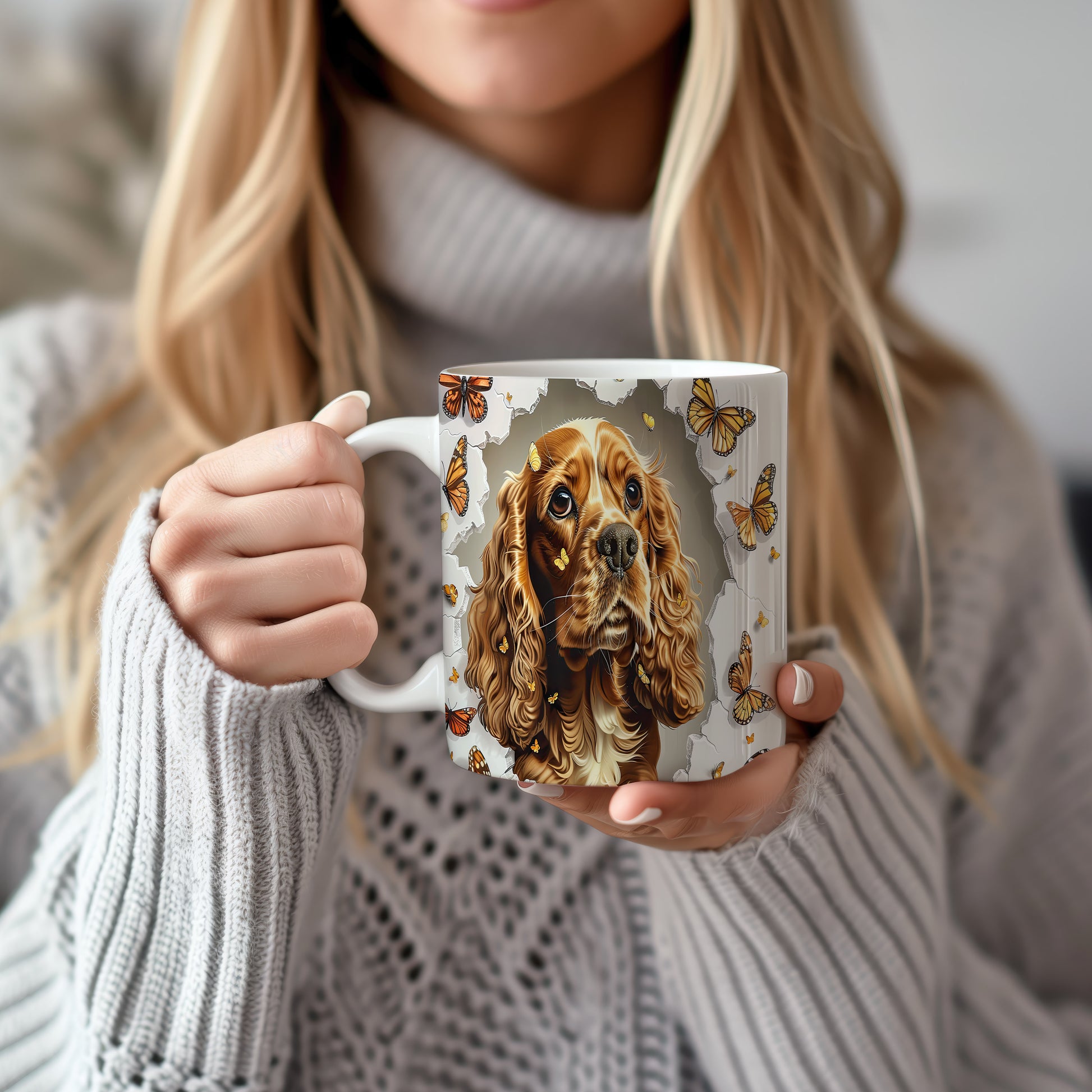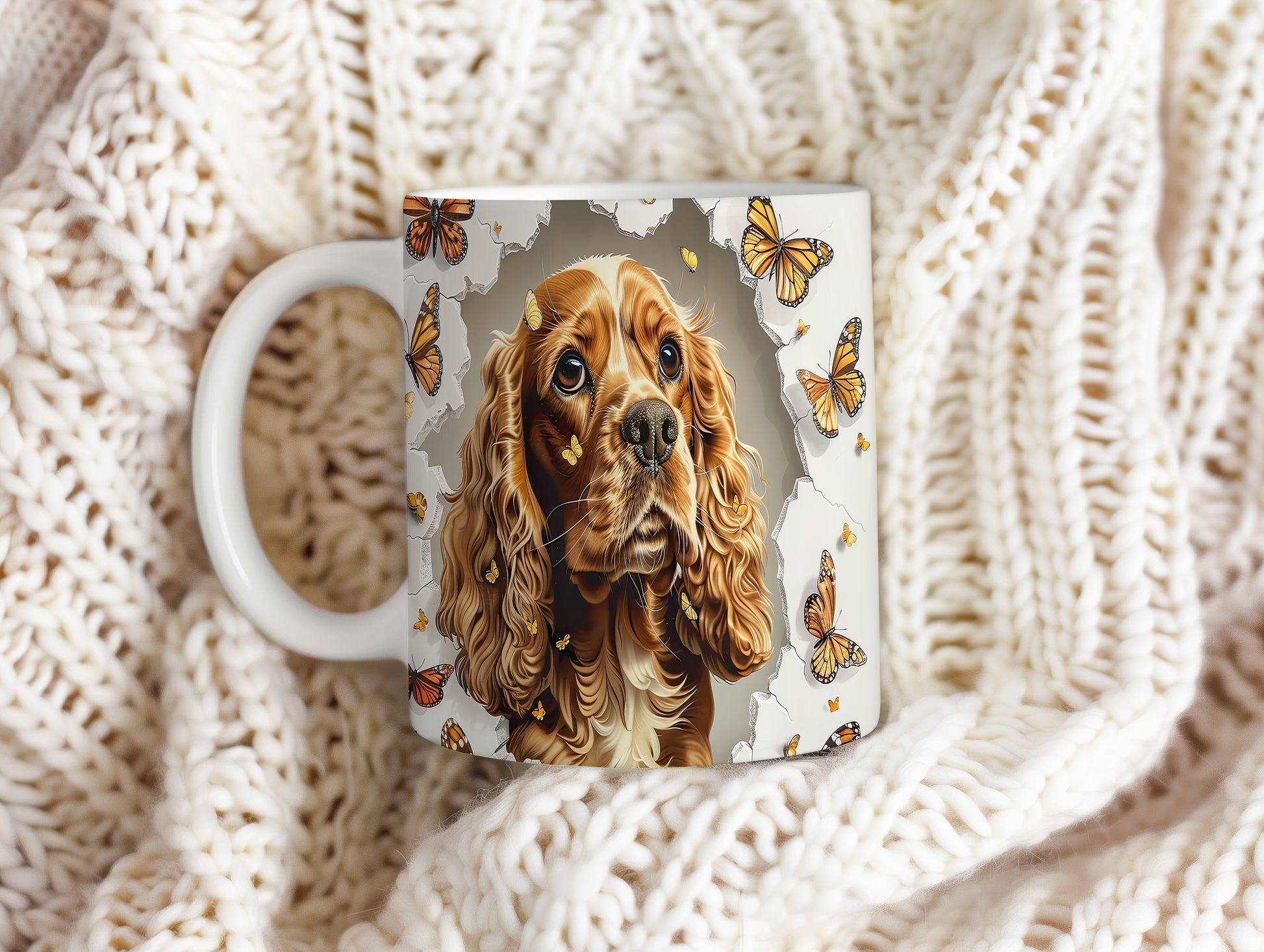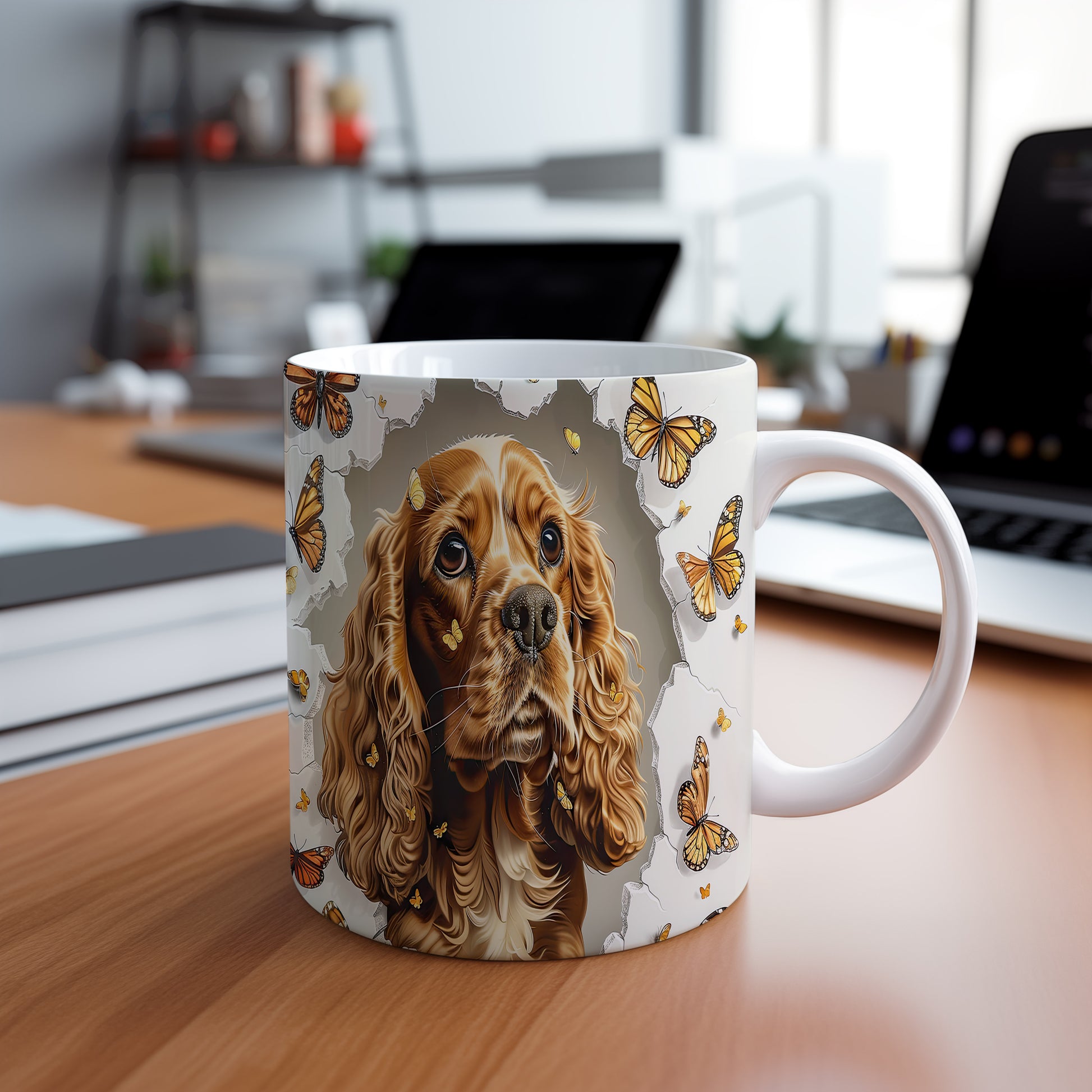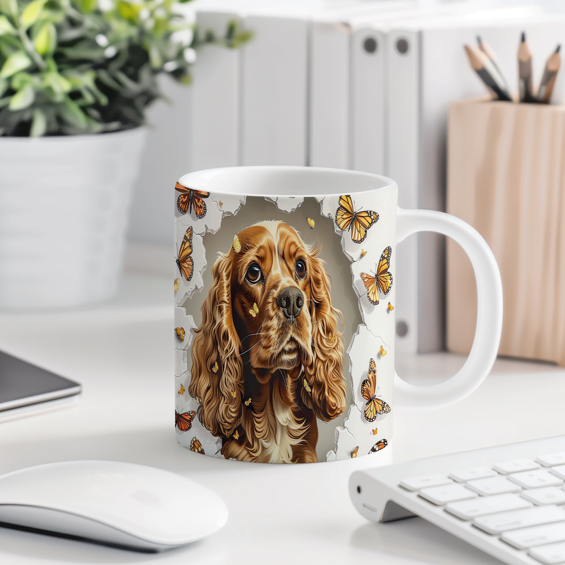 Hrnek s cocker spanielem a motýly je krásným kouskem pro milovníky psů a přírody. Skvělý dárek pro přátele, rodinu nebo jako osobní potěšení. Materiál: keramika. Objem: 330 ml. Vhodné do myčky i mikrovlnky. Tento hrnek přináší radost při každém doušku a dodává na útulnosti vaší domácnosti.