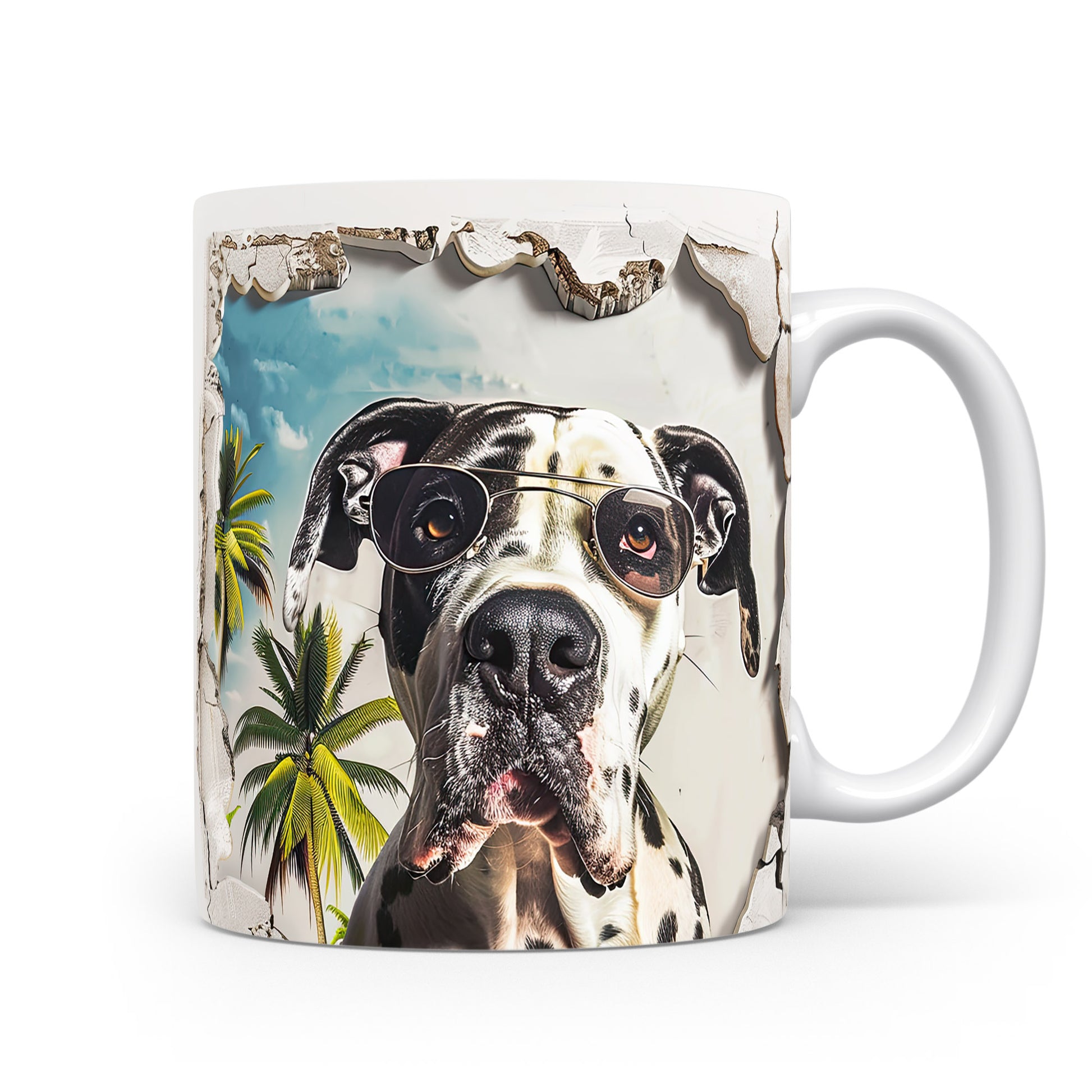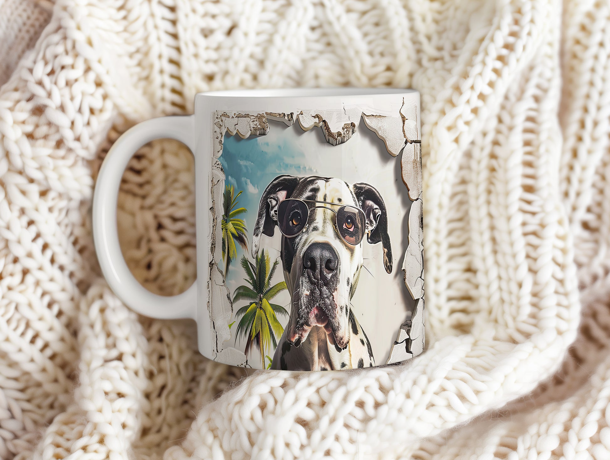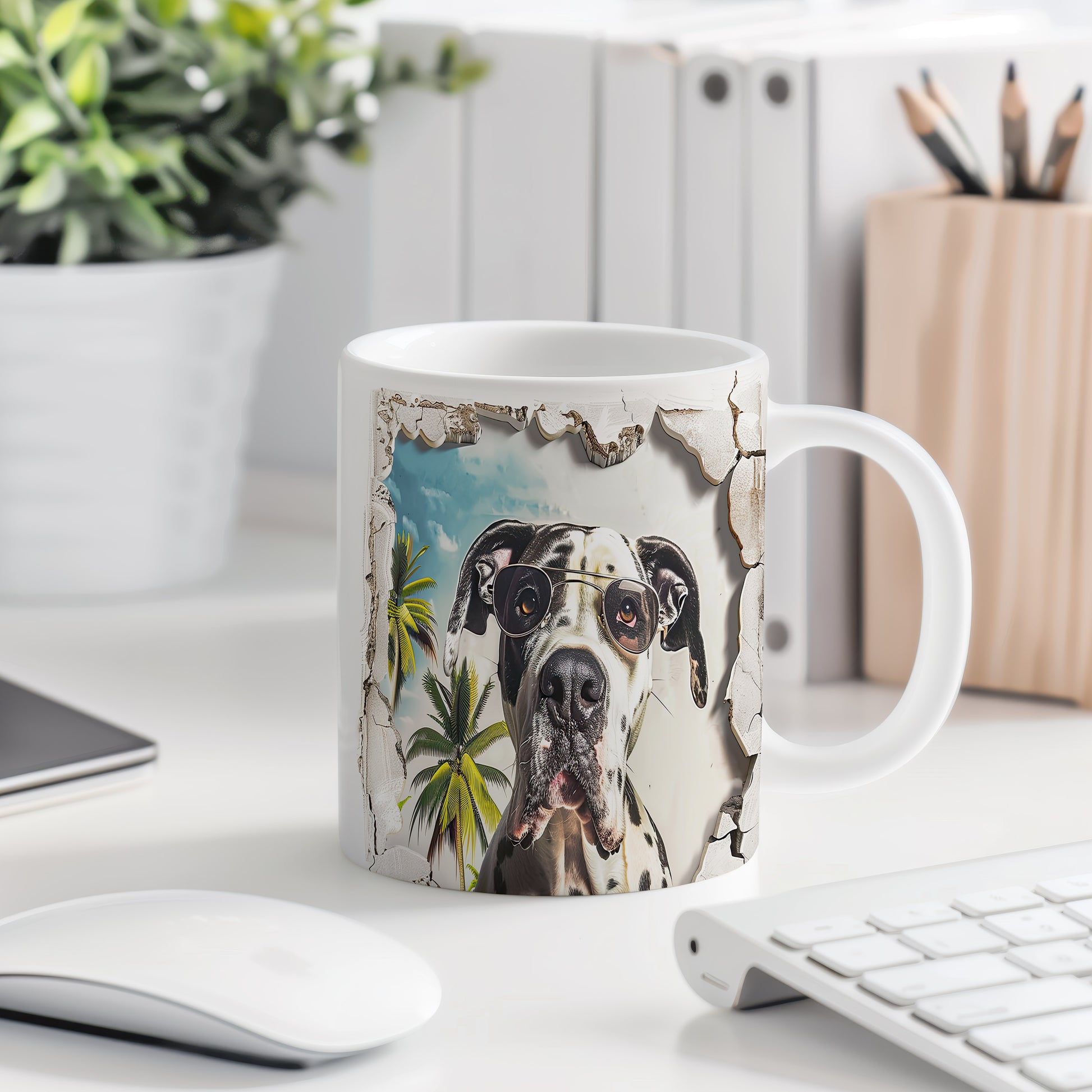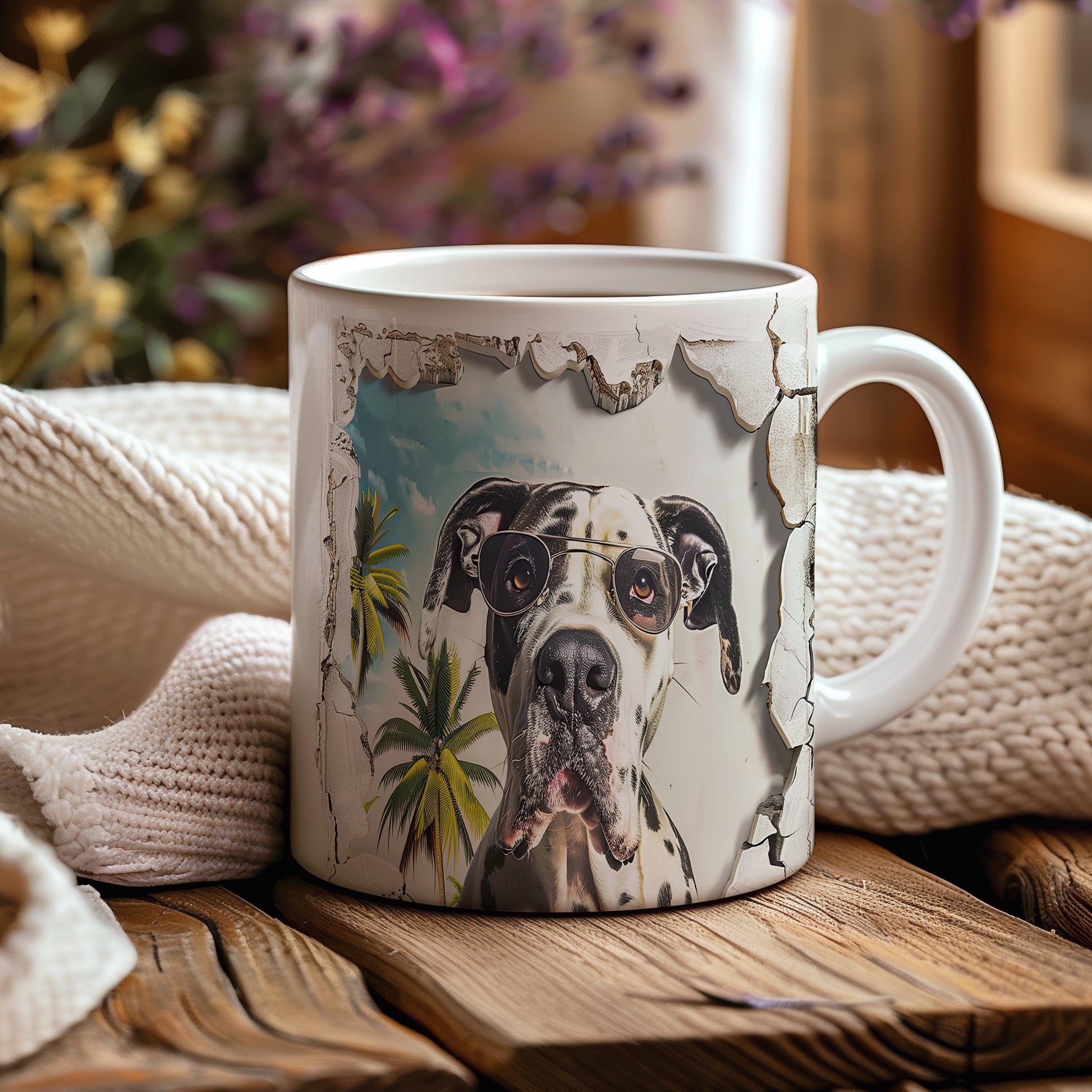 Hrnek s motivem roztomilého psa v brýlích a palmami je skvělou volbou pro milovníky zvířat a veselých designů. Tento hrnek potěší každého, kdo má rád originální kousky, a je ideálním dárkem pro přátele či rodinu. Materiál: keramika. Objem: 330 ml. Vhodné do myčky i mikrovlnky. Používání tohoto hrnku přináší radost a zábavu při každém doušku.