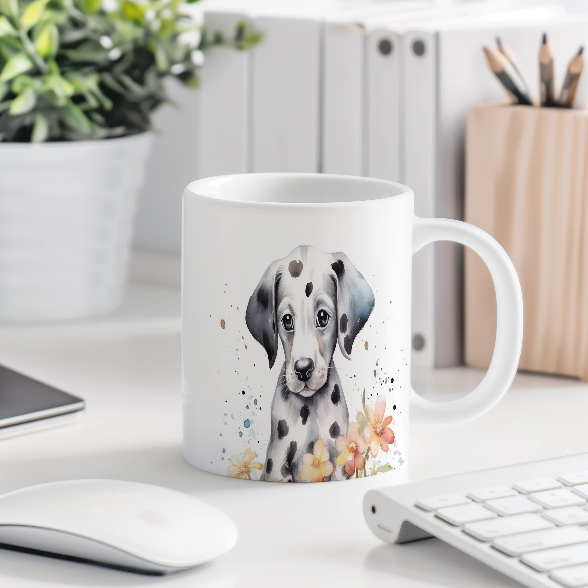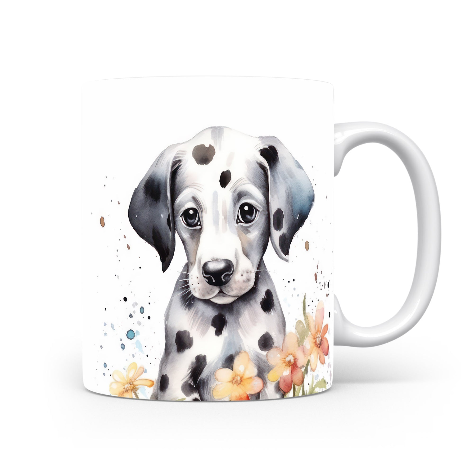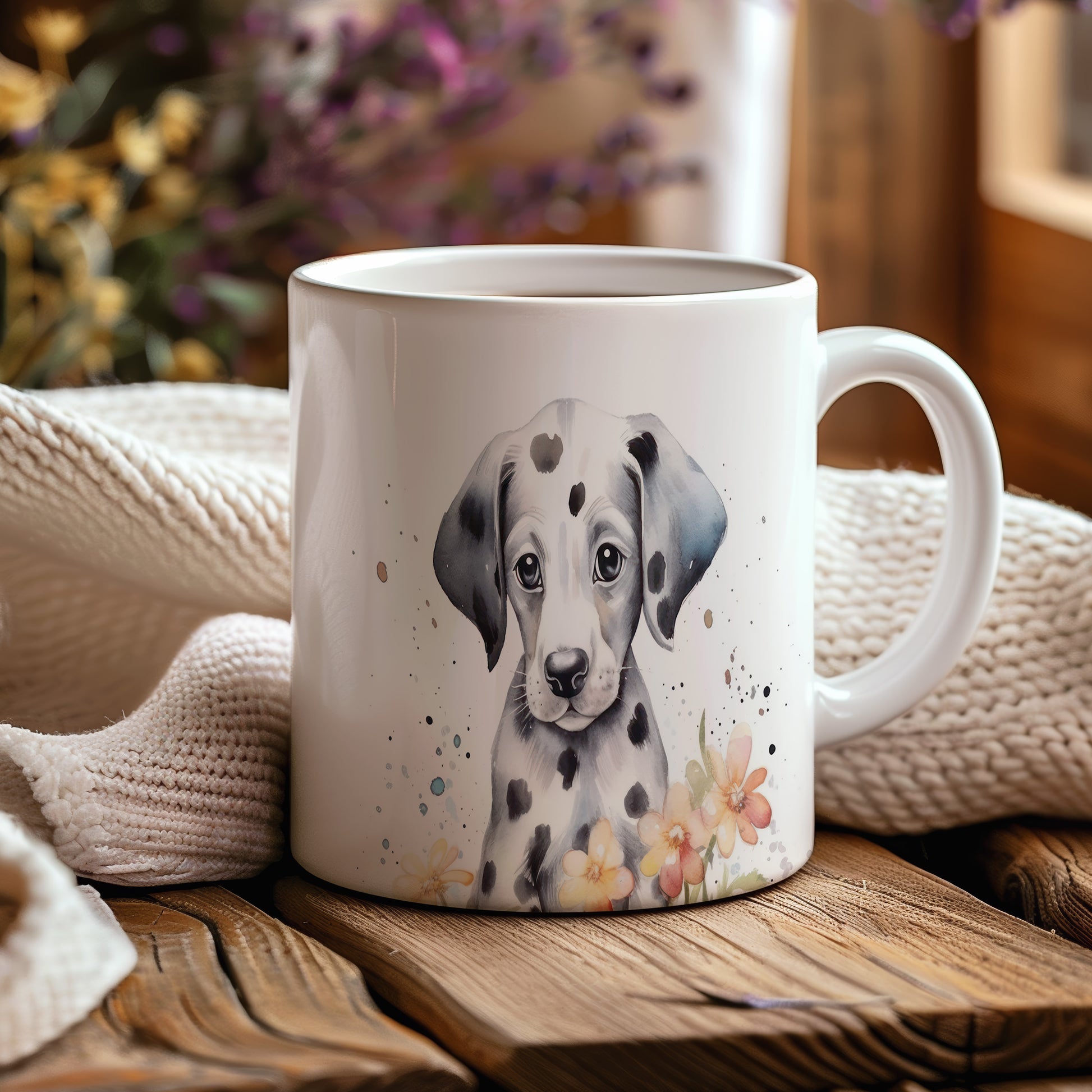 Hrnek s dalmatinem a květinami