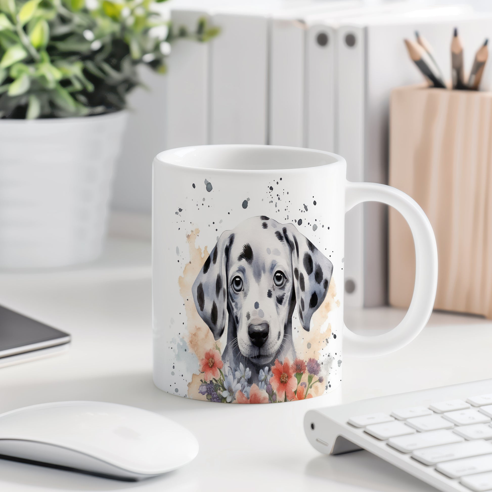Hrnku dominuje krásný motiv dalmatinového štěněte, který přináší radost a útulnost. Tento hrnek je ideální pro milovníky psů a skvělý tip na dárek pro každého, kdo ocení roztomilé designy. Materiál: keramika. Objem: 330 ml. Vhodné do myčky i mikrovlnky. Používání tohoto hrnku vám zpříjemní každé ráno s oblíbeným nápojem.