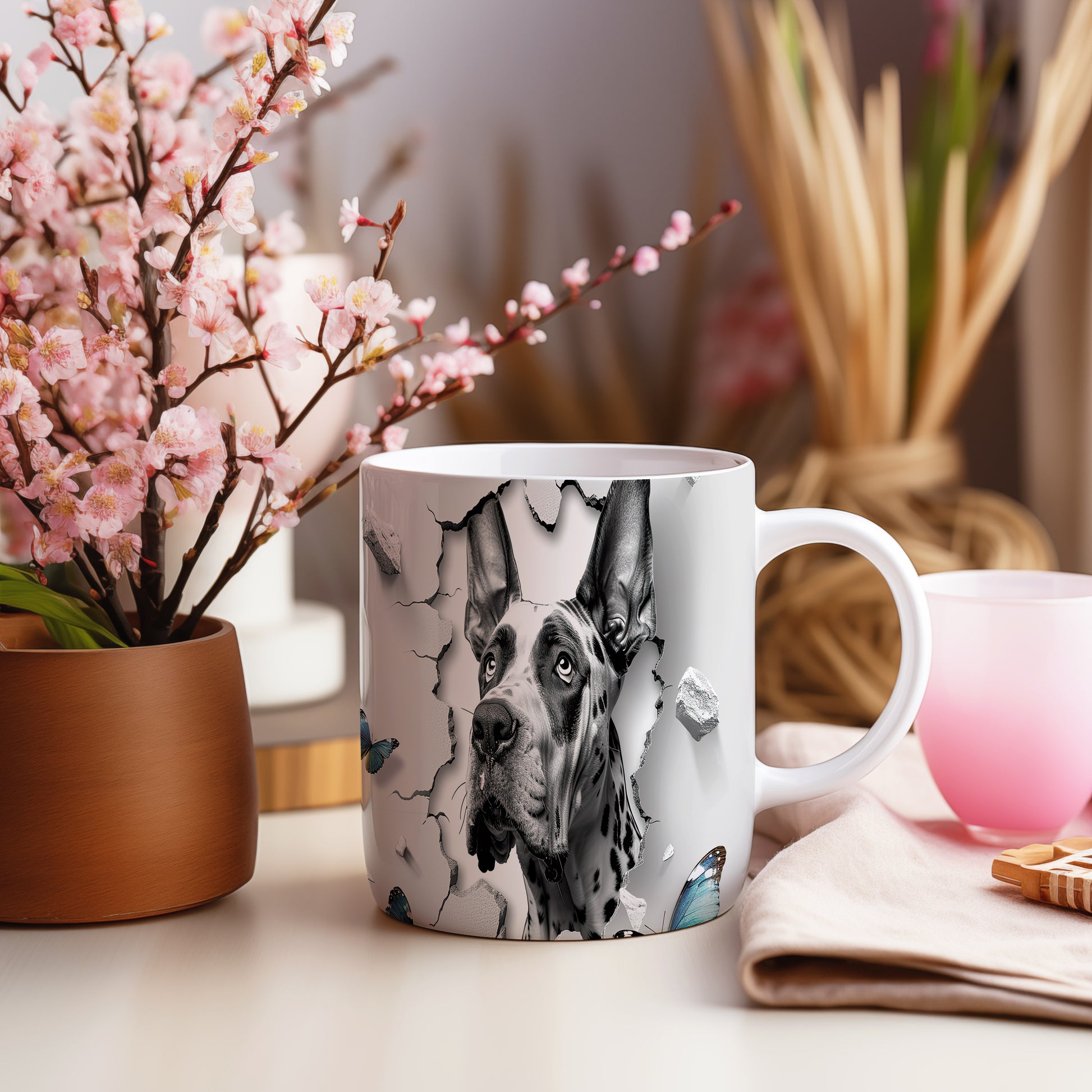 Hrnek s dalmatinským psem a motýly