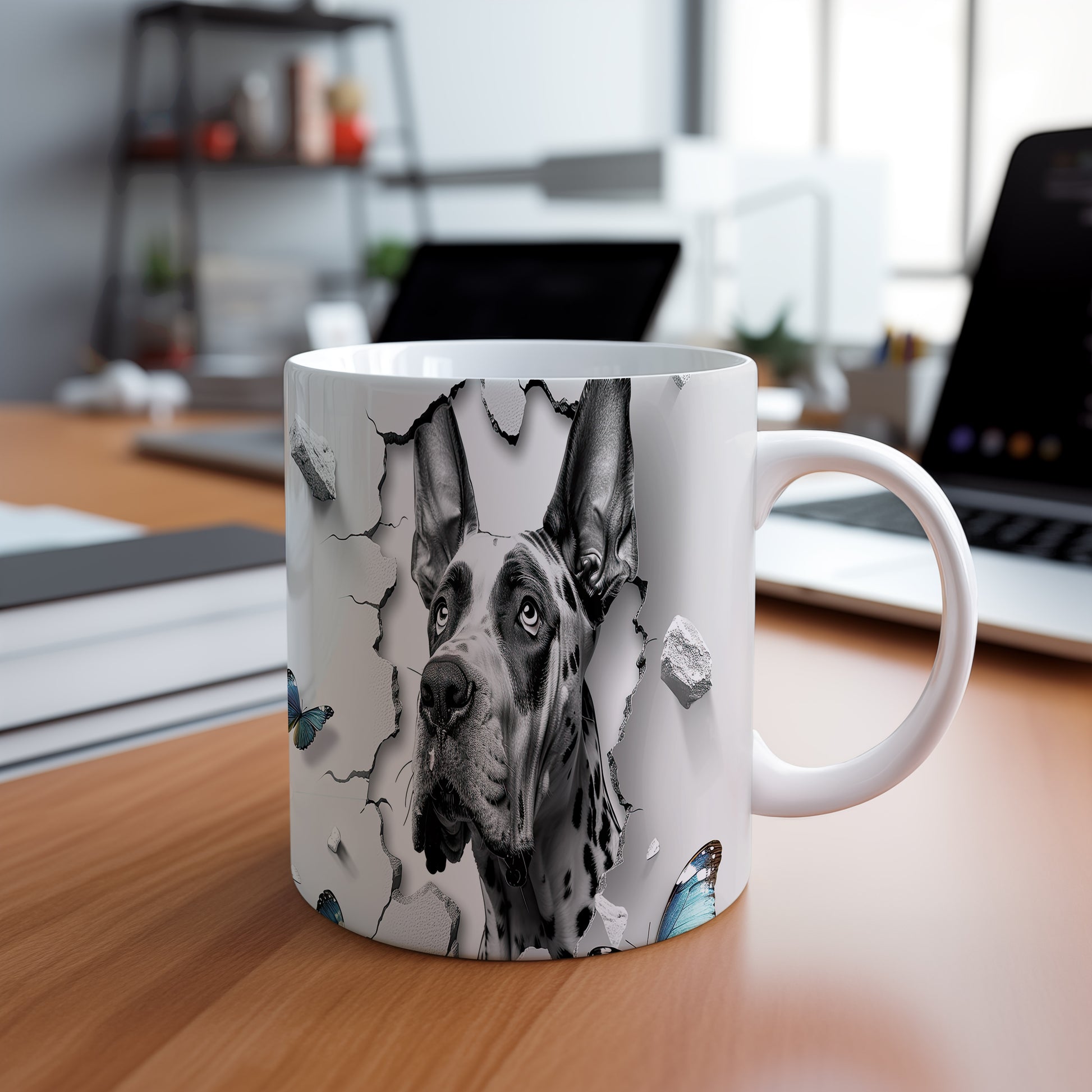 Hrnek s realistickým motivem dalmatinského psa a motýlů. Tento originální kousek potěší milovníky psů a skvělý tip na dárek pro přátele. Materiál: keramika. Objem: 330 ml. Vhodné do myčky i mikrovlnky. Díky svému jedinečnému designu přinese do každodenního pití radost a styl.