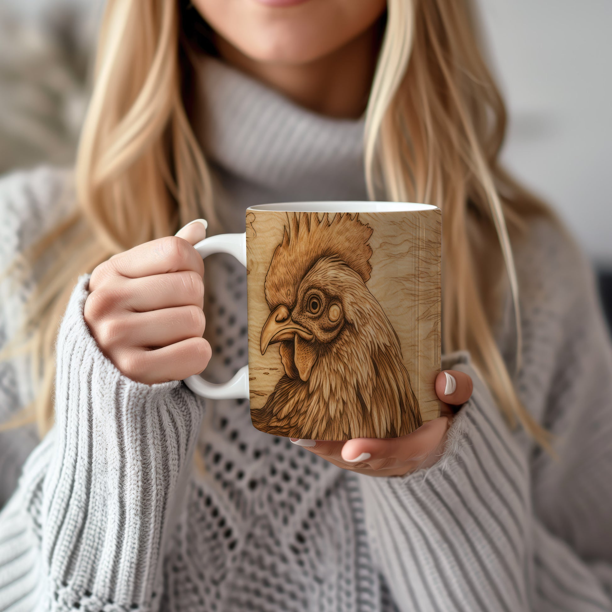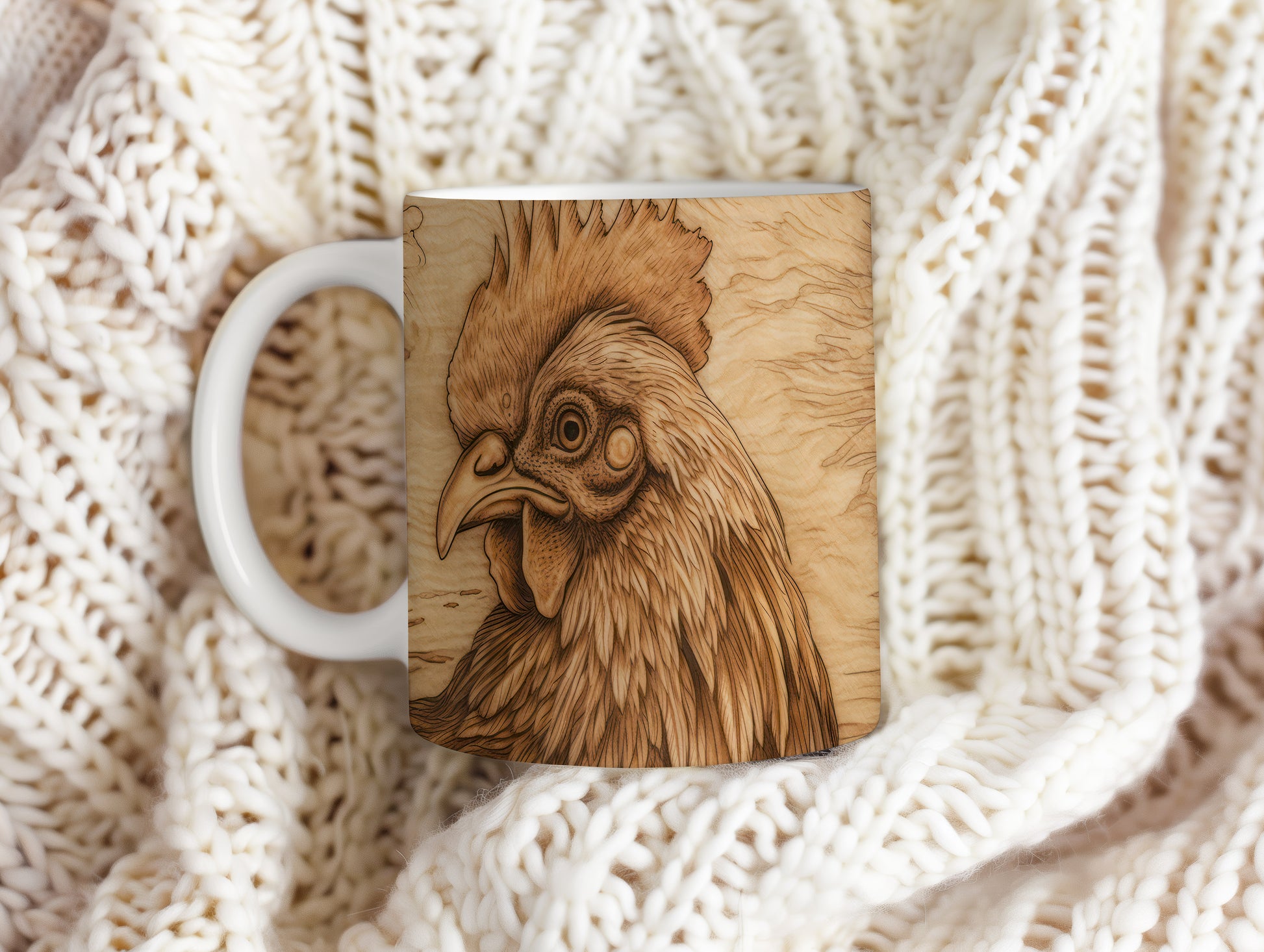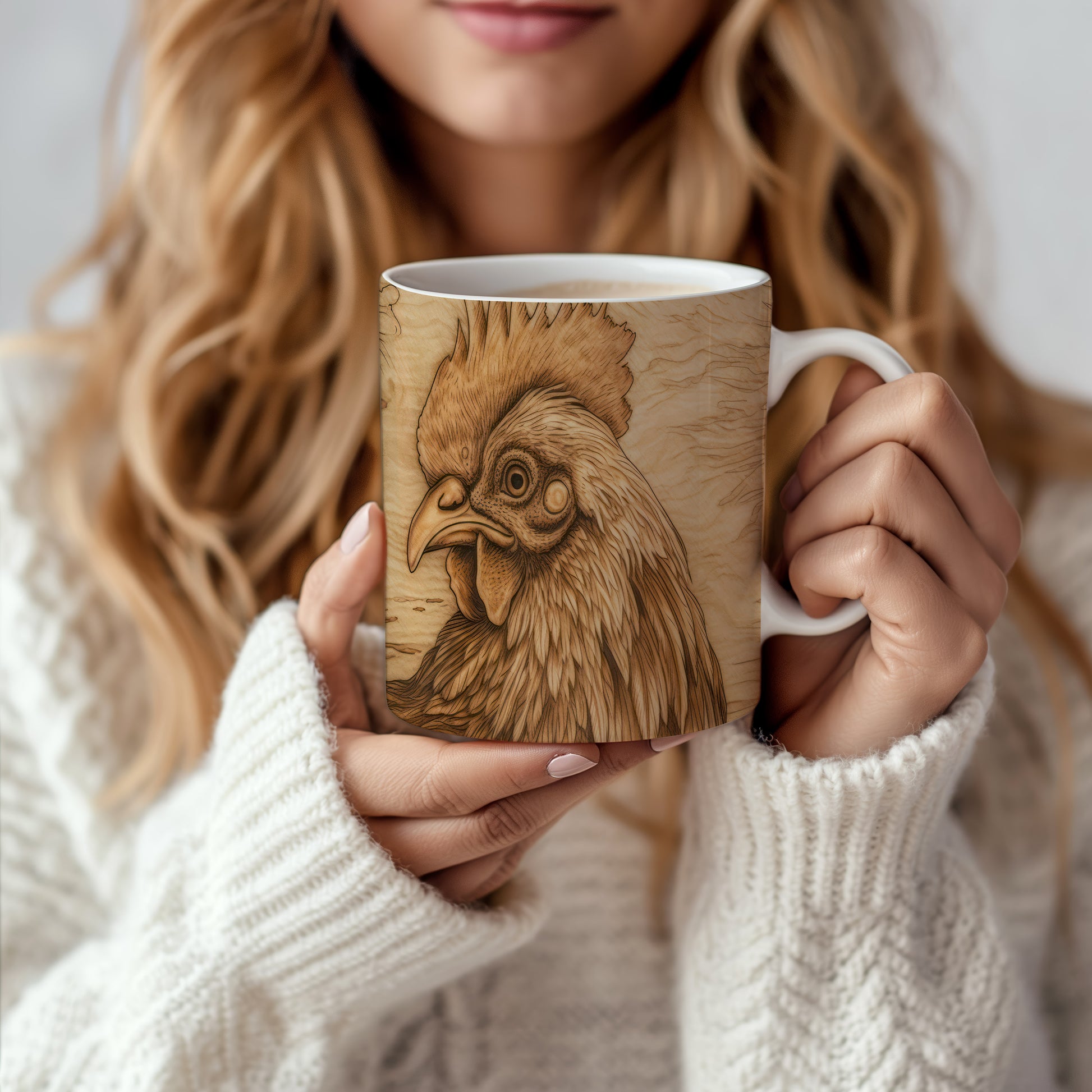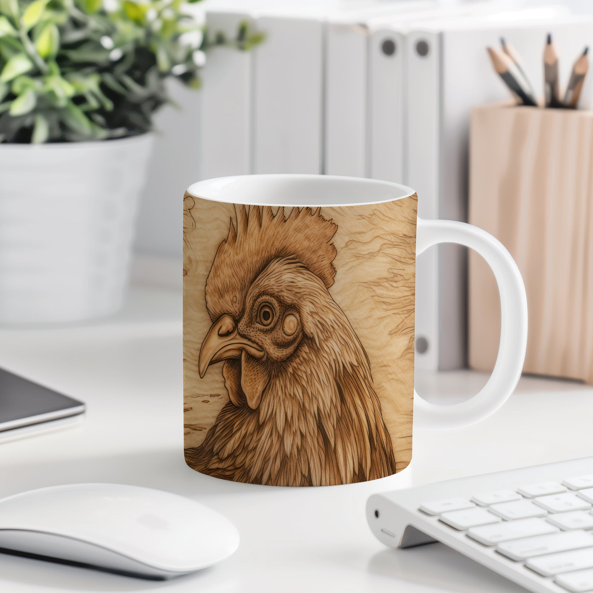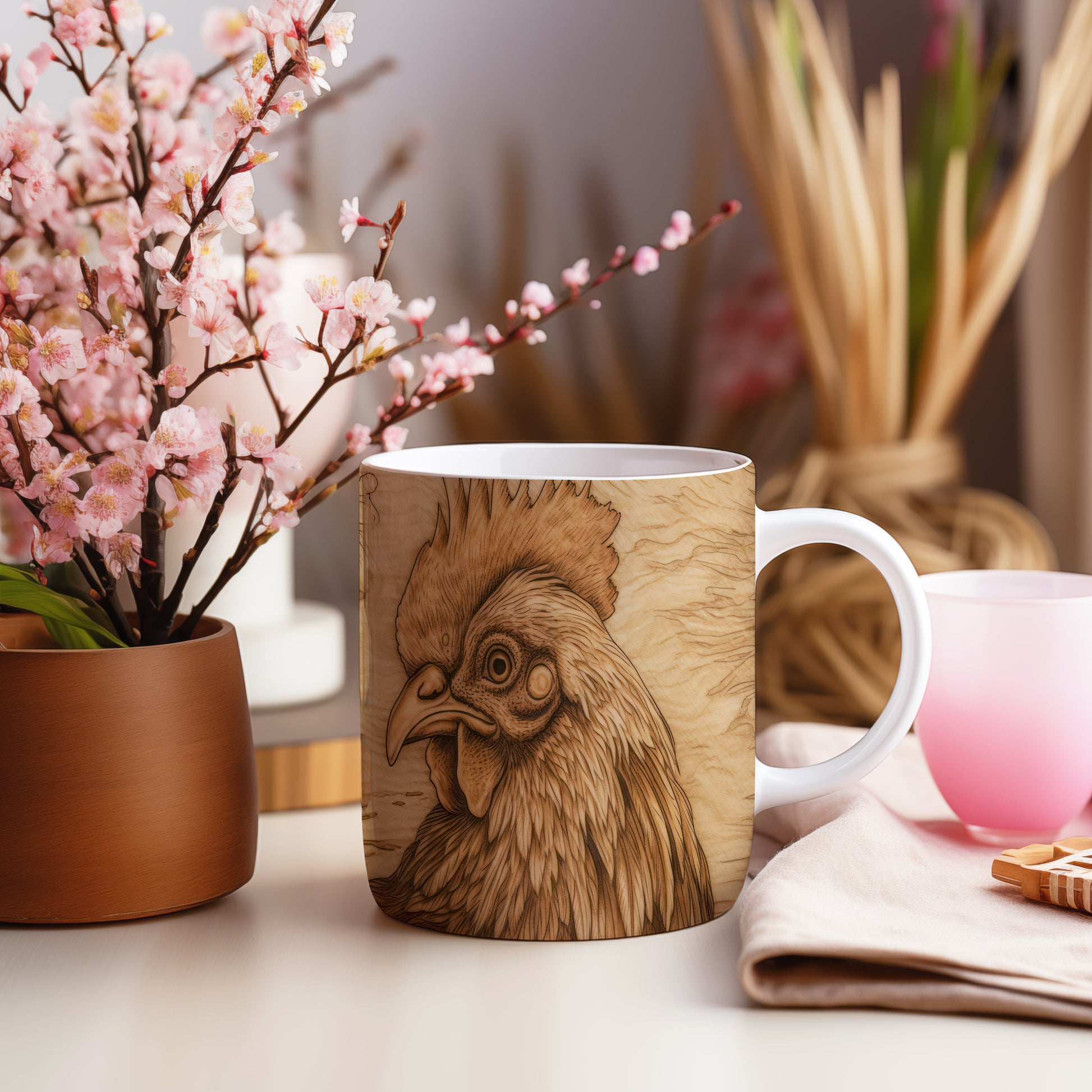 Hrnek s detailním vyobrazením kohouta