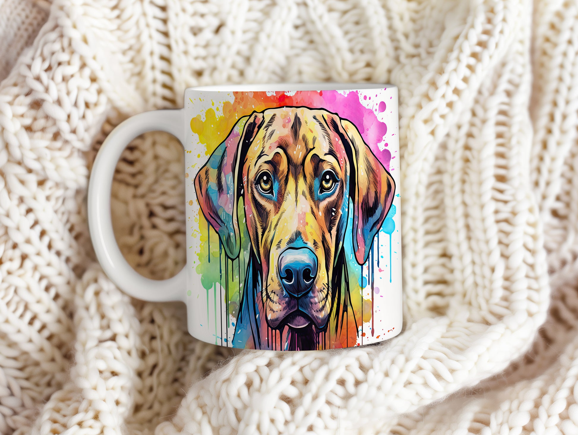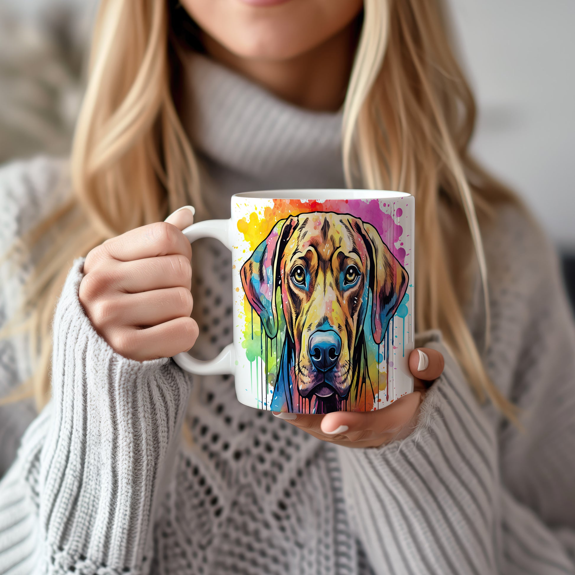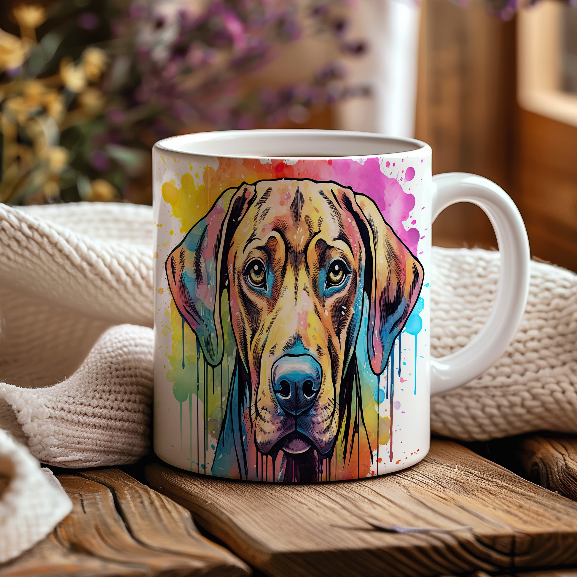 Hrnek s digitální ilustrací psa v hnědých tónech