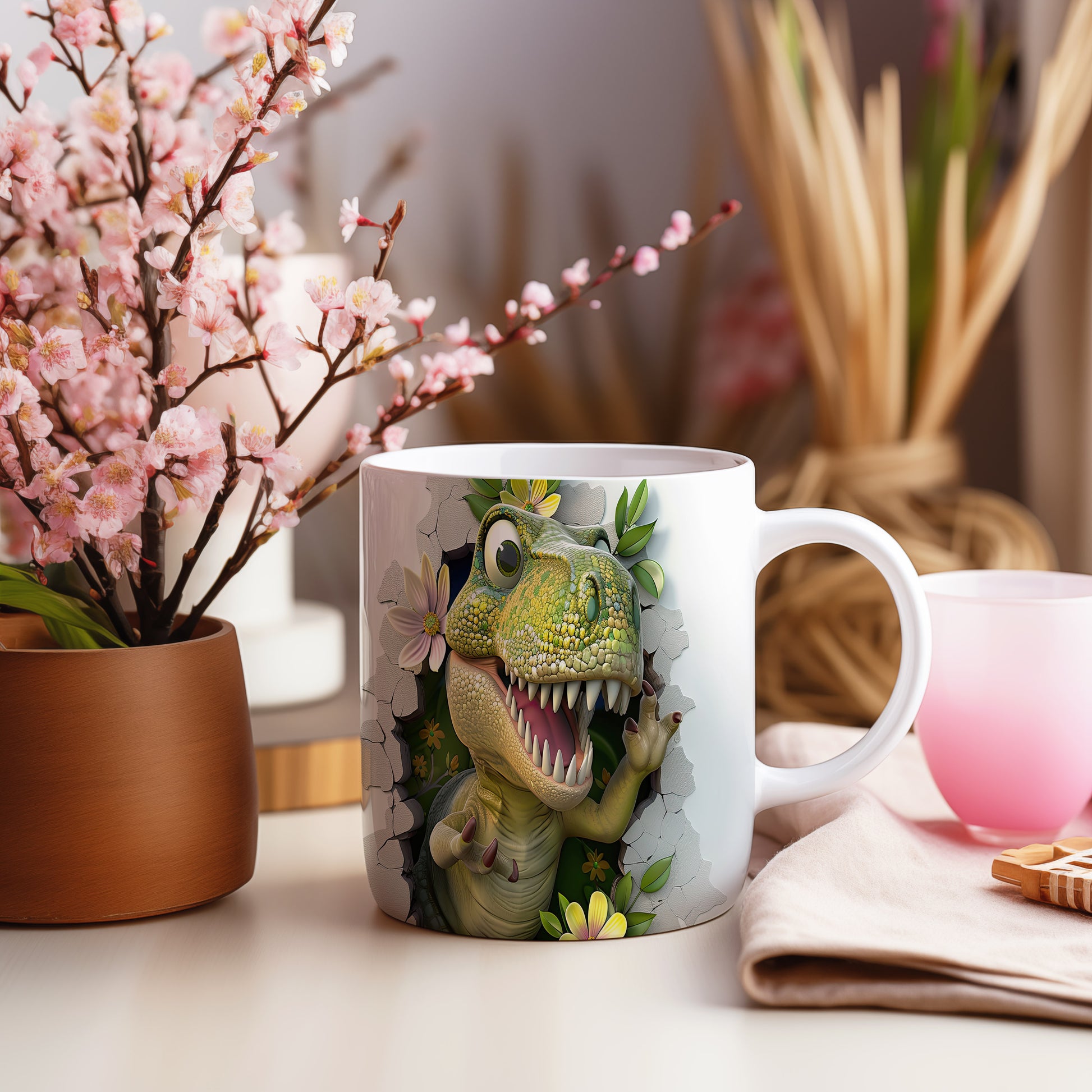 Hrnek s roztomilým dinosaurusem a květinami je ideální pro milovníky prehistorických zvířat. Tento hrnek potěší děti i dospělé a skvěle se hodí jako dárek k narozeninám nebo svátku. Materiál: keramika. Objem: 330 ml. Vhodné do myčky i mikrovlnky. Díky svému designu přináší radost a oživí každé pití.