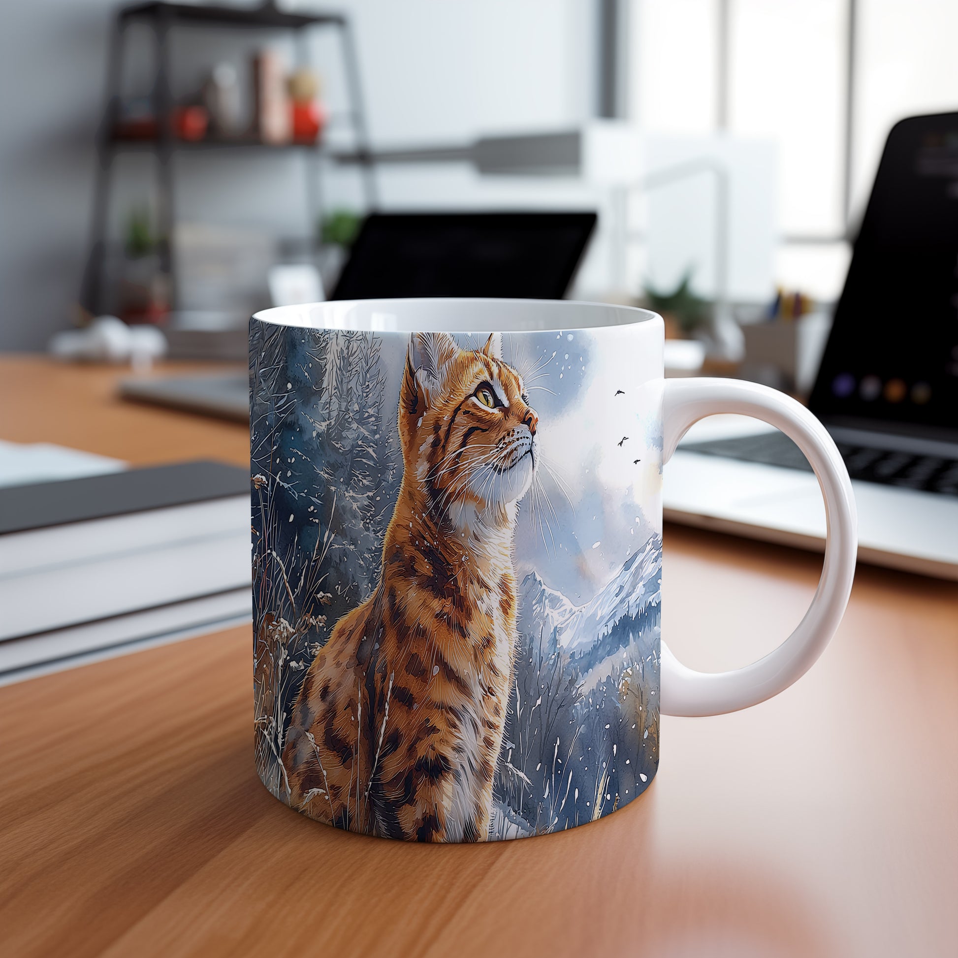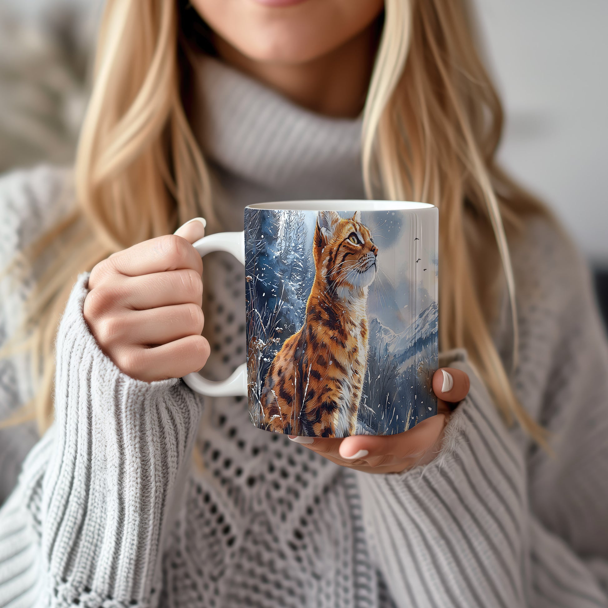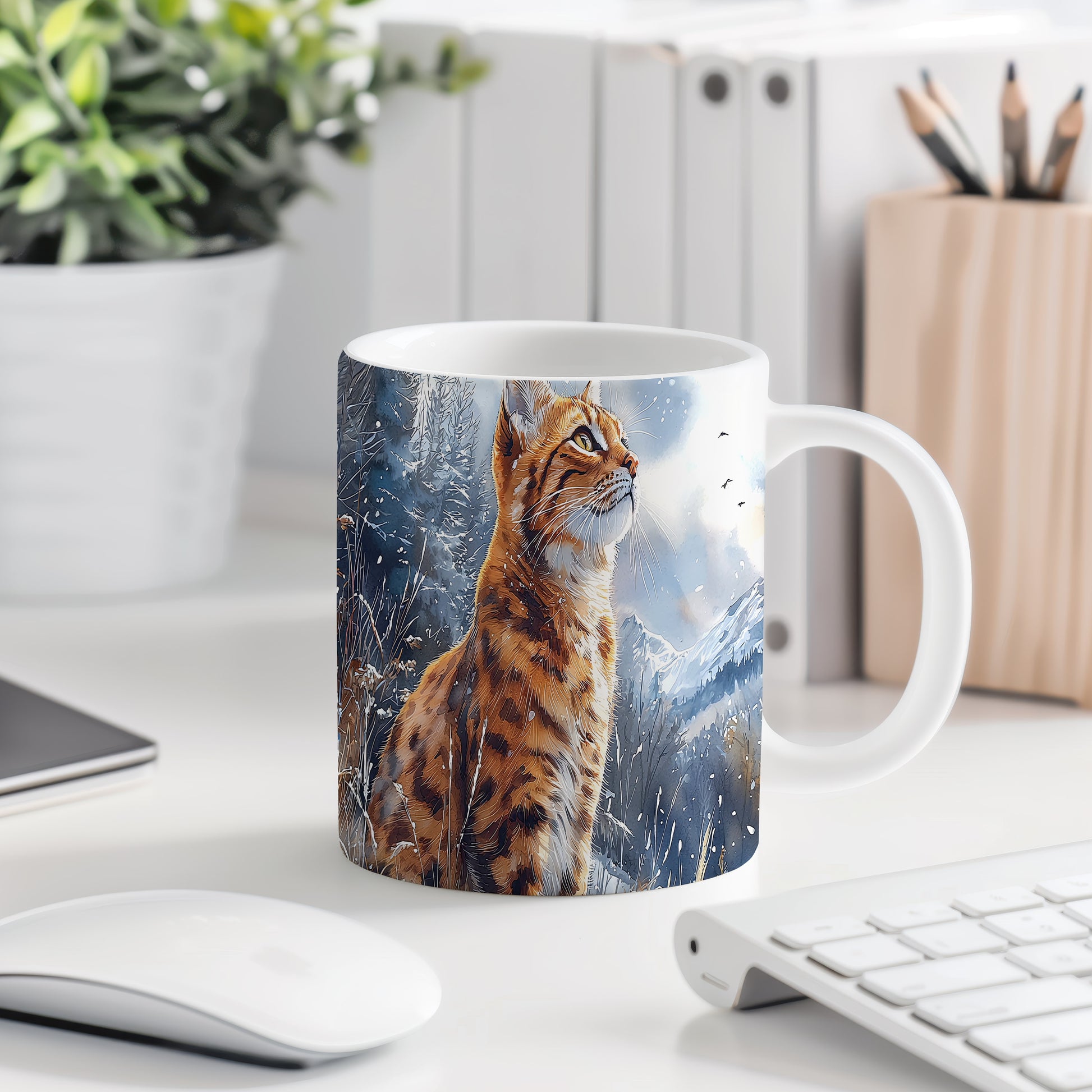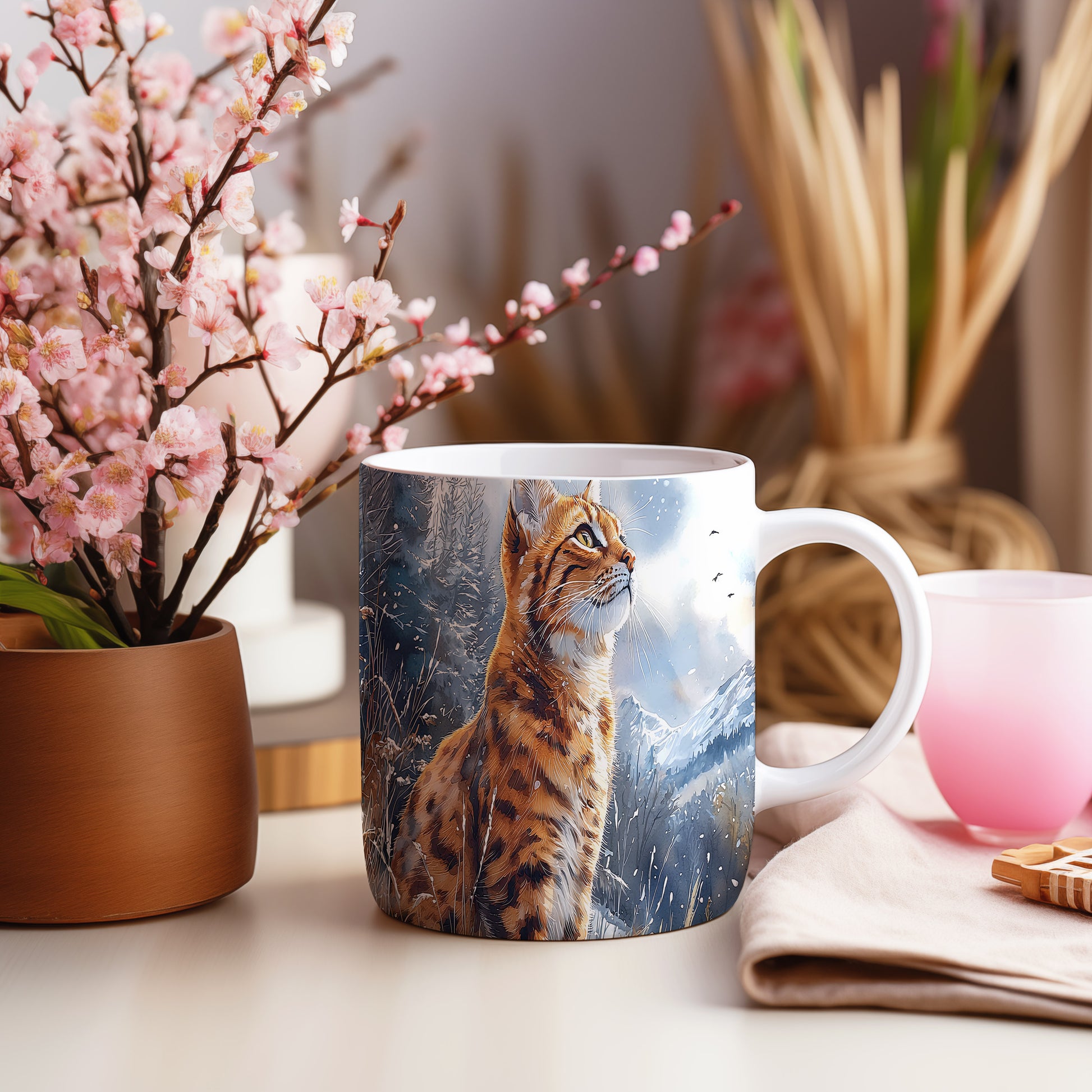 Tento hrnek zobrazuje majestátní divokou kočku v přírodním prostředí. Je ideální pro milovníky zvířat a přírody, skvělý tip na dárek pro každého, kdo ocení krásu divoké fauny. Materiál: keramika. Objem: 330 ml. Vhodné do myčky i mikrovlnky. Používání tohoto hrnku přináší radost z pití oblíbeného nápoje a zároveň vás spojuje s přírodou.