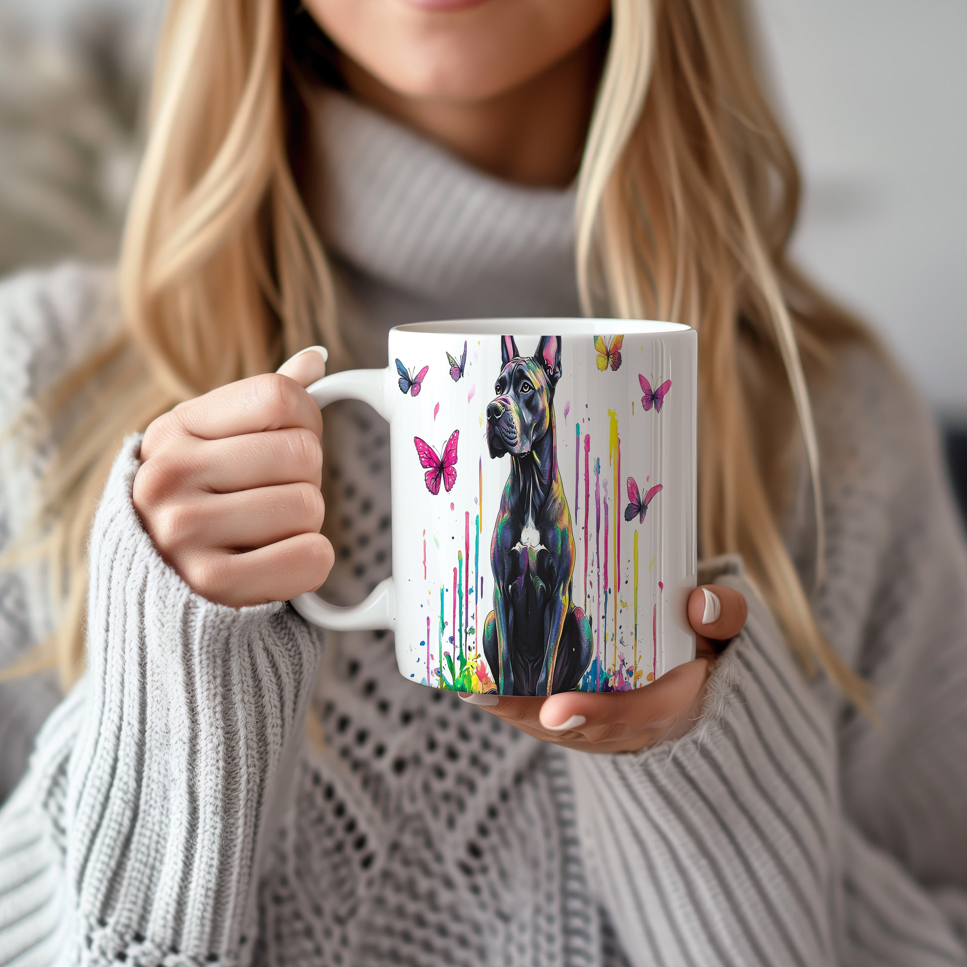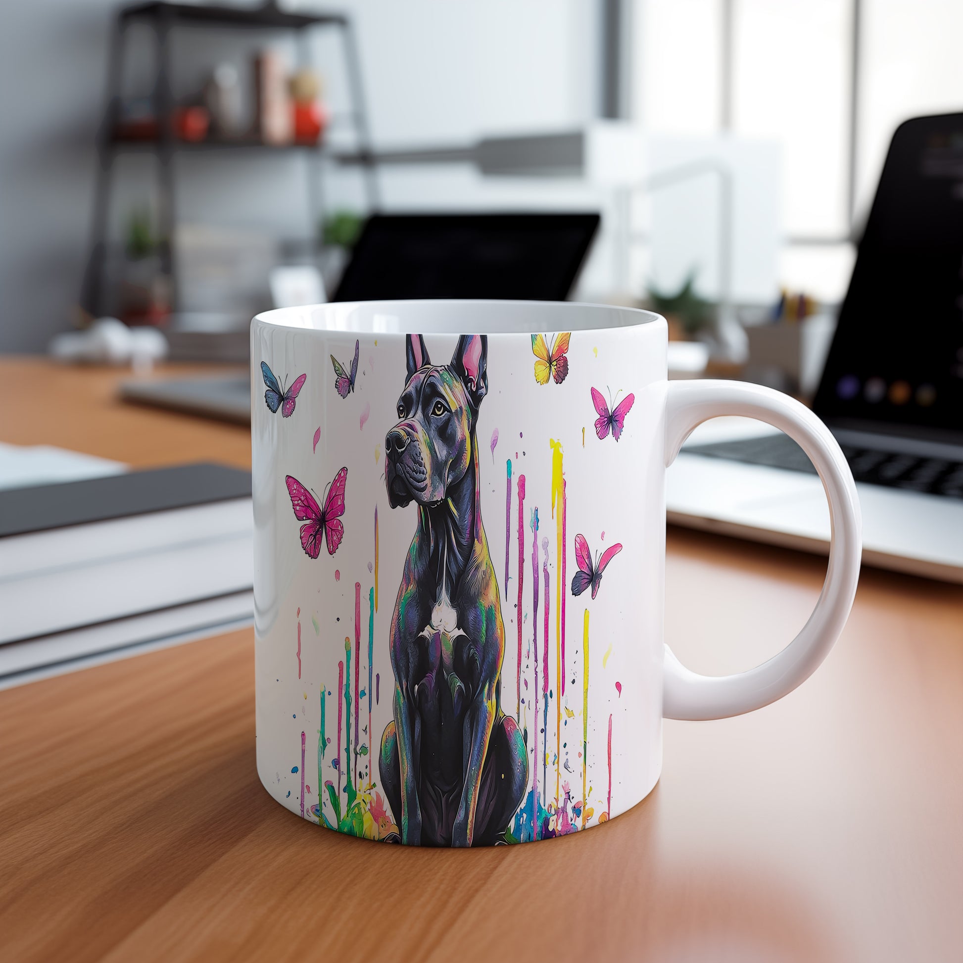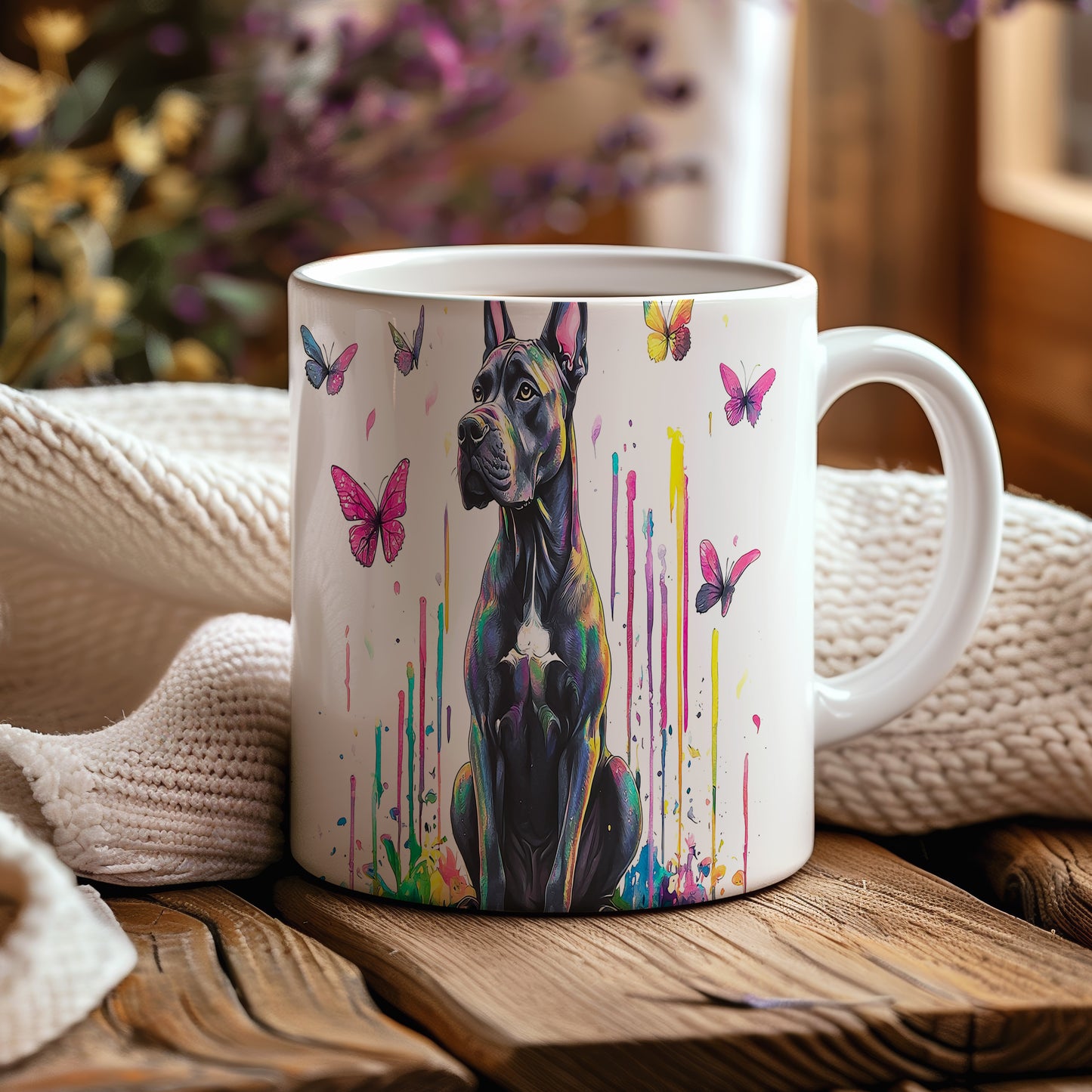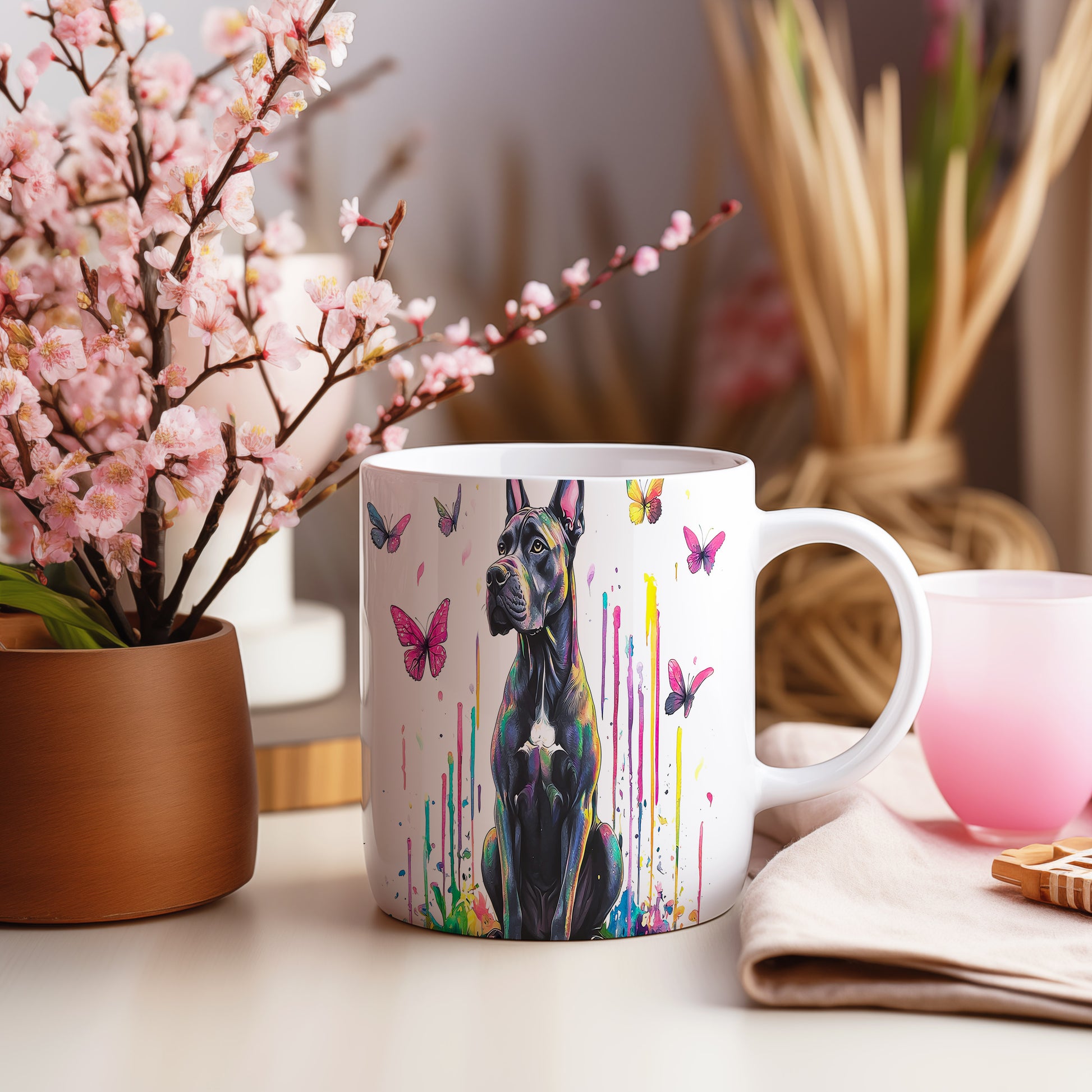 Hrnek s motivem černého psa a barevných motýlů je skvělou volbou pro milovníky zvířat a přírody. Tento hrnek potěší každého, kdo hledá originální dárek pro své blízké. Materiál: keramika. Objem: 330 ml. Vhodné do myčky i mikrovlnky. Díky svému designu přináší do každodenního pití radost a pozitivní energii.